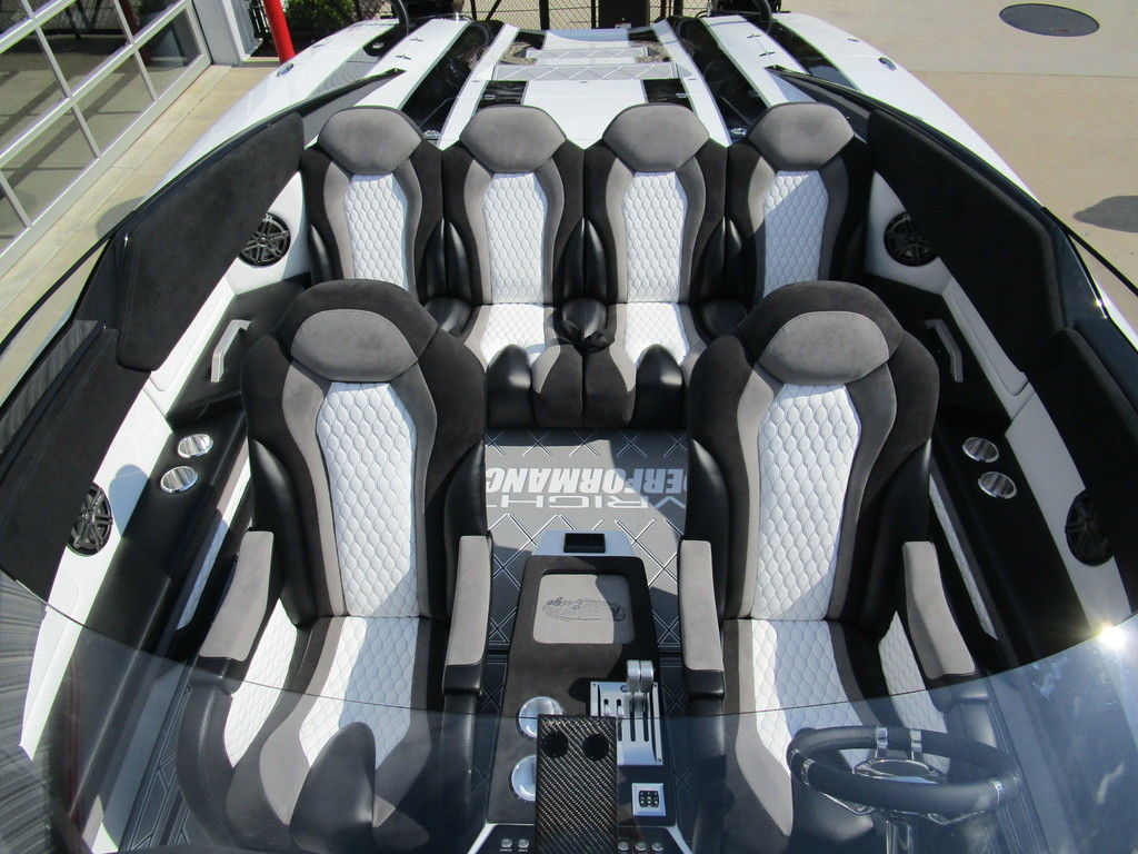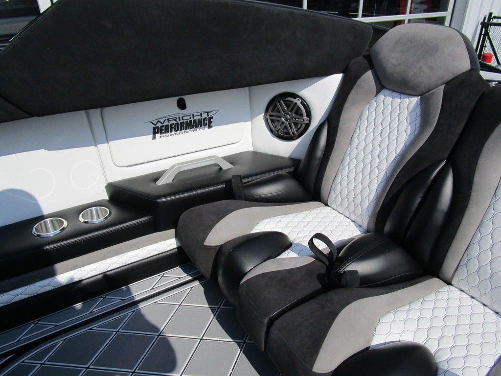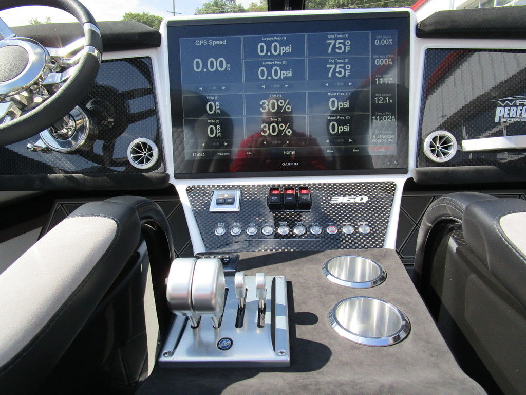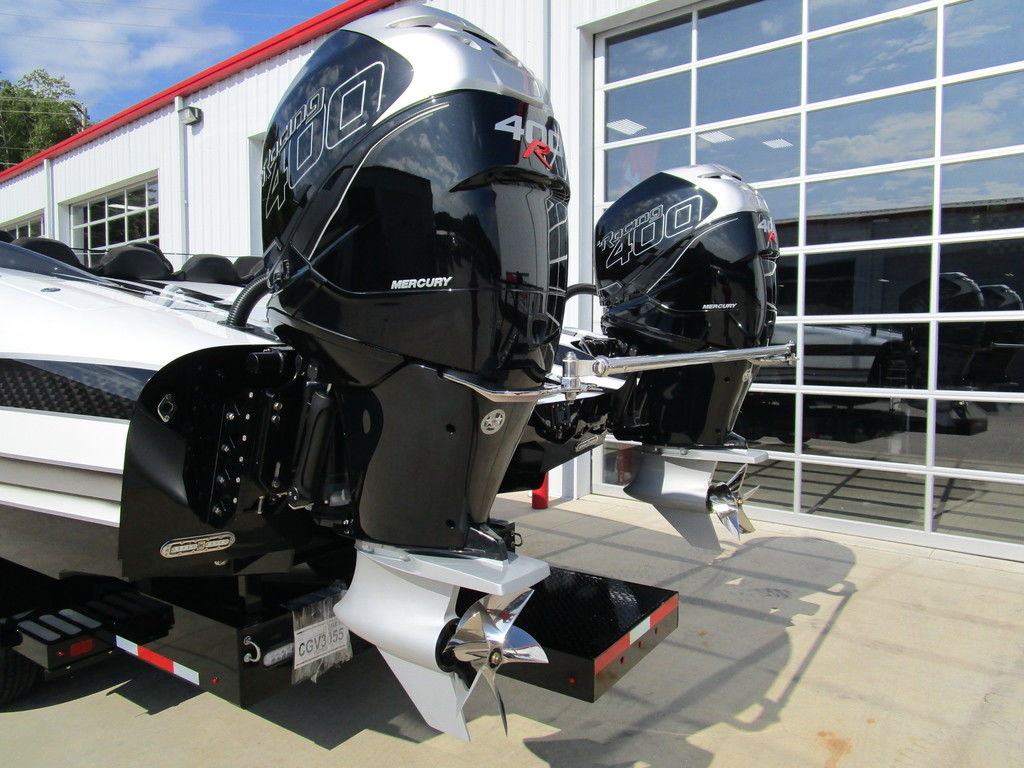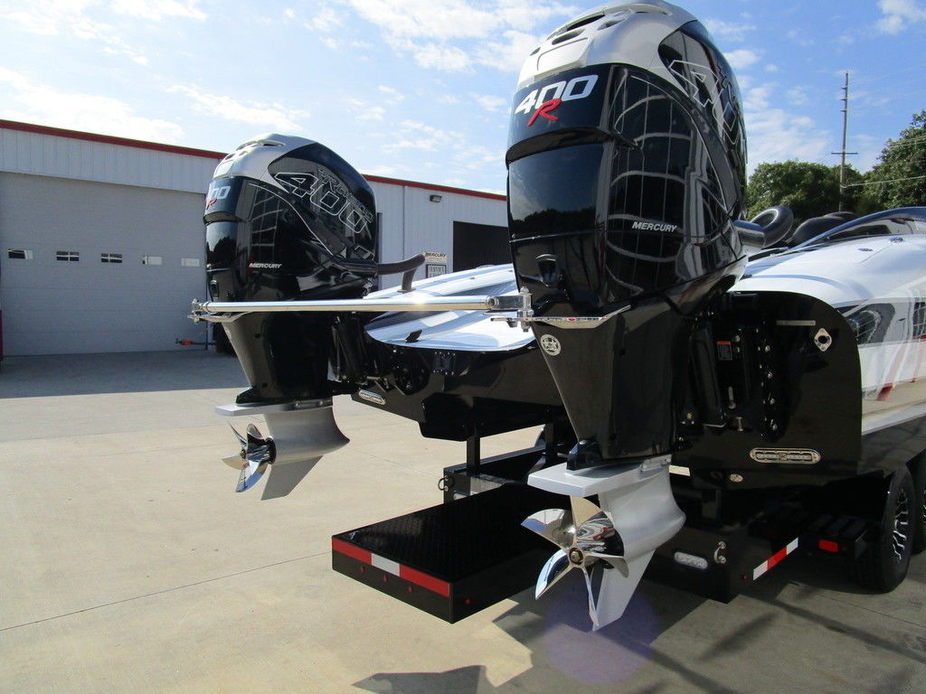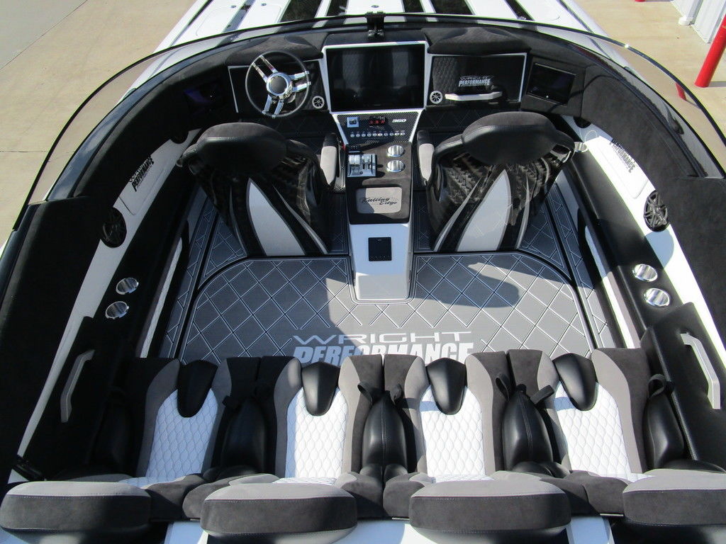 2019 Wright Performance 360 powered by twin Mercury Racing 400R Verado outboards with 50 hours. Mercury CNC 5 blade cleaver props, Garmin 8622 (22” display), Mercury DTS(digital throttle/shift), (2)Vessel View 702, Fusion/JL Audio sound system with (6) 7.7 JL Audio components, JL Audio Subwoofer, Isotta steering wheel, Sea Deck flooring, Alcantara suede custom interior, custom dash panels, dual helm, LED navigation lights, underwater lights, billet jack plates, (3) AGM batteries with dash board remotes, on-board charger, cockpit cover, and Myco painted aluminum trailer with LED lights, Mag wheels, and surge brakes. Boat runs 120+ mph as equipped, all included and STANDARD EQUIPMENT.