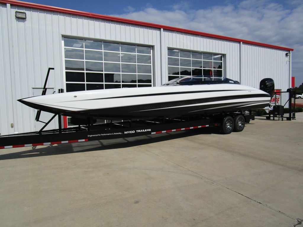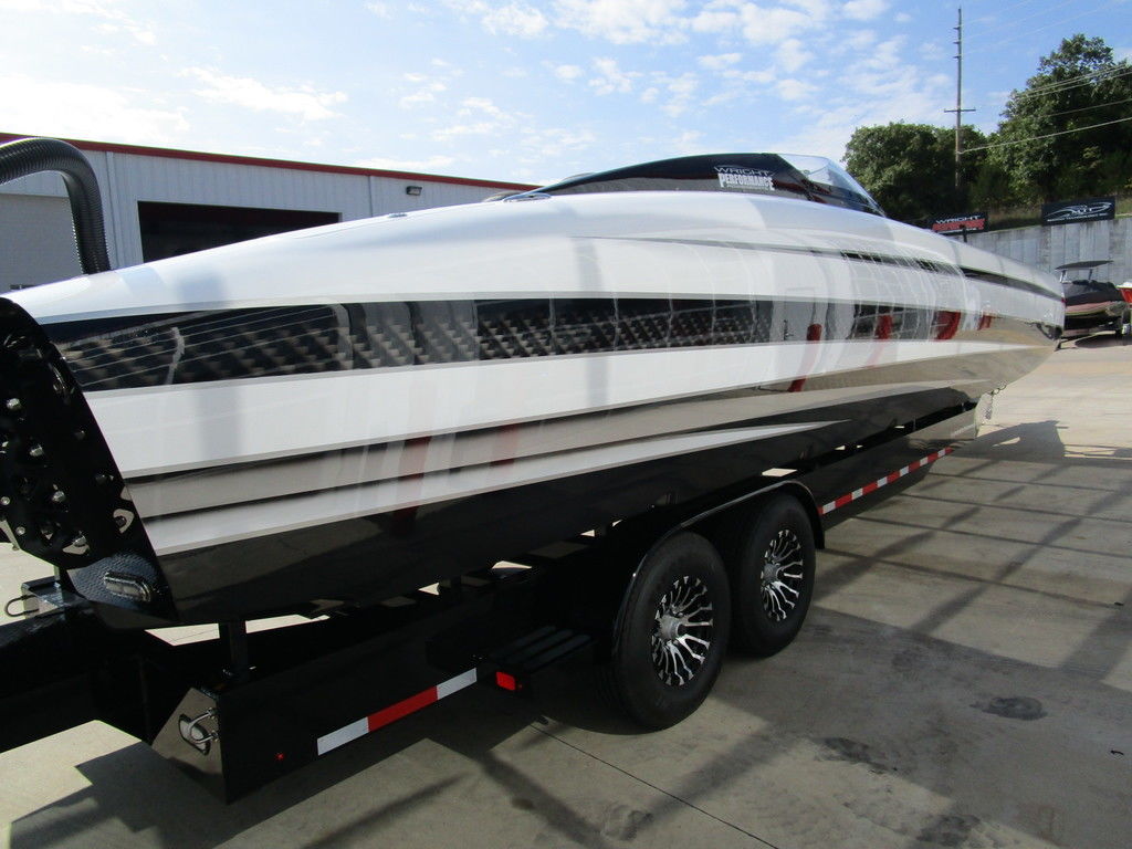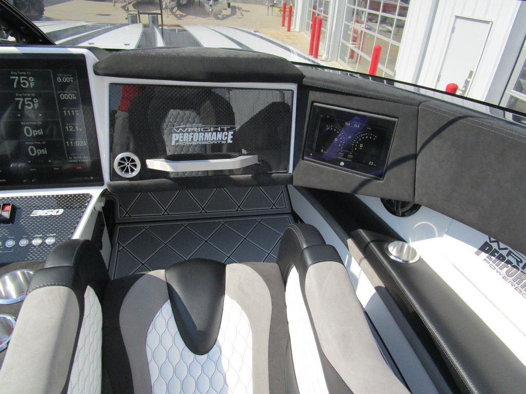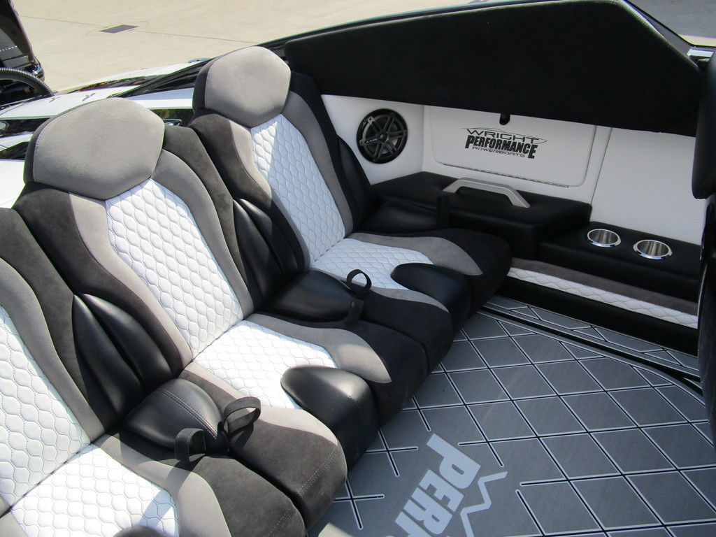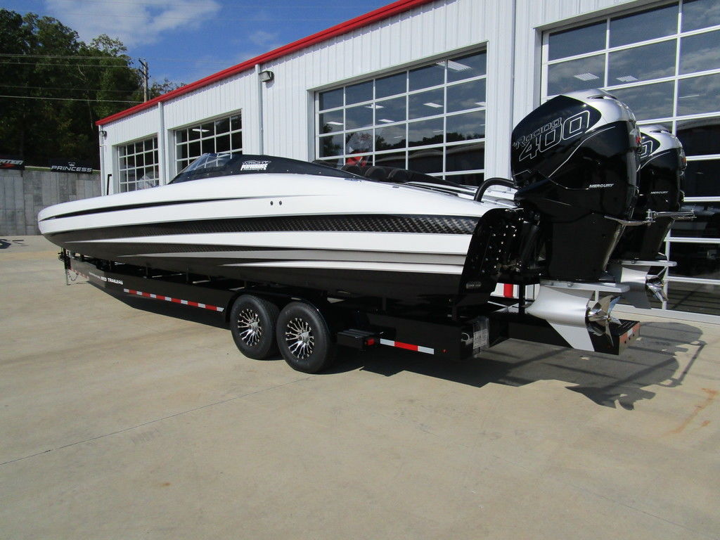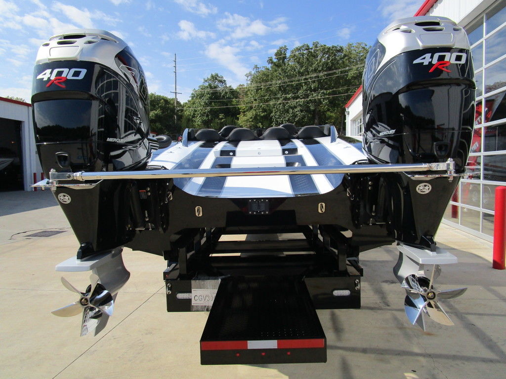 2019 Wright Performance 360 powered by twin Mercury Racing 400R Verado outboards with 50 hours. Mercury CNC 5 blade cleaver props, Garmin 8622 (22” display), Mercury DTS(digital throttle/shift), (2)Vessel View 702, Fusion/JL Audio sound system with (6) 7.7 JL Audio components, JL Audio Subwoofer, Isotta steering wheel, Sea Deck flooring, Alcantara suede custom interior, custom dash panels, dual helm, LED navigation lights, underwater lights, billet jack plates, (3) AGM batteries with dash board remotes, on-board charger, cockpit cover, and Myco painted aluminum trailer with LED lights, Mag wheels, and surge brakes. Boat runs 120+ mph as equipped, all included and STANDARD EQUIPMENT.