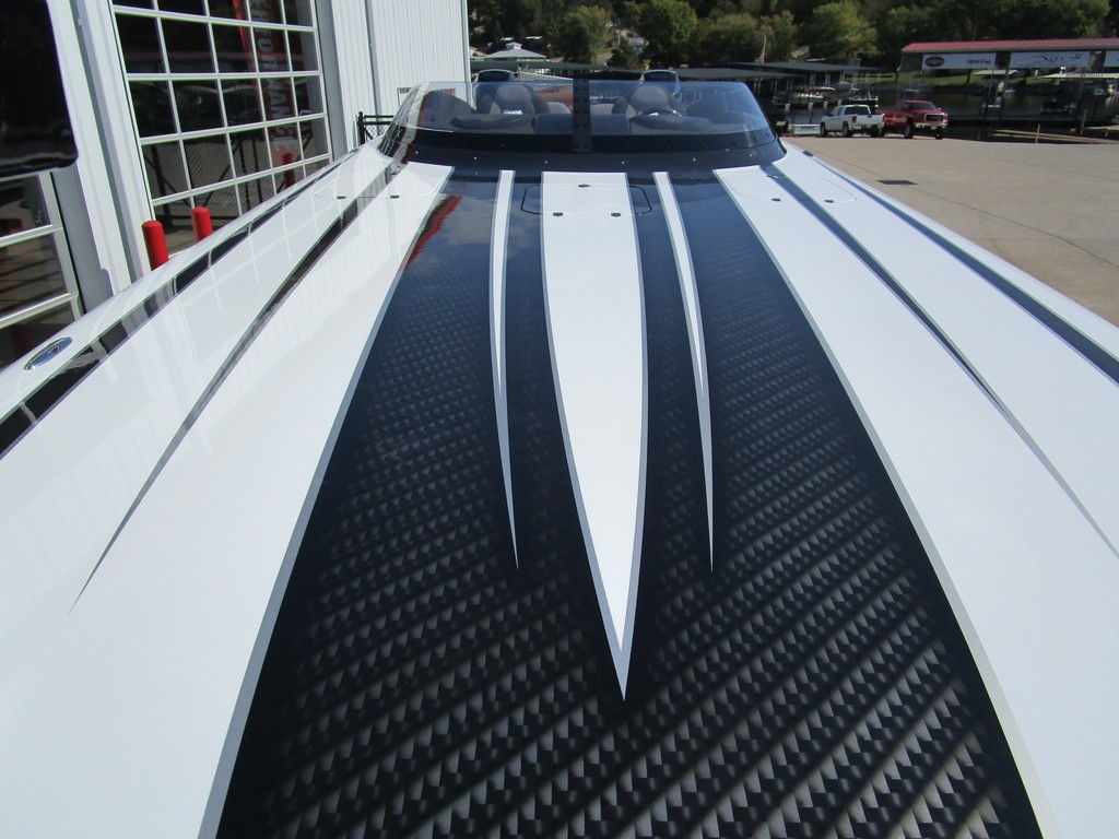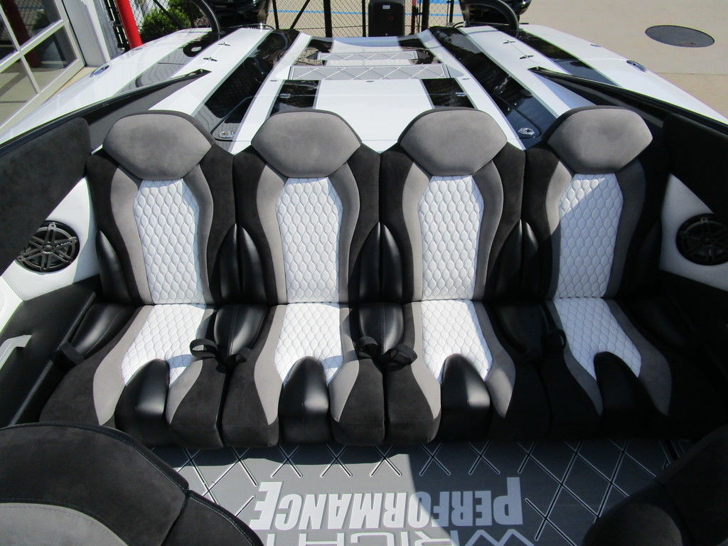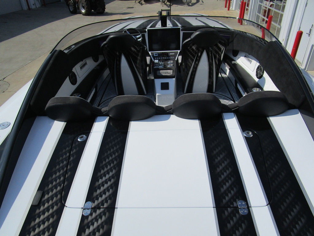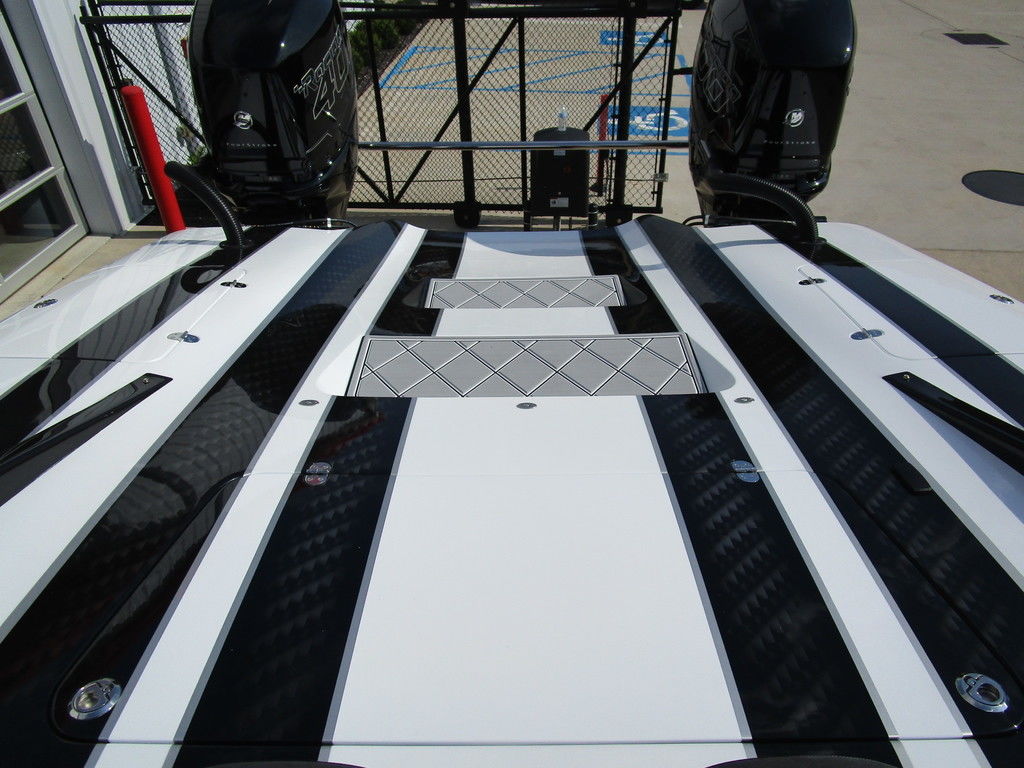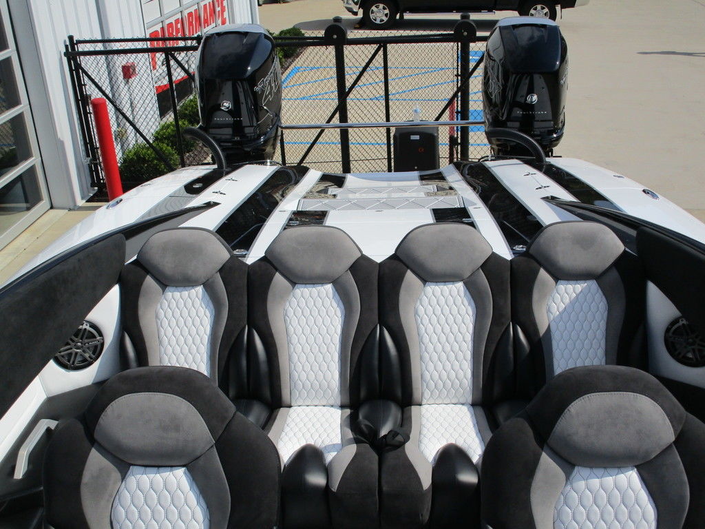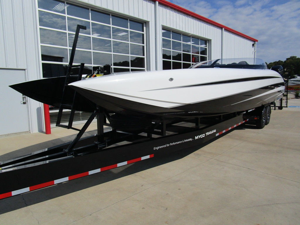 2019 Wright Performance 360 powered by twin Mercury Racing 400R Verado outboards with 50 hours. Mercury CNC 5 blade cleaver props, Garmin 8622 (22” display), Mercury DTS(digital throttle/shift), (2)Vessel View 702, Fusion/JL Audio sound system with (6) 7.7 JL Audio components, JL Audio Subwoofer, Isotta steering wheel, Sea Deck flooring, Alcantara suede custom interior, custom dash panels, dual helm, LED navigation lights, underwater lights, billet jack plates, (3) AGM batteries with dash board remotes, on-board charger, cockpit cover, and Myco painted aluminum trailer with LED lights, Mag wheels, and surge brakes. Boat runs 120+ mph as equipped, all included and STANDARD EQUIPMENT.