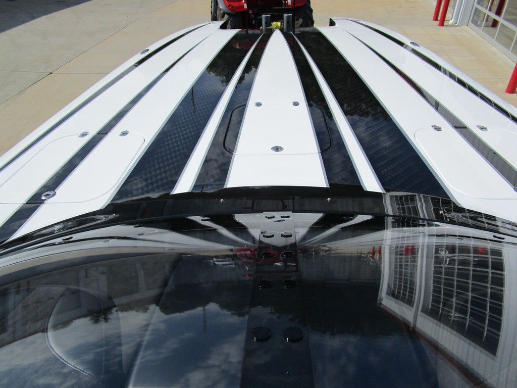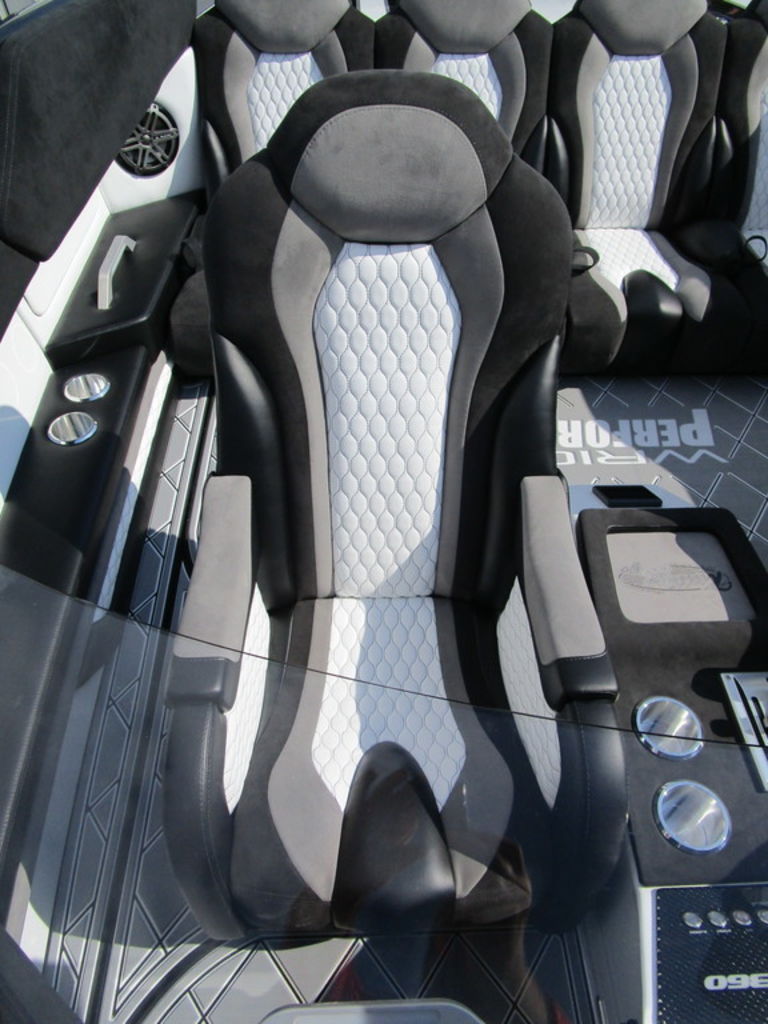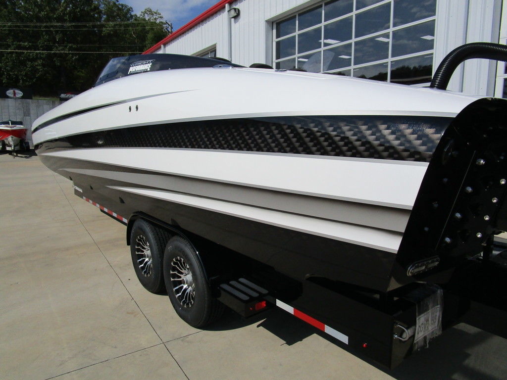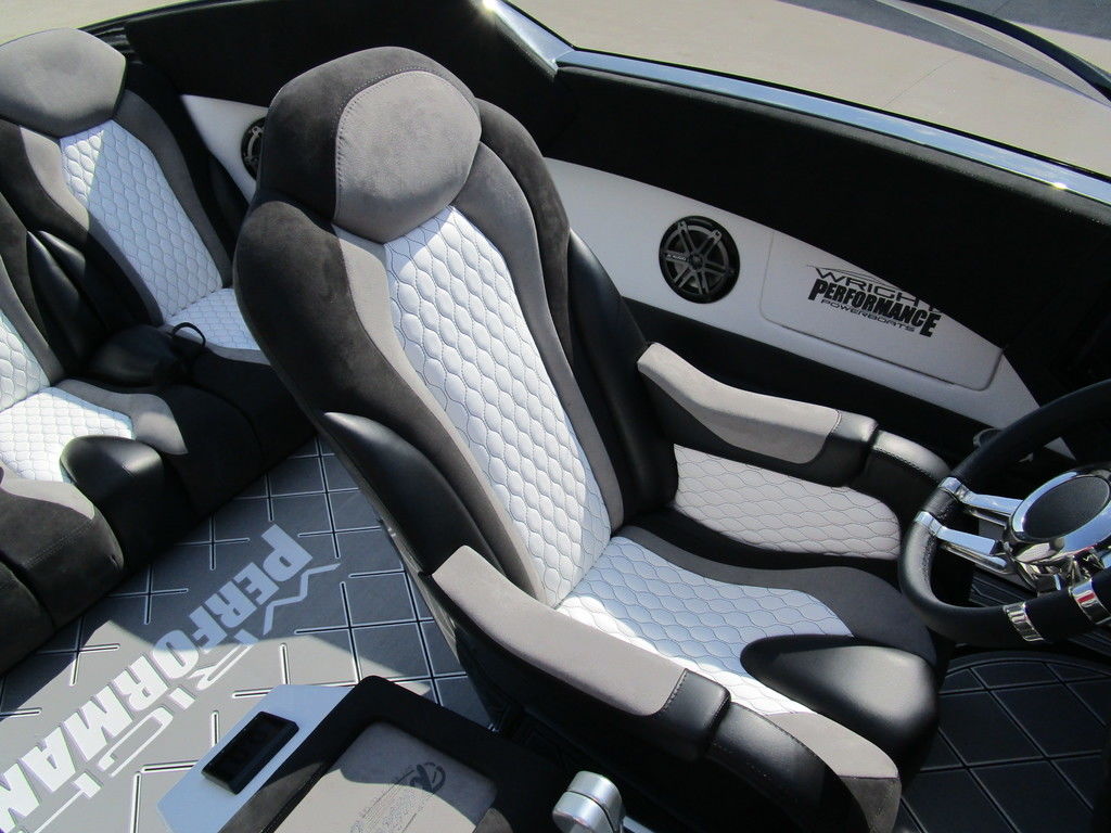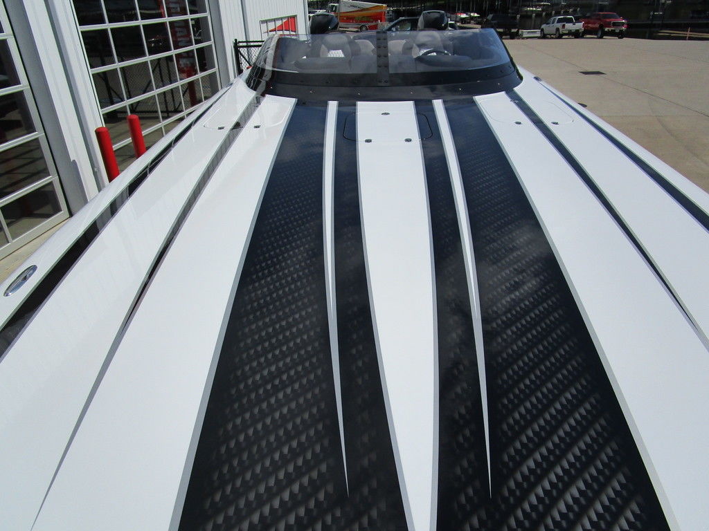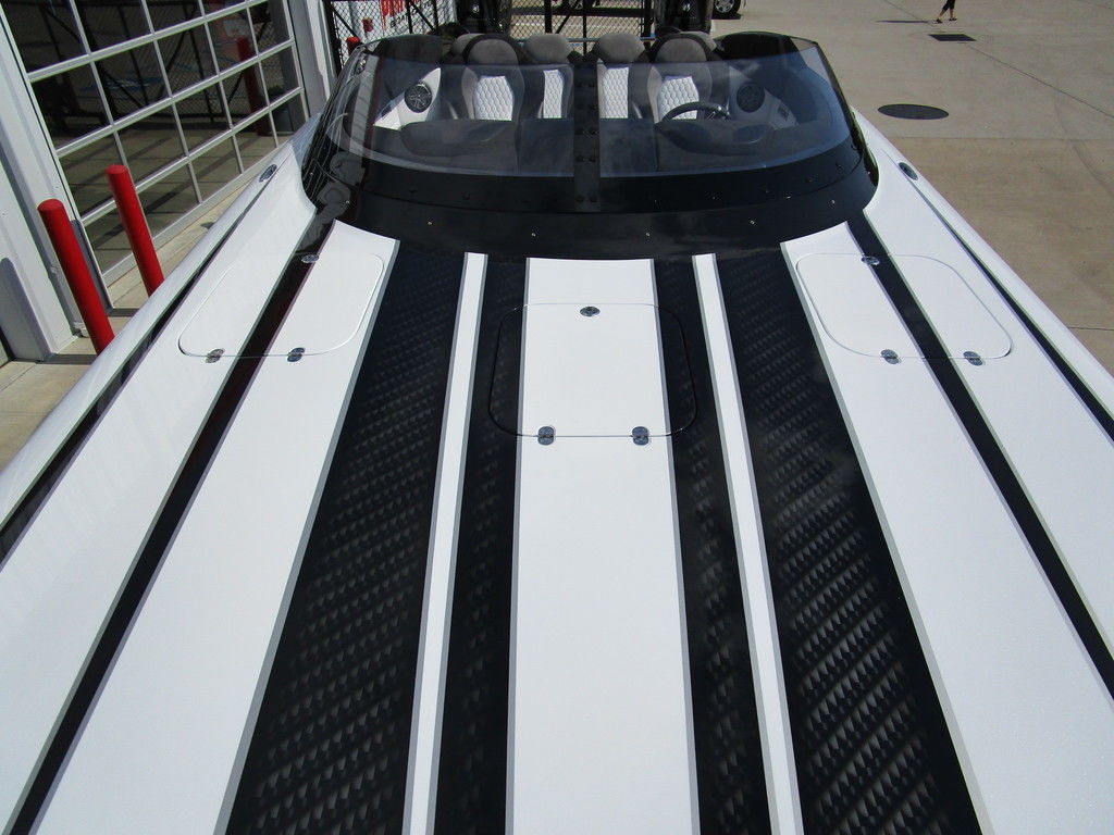 2019 Wright Performance 360 powered by twin Mercury Racing 400R Verado outboards with 50 hours. Mercury CNC 5 blade cleaver props, Garmin 8622 (22” display), Mercury DTS(digital throttle/shift), (2)Vessel View 702, Fusion/JL Audio sound system with (6) 7.7 JL Audio components, JL Audio Subwoofer, Isotta steering wheel, Sea Deck flooring, Alcantara suede custom interior, custom dash panels, dual helm, LED navigation lights, underwater lights, billet jack plates, (3) AGM batteries with dash board remotes, on-board charger, cockpit cover, and Myco painted aluminum trailer with LED lights, Mag wheels, and surge brakes. Boat runs 120+ mph as equipped, all included and STANDARD EQUIPMENT.