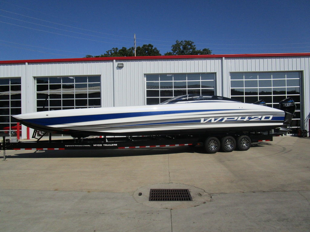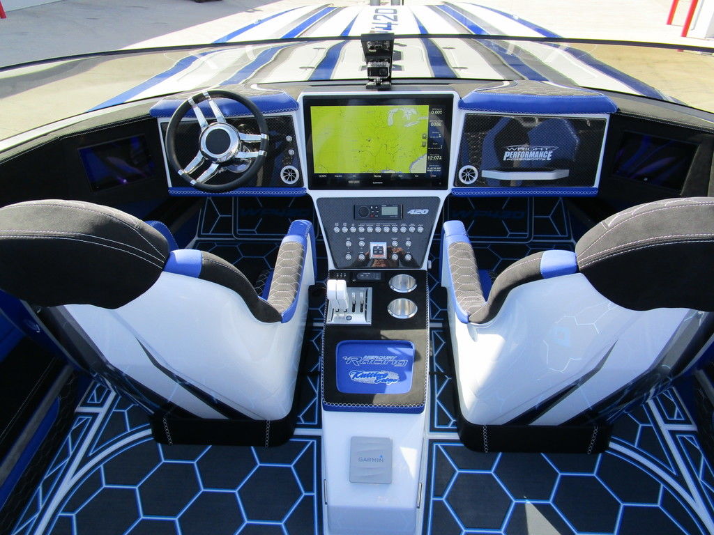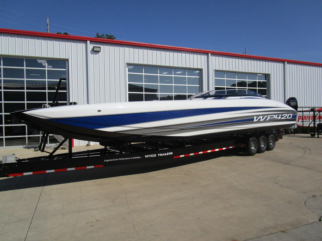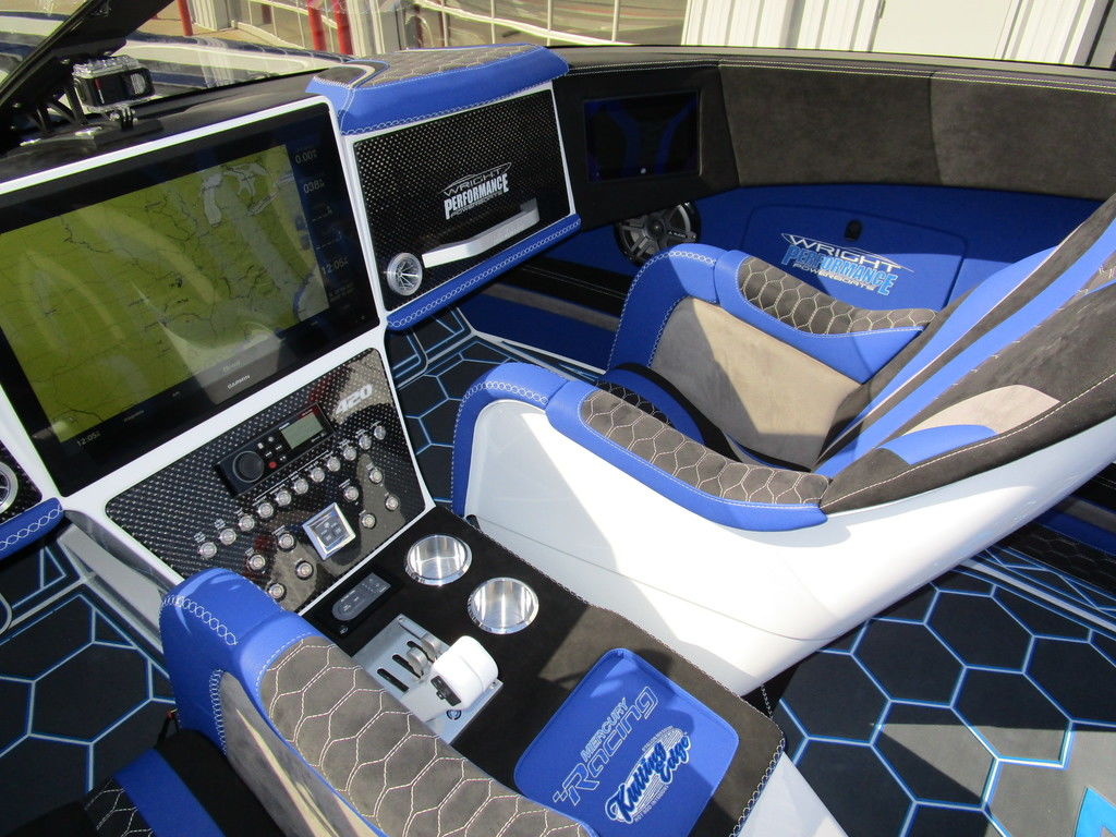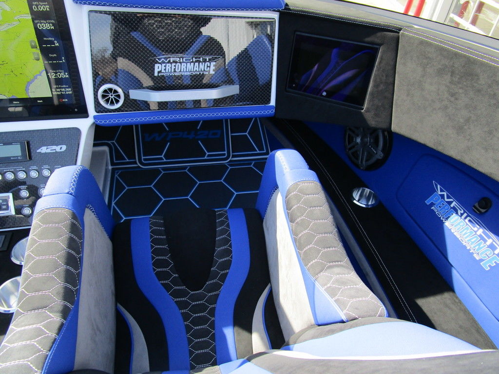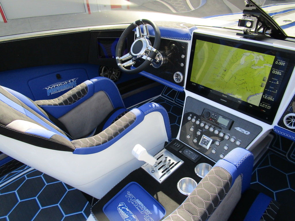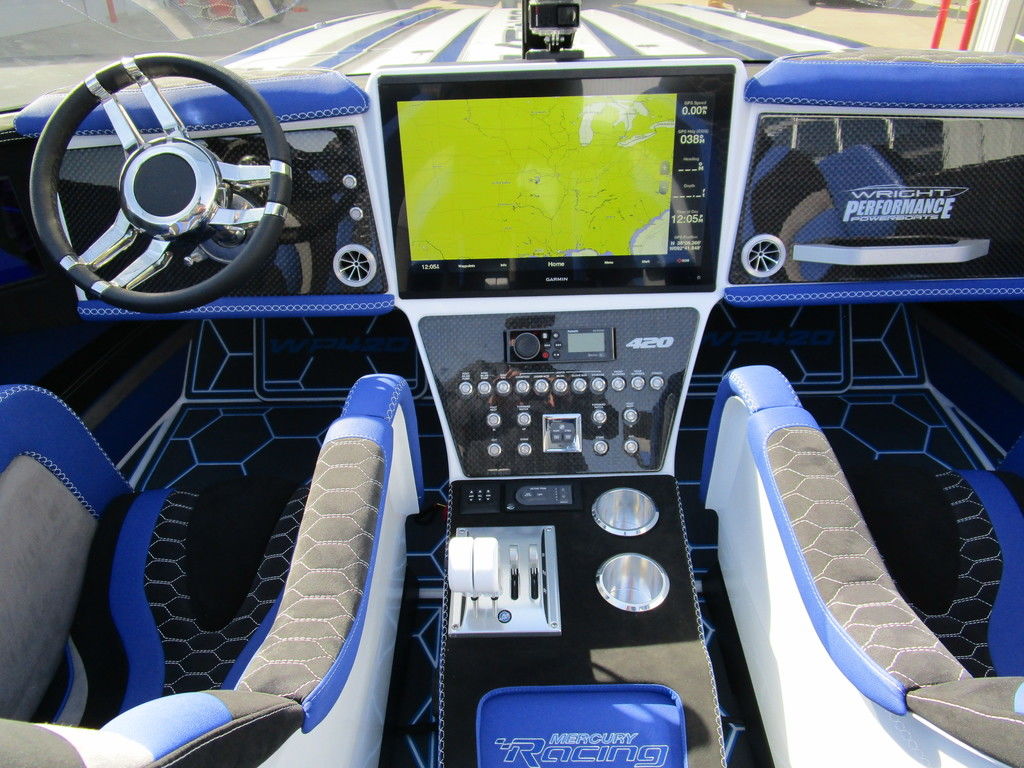 2019 Wright Performance 420 powered by Mercury Racing 450s with 48 hours, Garmin 8622 22" Display (centered in dash), Garmin display for the back of console,Custom Paint by Performance, Flir night vision, power deck hatches, power footrests, multi-directional power seats. Stainless Wing Plates for steering , Stainless Tie bar, High-drive Power steering pump, Tilt steering, Billet Jack Plates, Mercury CNC 5 blade cleaver props, Isotta Steering Wheel, Cockpit Cover, Sea Dek Flooring, DTS Throttles and shifters, dual Vessel View 903, Three button trim, 3 AGM batteries w/remote switch in side compartment , 3 bank On board charger, LED Nav and cockpit lighting, Shadow Caster underwater lights, cockpit and bilge lights, Pop up cleats (6) 8inch, Cup holders (4), Illuminated Billet Cockpit handles (with Wright Performance logo), Fusion head unit, JL Audio Multi-channel AMP, 6x7.7 JL Audio components, JL Audio Sub and box,, Custom dash panels, Fire extinguisher, Cockpit blower vents (2), MYCO Trailer with LED lights, Elec/hyd brakes, and Mag Wheels included.