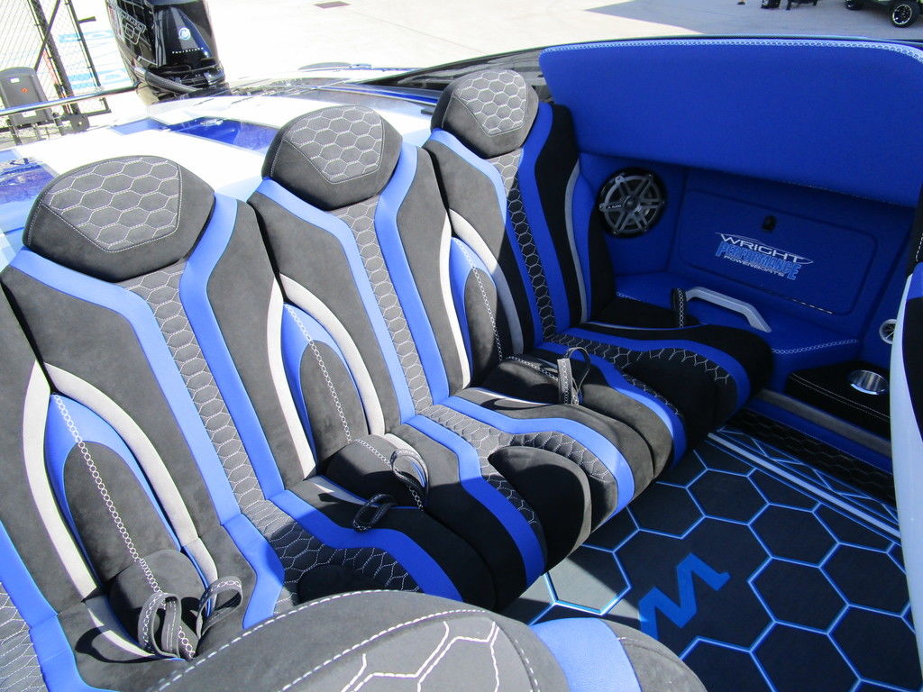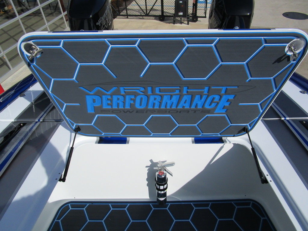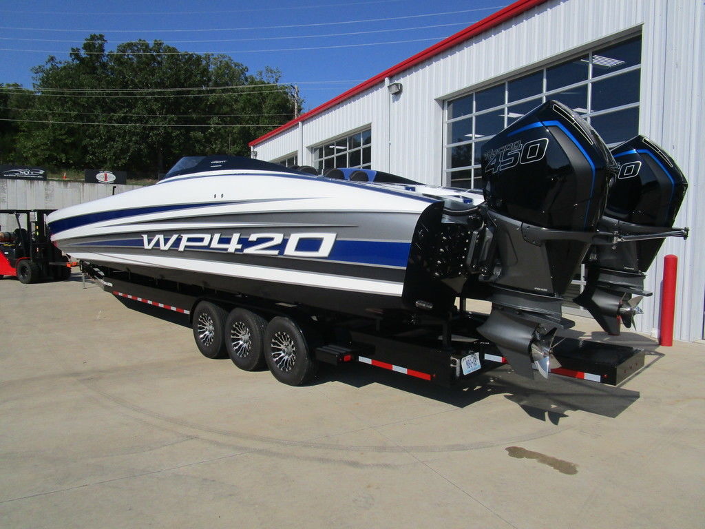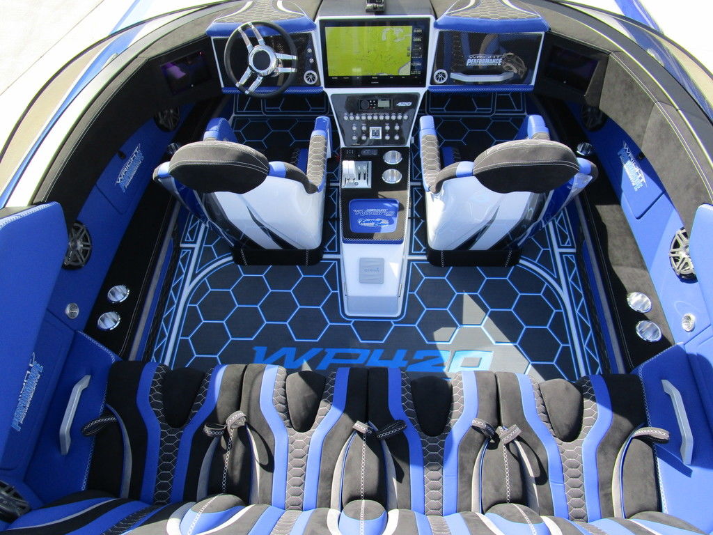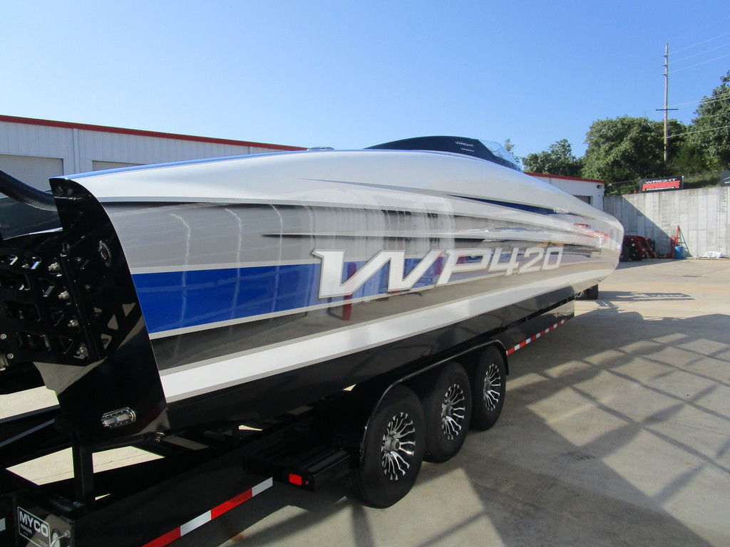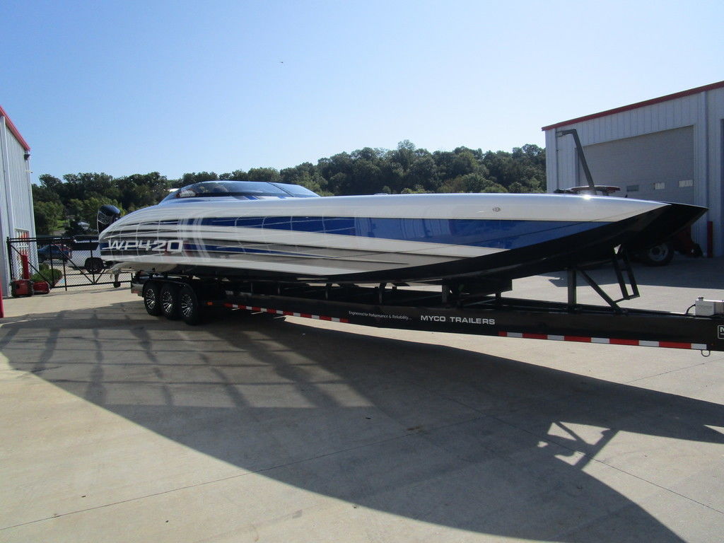 2019 Wright Performance 420 powered by Mercury Racing 450s with 48 hours, Garmin 8622 22" Display (centered in dash), Garmin display for the back of console,Custom Paint by Performance, Flir night vision, power deck hatches, power footrests, multi-directional power seats. Stainless Wing Plates for steering , Stainless Tie bar, High-drive Power steering pump, Tilt steering, Billet Jack Plates, Mercury CNC 5 blade cleaver props, Isotta Steering Wheel, Cockpit Cover, Sea Dek Flooring, DTS Throttles and shifters, dual Vessel View 903, Three button trim, 3 AGM batteries w/remote switch in side compartment , 3 bank On board charger, LED Nav and cockpit lighting, Shadow Caster underwater lights, cockpit and bilge lights, Pop up cleats (6) 8inch, Cup holders (4), Illuminated Billet Cockpit handles (with Wright Performance logo), Fusion head unit, JL Audio Multi-channel AMP, 6x7.7 JL Audio components, JL Audio Sub and box,, Custom dash panels, Fire extinguisher, Cockpit blower vents (2), MYCO Trailer with LED lights, Elec/hyd brakes, and Mag Wheels included.