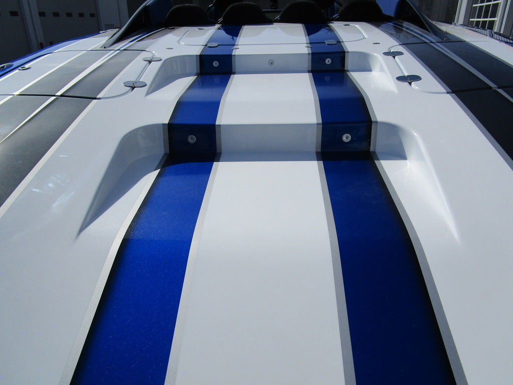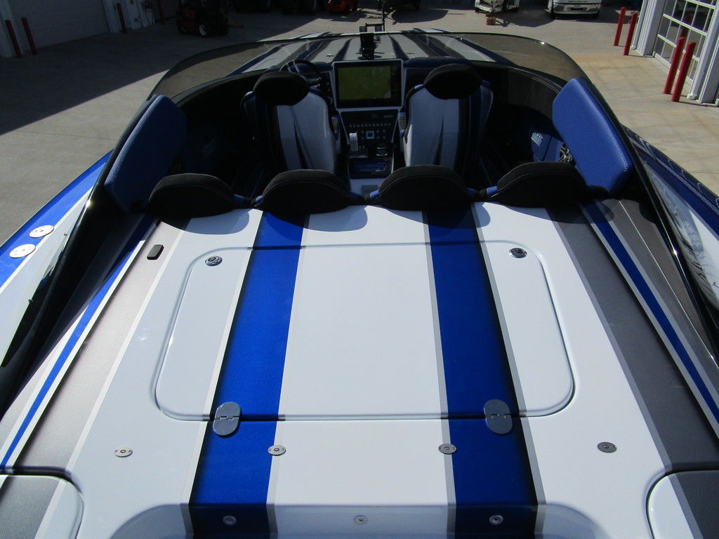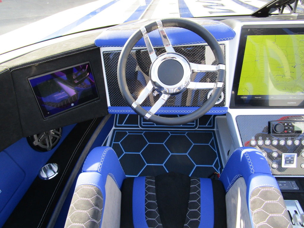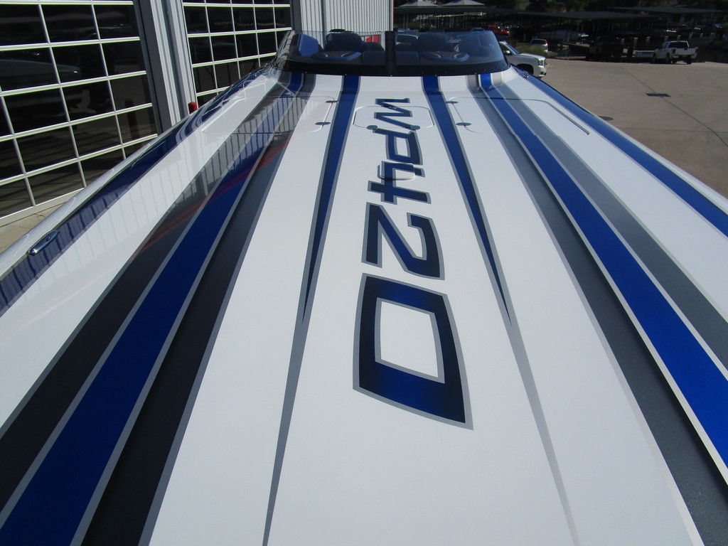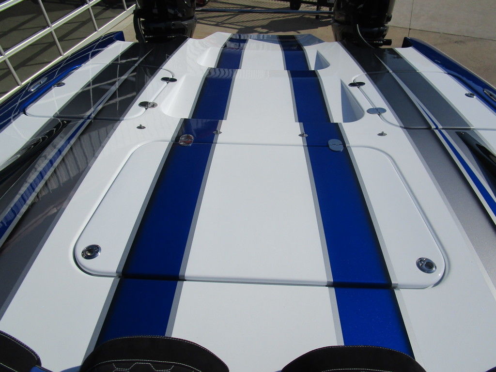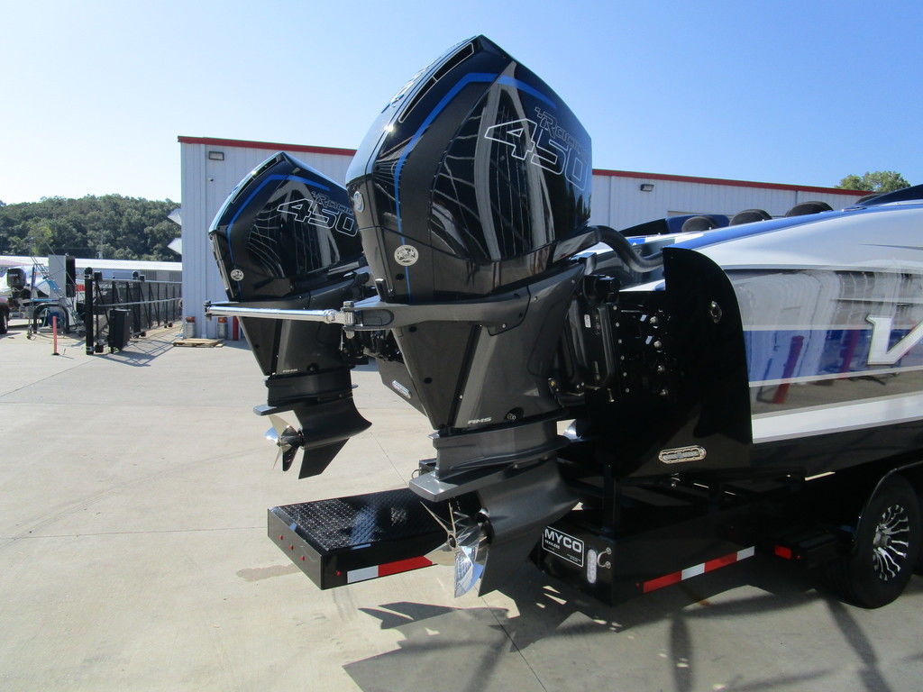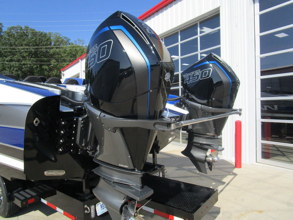 2019 Wright Performance 420 powered by Mercury Racing 450s with 48 hours, Garmin 8622 22" Display (centered in dash), Garmin display for the back of console,Custom Paint by Performance, Flir night vision, power deck hatches, power footrests, multi-directional power seats. Stainless Wing Plates for steering , Stainless Tie bar, High-drive Power steering pump, Tilt steering, Billet Jack Plates, Mercury CNC 5 blade cleaver props, Isotta Steering Wheel, Cockpit Cover, Sea Dek Flooring, DTS Throttles and shifters, dual Vessel View 903, Three button trim, 3 AGM batteries w/remote switch in side compartment , 3 bank On board charger, LED Nav and cockpit lighting, Shadow Caster underwater lights, cockpit and bilge lights, Pop up cleats (6) 8inch, Cup holders (4), Illuminated Billet Cockpit handles (with Wright Performance logo), Fusion head unit, JL Audio Multi-channel AMP, 6x7.7 JL Audio components, JL Audio Sub and box,, Custom dash panels, Fire extinguisher, Cockpit blower vents (2), MYCO Trailer with LED lights, Elec/hyd brakes, and Mag Wheels included.