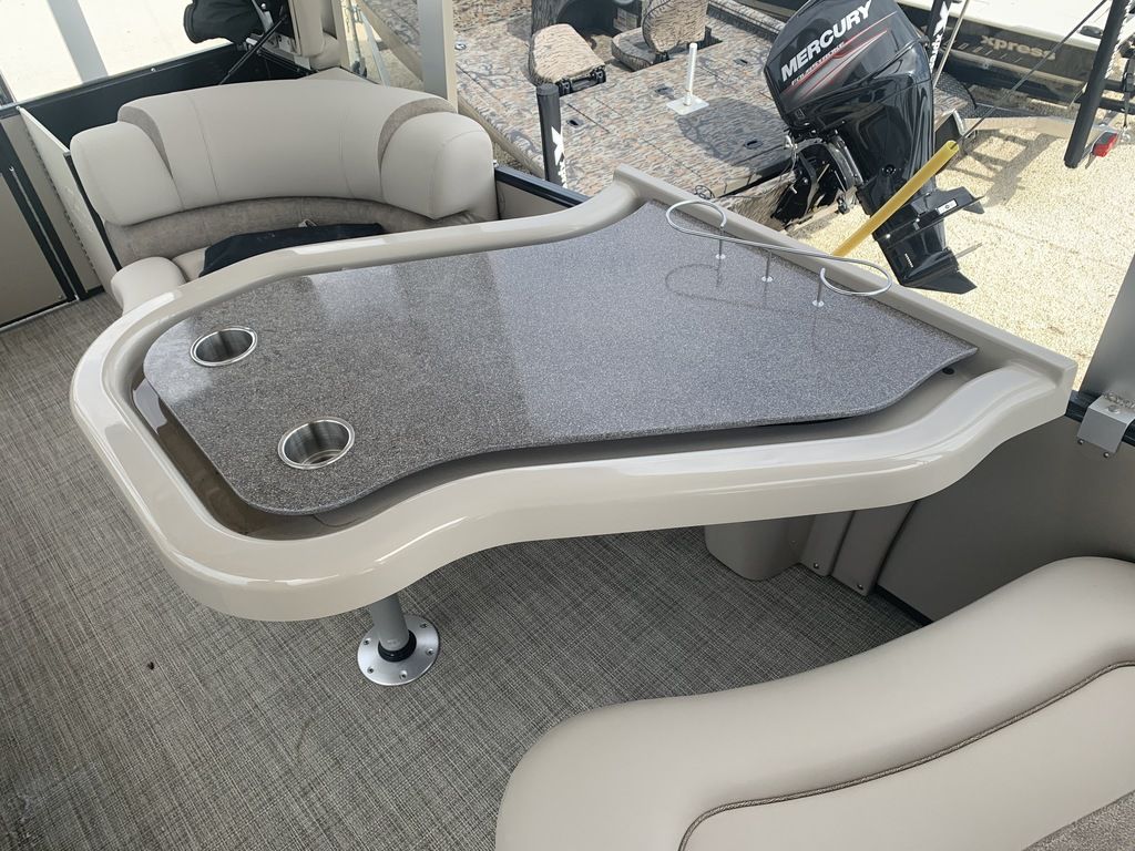 The Entertainer Funship feature a bistro bar table with booth seating. With two bow benches and rear sundeck.