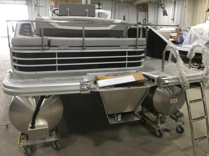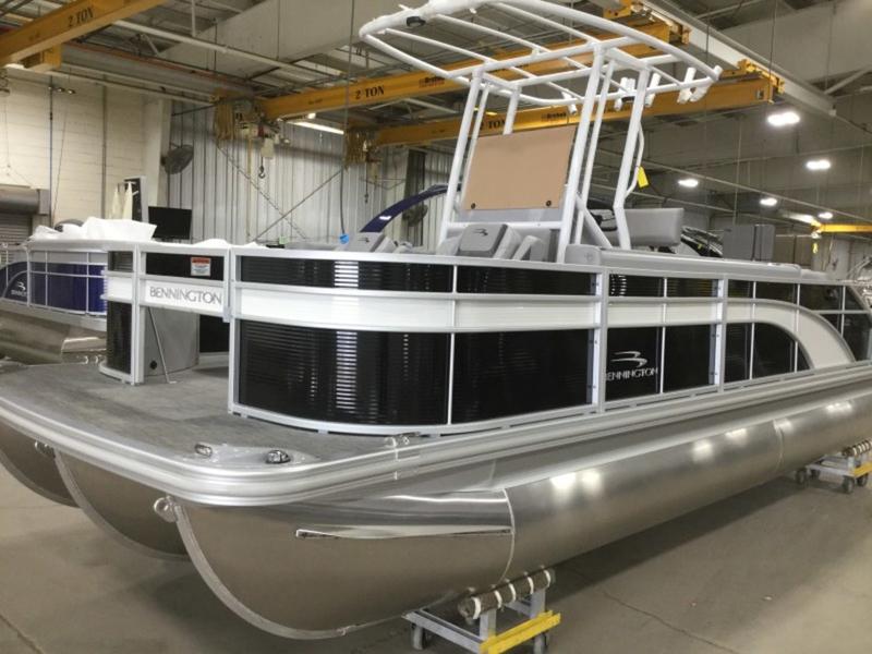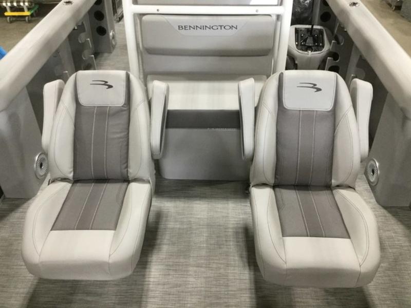 This is so new the system we use doesn't even have the model info in her to generate. So we will throw some info out to you. This boat features all of the normal warranty excellence you expect when purchasing a Bennington. This tritoon is specifically set up to be a fishing machine! with the center console design and multiple rod holders is fishing friendly comes with the swing back lounge area that can be moved to add a single seat for fishing from the stern. It also has 2 captains chairs up front along with padding fishing areas on either side and plenty of drink holders for everyone! Come take a look this won't last long!!