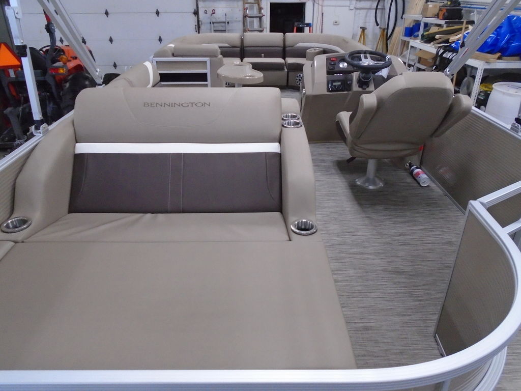 Bennington new 2020 23 SSLX with SPS triple tube package and 200 hp Suzuki 4-stroke INCLUDED!! platinum vinyl, platinum woven vinyl flooring, Striker 4 fish/depth finder, lighted Kicker speakers, Bow gate filler seat,2-portable cup holders, SX high back reclining helm seat, extended aft and bow decks, POWER ASSIST STEERING!, battery on/off switch, docking lights, changing room w/ privacy curtain, heavy duty rub rail, heavy duty ski tow bar, Bimini top and full mooring cover.