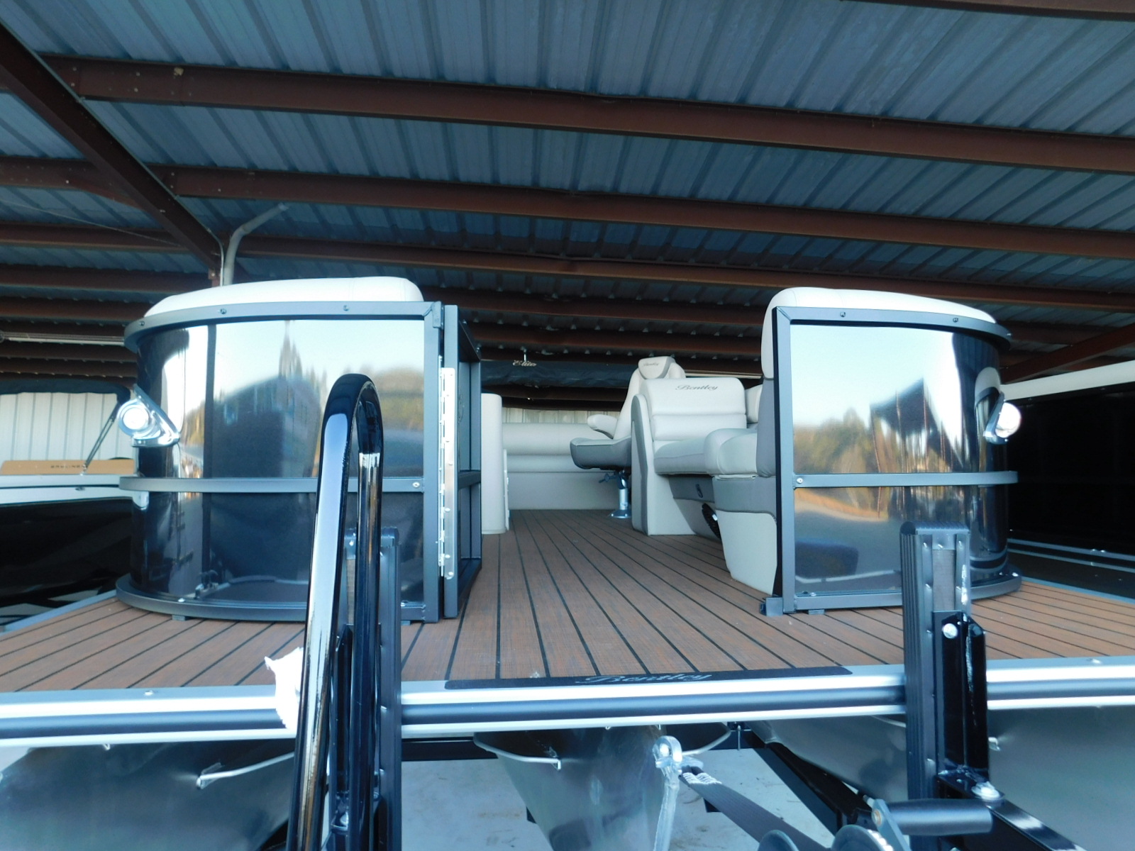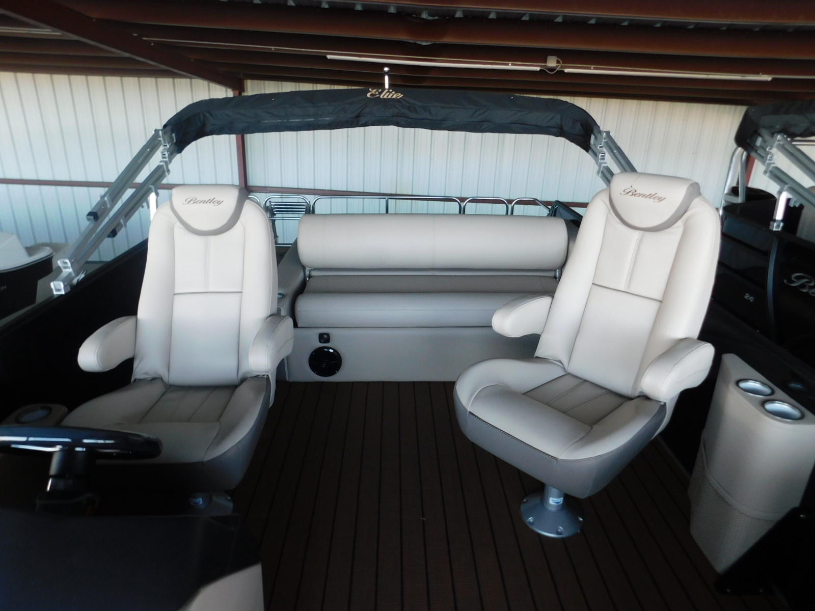 2021 Bentley 253 Swingback Elite powered by a 200 Suzuki. Features include LED Interior lighting, ski tow bar, teak flooring, hardwood steering wheel, and stainless steel ladder. Trailer not included in price. Financing Available with 10% down. Max HP: 250 hp