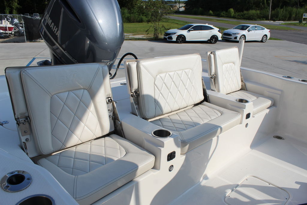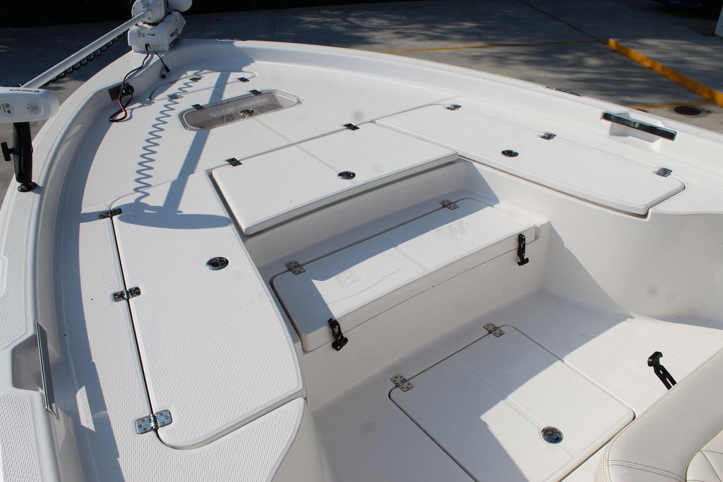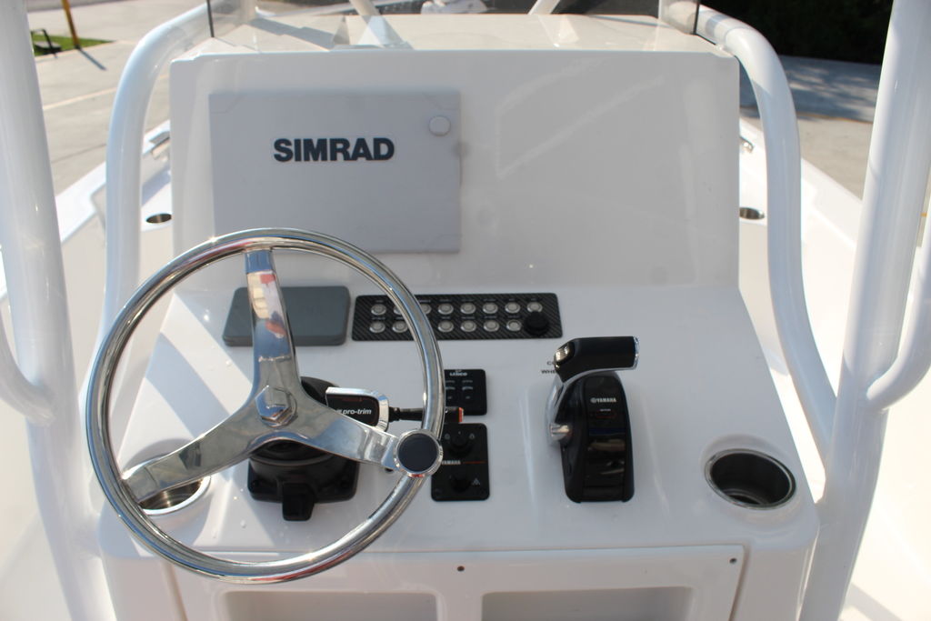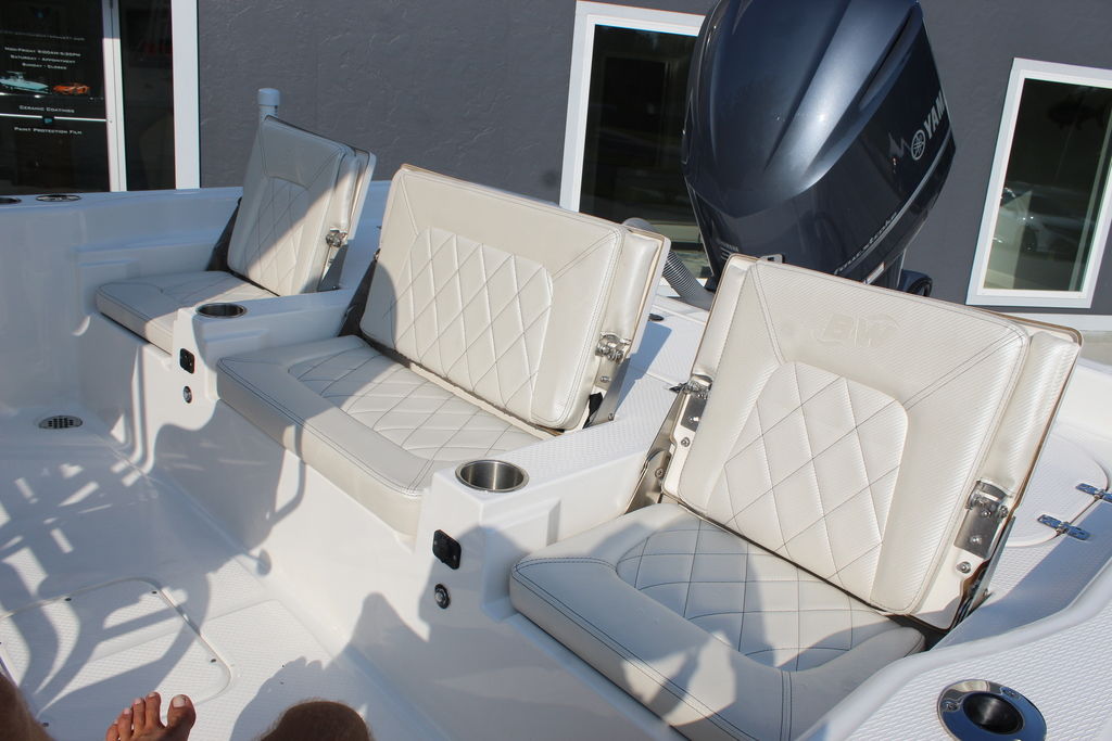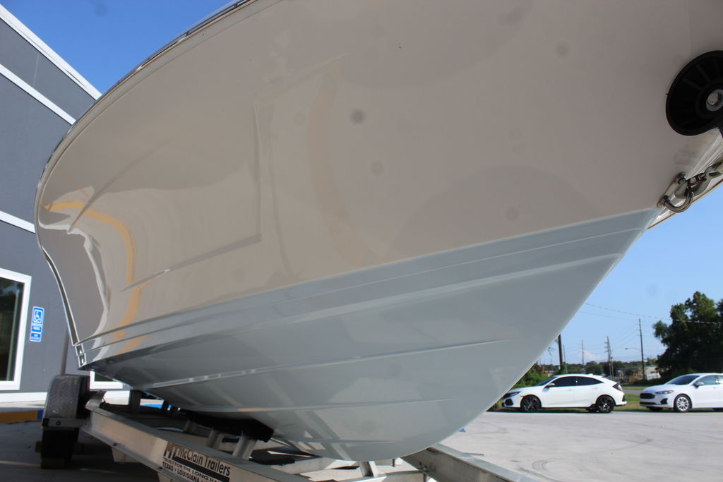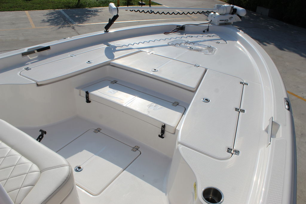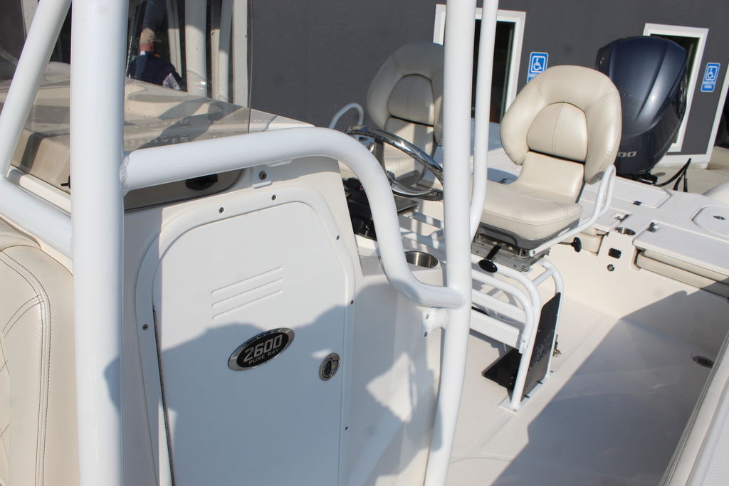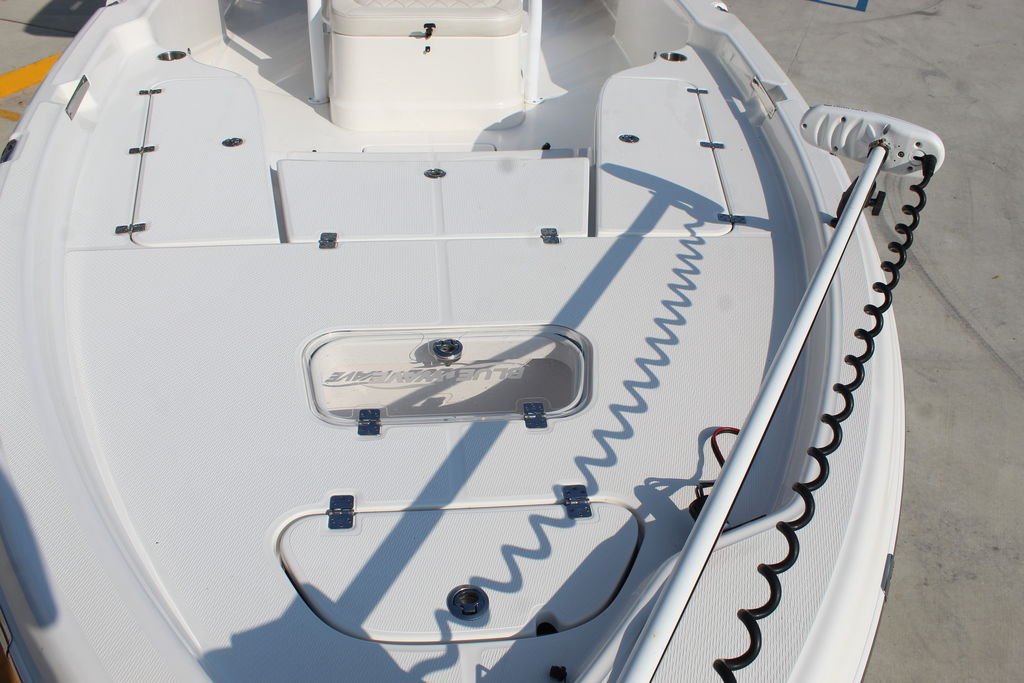 This 2600 Pure Bay is in excellent showroom condition with only 40 original hours on the motor and warranty through 2025. She has always been kept indoors since purchased new. The 3 live wells in the boat make getting bait a breeze. The 9'1" Beam makes the boat feel even bigger than it is. The Yamaha F300 paired with the stepped hull from blue wave pushes this boat to speeds of 56 mph. This 2600 Pure Bay is loaded with options that will be listed below.