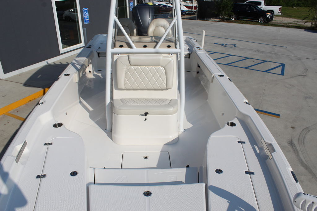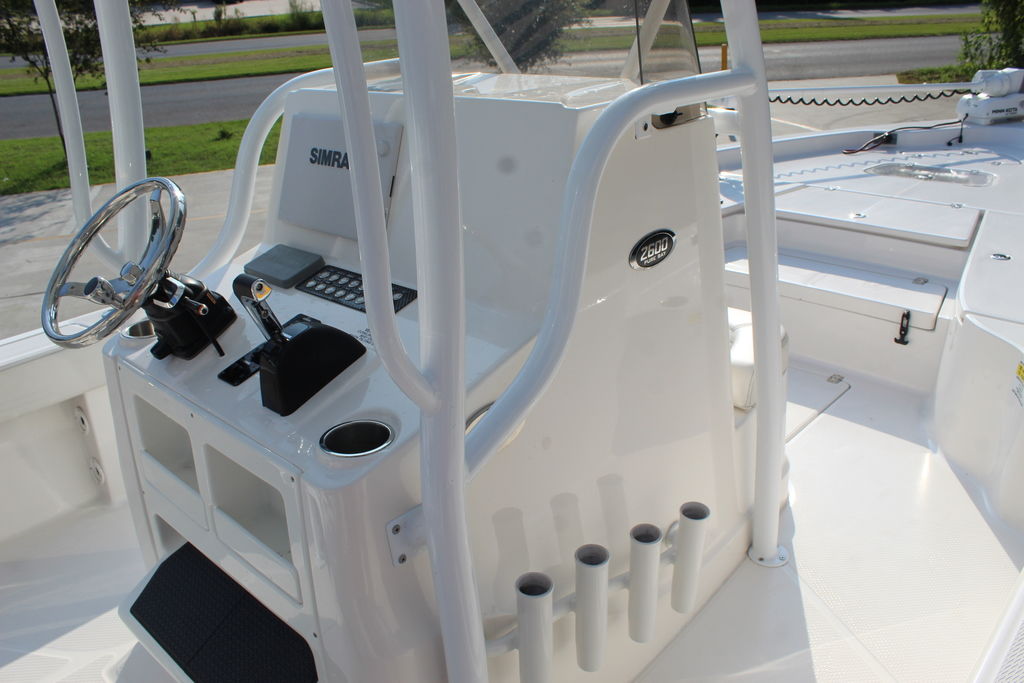 2600 Pure Bay features a double-stepped hull that is reinforced with Kevlar. Sporting an impressive 26ft 2in LOA this boat offers up serious space for fishing that converts to a stable and comfortable family cruiser thanks to third row seating that runs the width of the impressive beam.