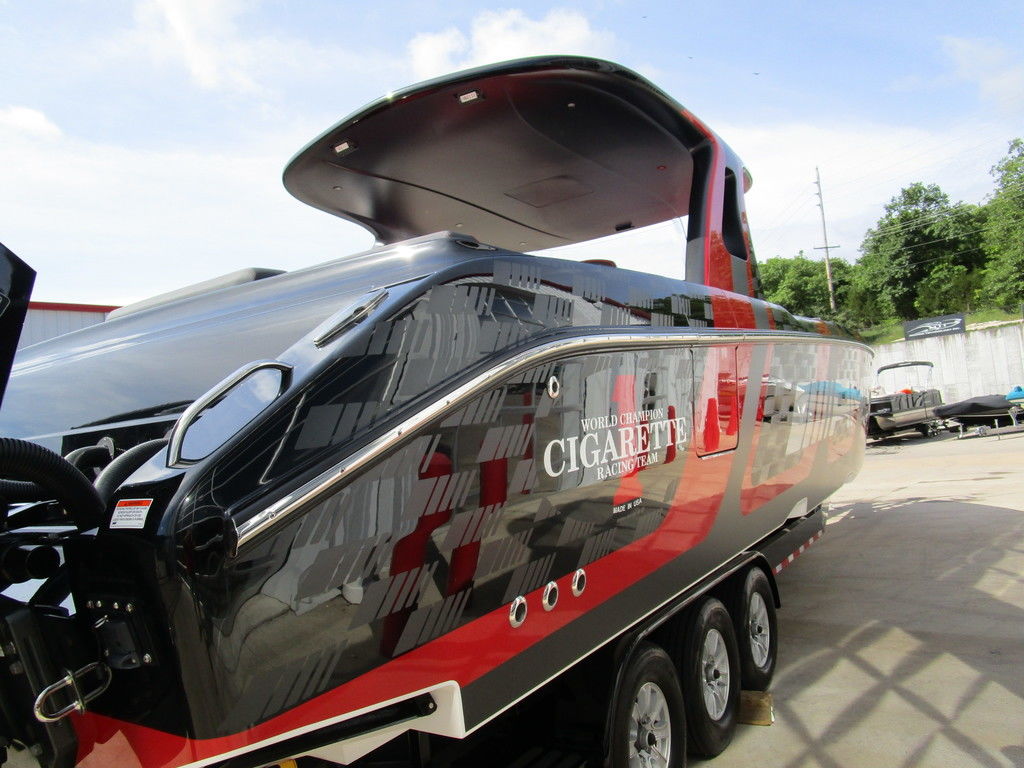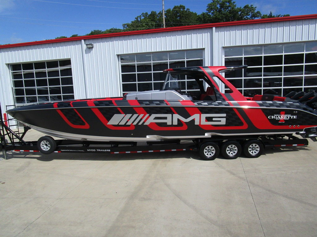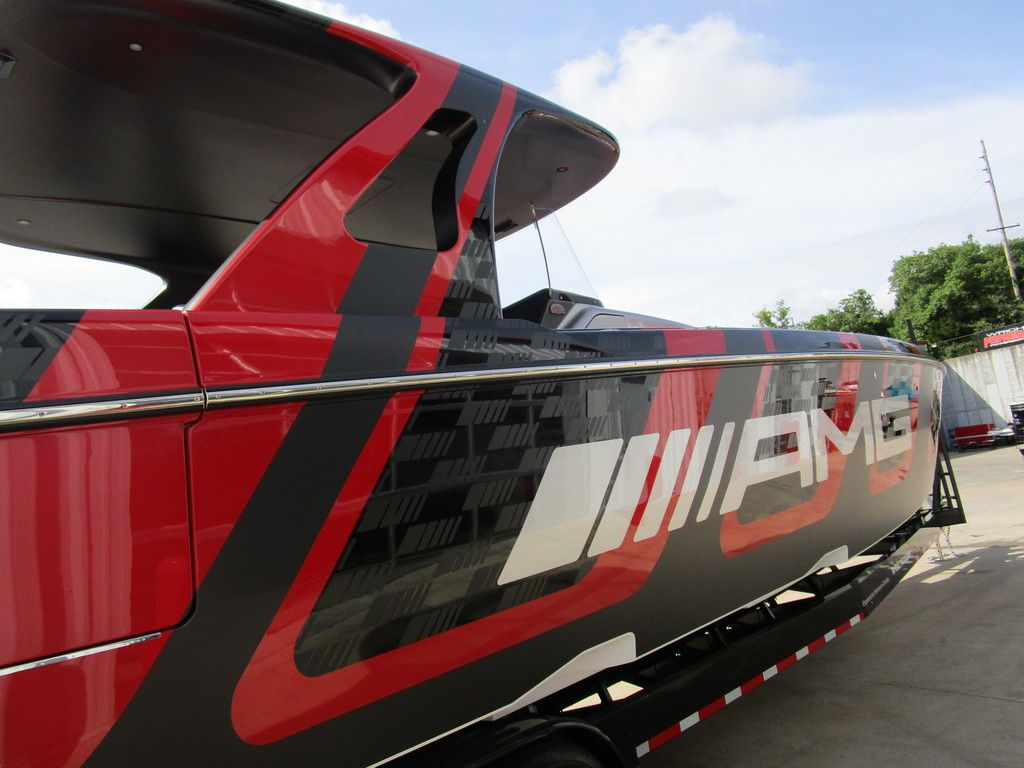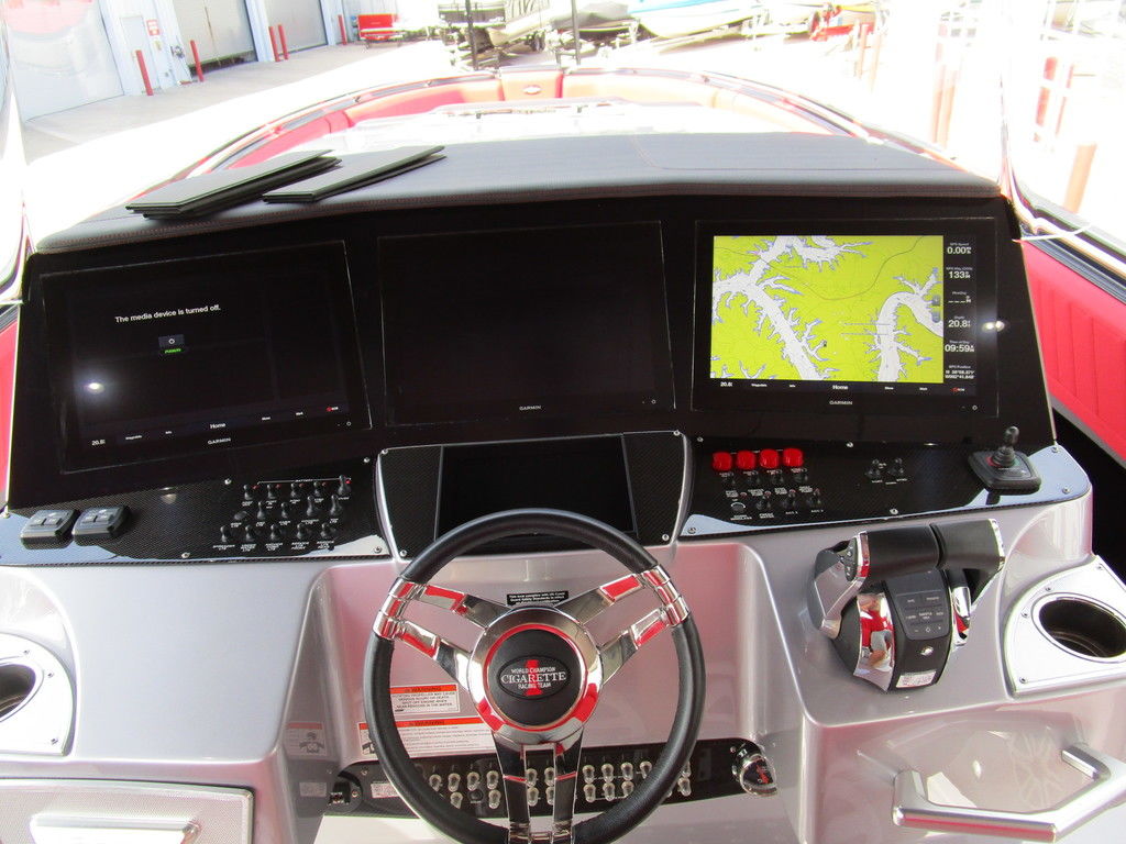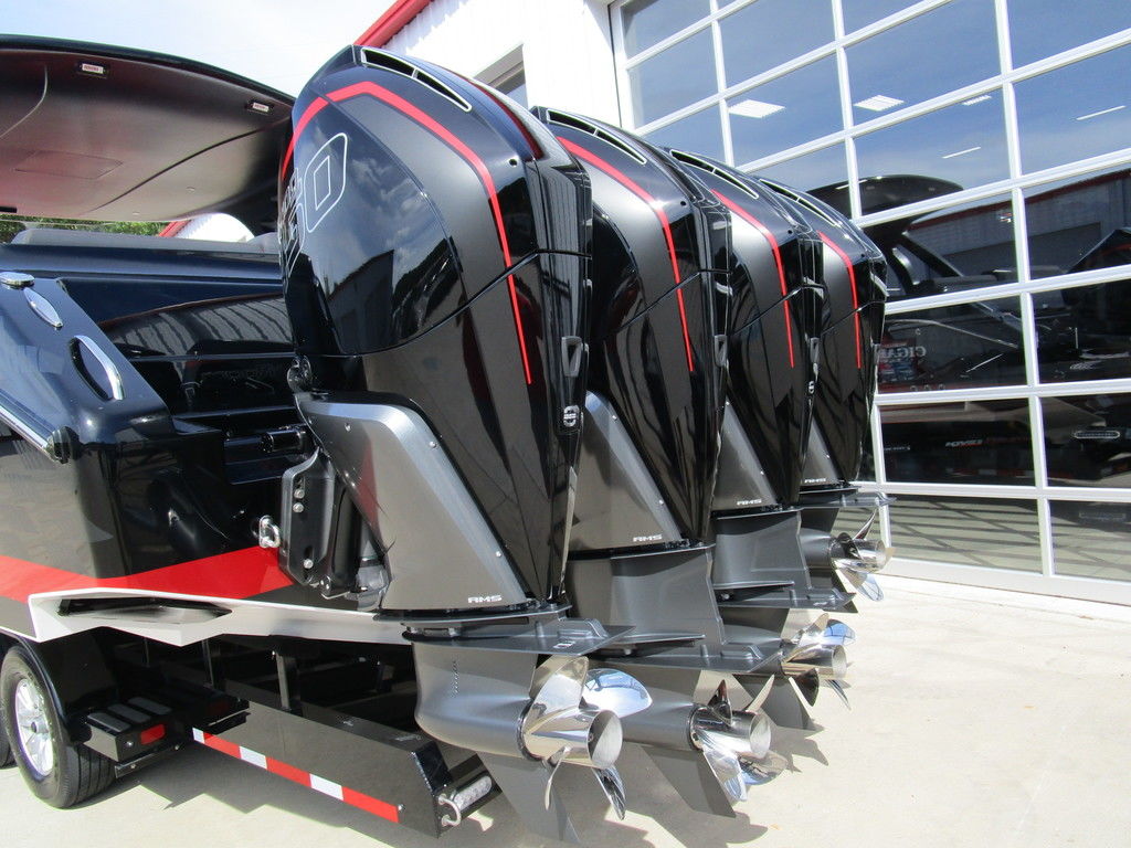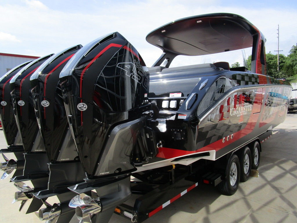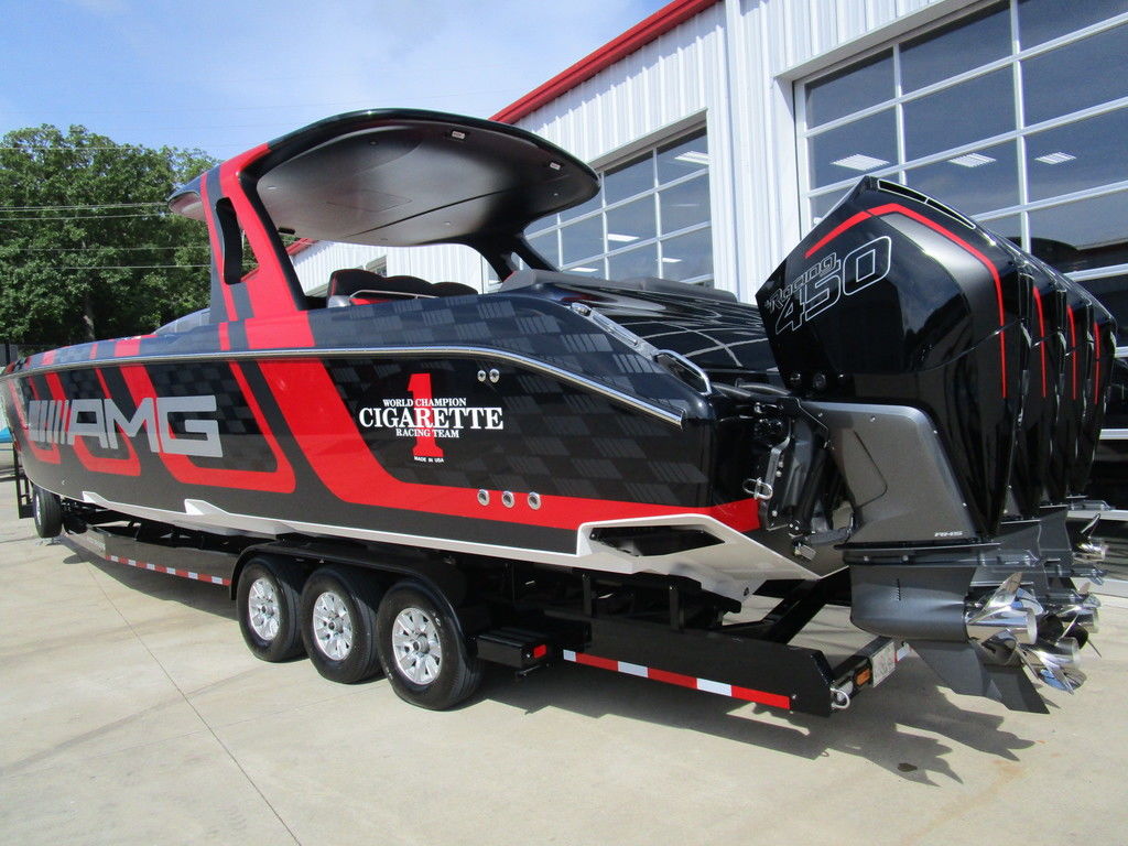 2020 Cigarette 41 AMG Carbon Edition powered by 4 Mercury Racing 450Rs with 100 hours(100 hour service just done), Underwater LED lights, Dive door with ladder, JL Audio Pure Audio upgrade with bow remote, Upgraded paint, reserve interior upgrade, Cigarette cool touch fabric, (3) 18" Garmin GPS, Garmin VHF radio, Bow Thruster, Vesselview 9, DTS throttles and shifters, Wind doors, rear boarding ladder, shore power, onboard charger, Vacuflush toilet, and cabin sink.