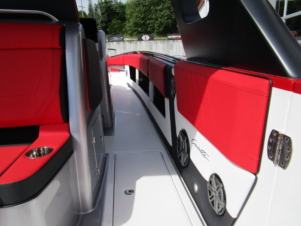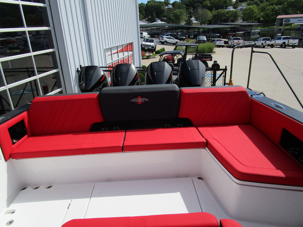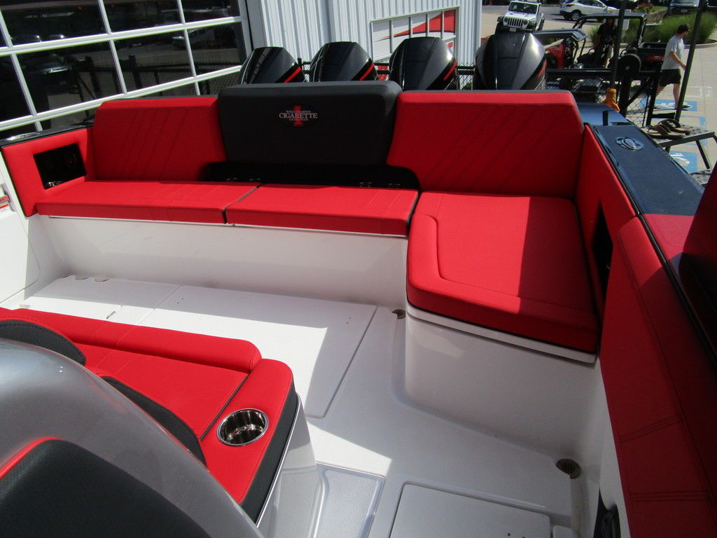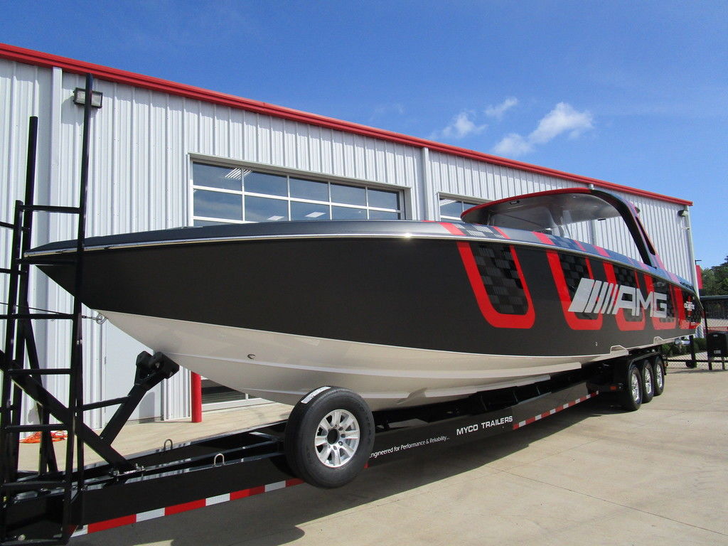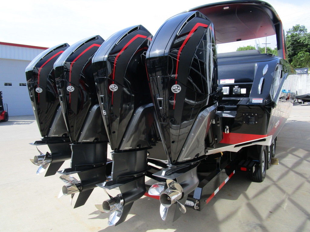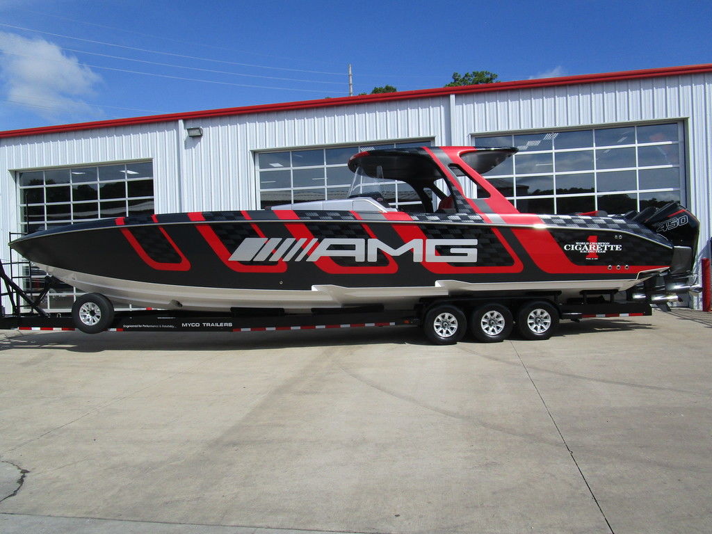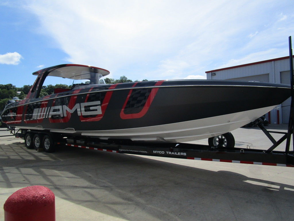 2020 Cigarette 41 AMG Carbon Edition powered by 4 Mercury Racing 450Rs with 100 hours(100 hour service just done), Underwater LED lights, Dive door with ladder, JL Audio Pure Audio upgrade with bow remote, Upgraded paint, reserve interior upgrade, Cigarette cool touch fabric, (3) 18" Garmin GPS, Garmin VHF radio, Bow Thruster, Vesselview 9, DTS throttles and shifters, Wind doors, rear boarding ladder, shore power, onboard charger, Vacuflush toilet, and cabin sink.