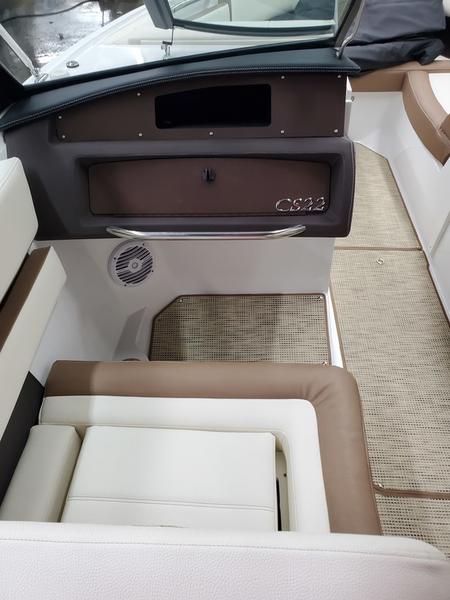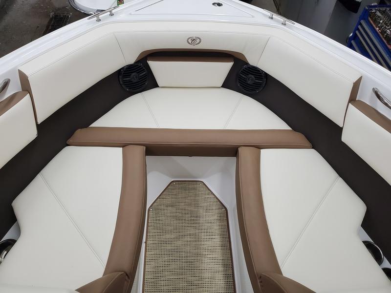 Built for those who don’t want to compromise luxury or performance, the CS22 is a model of efficient design. The detailed interior includes a wide interior beam, a walk-thru transom, Cobalt-branded coaming pads, colored stitching details and digital helm instrumentation. But perhaps best of all? A JL Audio six-speaker sound system with Bluetooth capability.