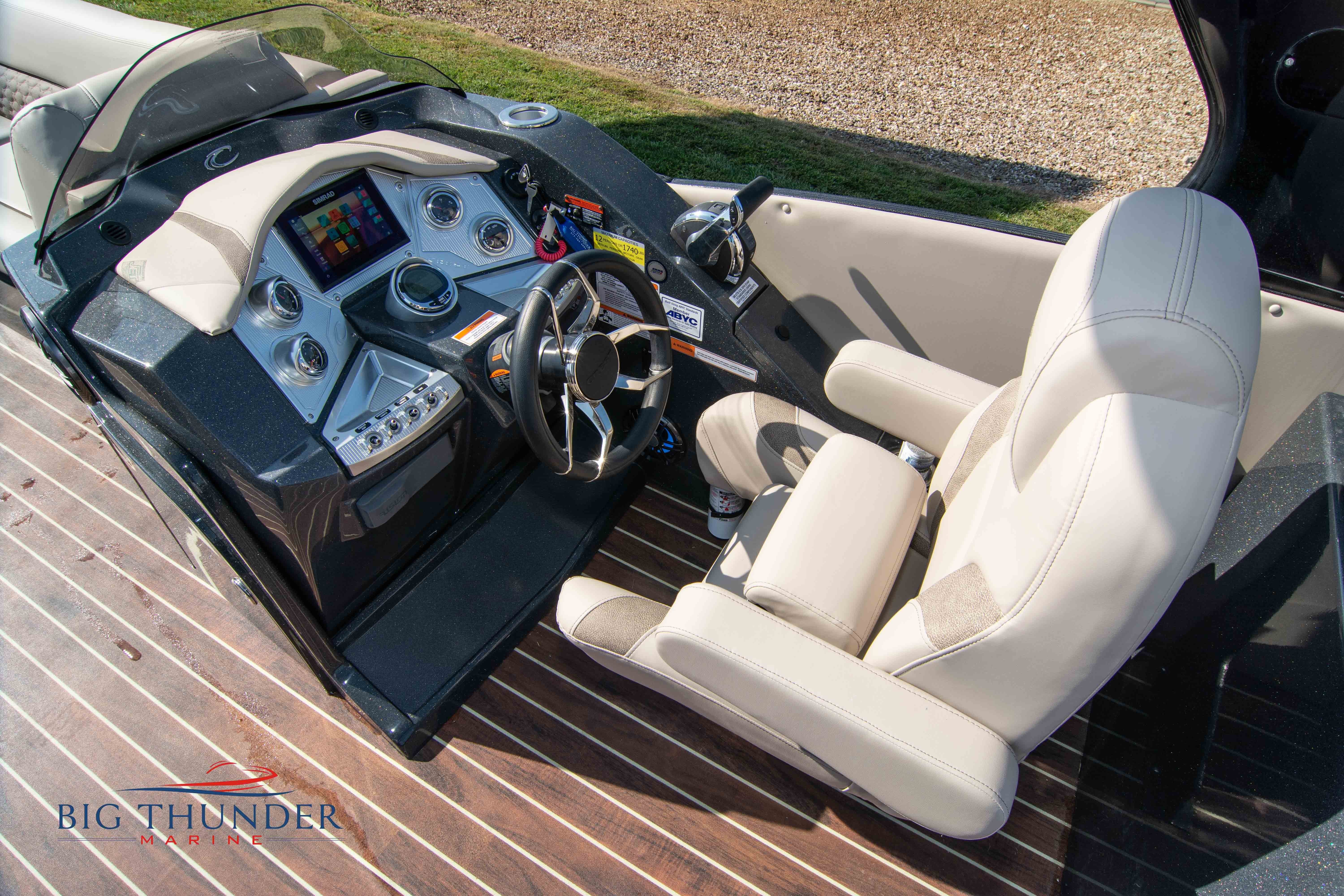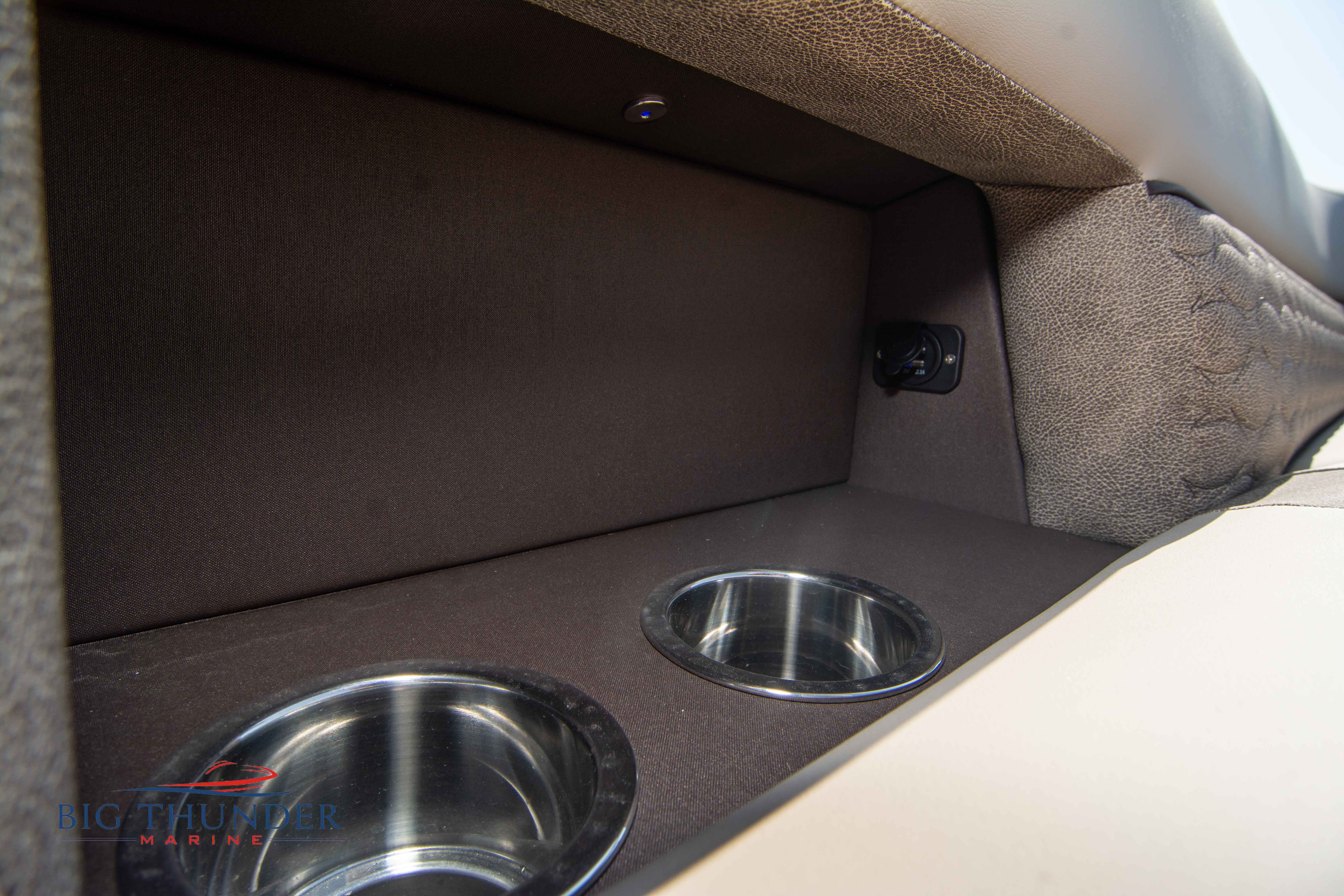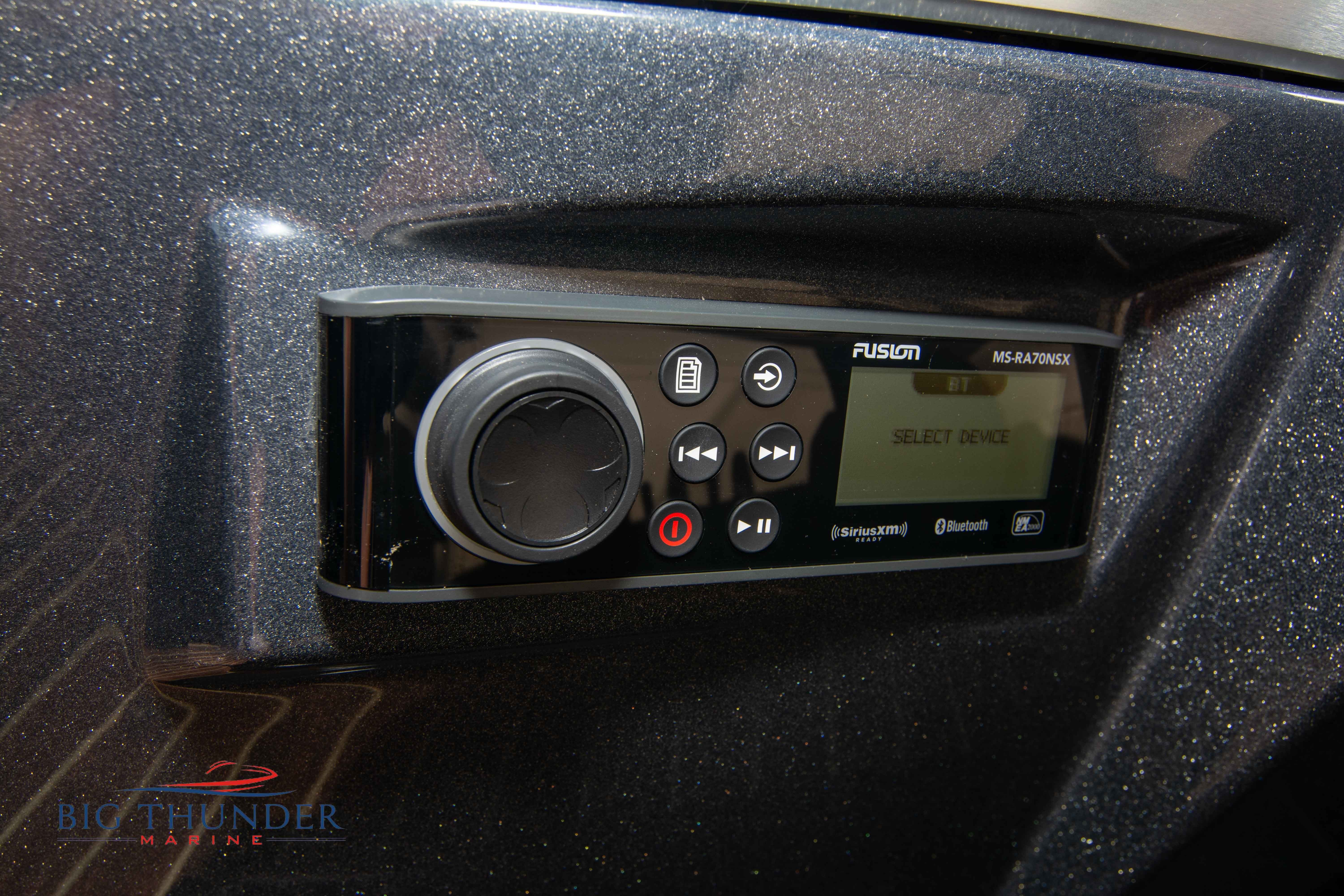Mercury Verado Digital Pre-Rig w/ DTS & SmartCraft gauges. Mercury 350L Verado 5.44"" 1.75 HD (Inline-6 Supercharged 4 Stroke). Black Metallic Primary Wall Panels w/ Caribou Metallic Accent Panels. Graphite Textured HD Powder Coated Rails. Graphite Powder Coated Deck Trim. SS Rub Rail Insert. Tan Interior Vinyl w/ Black Gelcoat. Teak & Holly Poly Vinyl Flooring. CP3 Performance Pkg. (25"" Round Outer Tubes, 26"" Round Center Tube, Aluminum Underskin, Lifting Strakes, Electronic Power Steering, Dual Battery Switch and Battery Boxes, Battery Charger, Deluxe Aluminum ""Junior Beast"" Ski Tow Bar, Integrated Transom & 80-Gallon Fuel Tank, Increases HP Rating to 400). Powder Coated Junior Beast Ski Tow Bar Upgrade. Cladded Arch w/ Gas Assist. Blue LED Underdeck Lighting. 29"" Highback Helm Chair w/ Flip-Up Bolster. Custom Aluminum Billet Instrument & Switch Panel. Captain’s Cooled Drink Holder. RGB Cupholder Lighting. Premium Audio Pkg. (Fusion MS-BB300R Head Unit, (6) RGB Spkrs., 10"" RGB Subwoofer & 500W Amp). Mid Ship 3-Drawer Storage Unit. Oval Table. (2) Moveable Cupholders. In-Floor Storage Upgrade. Mooring Cover.