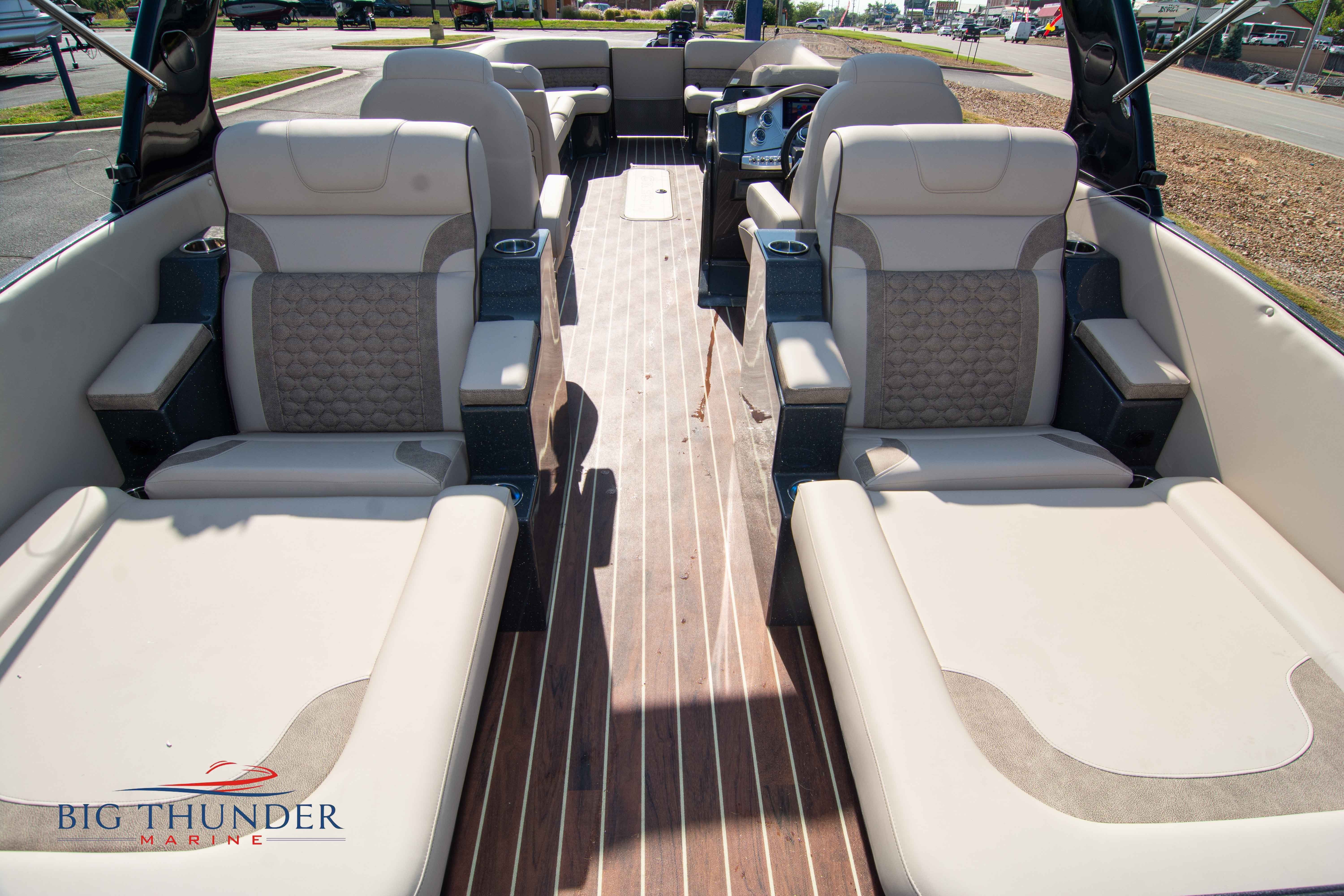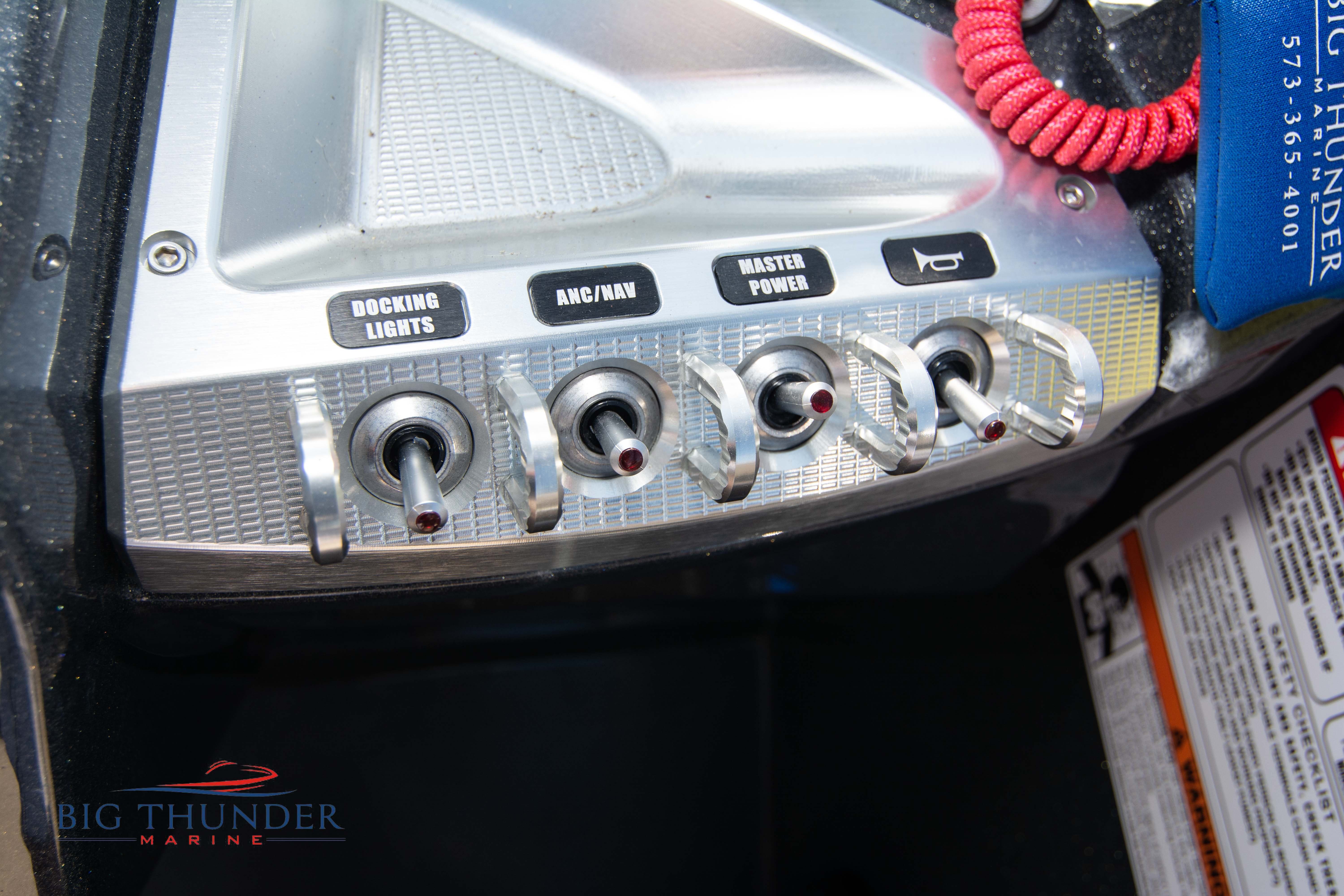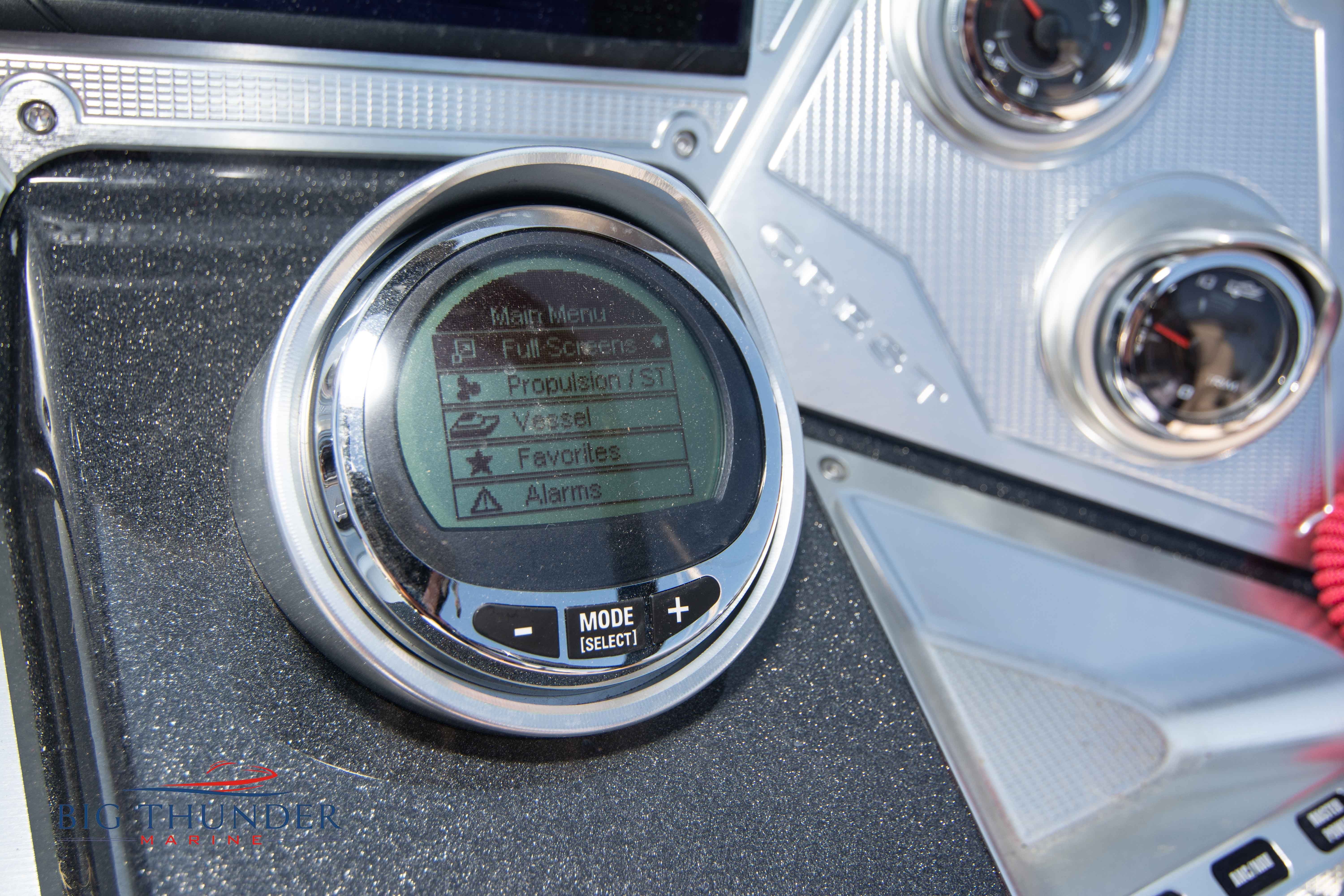Mercury Verado Digital Pre-Rig w/ DTS & SmartCraft gauges. Mercury 350L Verado 5.44"" 1.75 HD (Inline-6 Supercharged 4 Stroke). Black Metallic Primary Wall Panels w/ Caribou Metallic Accent Panels. Graphite Textured HD Powder Coated Rails. Graphite Powder Coated Deck Trim. SS Rub Rail Insert. Tan Interior Vinyl w/ Black Gelcoat. Teak & Holly Poly Vinyl Flooring. CP3 Performance Pkg. (25"" Round Outer Tubes, 26"" Round Center Tube, Aluminum Underskin, Lifting Strakes, Electronic Power Steering, Dual Battery Switch and Battery Boxes, Battery Charger, Deluxe Aluminum ""Junior Beast"" Ski Tow Bar, Integrated Transom & 80-Gallon Fuel Tank, Increases HP Rating to 400). Powder Coated Junior Beast Ski Tow Bar Upgrade. Cladded Arch w/ Gas Assist. Blue LED Underdeck Lighting. 29"" Highback Helm Chair w/ Flip-Up Bolster. Custom Aluminum Billet Instrument & Switch Panel. Captain’s Cooled Drink Holder. RGB Cupholder Lighting. Premium Audio Pkg. (Fusion MS-BB300R Head Unit, (6) RGB Spkrs., 10"" RGB Subwoofer & 500W Amp). Mid Ship 3-Drawer Storage Unit. Oval Table. (2) Moveable Cupholders. In-Floor Storage Upgrade. Mooring Cover.
