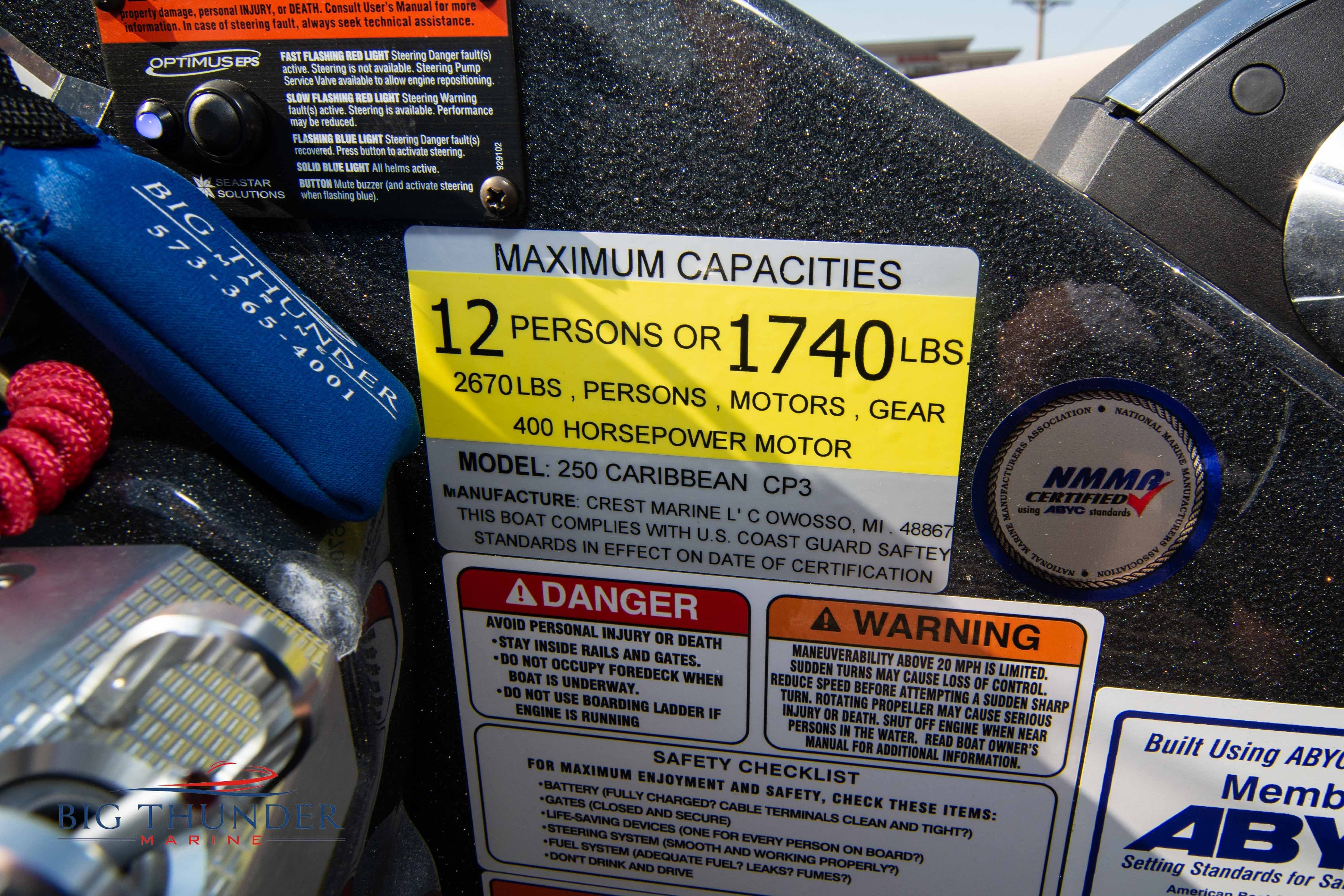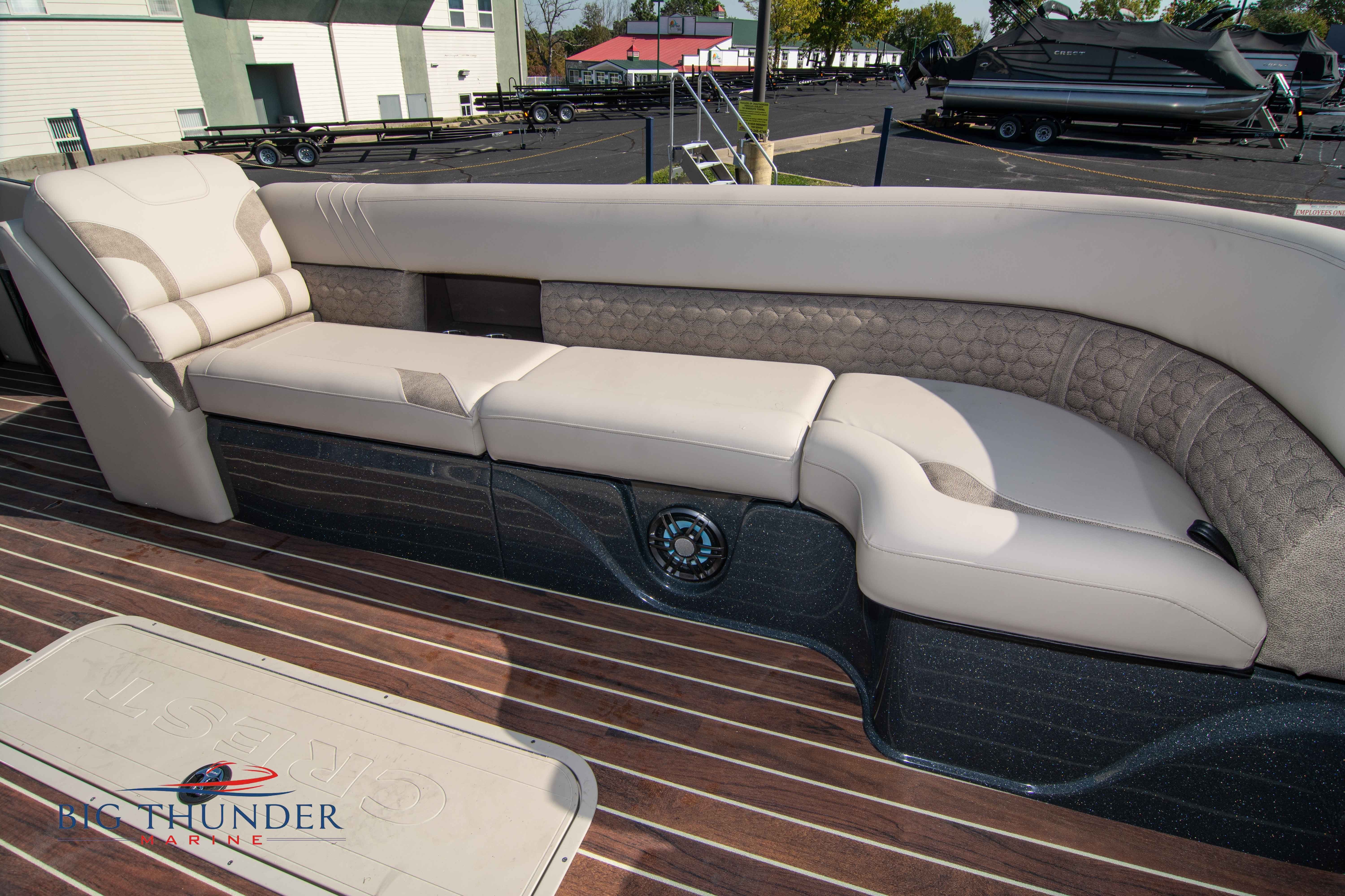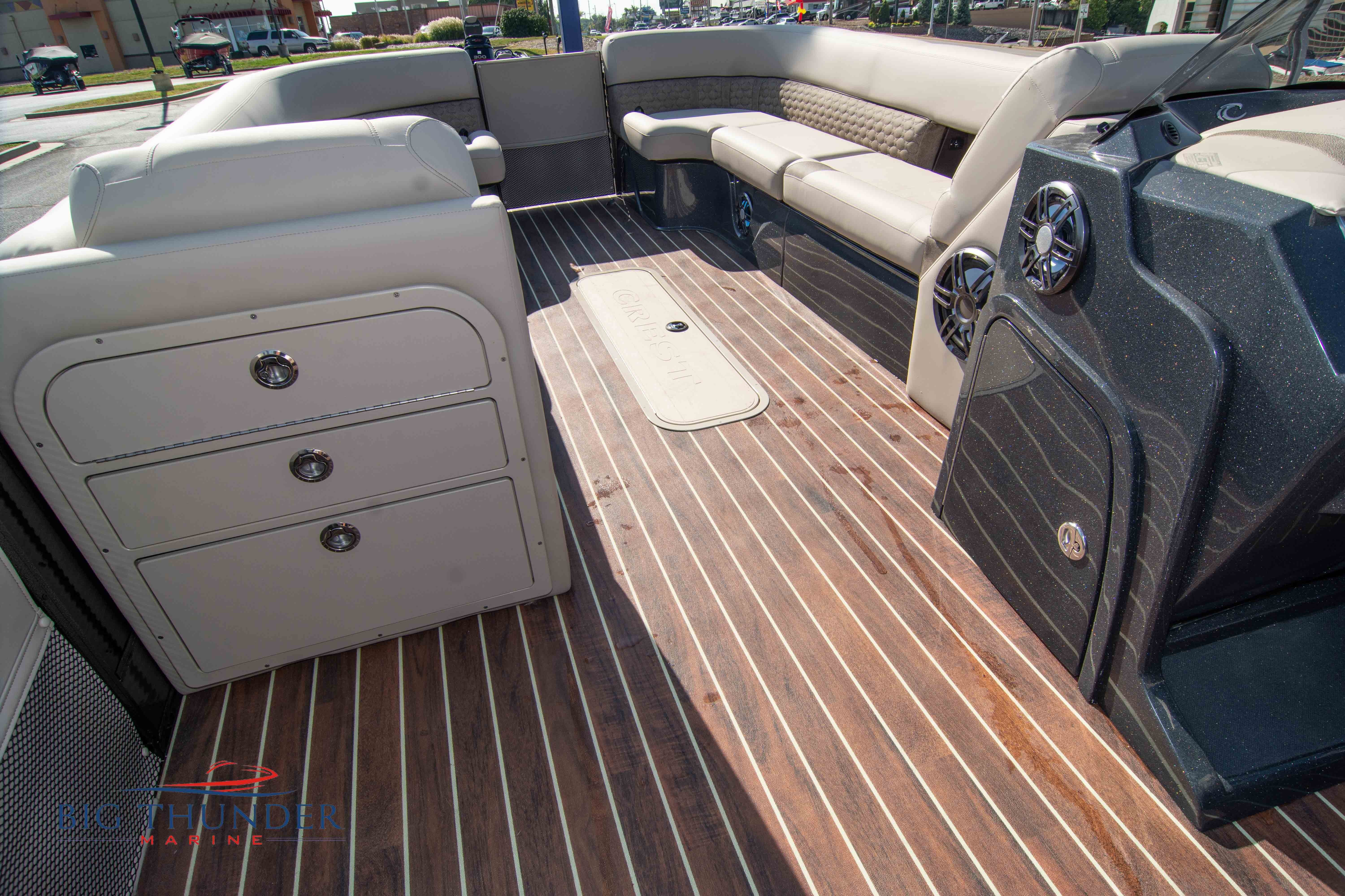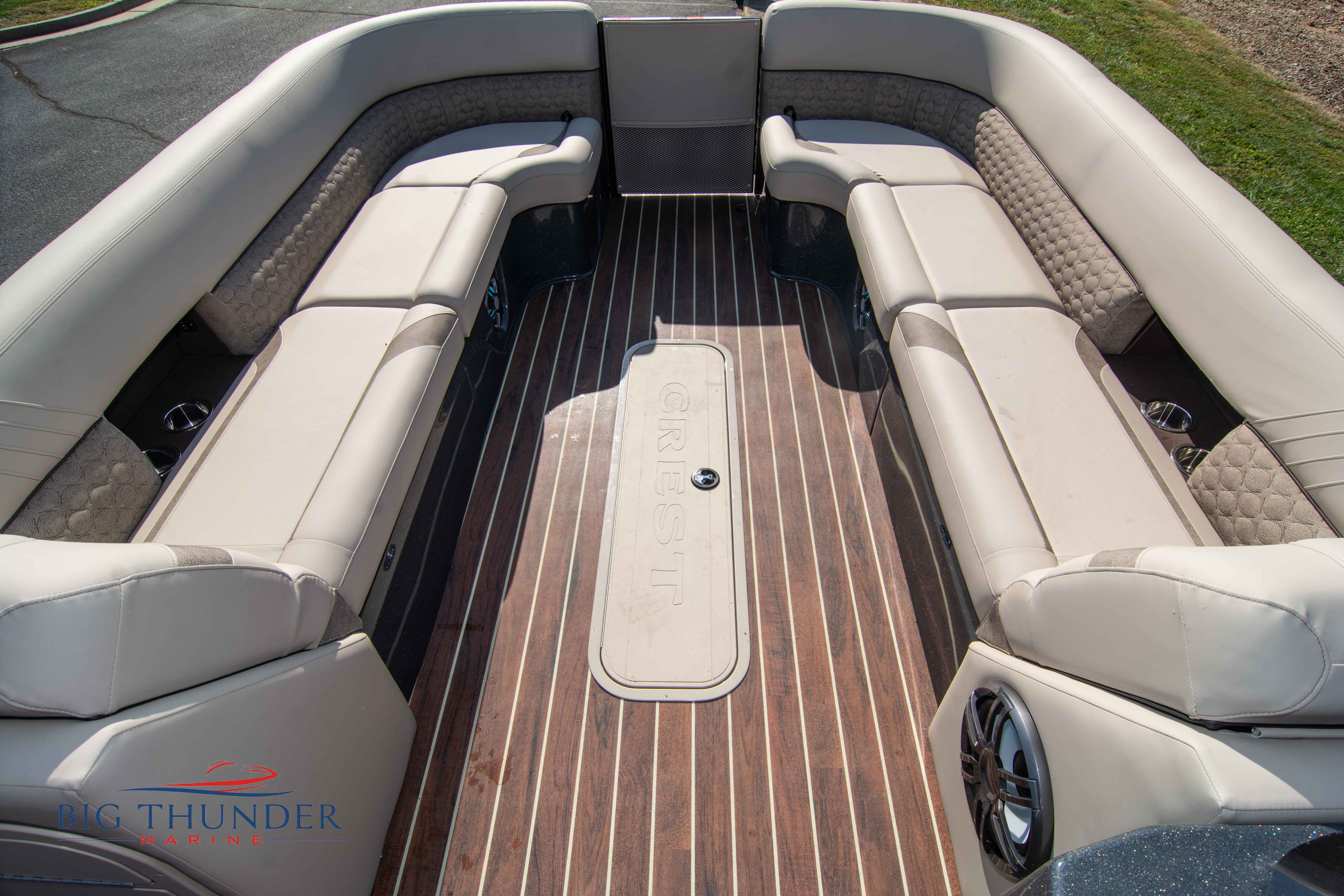 2020 Crest Caribbean Platinum 250 SLRC A truly luxury sport pontoon package that goes from relaxing to watersports, open water cruising and night time entertaining seamlessly. Some of the many great features on this model include: