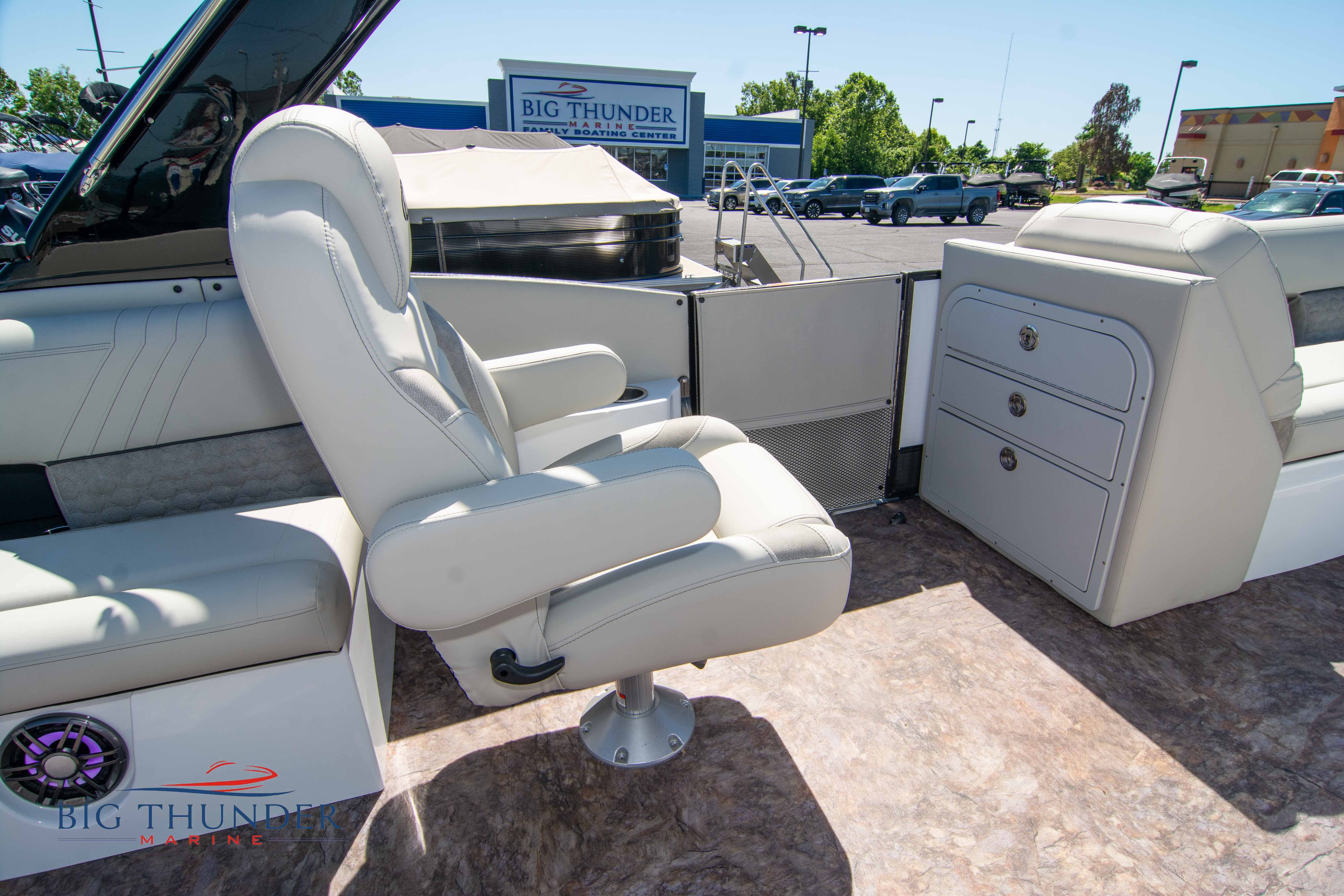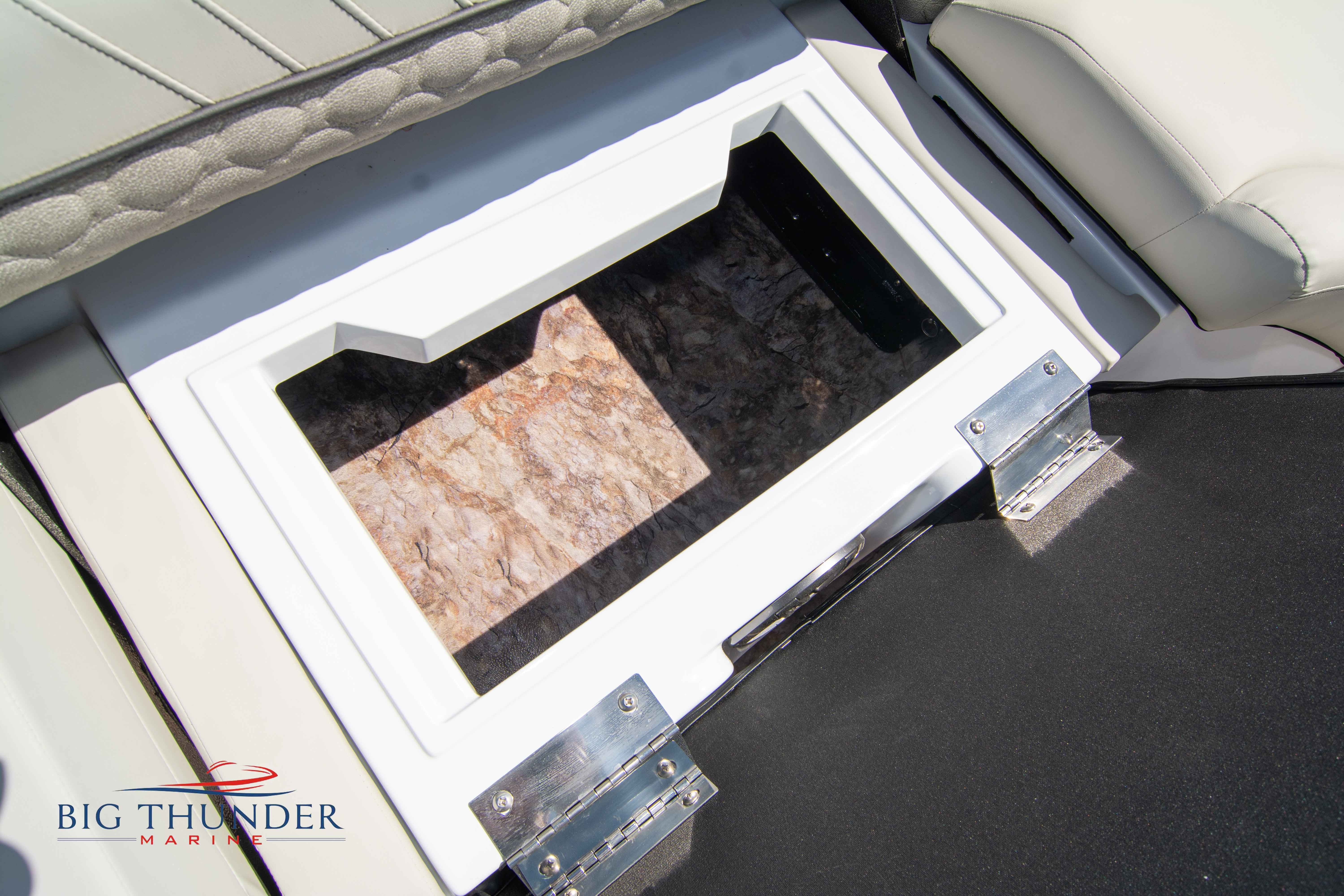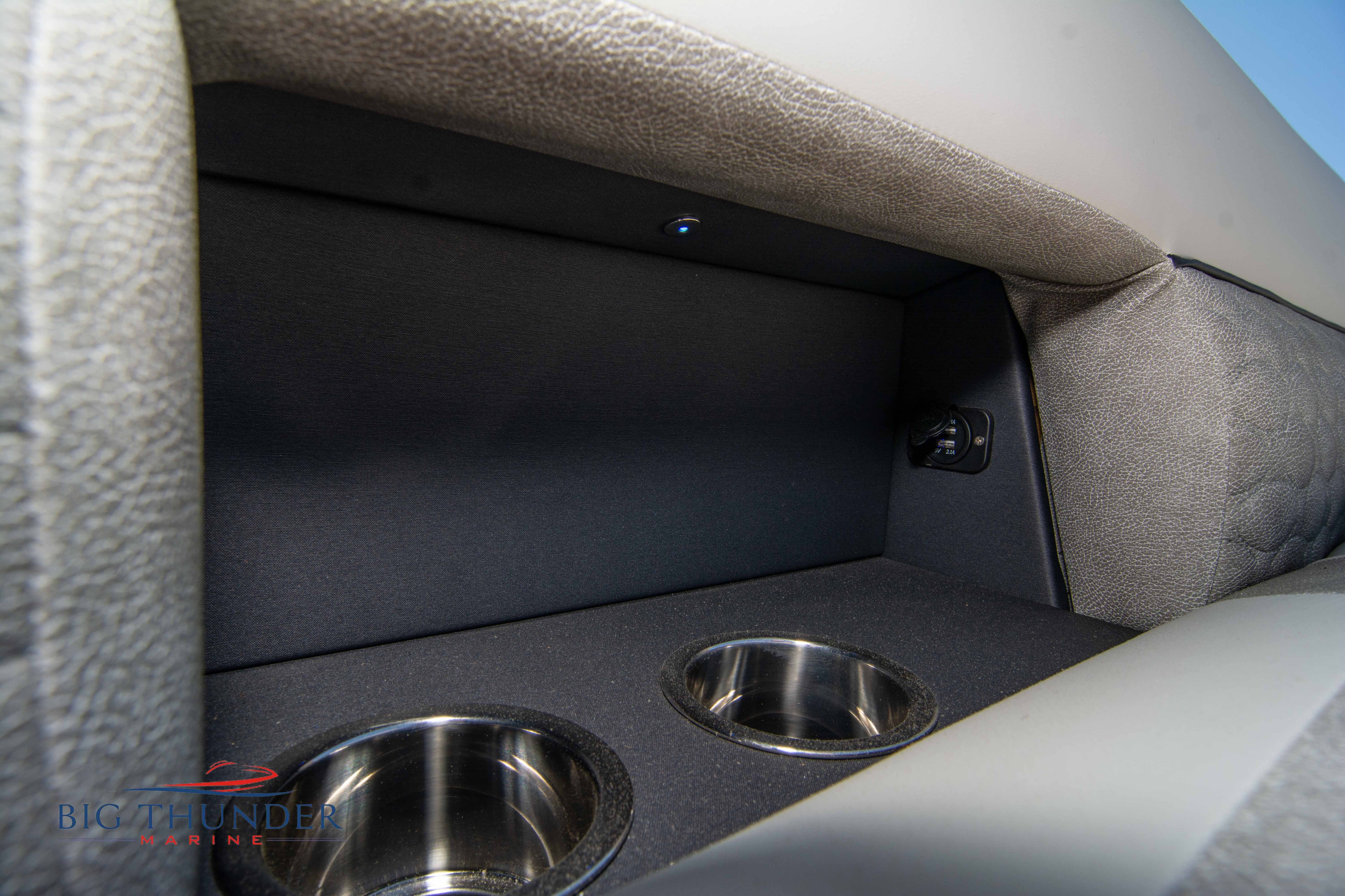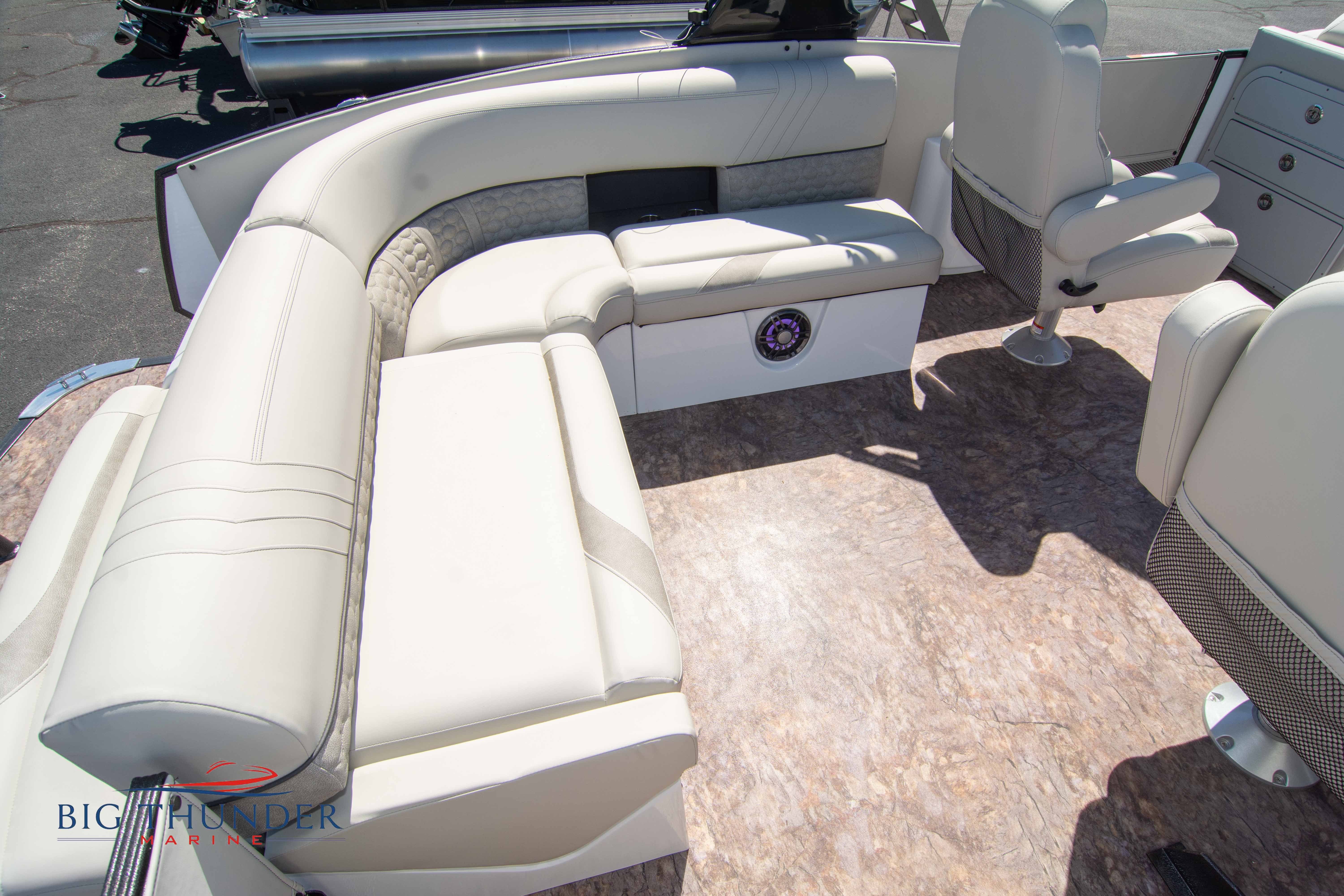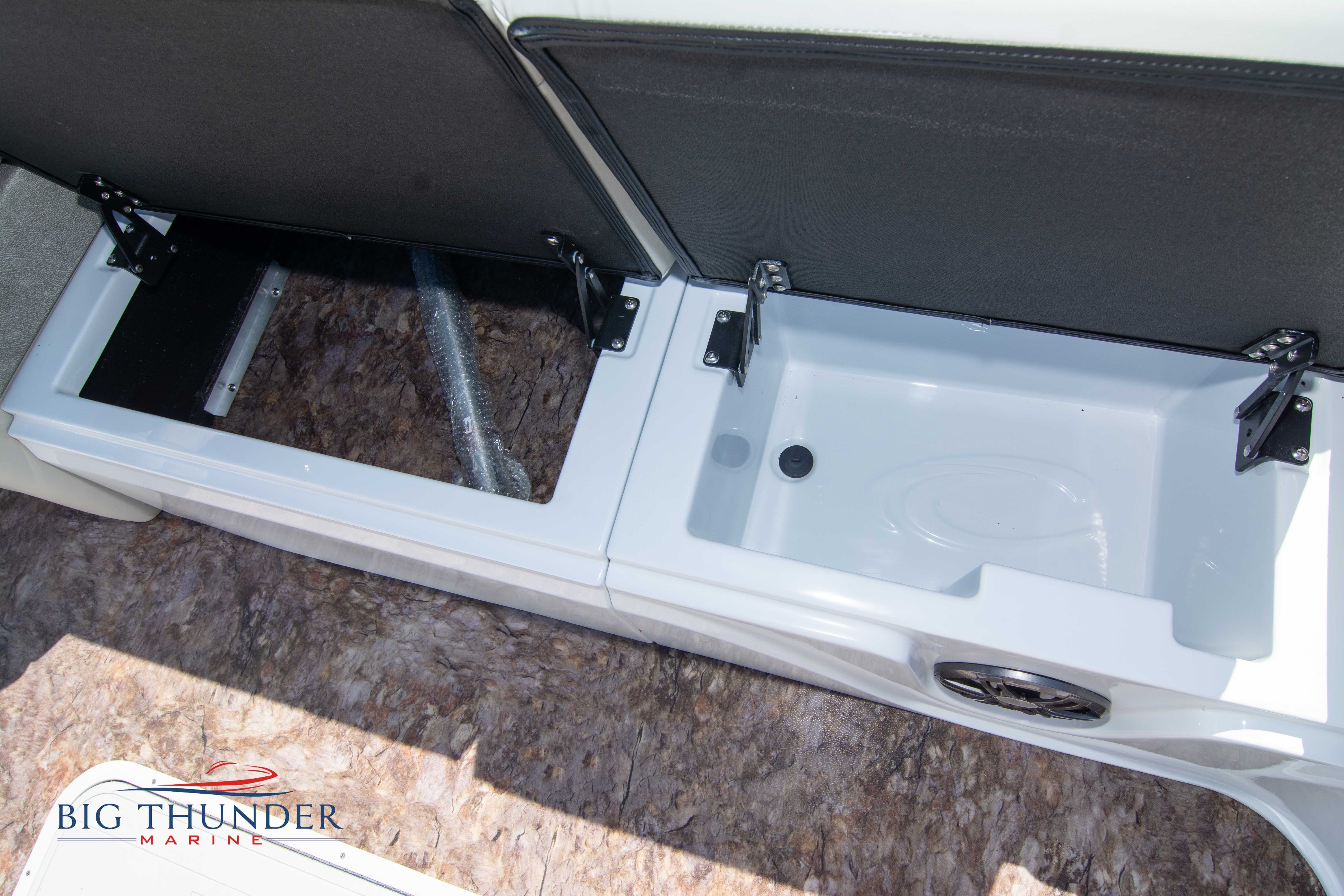 Mercury Verado w/ DTS & SmartCraft Digital Pre-Rig. Mercury 350L Verado Cold Fusion White 5.44"" 1.75HD (I-6 SC 4S). White Metallic Side Panels w/ Steel Accents. Textured HD Graphite Powder Coated Rails & Deck Trim. SS Rub Rail Insert. Slate Deluxe Poly Vinyl Flooring. Gray/White Gelcoat Interior. Black Bimini & Mooring Cover. Cladded Arch w/ Gas Assist. CP3 Performance Package ((2) 25? Round Tubes, (1) 26? Round Center Tube, Aluminum Underskin, Lifting Strakes, Electronic Power Steering, Dual Battery Switch and Battery Boxes, Battery Charger, Integrated Transom & 80-Gallon Fuel Tank). Custom Aluminum Billet Instrument & Switch Panel. 29"" High Back Helm Chair w/ Flip Up Bolster. Captain’s Cooled Drink Holder. RGB Cupholders. Mid Ship 3-Drawer Storage Unit. Premium Audio Package (Fusion MS-BB300R Head Unit, (8) Fusion MS-FR6520 6 3/4?, Fusion MS-FR6520 10? subwoofer and MS-DA51600 1600W Amplifier). Powder Coated Aluminum Deluxe ""Junior Beast"" Ski Tow Bar. Oval Dinette Table. (2) Portable Cupholders.