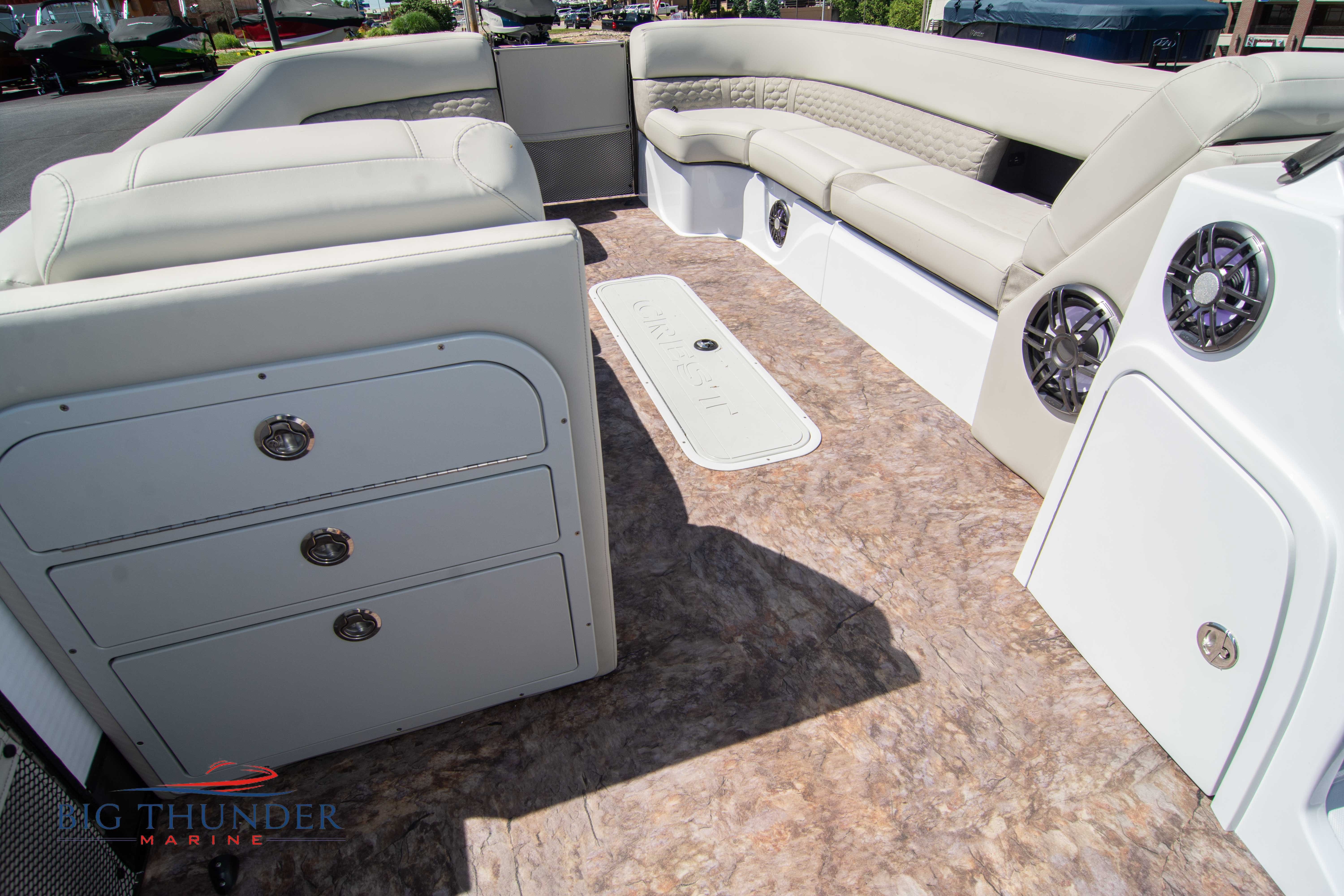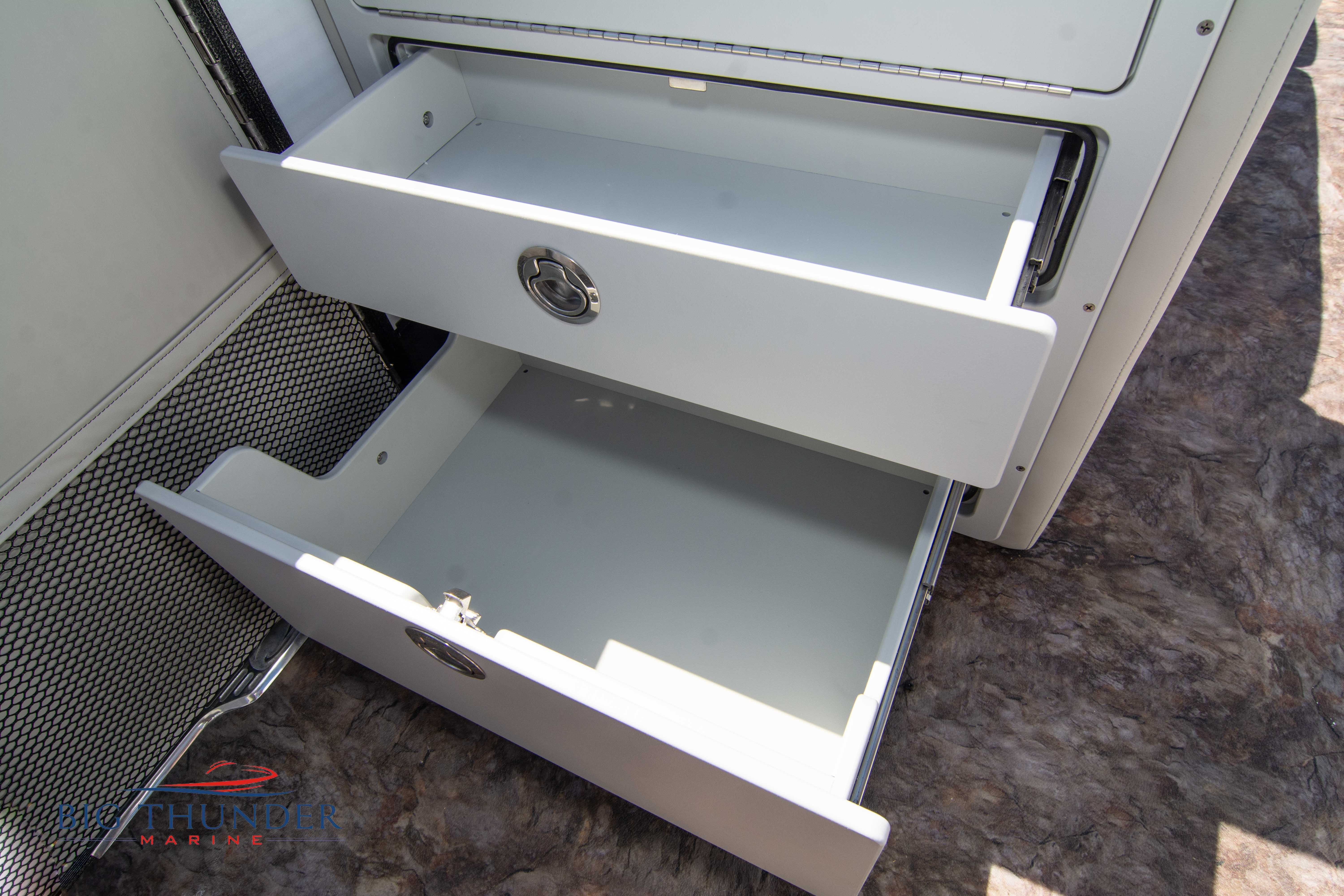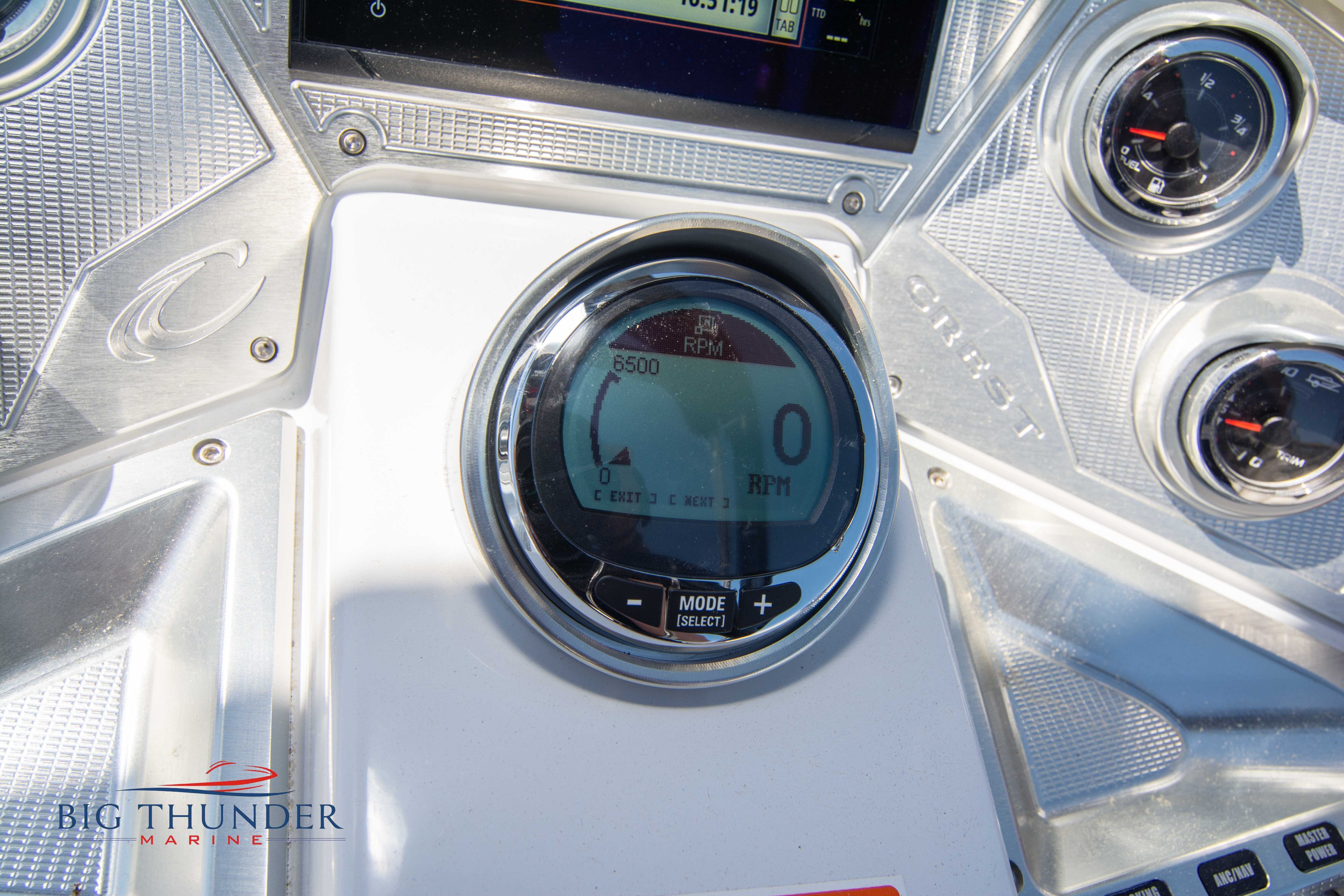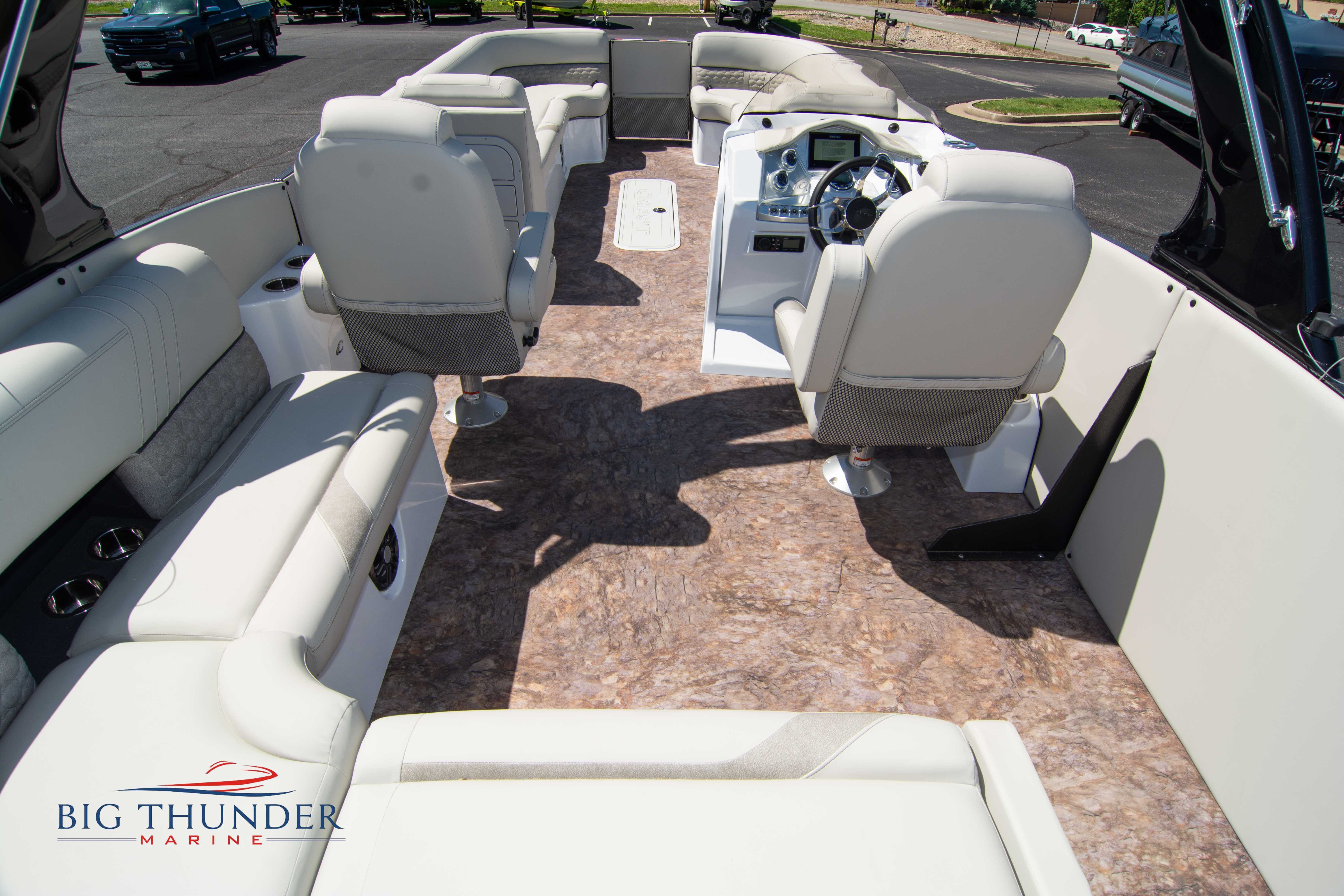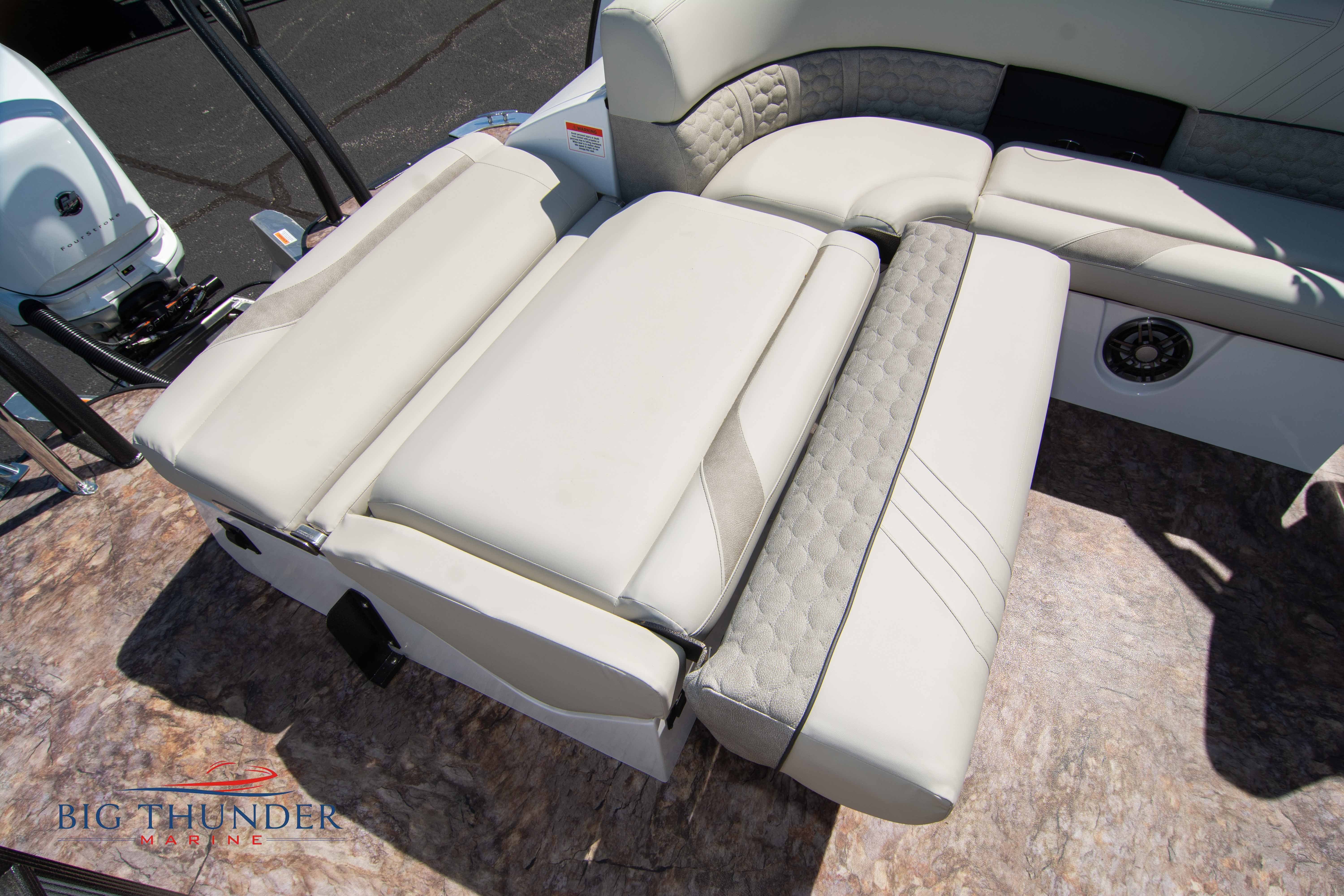 Mercury Verado w/ DTS & SmartCraft Digital Pre-Rig. Mercury 350L Verado Cold Fusion White 5.44"" 1.75HD (I-6 SC 4S). White Metallic Side Panels w/ Steel Accents. Textured HD Graphite Powder Coated Rails & Deck Trim. SS Rub Rail Insert. Slate Deluxe Poly Vinyl Flooring. Gray/White Gelcoat Interior. Black Bimini & Mooring Cover. Cladded Arch w/ Gas Assist. CP3 Performance Package ((2) 25? Round Tubes, (1) 26? Round Center Tube, Aluminum Underskin, Lifting Strakes, Electronic Power Steering, Dual Battery Switch and Battery Boxes, Battery Charger, Integrated Transom & 80-Gallon Fuel Tank). Custom Aluminum Billet Instrument & Switch Panel. 29"" High Back Helm Chair w/ Flip Up Bolster. Captain’s Cooled Drink Holder. RGB Cupholders. Mid Ship 3-Drawer Storage Unit. Premium Audio Package (Fusion MS-BB300R Head Unit, (8) Fusion MS-FR6520 6 3/4?, Fusion MS-FR6520 10? subwoofer and MS-DA51600 1600W Amplifier). Powder Coated Aluminum Deluxe ""Junior Beast"" Ski Tow Bar. Oval Dinette Table. (2) Portable Cupholders.