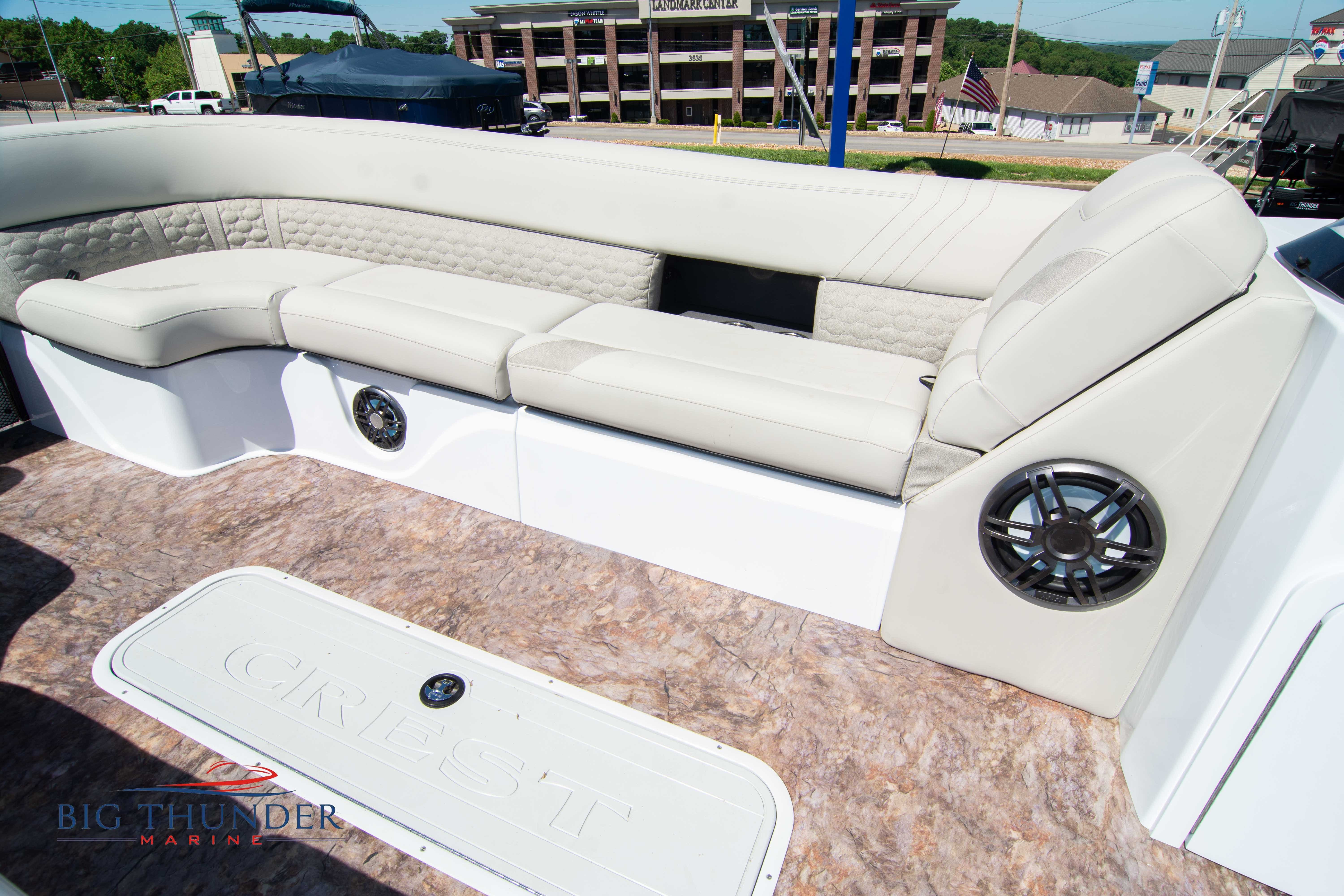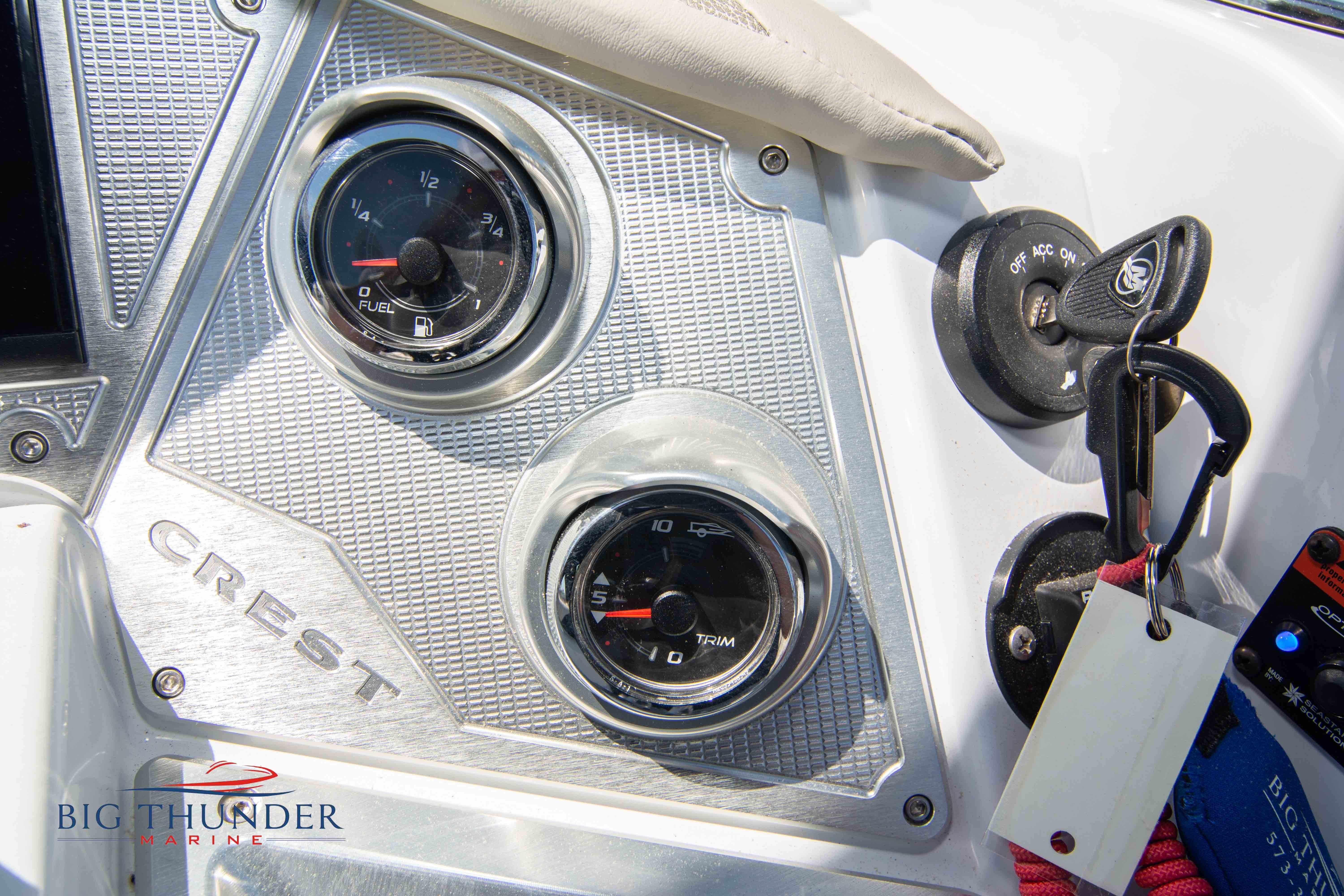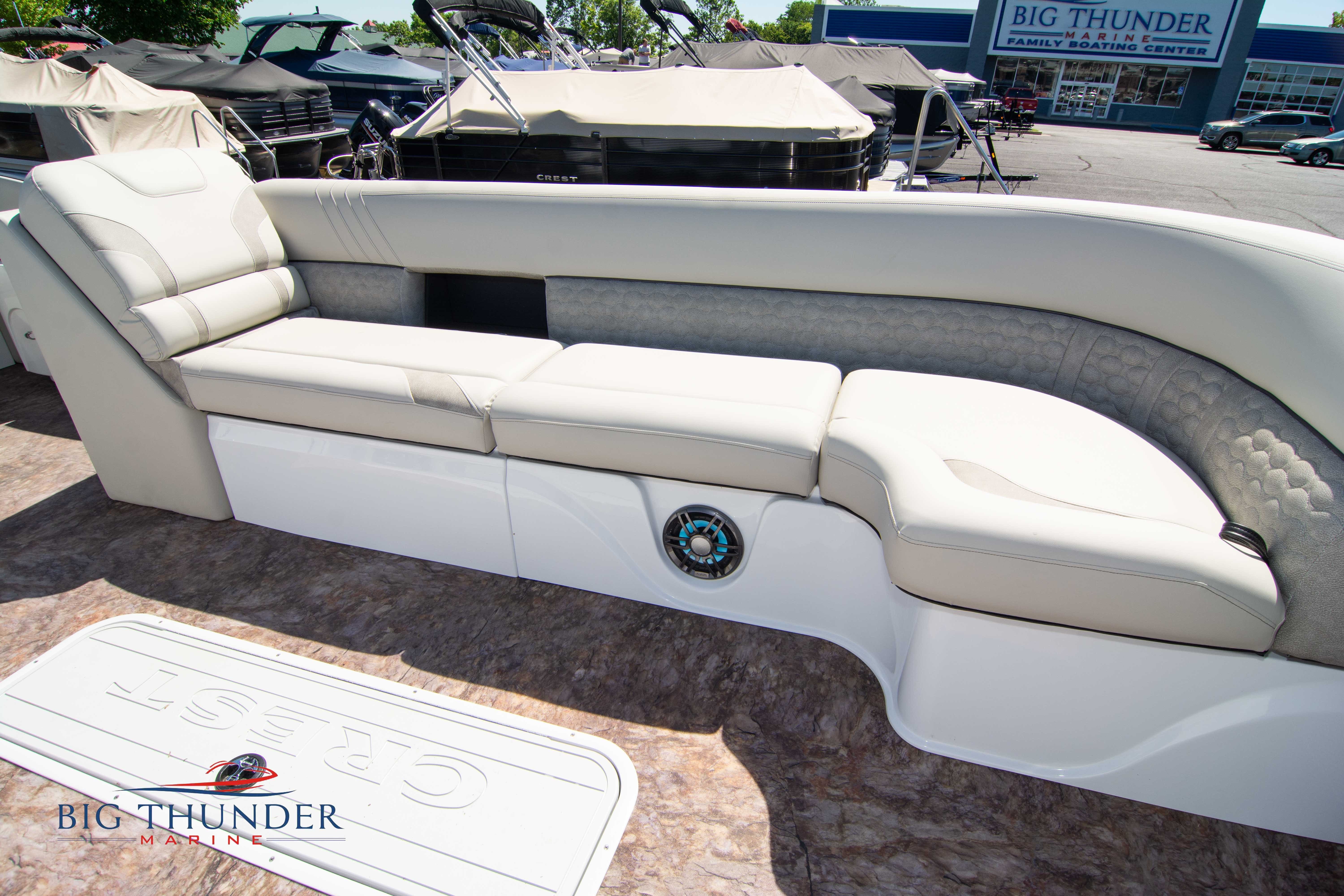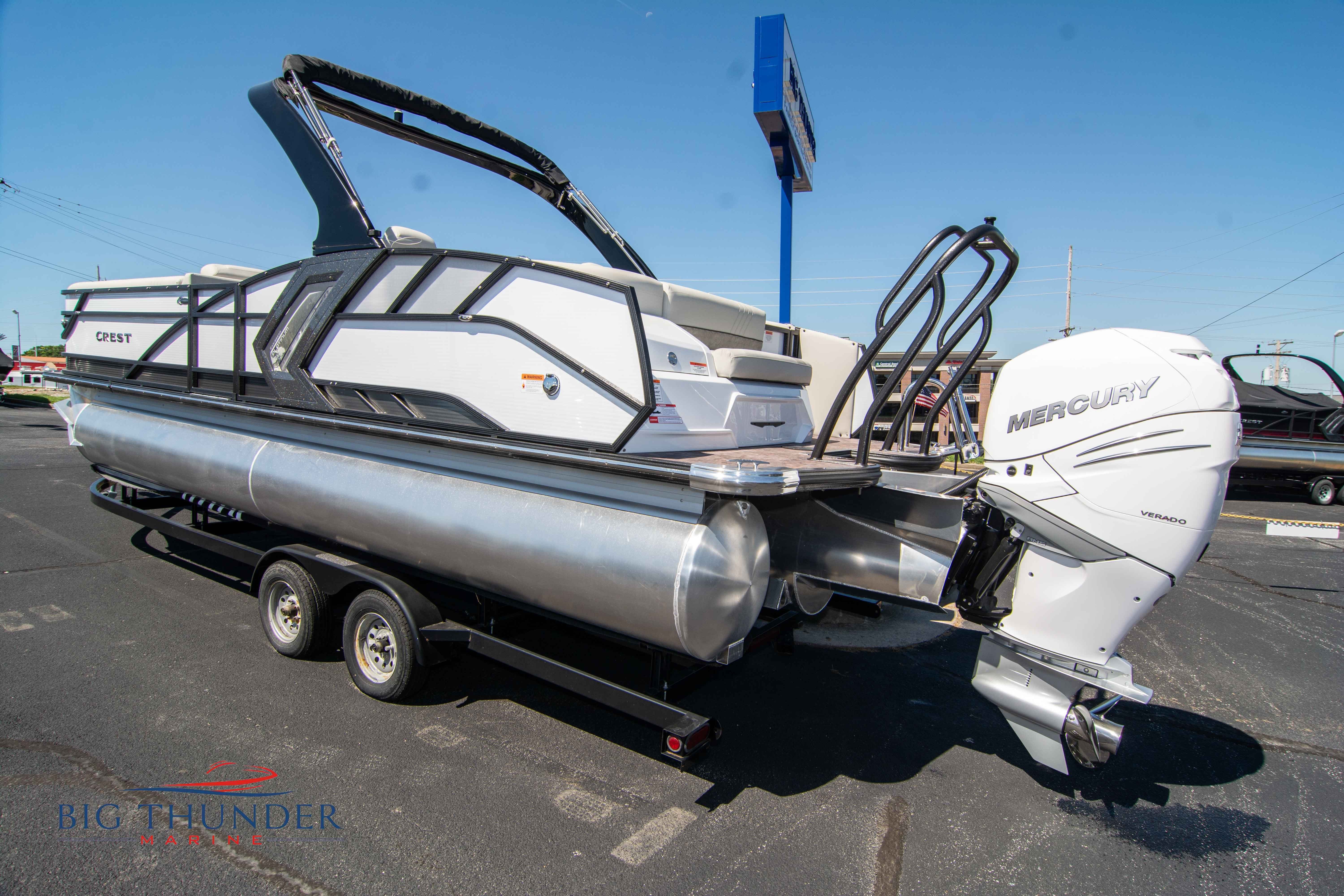 2020 Crest Carribean Platinum 250 SLS One of the flagship lines from Crest, the Carribean Platinum is a model of class and prestige. Completely loaded with modern luxury appointments made for both relaxation and entertainment. The SLS floorplan features aft front and rear facing bench seating with electric convertible sunpad. Fitted with a powerful Mercury 350 Verado to handle rough water and pull the skis and tubes with ease. Some of the many great features on this model include: