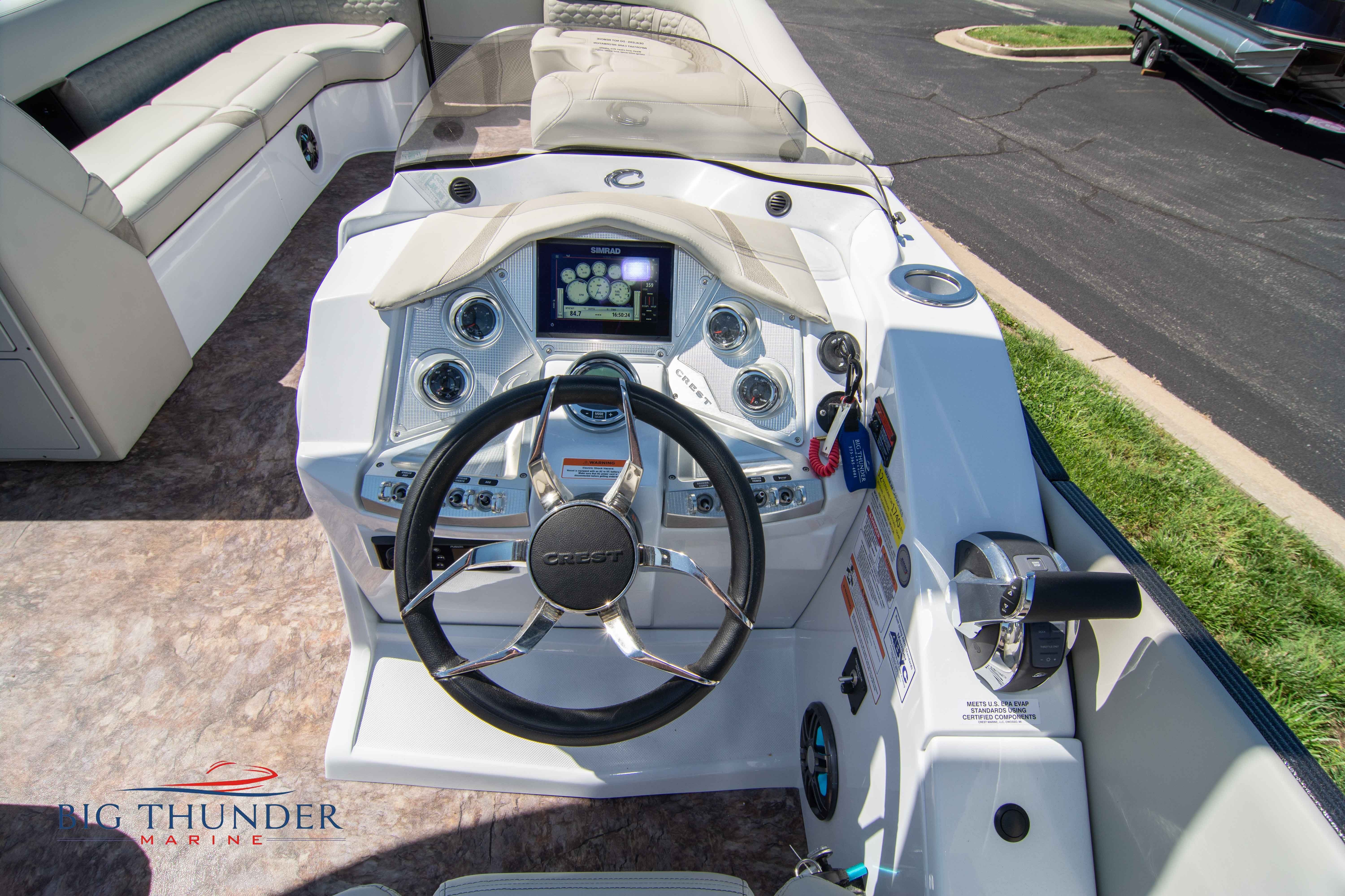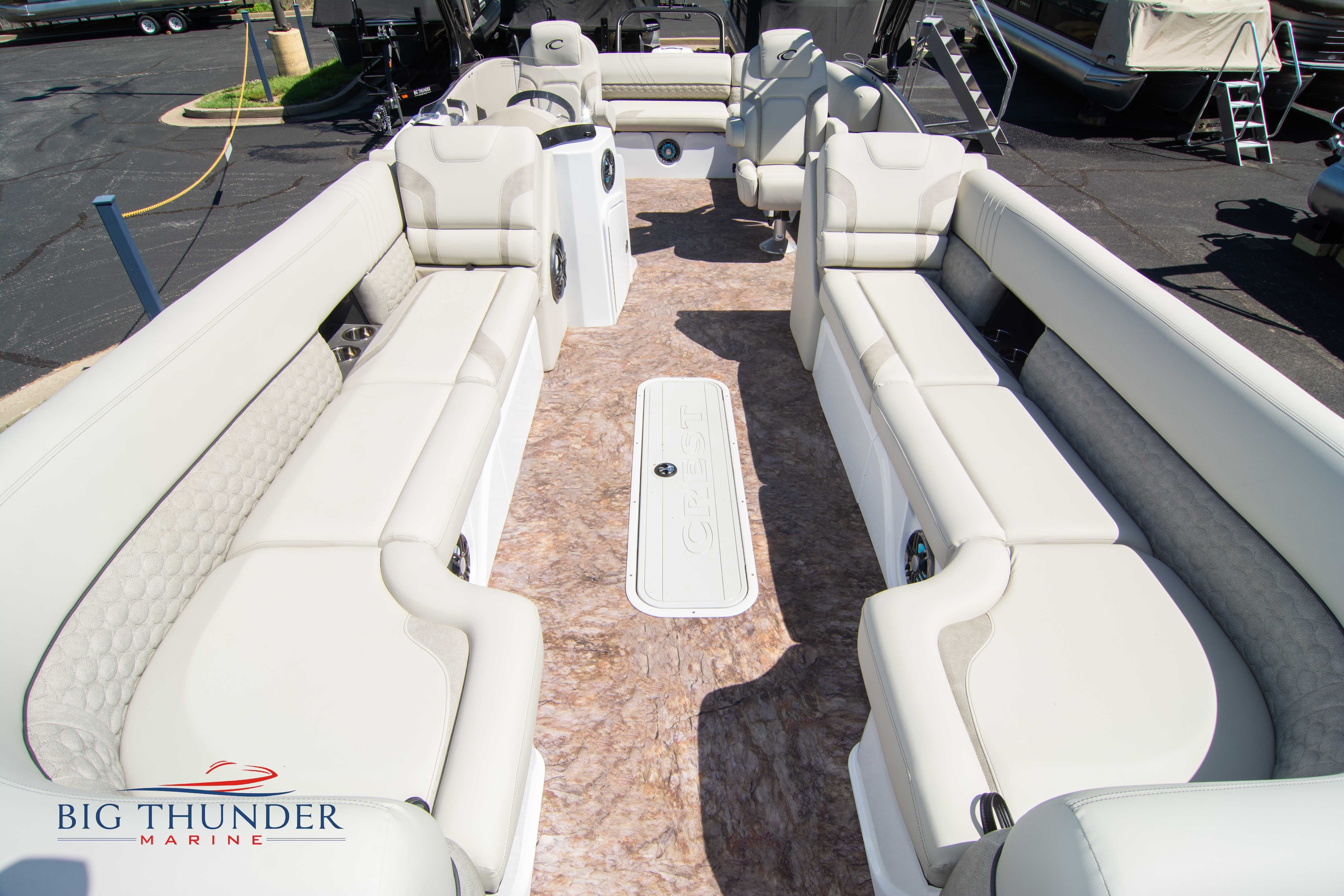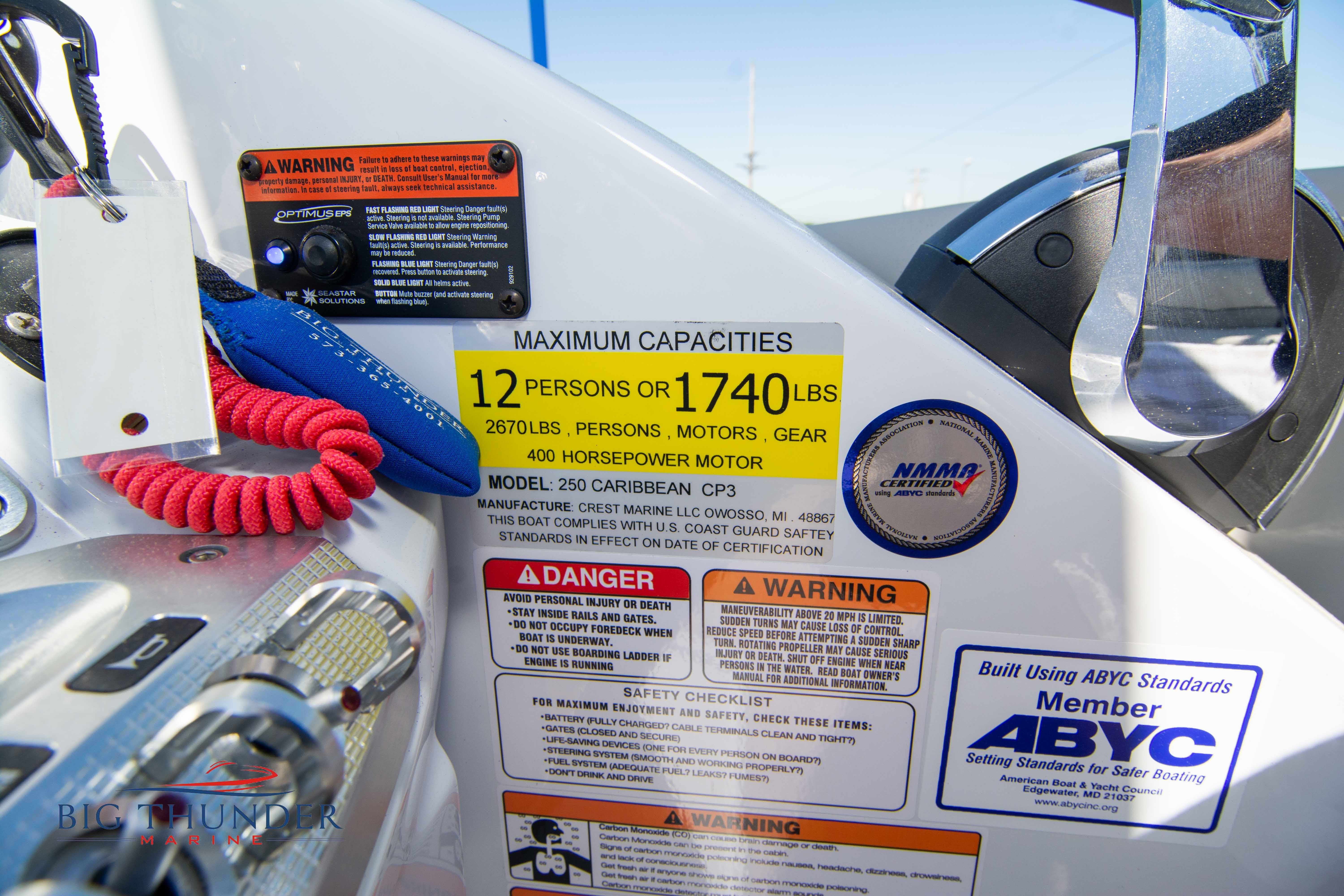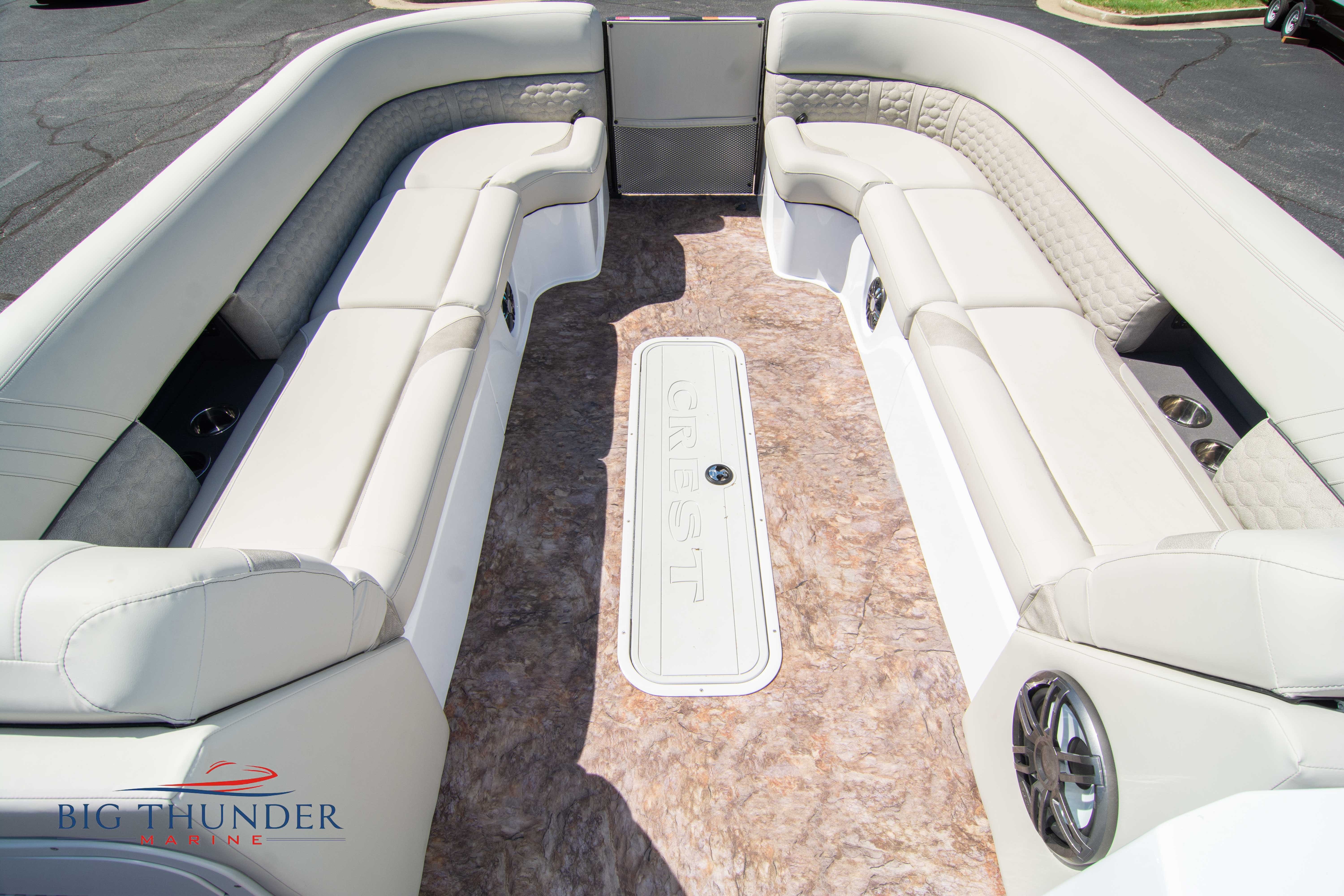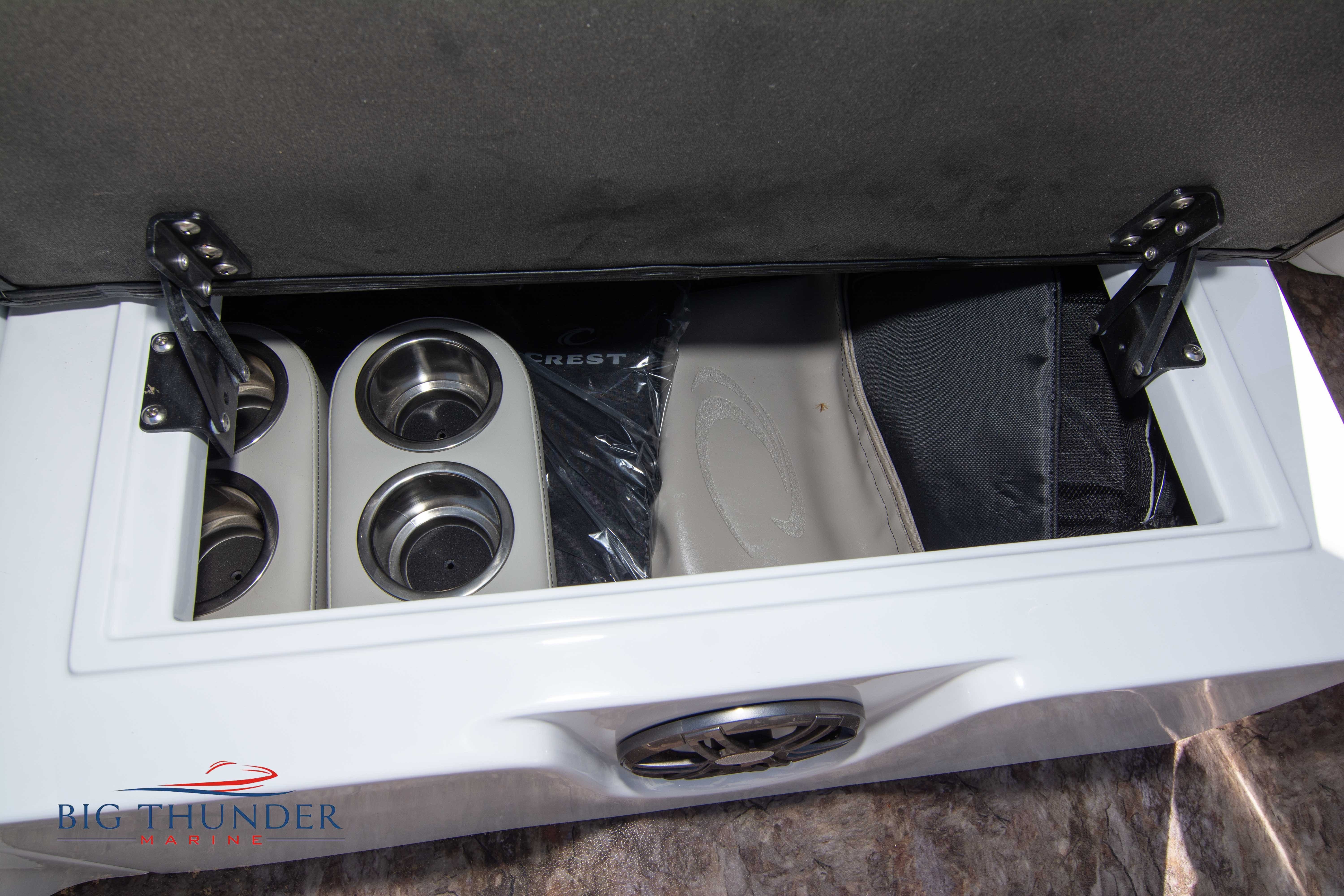 2020 Crest Carribean Platinum 250 SLS One of the flagship lines from Crest, the Carribean Platinum is a model of class and prestige. Completely loaded with modern luxury appointments made for both relaxation and entertainment. The SLS floorplan features aft front and rear facing bench seating with electric convertible sunpad. Fitted with a powerful Mercury 350 Verado to handle rough water and pull the skis and tubes with ease. Some of the many great features on this model include: