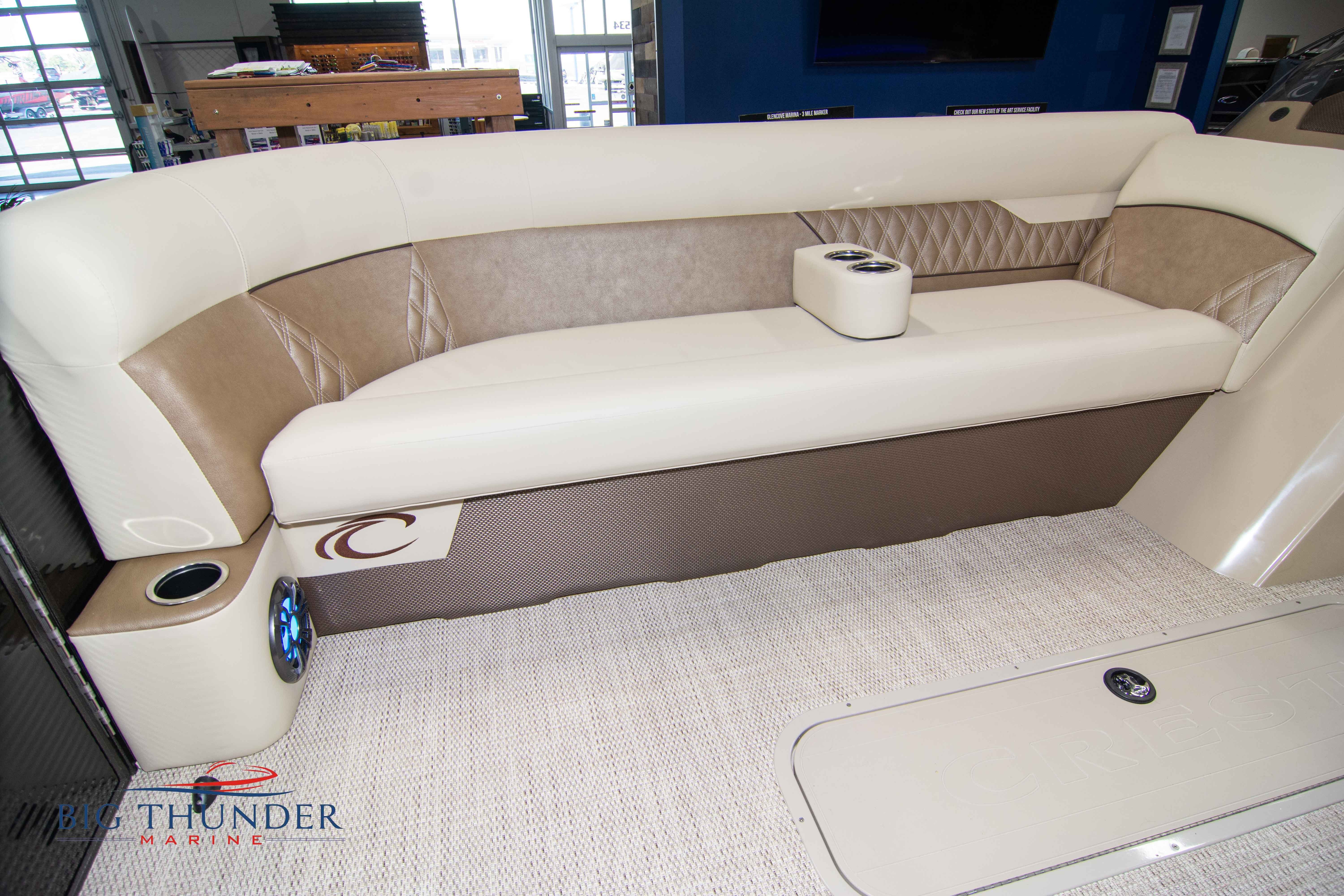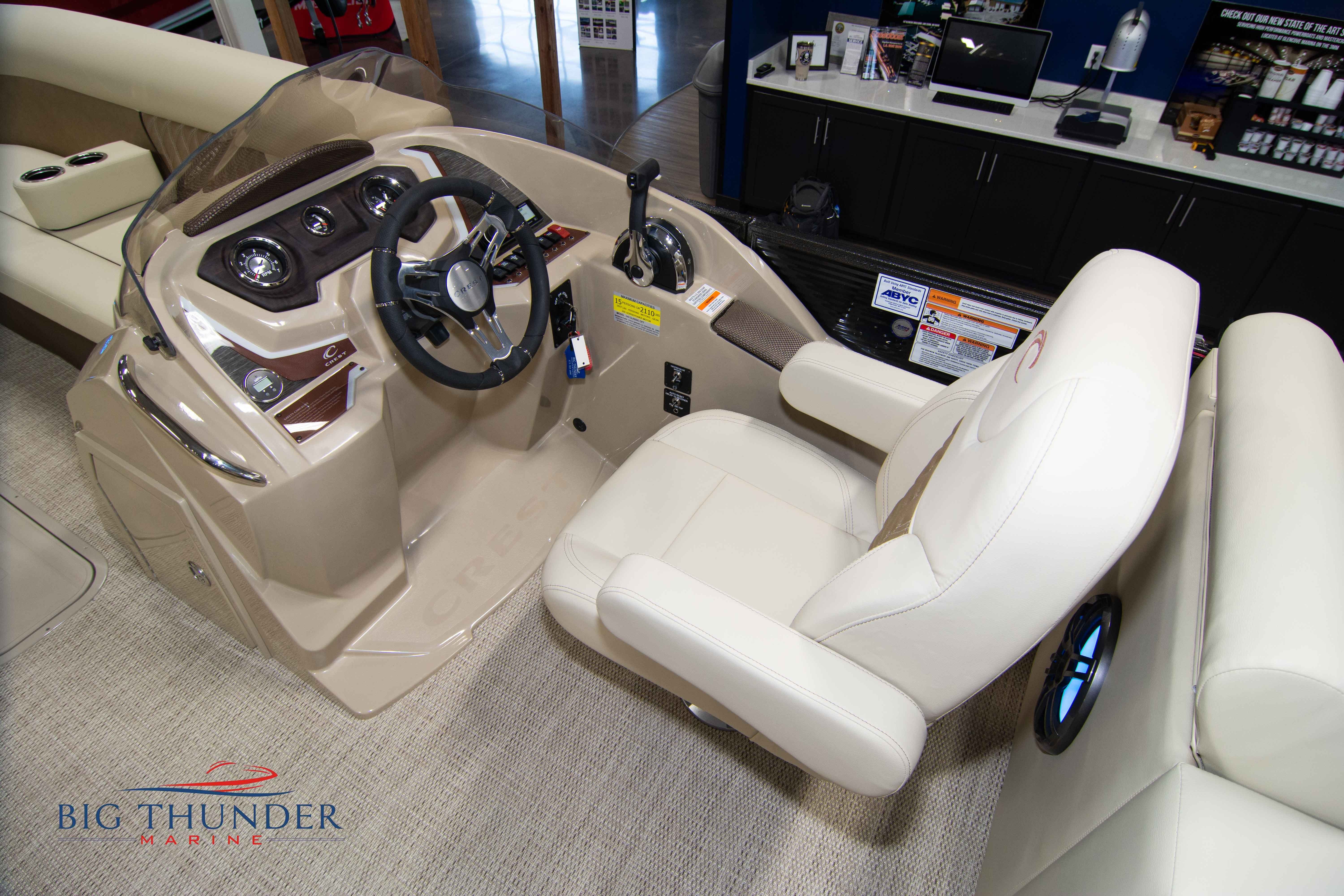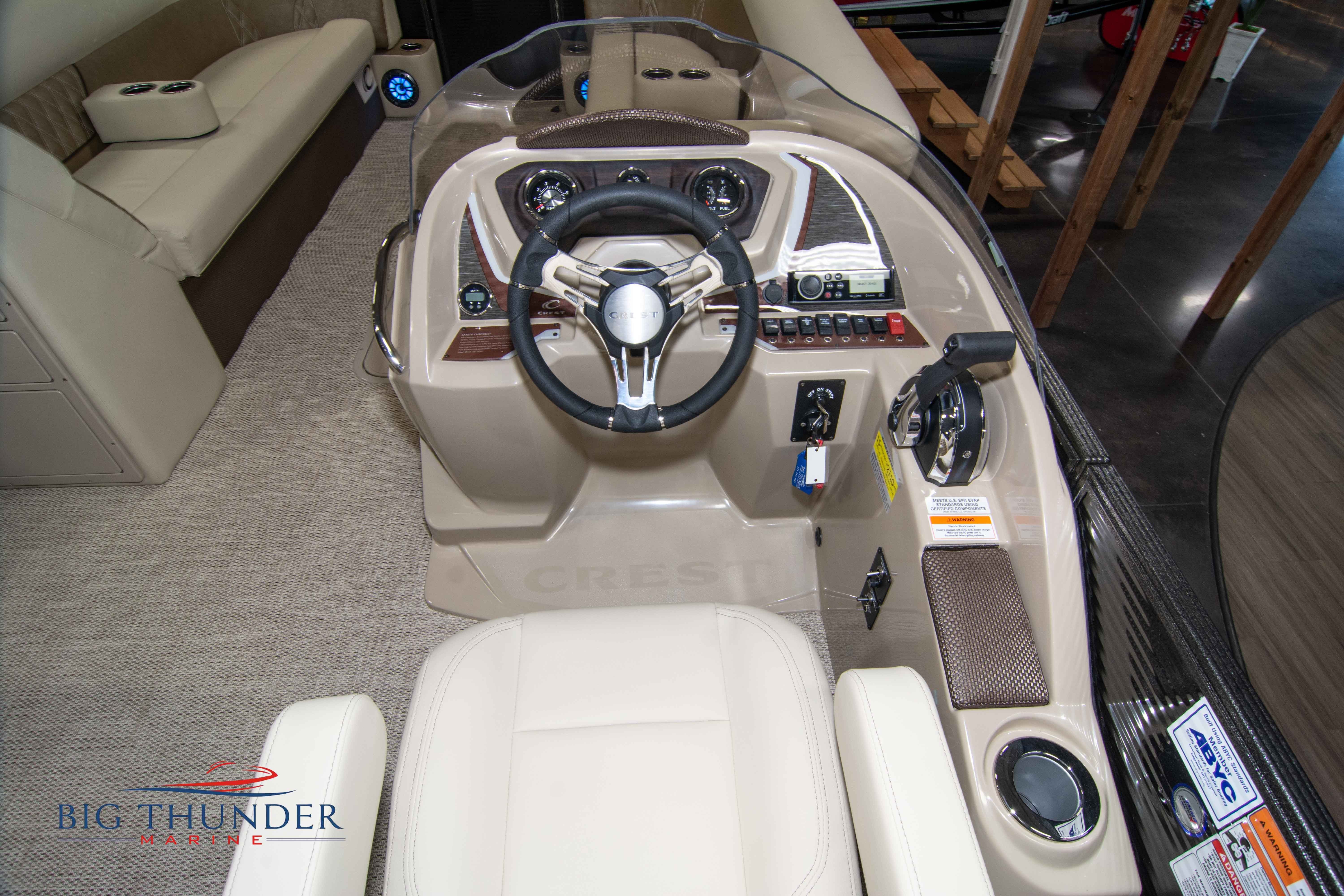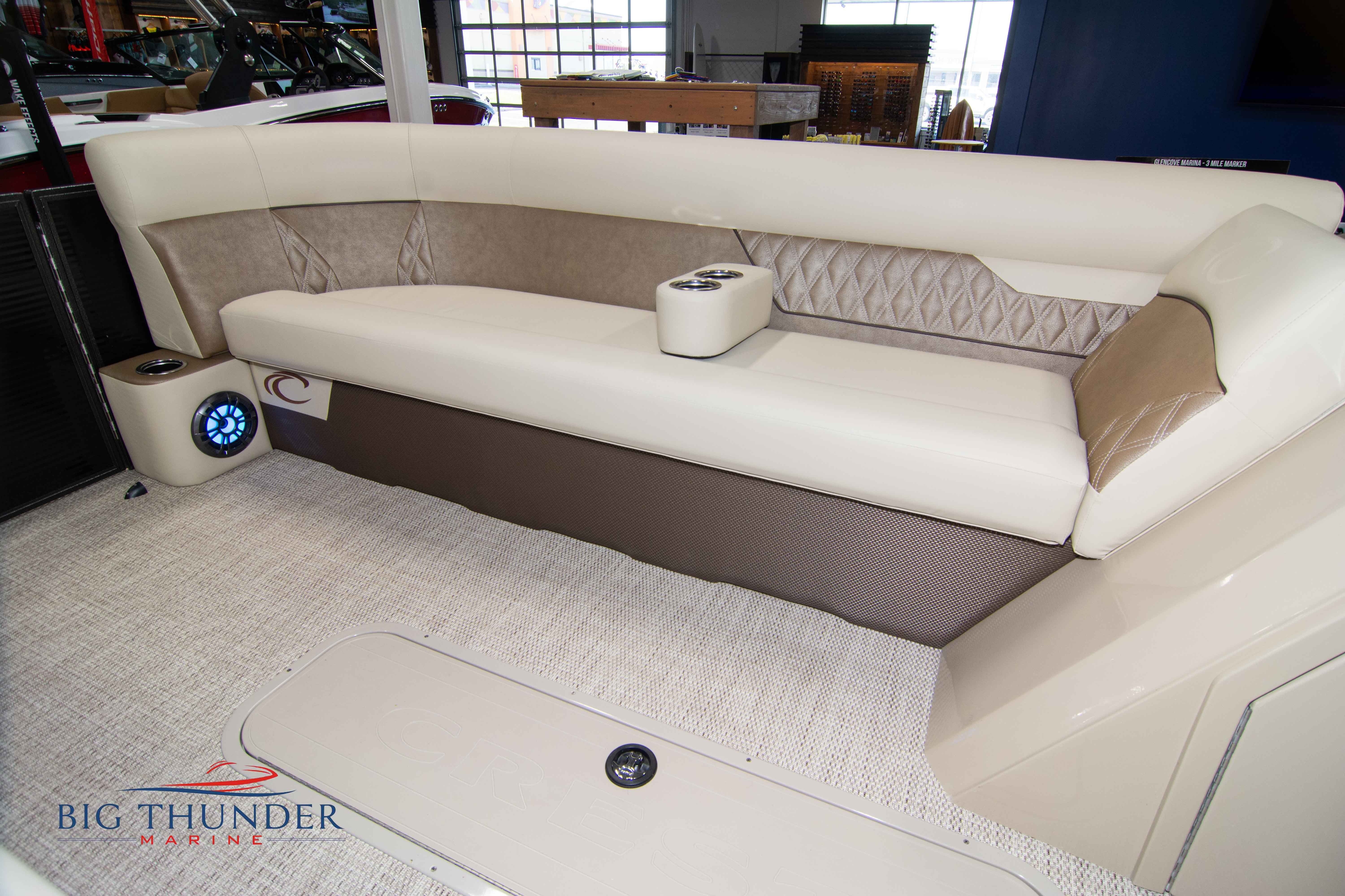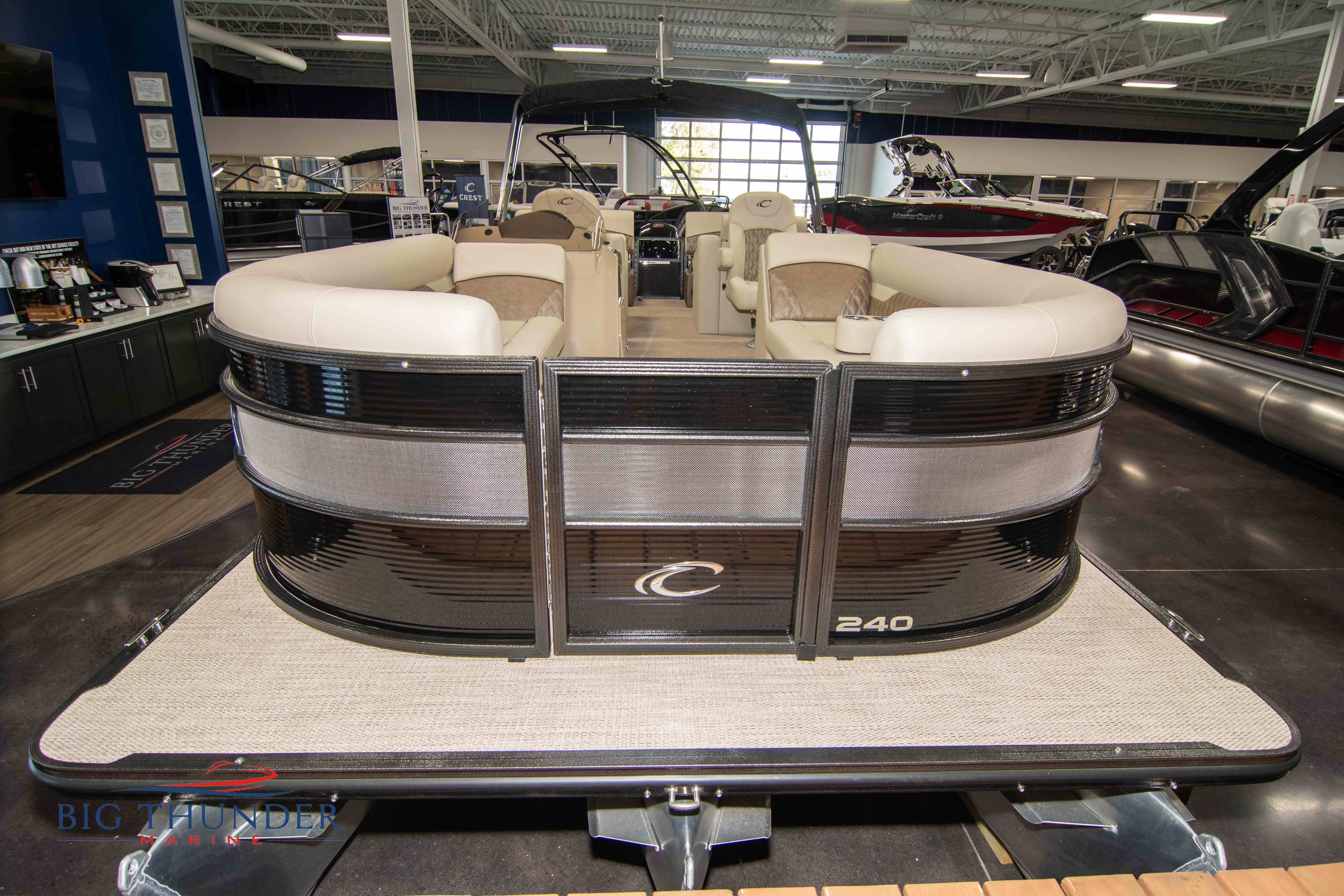 2020 Crest Classic Platinum 240 SLRC Luxury meets affordability in this versatile pontoon package. A modern take on a traditional pontoon design, the SLRC floorplan features dual convertible rear facing aft loungers. Some of the many great features on this model include: