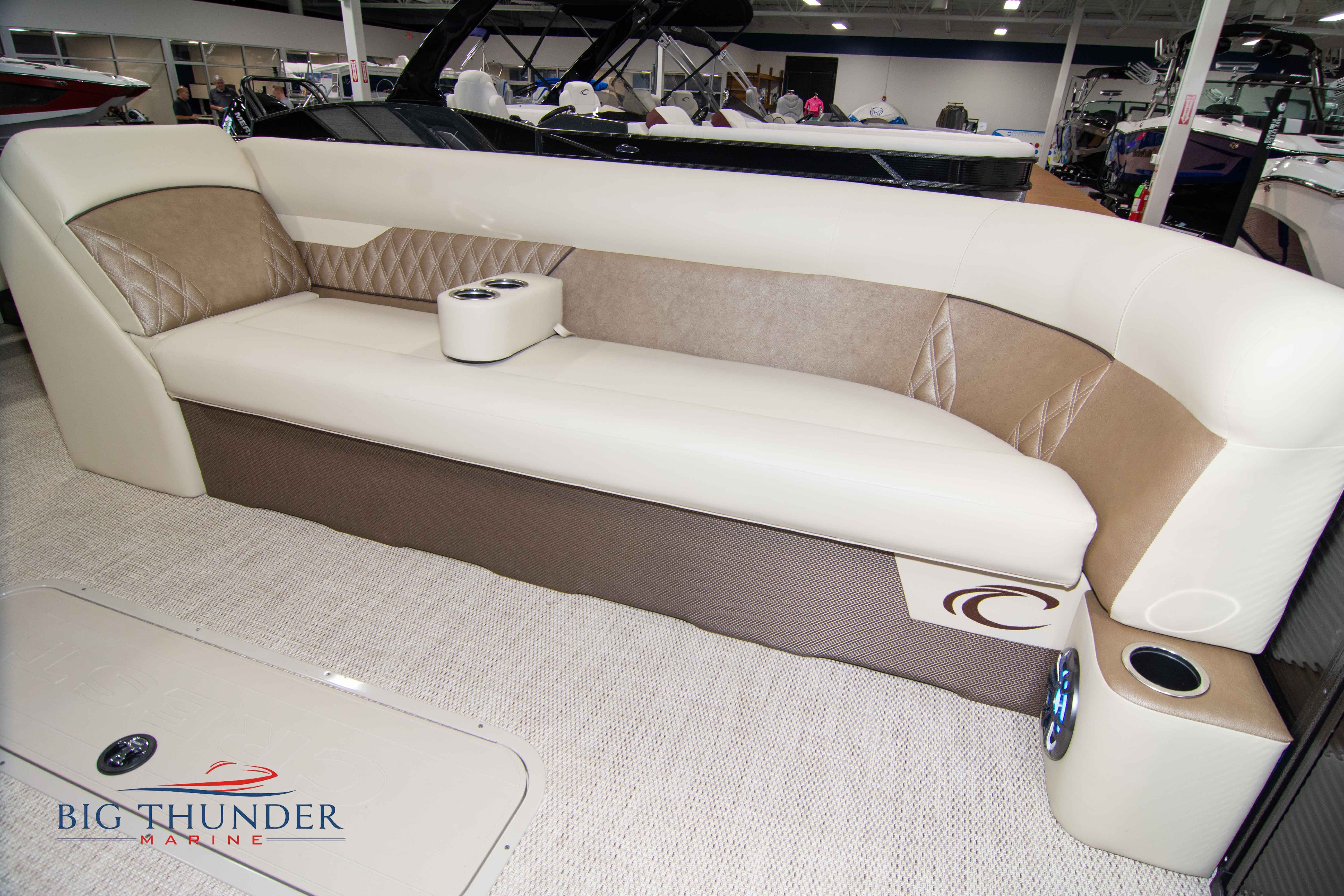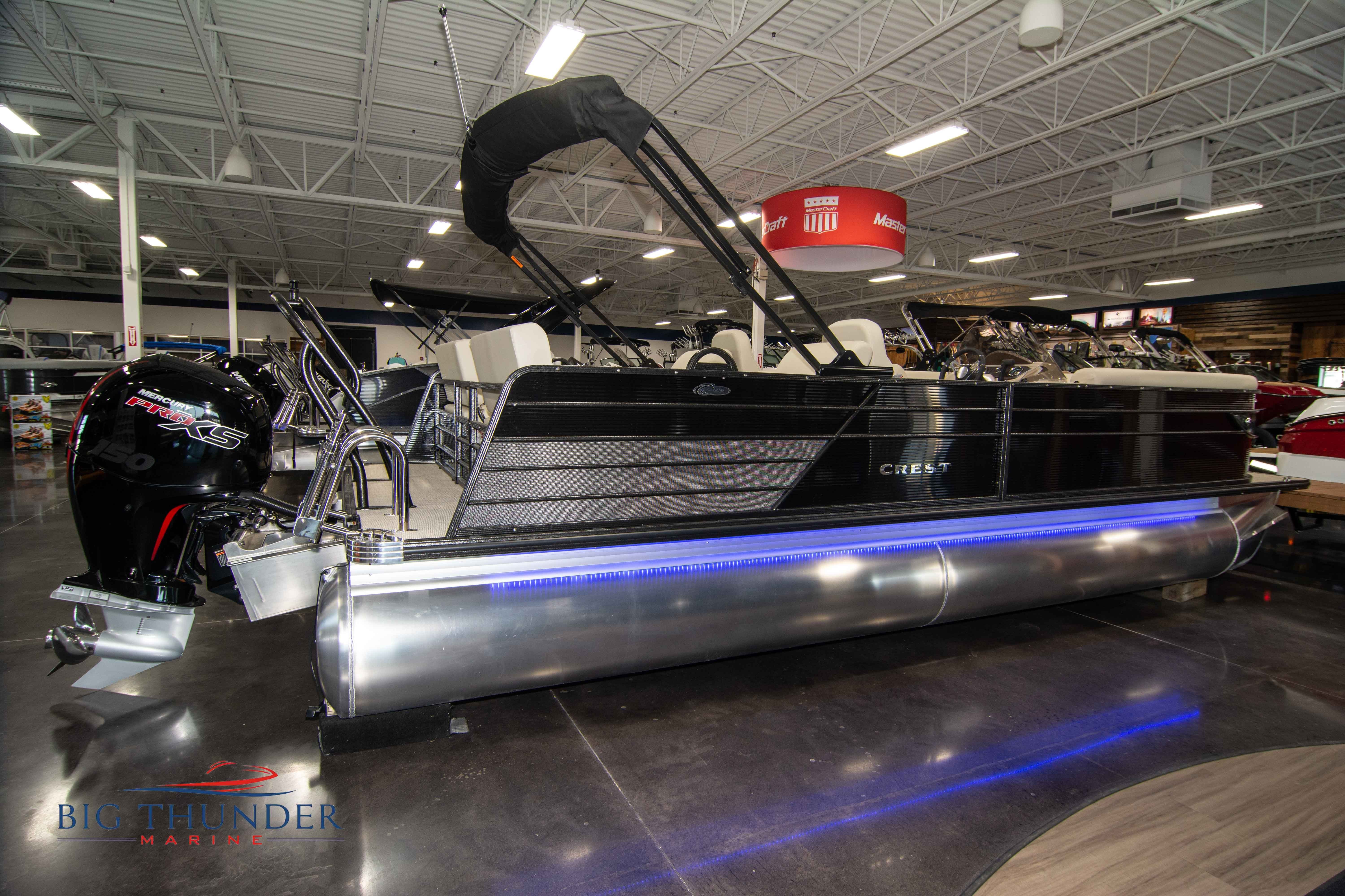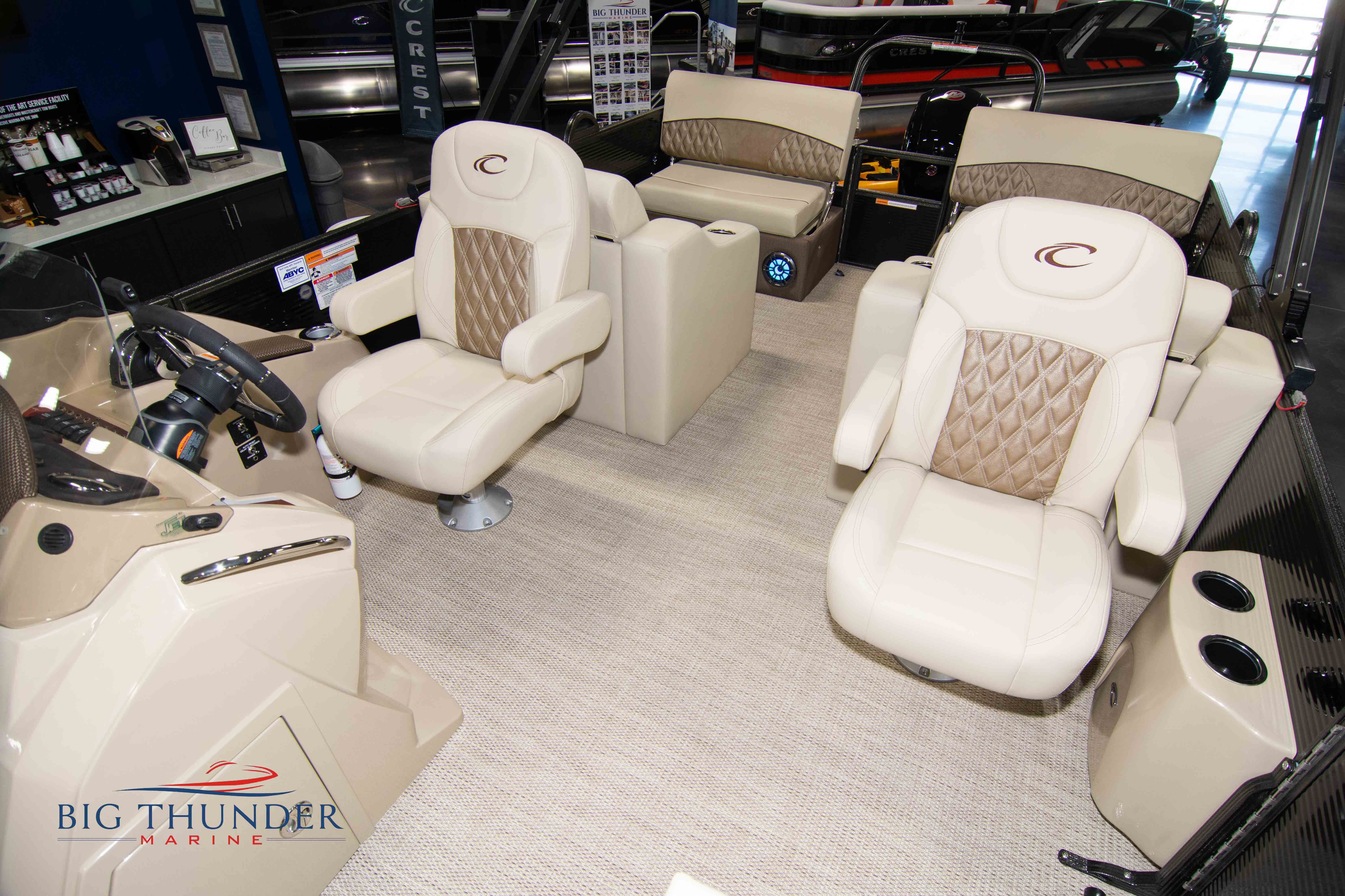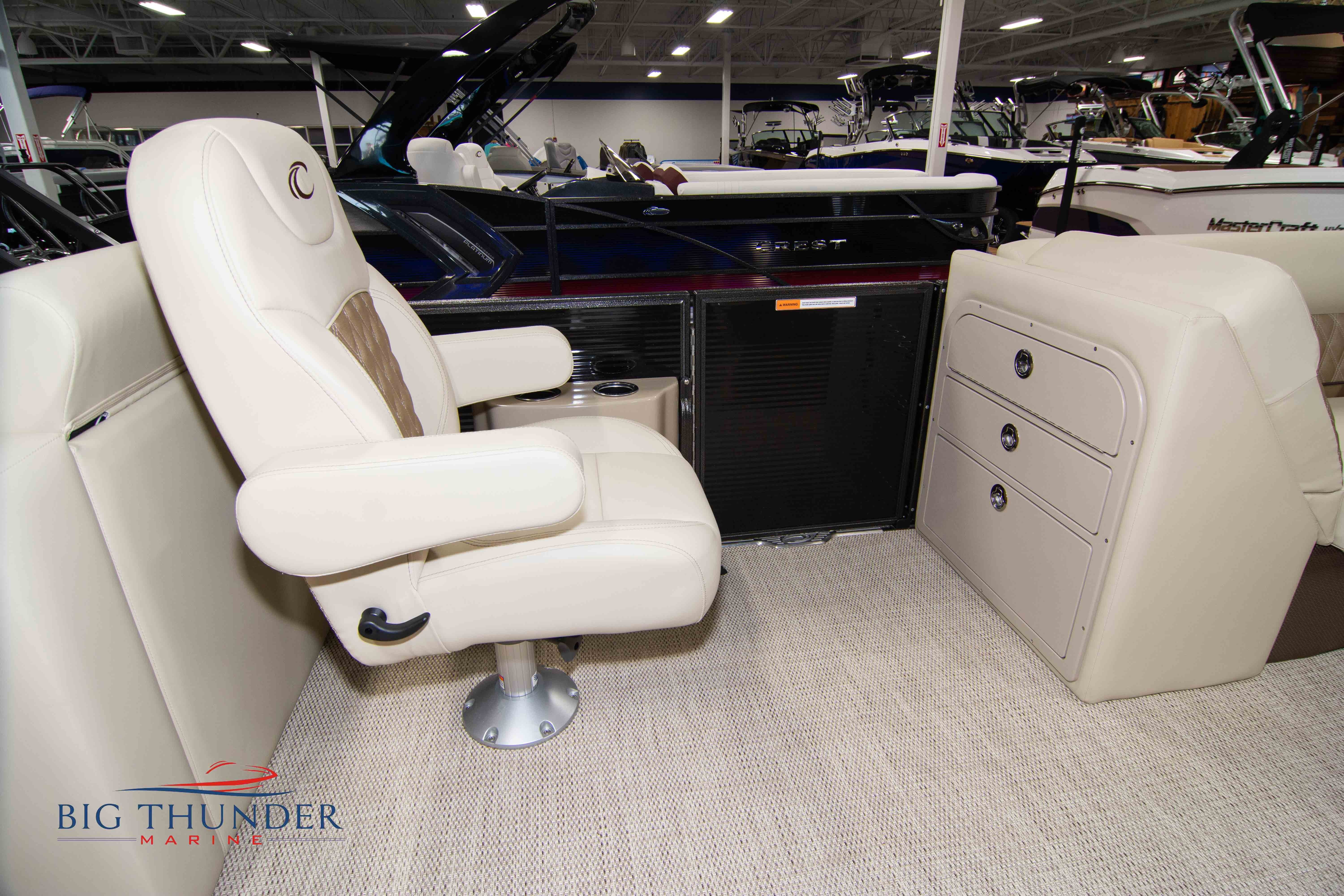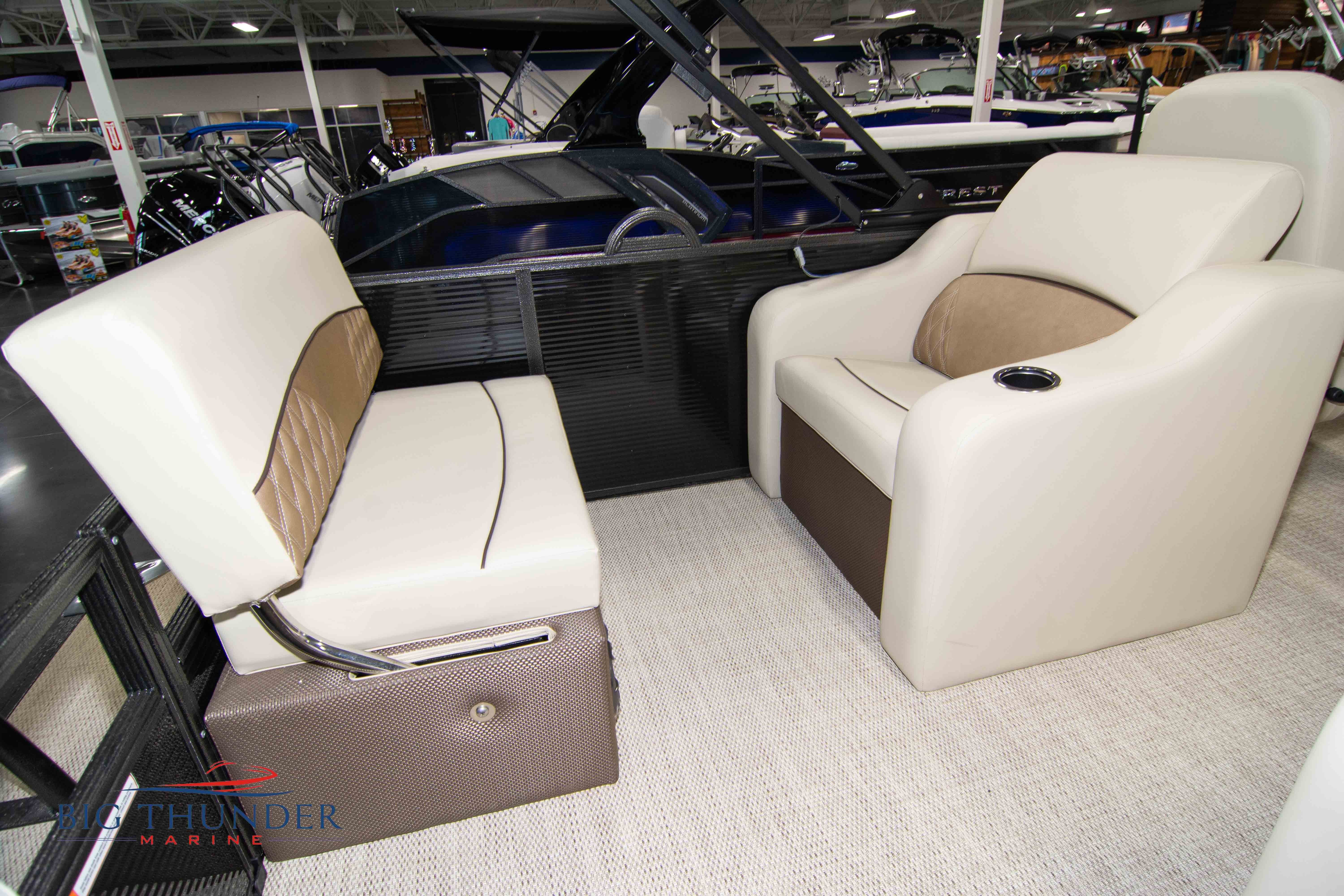 2020 Crest Classic Platinum 240 SLRC Luxury meets affordability in this versatile pontoon package. A modern take on a traditional pontoon design, the SLRC floorplan features dual convertible rear facing aft loungers. Some of the many great features on this model include: