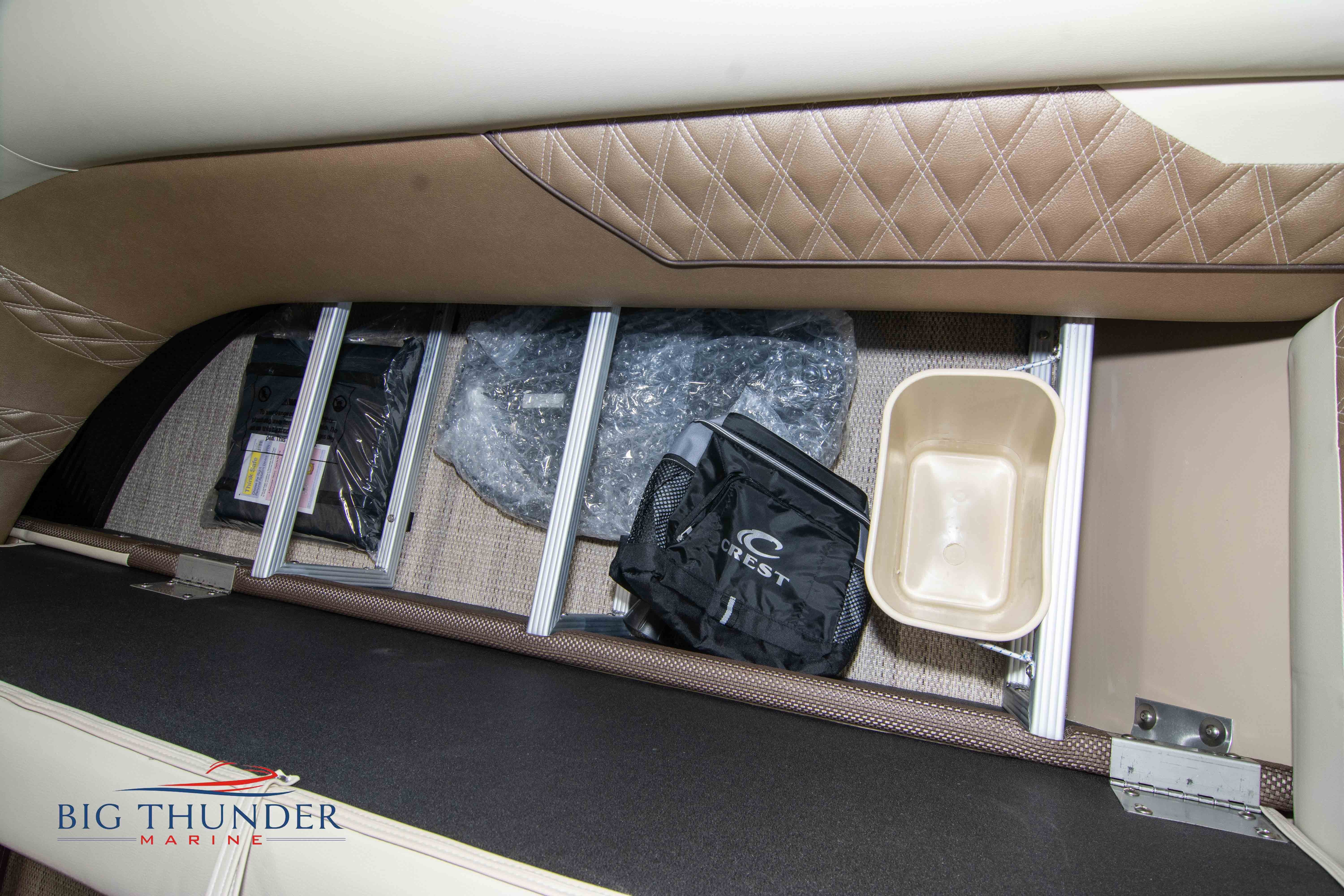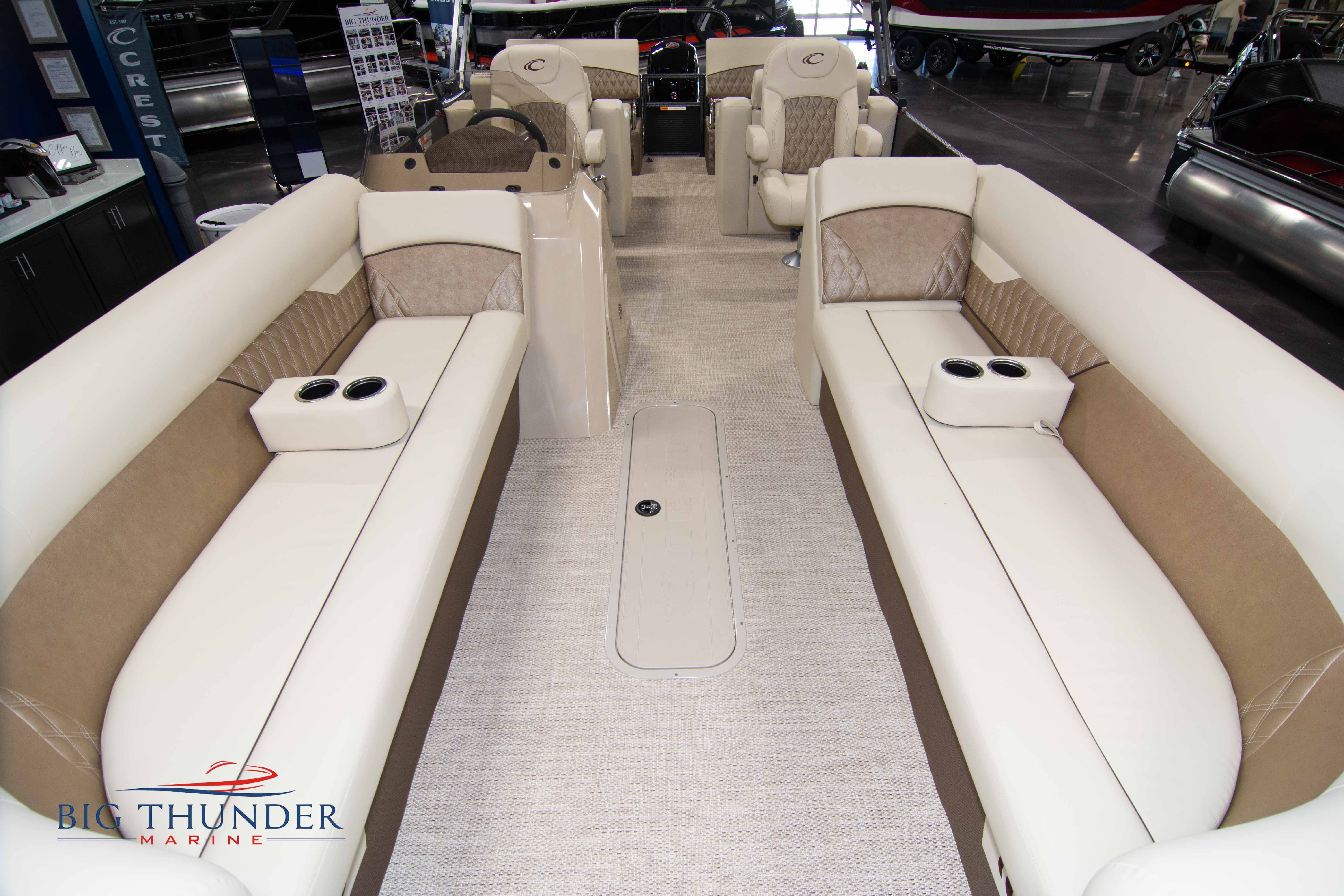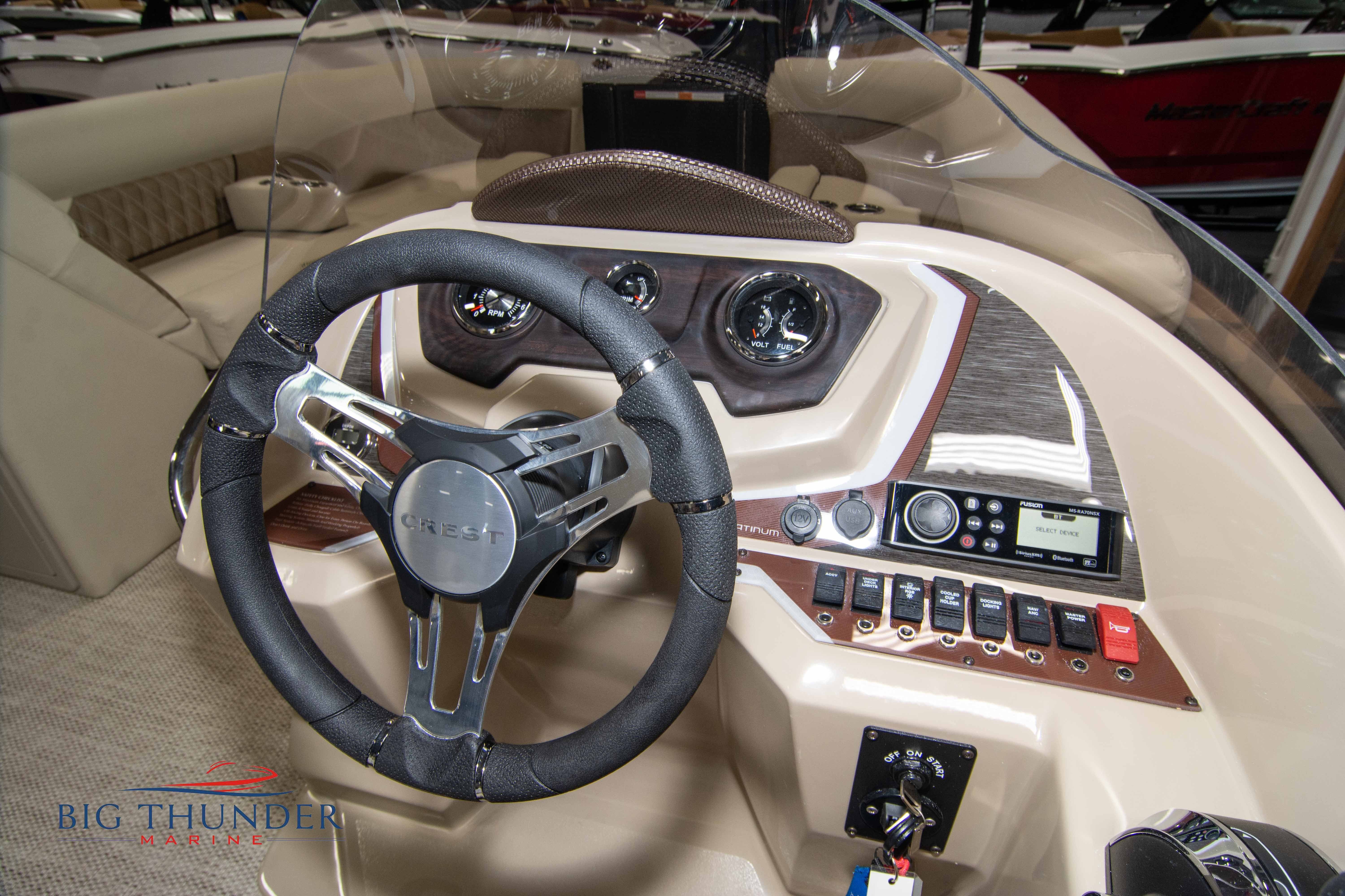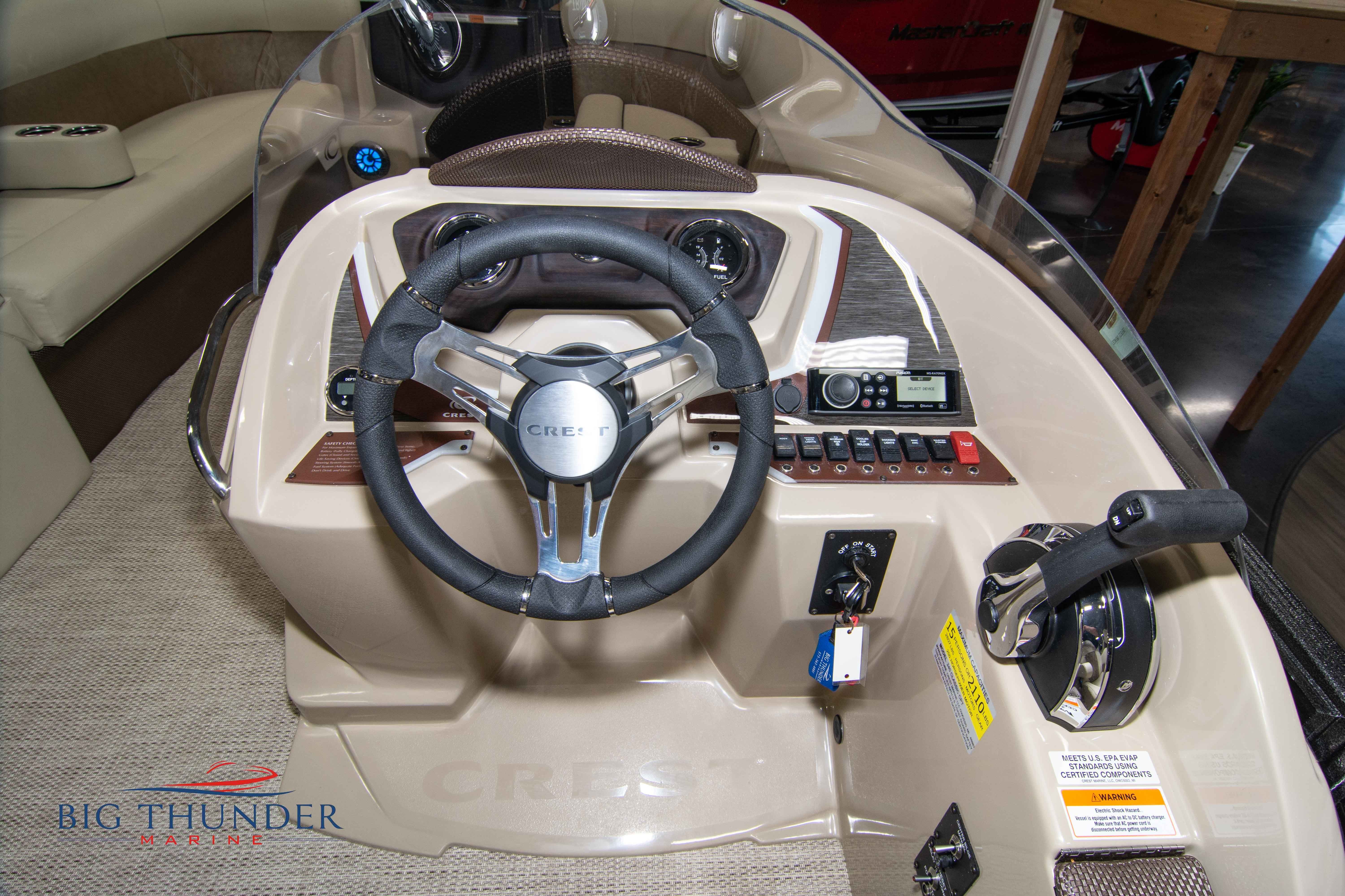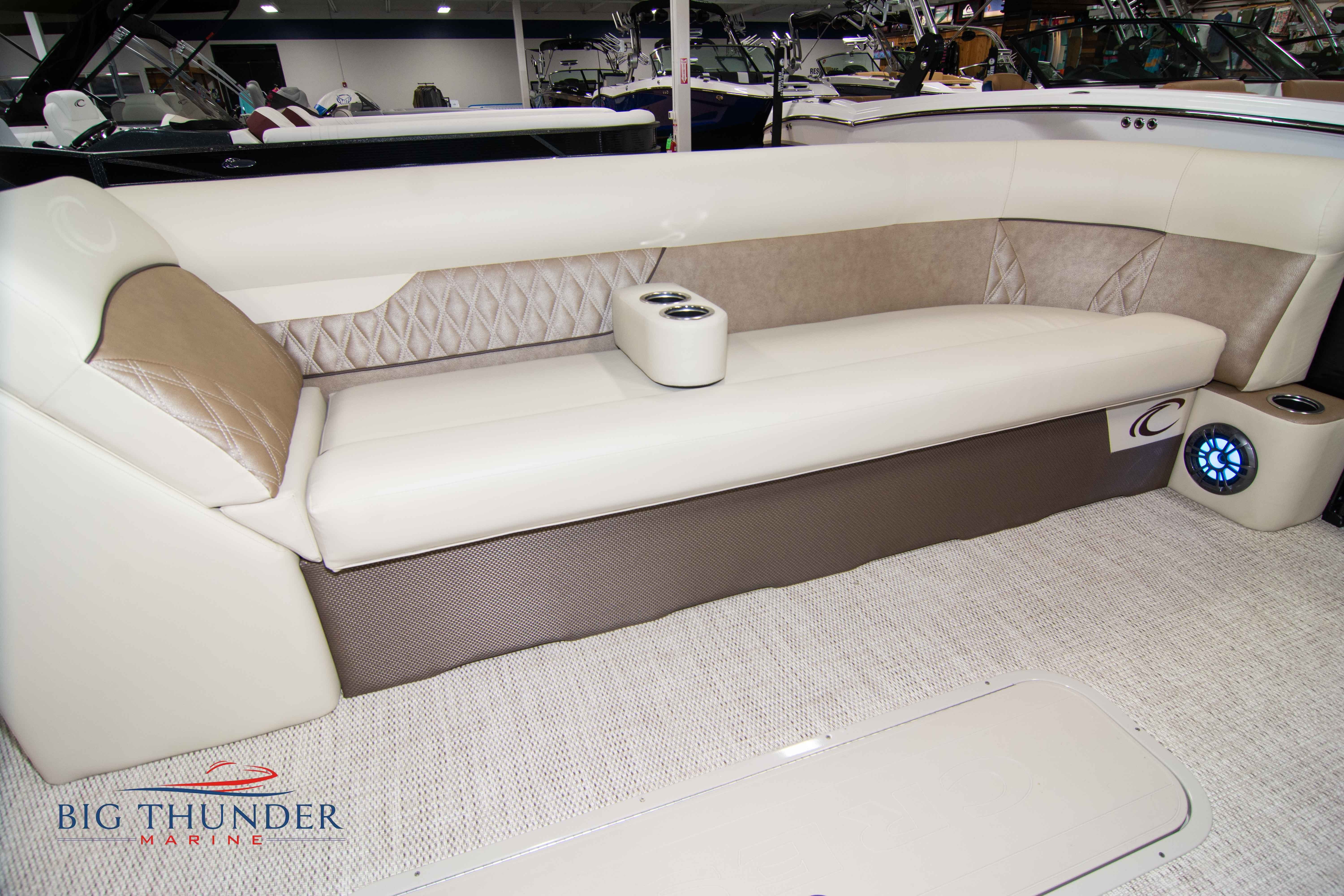 2020 Crest Classic Platinum 240 SLRC Luxury meets affordability in this versatile pontoon package. A modern take on a traditional pontoon design, the SLRC floorplan features dual convertible rear facing aft loungers. Some of the many great features on this model include: