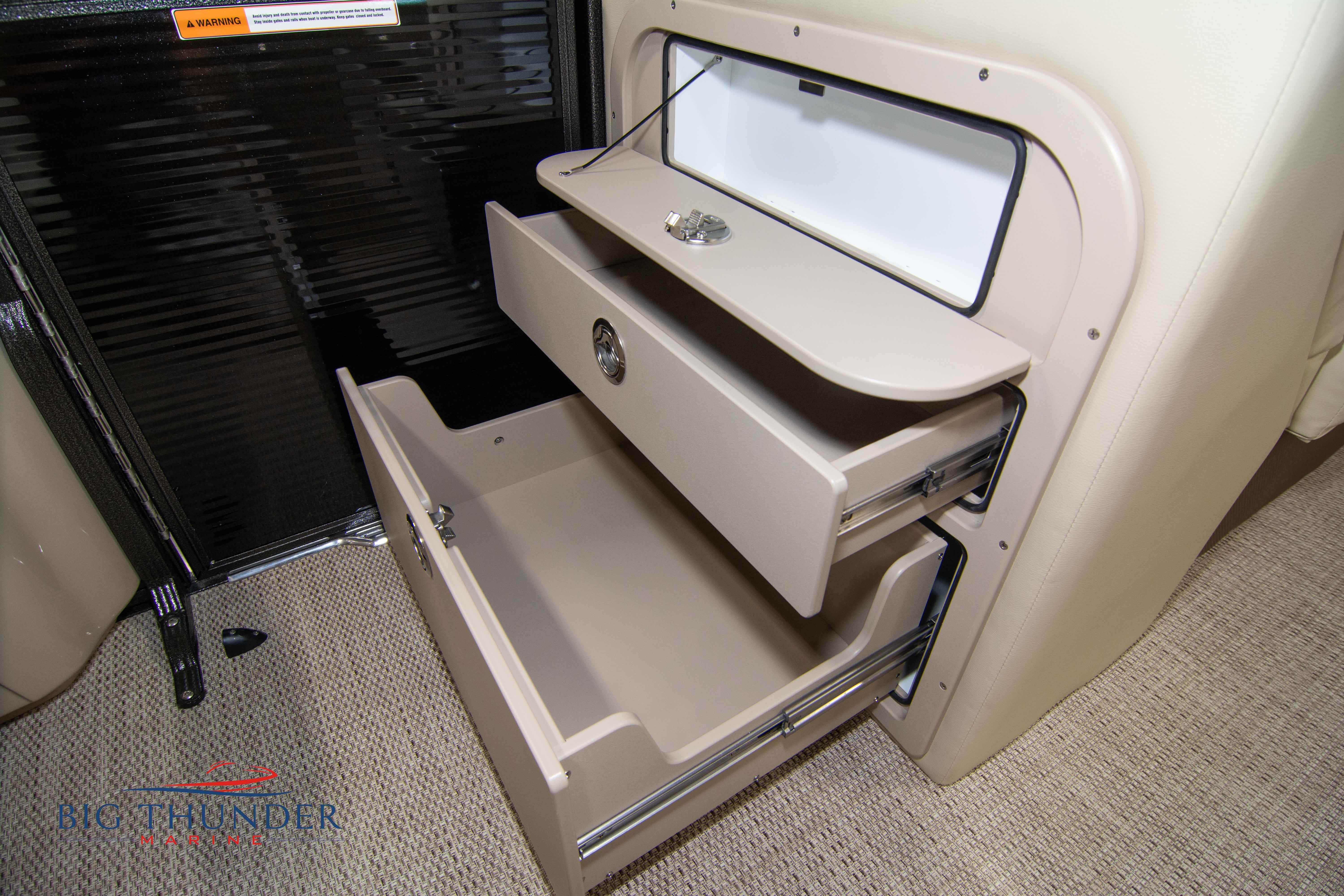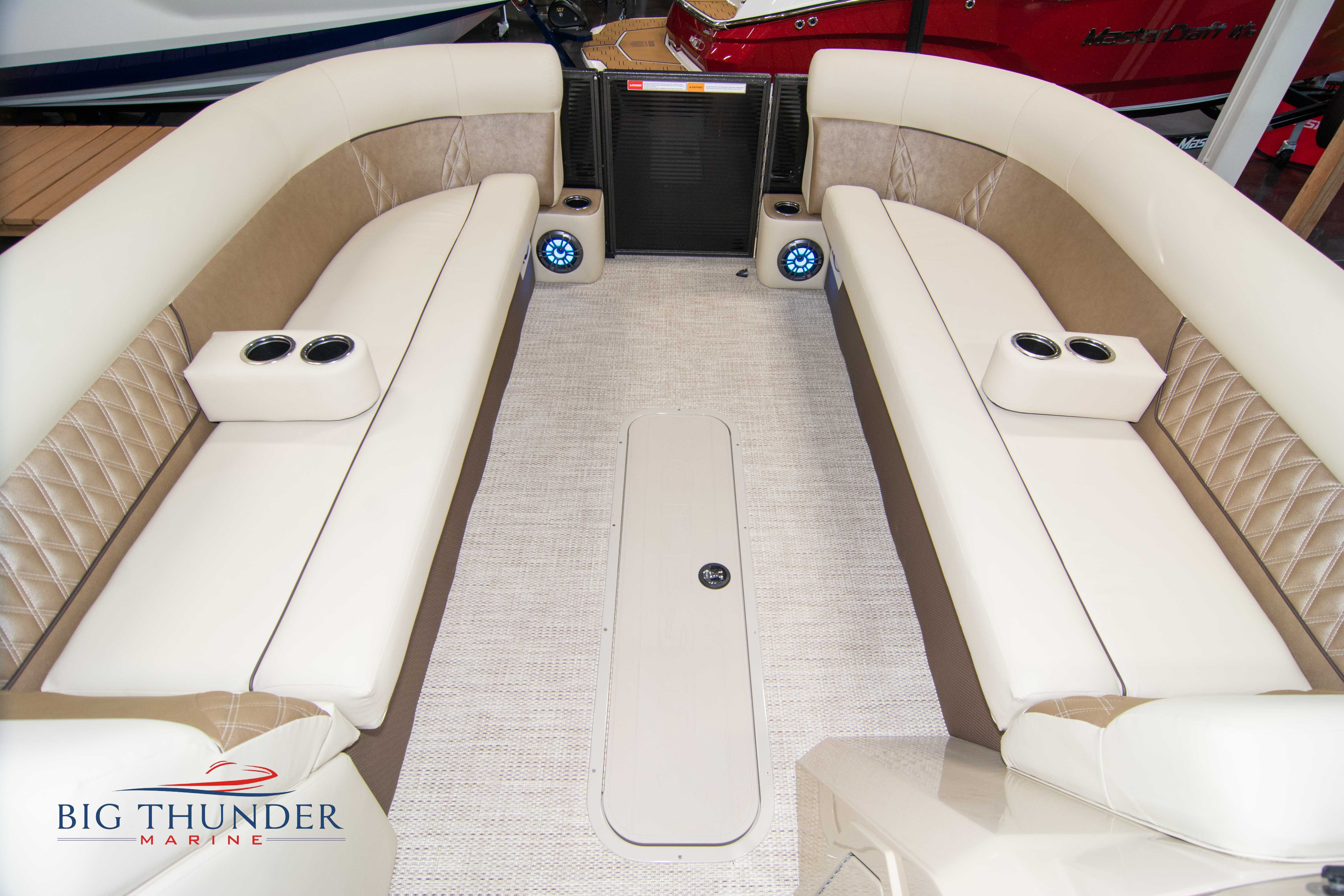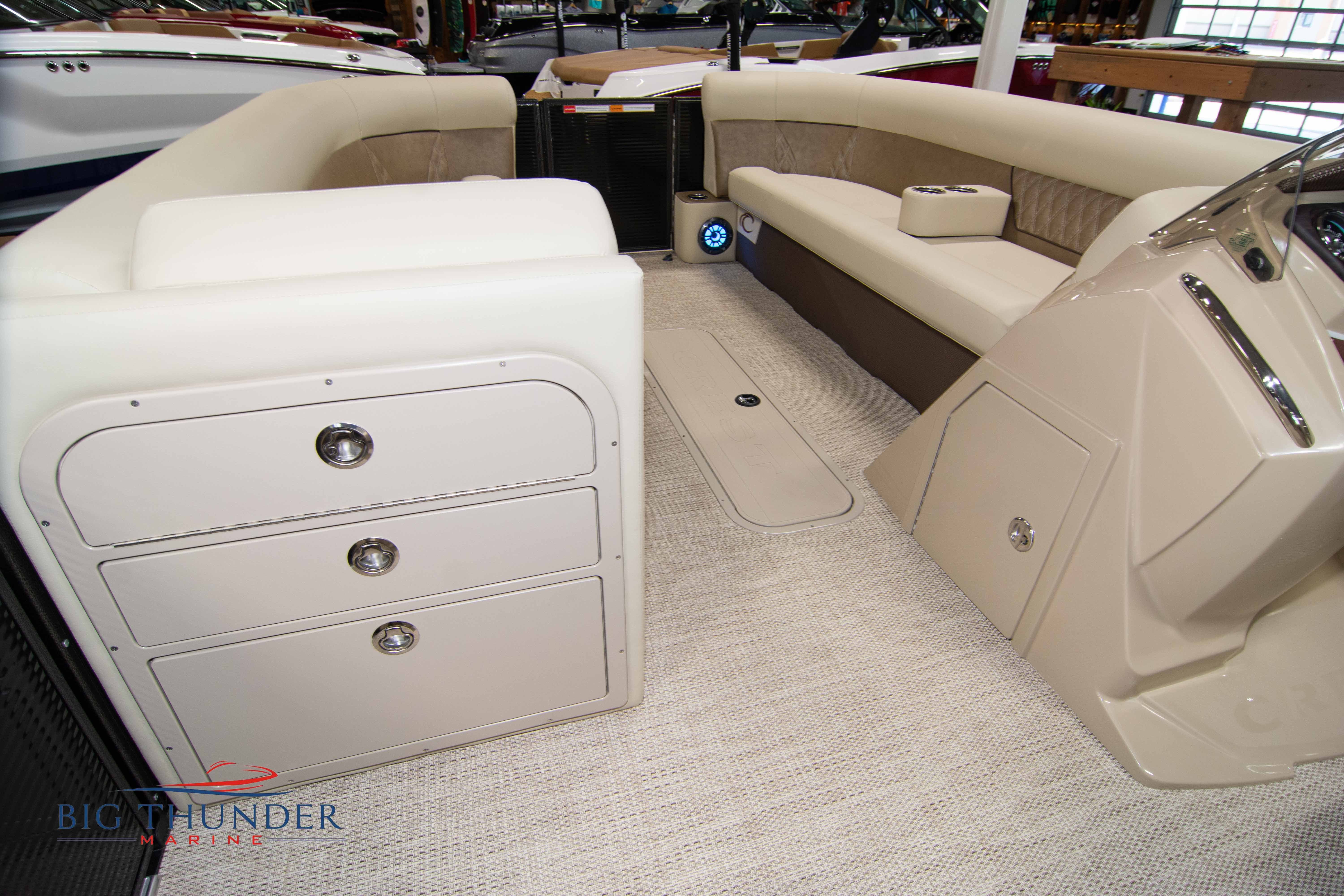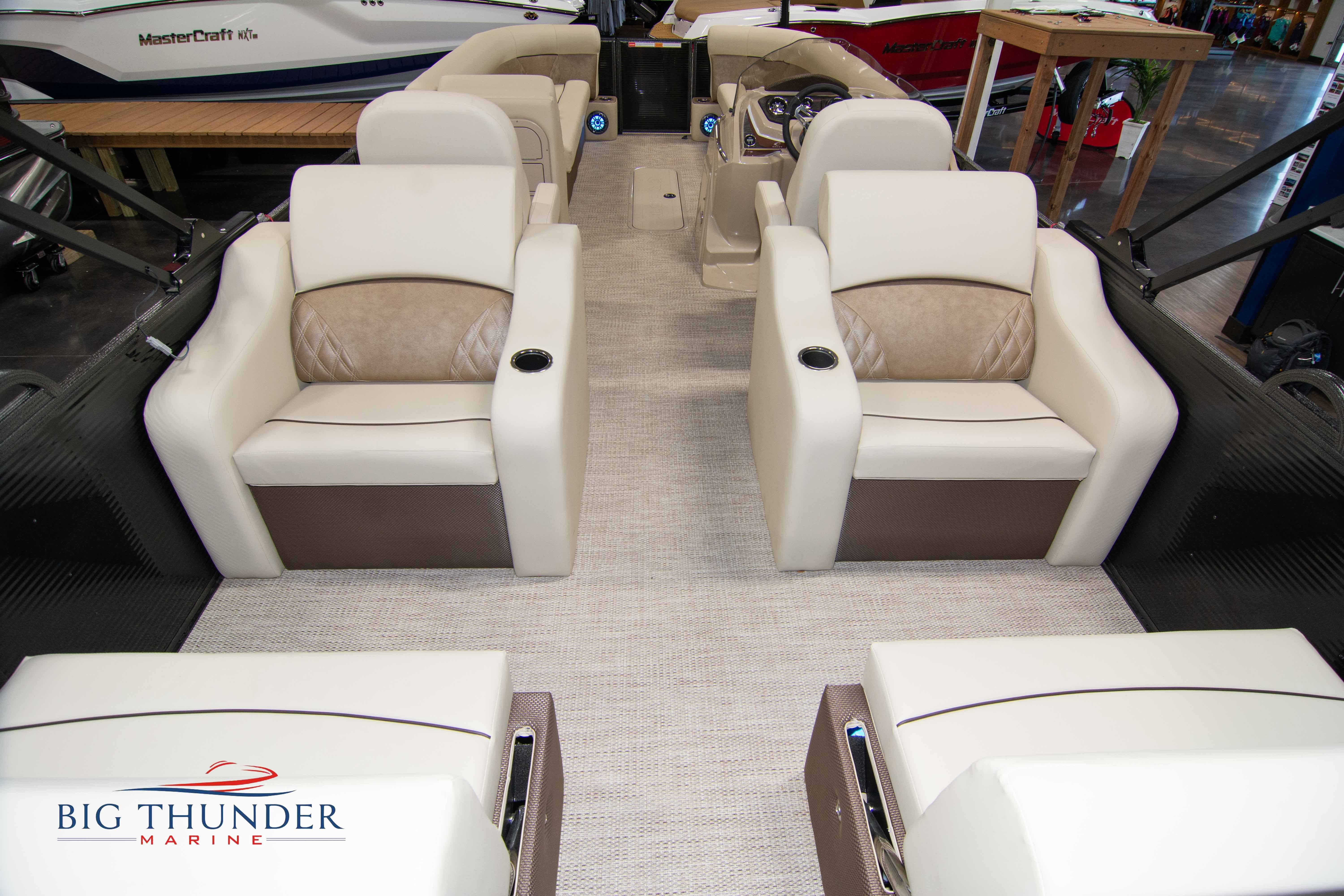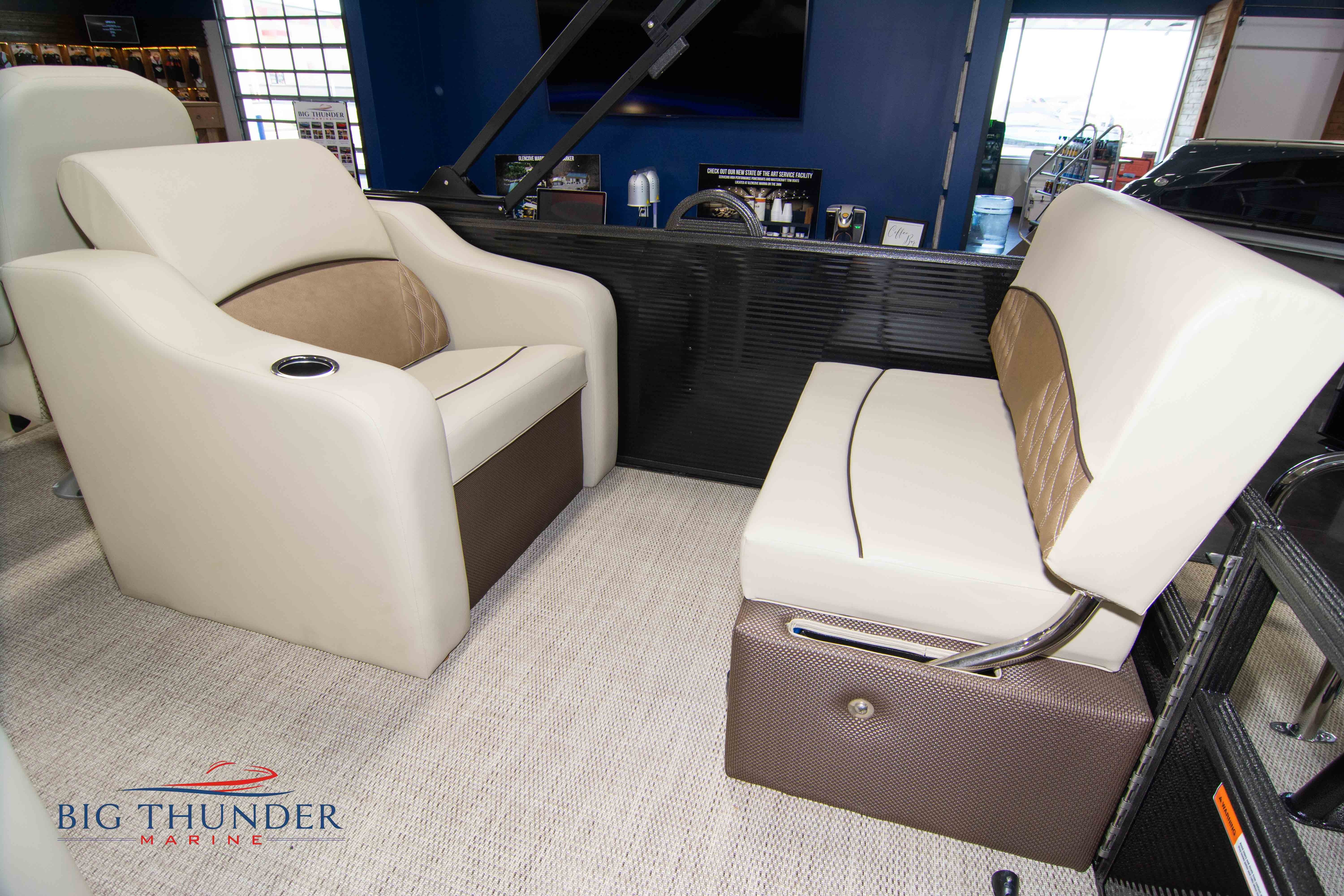 2020 Crest Classic Platinum 240 SLRC Luxury meets affordability in this versatile pontoon package. A modern take on a traditional pontoon design, the SLRC floorplan features dual convertible rear facing aft loungers. Some of the many great features on this model include: