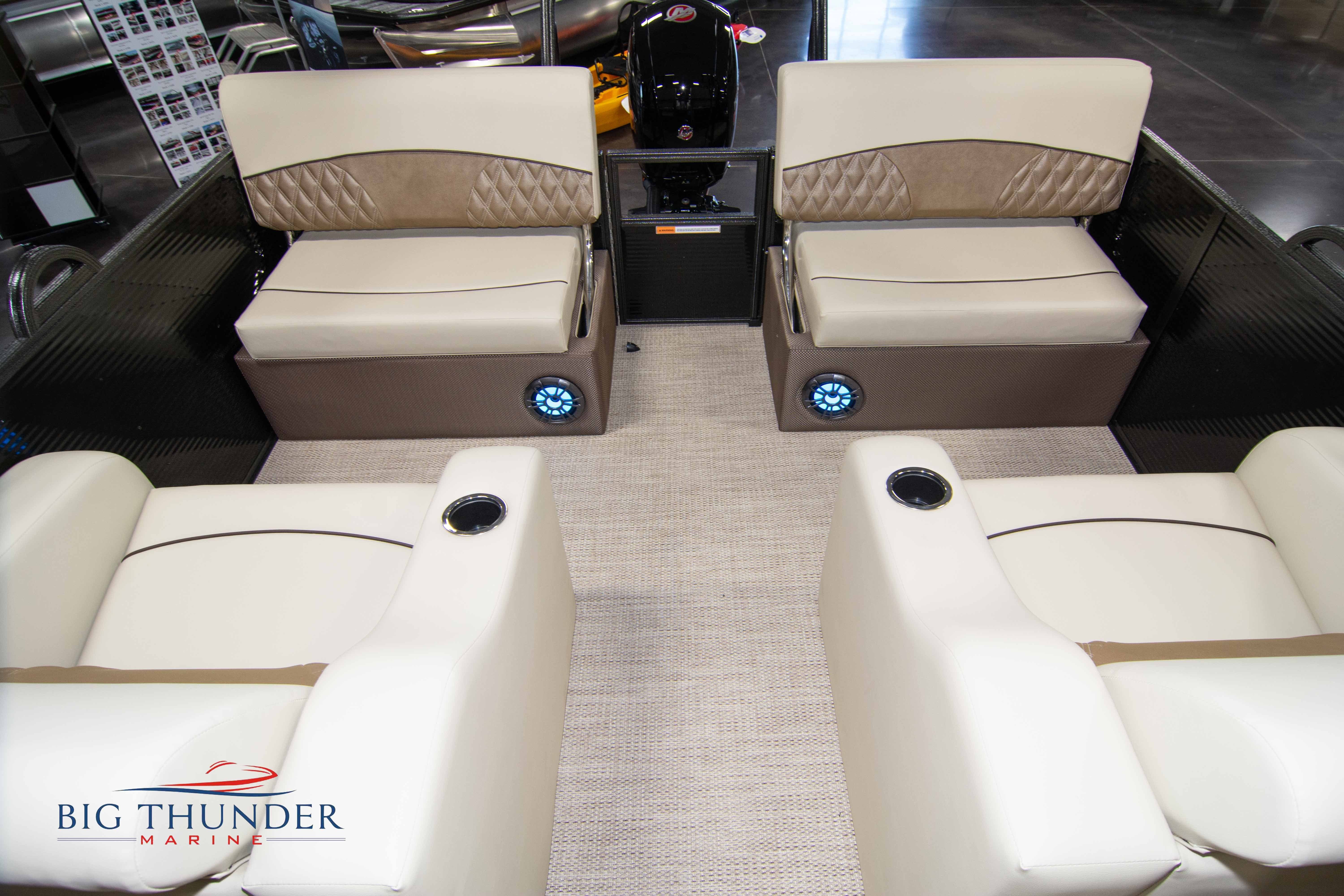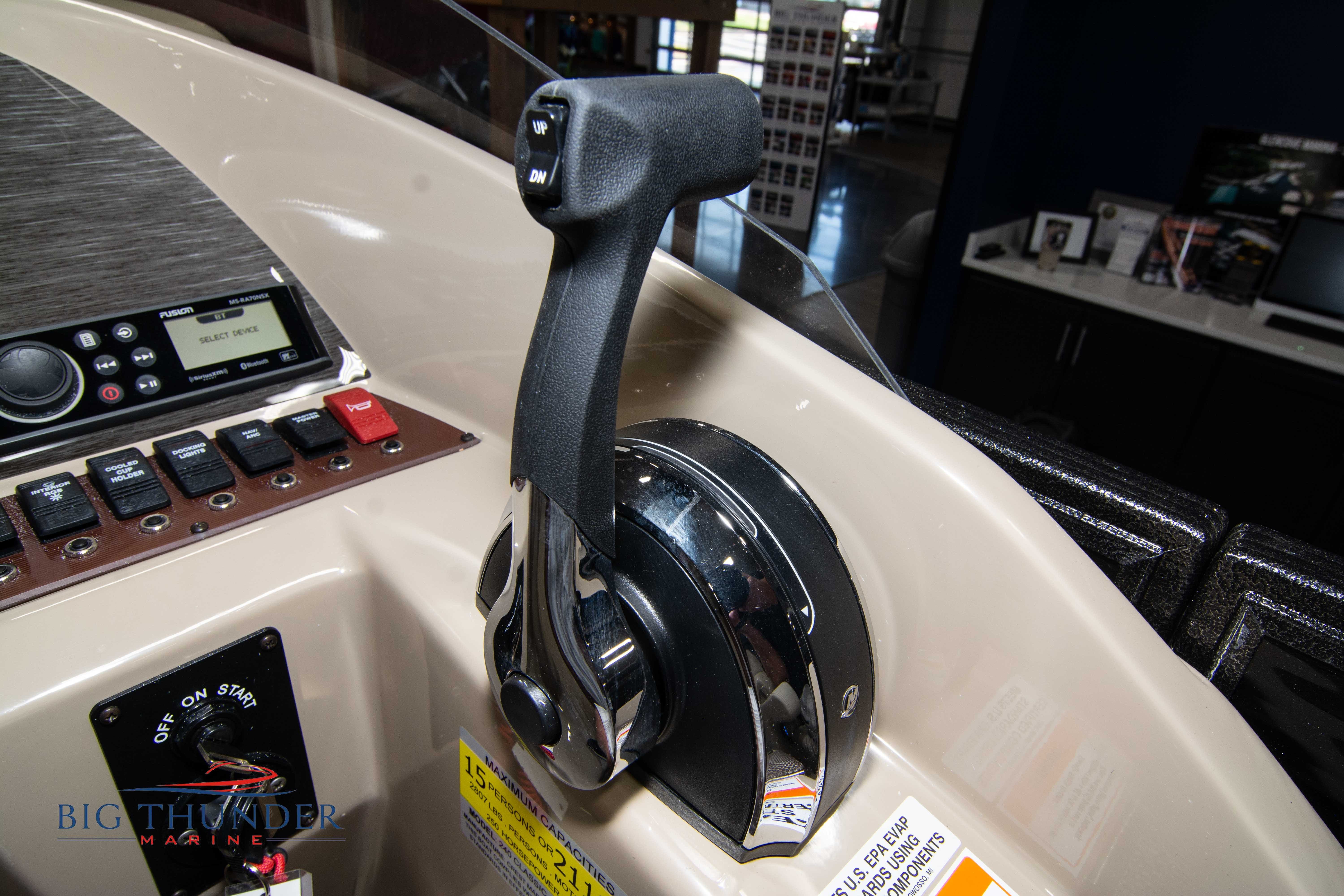 Mercury Mechanical Pre-Rig. Mercury 150L Pro XS. Mercury Mechanical Shift & Analog Gauges. Black Metallic Wall Panels. Fiberglass Light Pods & SS Mesh Accents. Graphite Textured HD Powder Coated Rails. Graphite Powder Coated Deck Trim. Rub Rail. Tan Soft Touch Vinyl. Tan Blended Tweed SeaGrass Flooring. Black Anodized Power Electric Bimini Top. Blue LED Underdeck Lighting. CPT Standard Performance Pkg. (25"" Round Tubes, Aluminum Underskin, Lifting Strakes, SeaStar Hydraulic Steering, 48 Gal. Fuel Tank, ""Junior Beast"" Ski Tow Bar). Dual Battery Switch & Boxes w/ Tie Downs & Battery Charger. 29"" Mid Back Reclining Helm Chairs (2). Platinum Helm Upgrade. Depthfinder. Trim, Tach, Volt, & Fuel Gauges. Captain’s Cooled Drink Holder. Premium Audio Pkg. (Fusion Bluetooth Stereo w/ (4) RGB LED Spkrs., RGB LED Sub & Amp). Mid Ship 3-Drawer Storage Unit. Oval Table. (2) Moveable Cupholders. Mooring Cover.