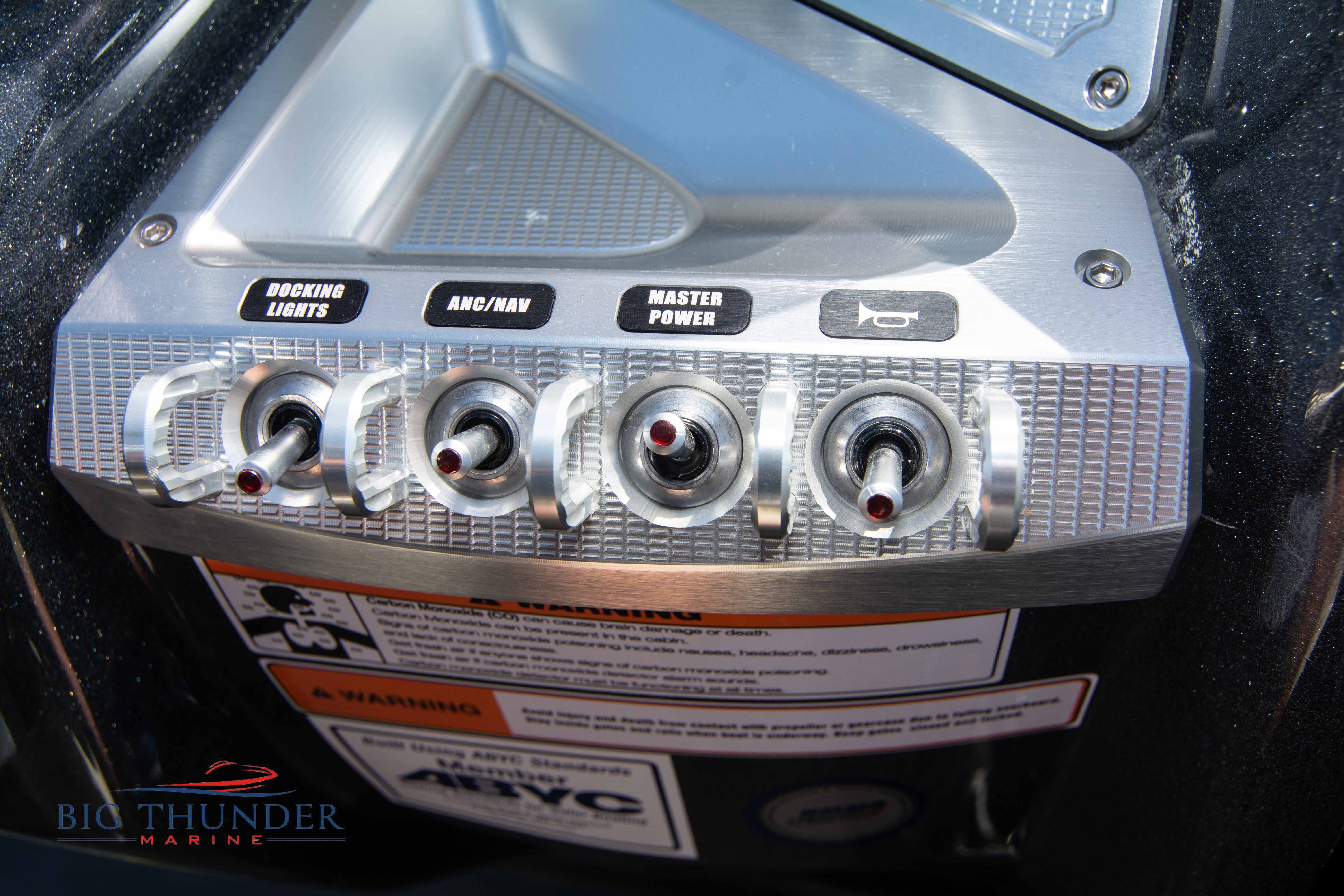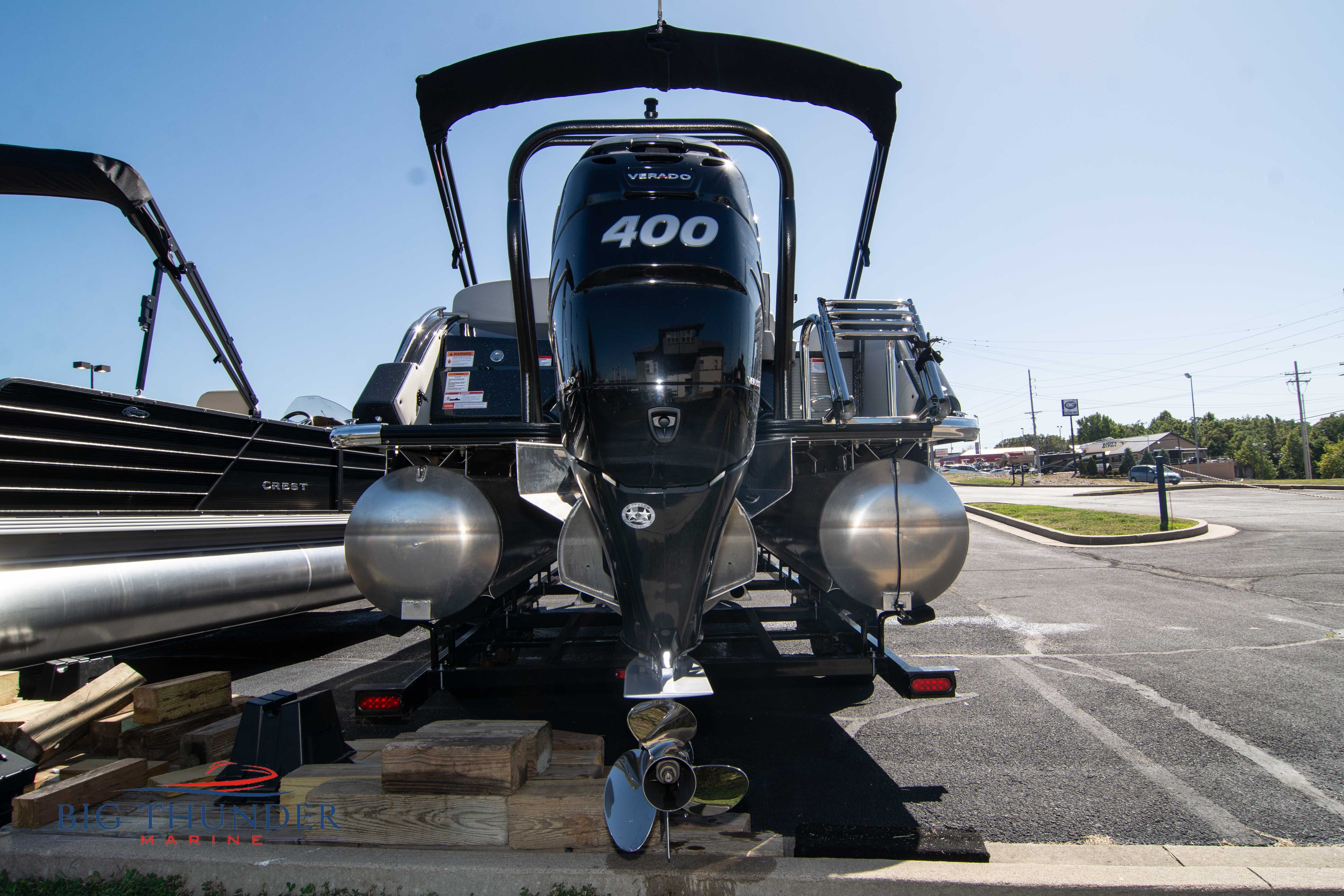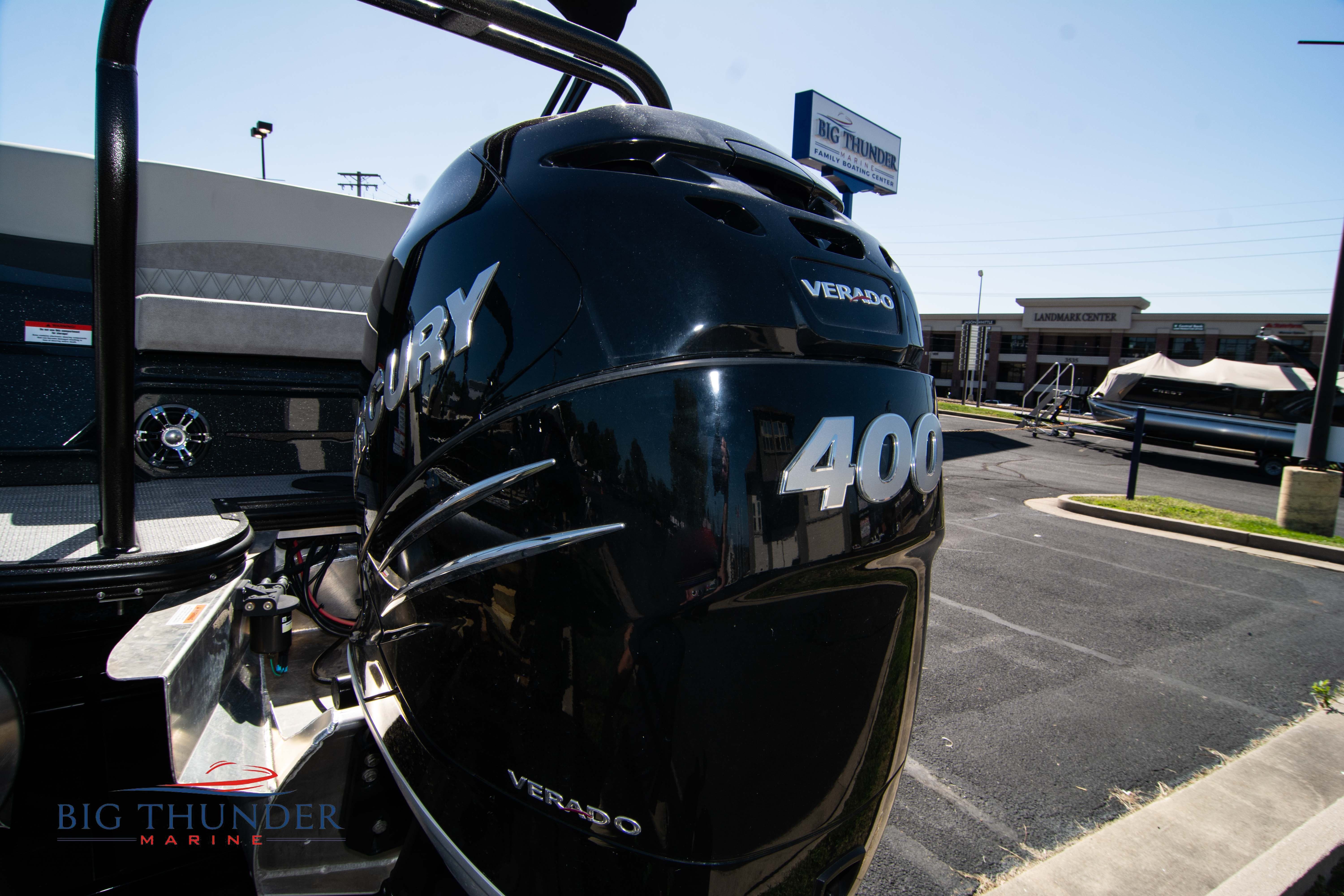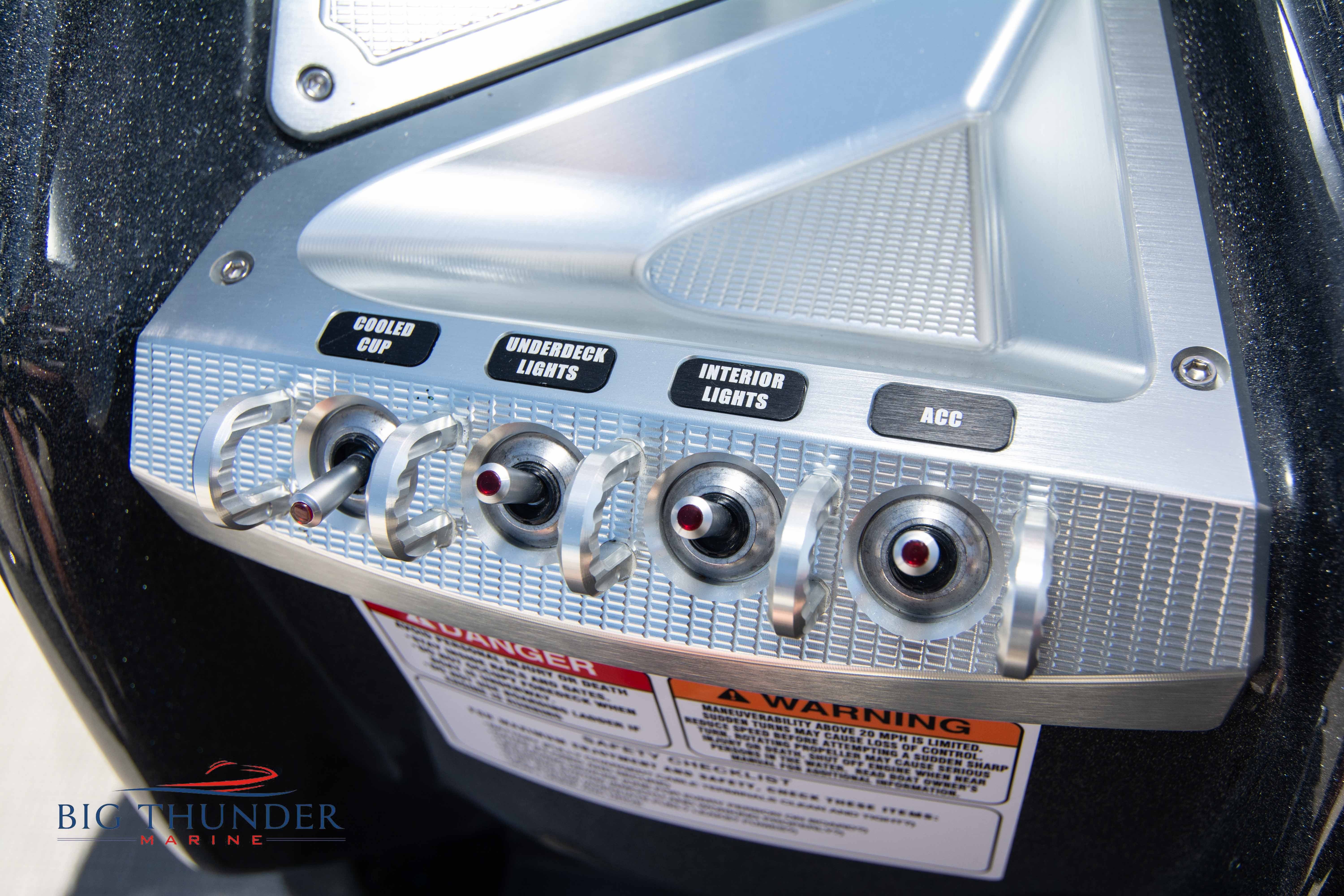 Mercury Digital Pre-Rig. Mercury 400L Verado 5.44"" 1.75 HD w/ DTS & SmartCraft Gauges. CP3 Performance Pkg. (Increases HP Rating to 400, 25"" Round Outer Tubes, 26"" Round Center Tube, Aluminum Underskin, Lifting Strakes, Electronic Power Steering, Dual Battery Switch & Boxes, Battery Charger, Deluxe Aluminum ""Junior Beast"" Ski Tow Bar, Integrated Transom). Steel Color Wall Panels w/ SS Mesh Inserts. Black Metal Flake Fiberglass Bow & Stern. Graphite Textured HD Powder Coated Rails. SS Rubrail Insert. Graphite Powder Coated Deck Trim. Powder Coated Junior Beast Ski Tow Bar Upgrade. Gray Interior Vinyl w/ Black Gelcoat. Gray Blended Tweed SeaGrass Flooring. Black Anodized Power Bimini Top. Power Slider 29"" Highback Helm Chair w/ Flip Up Bolster. Custom Aluminum Billet Instrument & Switch Panel. Captain’s Cooled Drink Holder. Premium Audio Pkg. (Fusion Bluetooth Stereo w/ LED Spkrs, LED Sub & Amp.) Blue LED Interior Lighting. Mid Ship 3-Drawer Storage Unit. (2) Moveable Cupholders. (2) Oval Tables. In Floor Storage Upgrade. Mooring Cover.