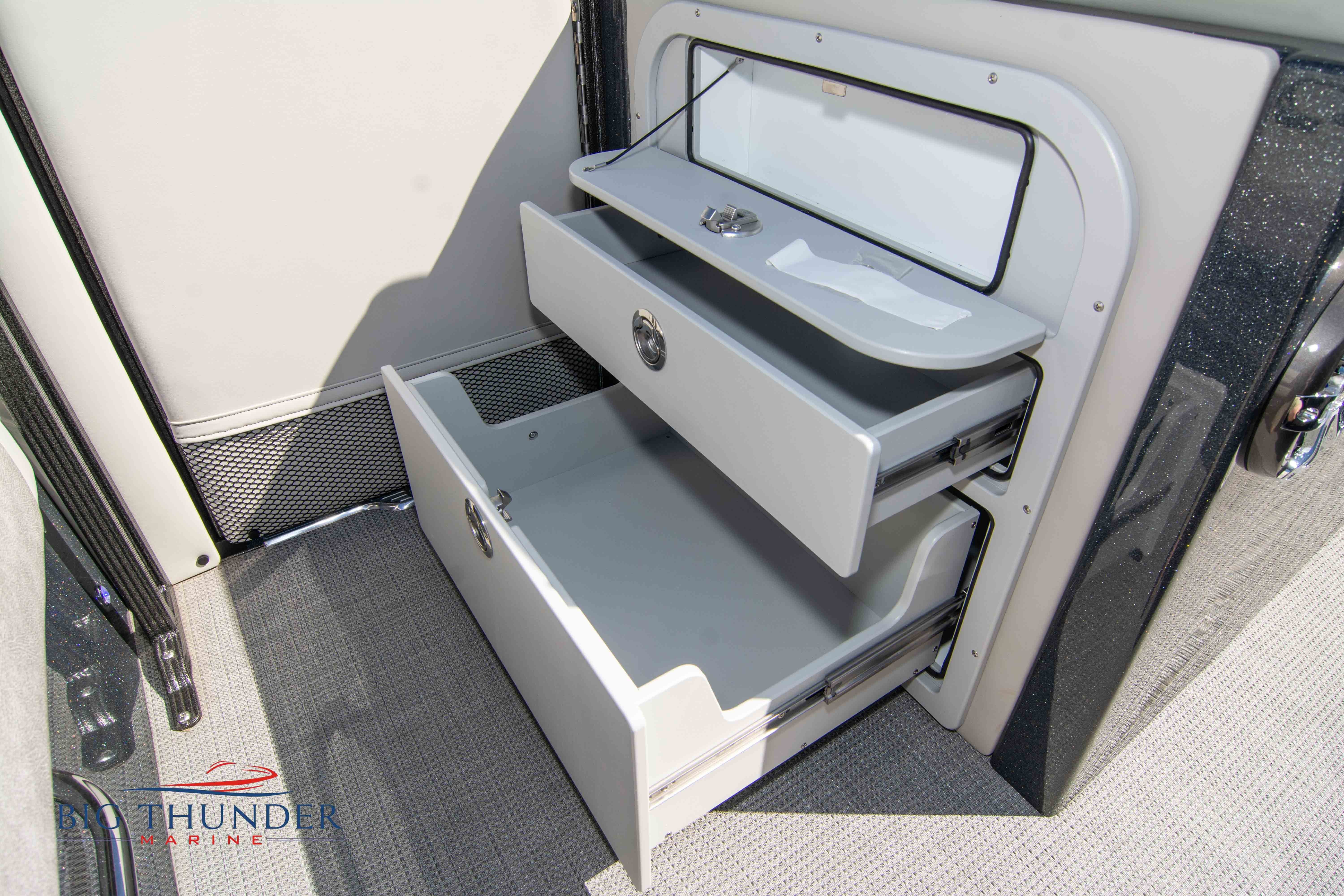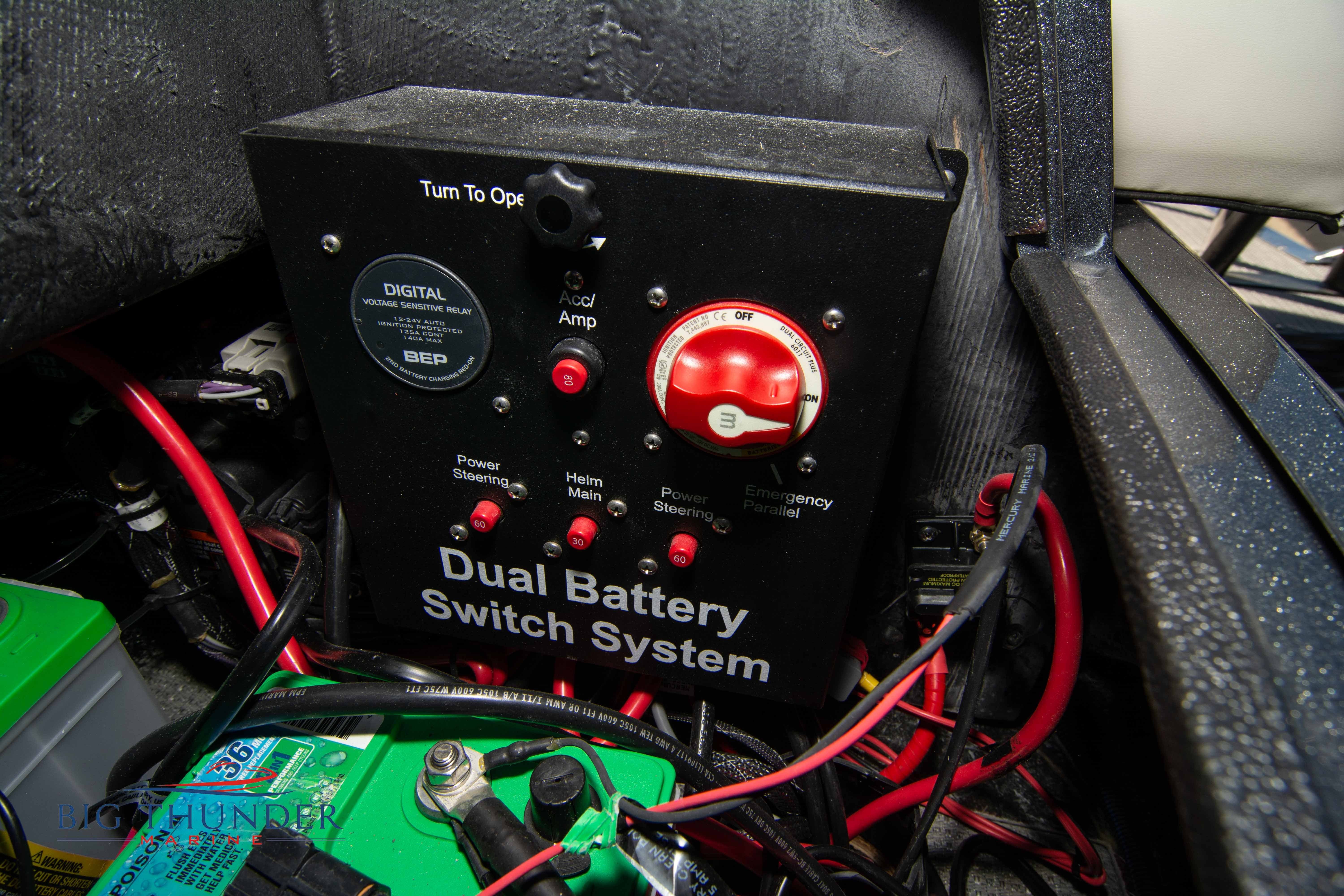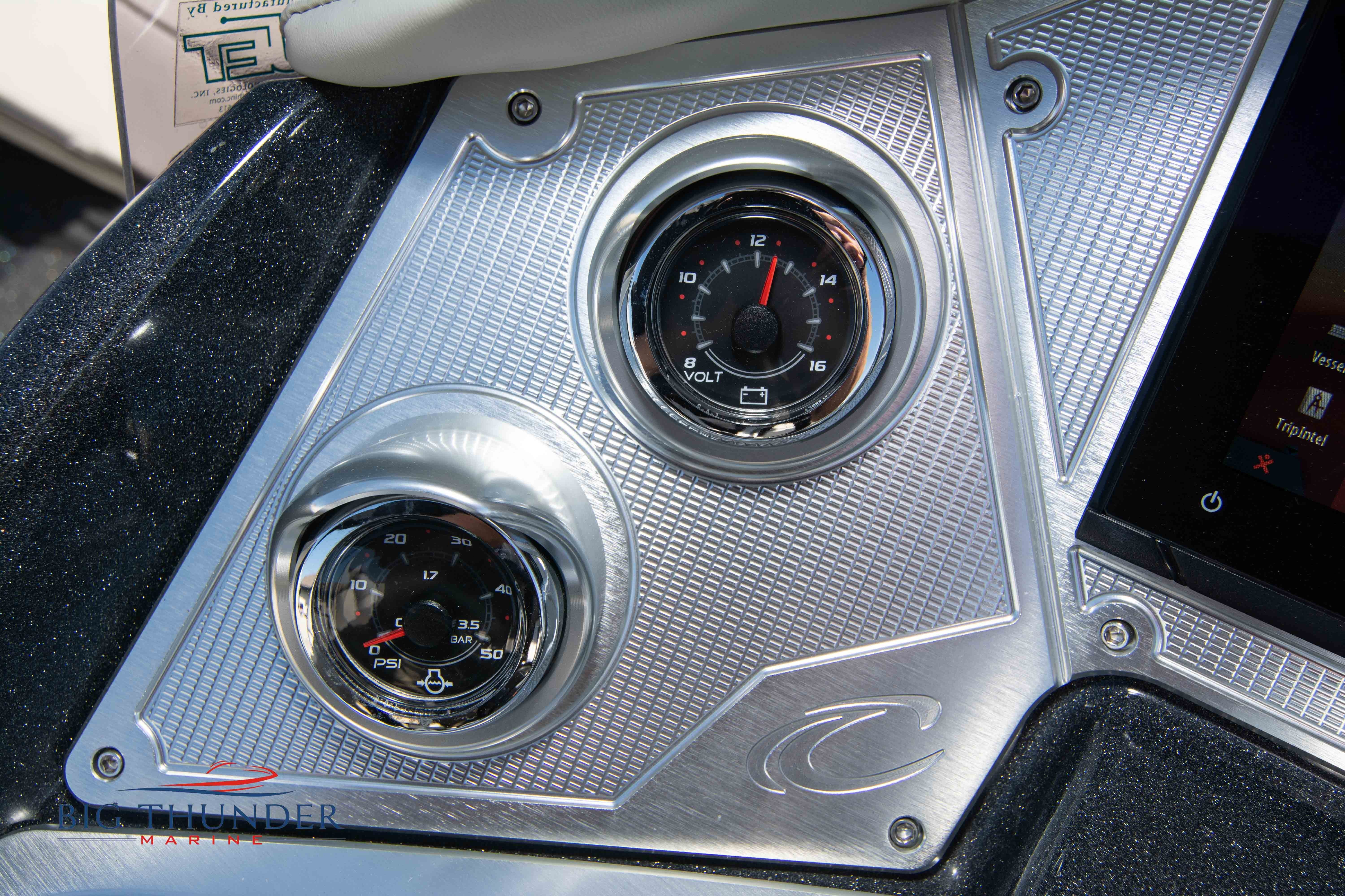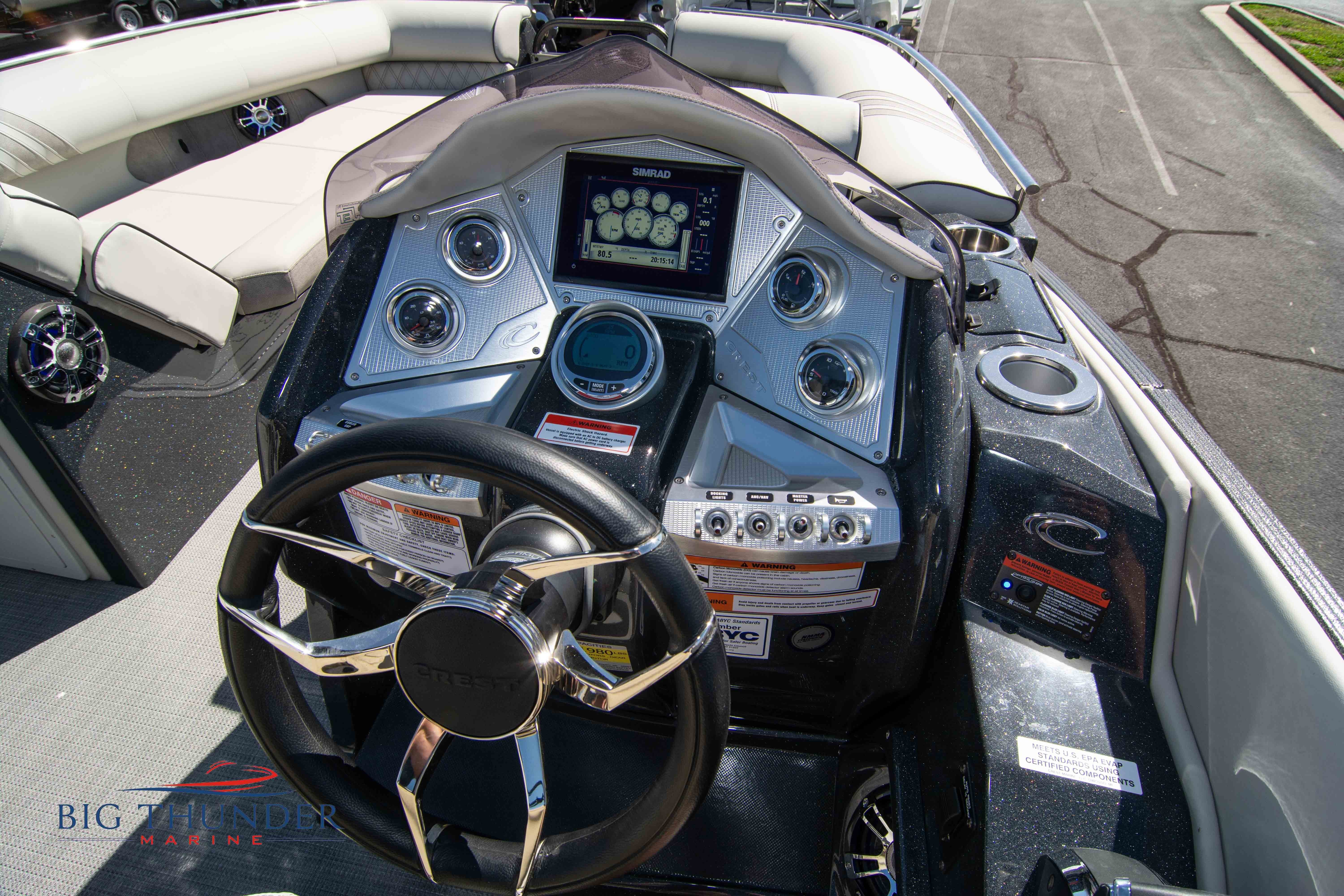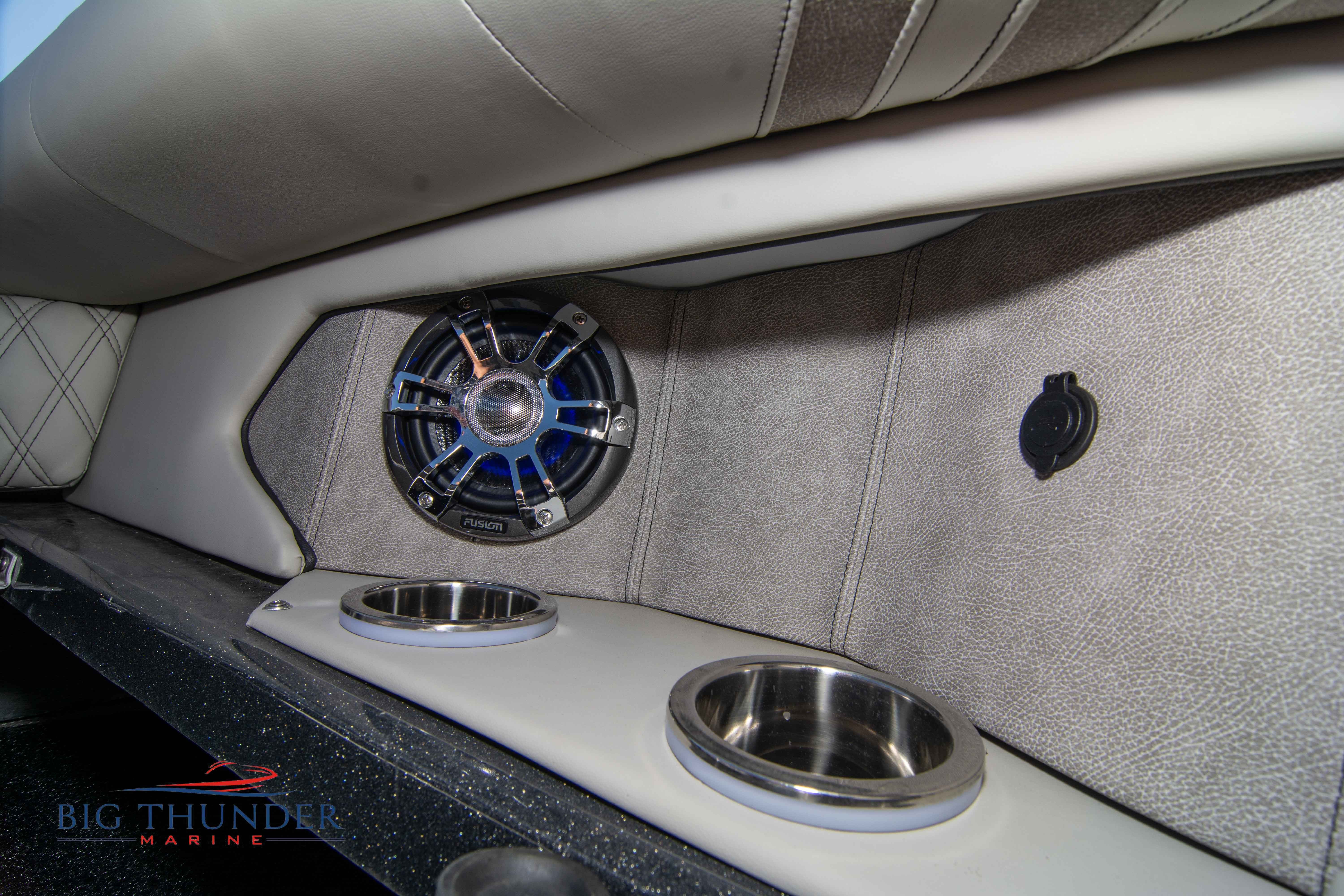 Mercury Digital Pre-Rig. Mercury 400L Verado 5.44"" 1.75 HD w/ DTS & SmartCraft Gauges. CP3 Performance Pkg. (Increases HP Rating to 400, 25"" Round Outer Tubes, 26"" Round Center Tube, Aluminum Underskin, Lifting Strakes, Electronic Power Steering, Dual Battery Switch & Boxes, Battery Charger, Deluxe Aluminum ""Junior Beast"" Ski Tow Bar, Integrated Transom). Steel Color Wall Panels w/ SS Mesh Inserts. Black Metal Flake Fiberglass Bow & Stern. Graphite Textured HD Powder Coated Rails. SS Rubrail Insert. Graphite Powder Coated Deck Trim. Powder Coated Junior Beast Ski Tow Bar Upgrade. Gray Interior Vinyl w/ Black Gelcoat. Gray Blended Tweed SeaGrass Flooring. Black Anodized Power Bimini Top. Power Slider 29"" Highback Helm Chair w/ Flip Up Bolster. Custom Aluminum Billet Instrument & Switch Panel. Captain’s Cooled Drink Holder. Premium Audio Pkg. (Fusion Bluetooth Stereo w/ LED Spkrs, LED Sub & Amp.) Blue LED Interior Lighting. Mid Ship 3-Drawer Storage Unit. (2) Moveable Cupholders. (2) Oval Tables. In Floor Storage Upgrade. Mooring Cover.