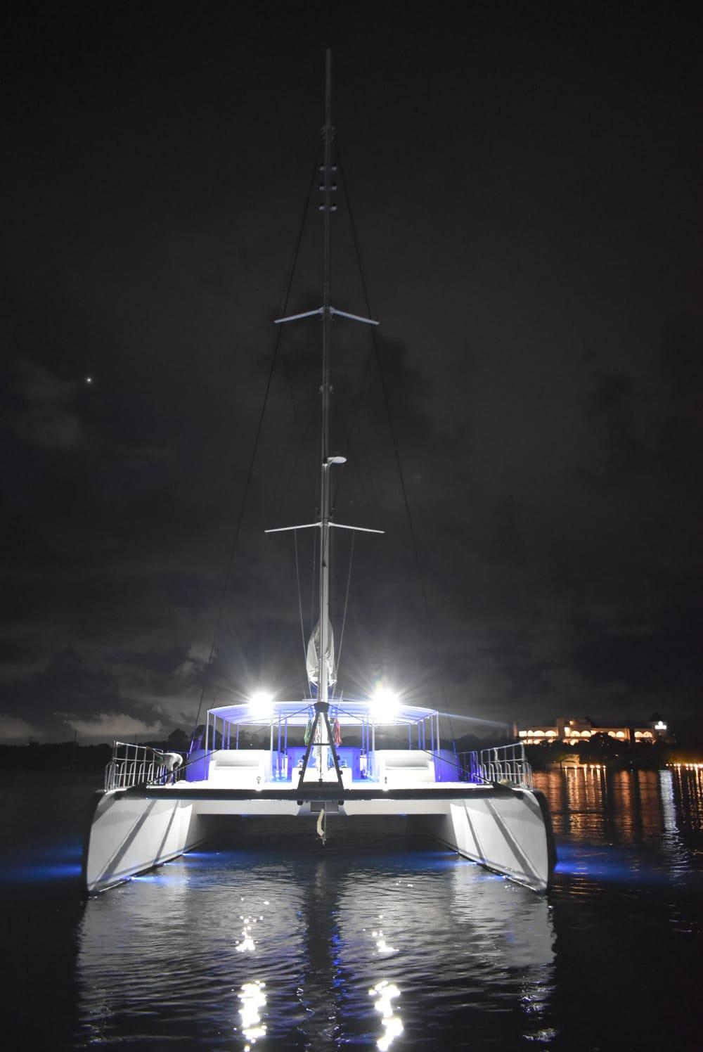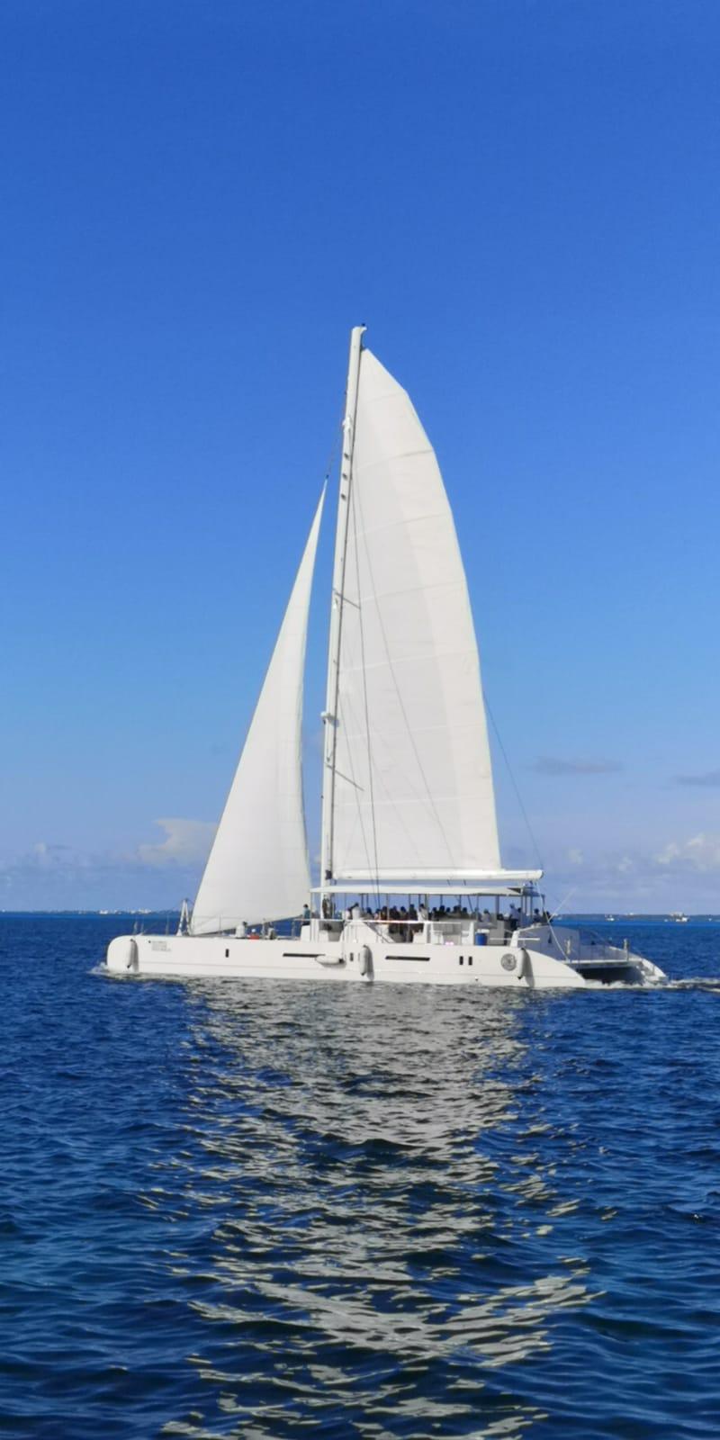"Sea Compass 82" Catamaran in Cancun, Quintana Roo, Mexico. The Sea Compass 82 is designed having in mind the perfect balance between comfort and safety, creating a unique experience that centers around innovation, elegance, spaciousness, and superb quality. The mission is to create one of the best experiences a catamaran vessel can offer, satisfying the expectations of each of our clients and their guests. Designed by a high-end charter company with an experience of over 12 years in Hawaii and Cancun, this vessel meets a unique degree of craftsmanship with luxurious finishes and premium materials designed to withstand the test of time and weather conditions. Open bar on board this Catamaran (Alcoholic beverages available after snorkeling) · Buffet lunch at the Beach Club etc.. The perfect vessel to charter. This 2020 Sea Compass 82 is ready to be sold and ready for the next adventure. Capacity 154.