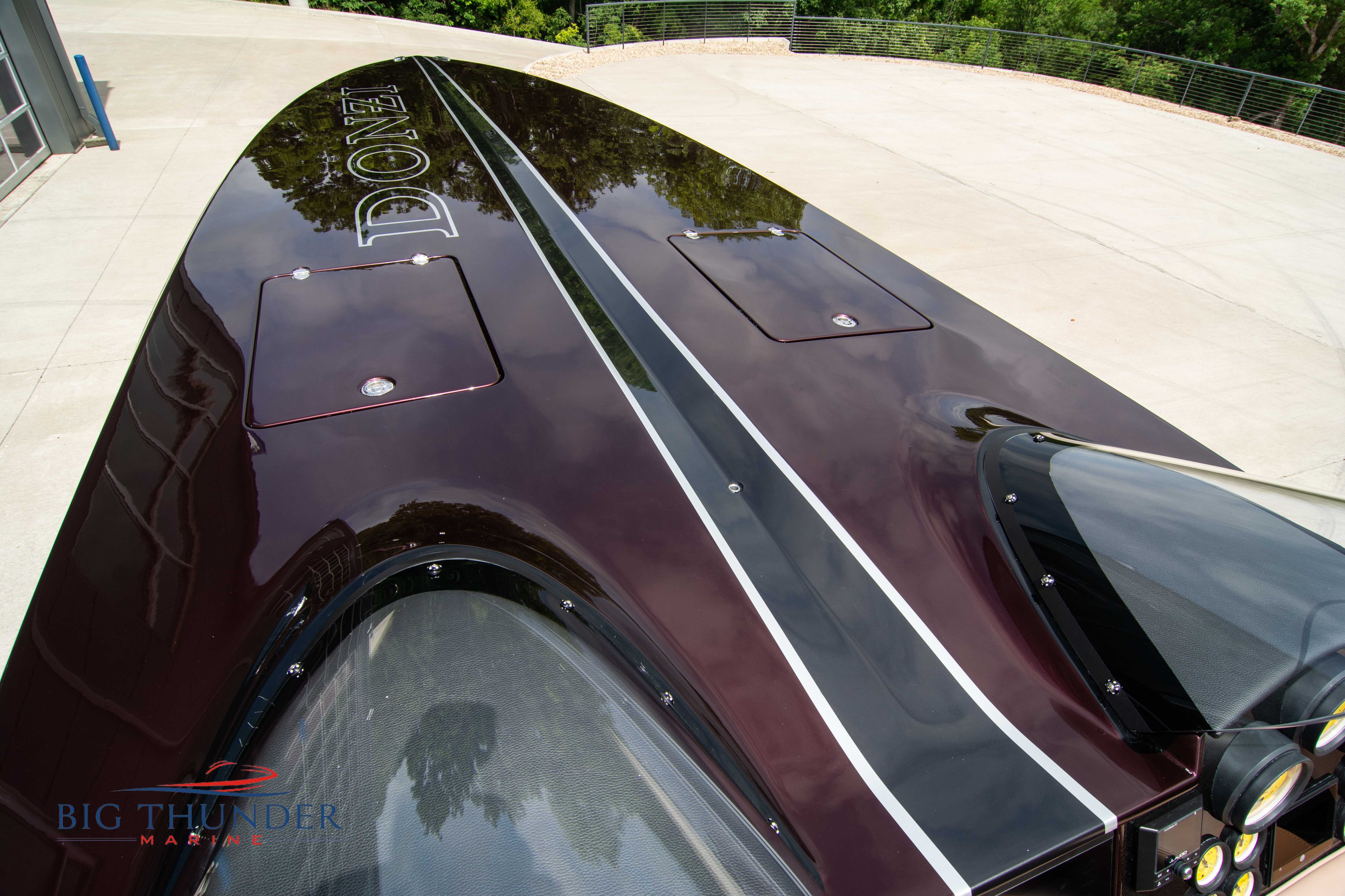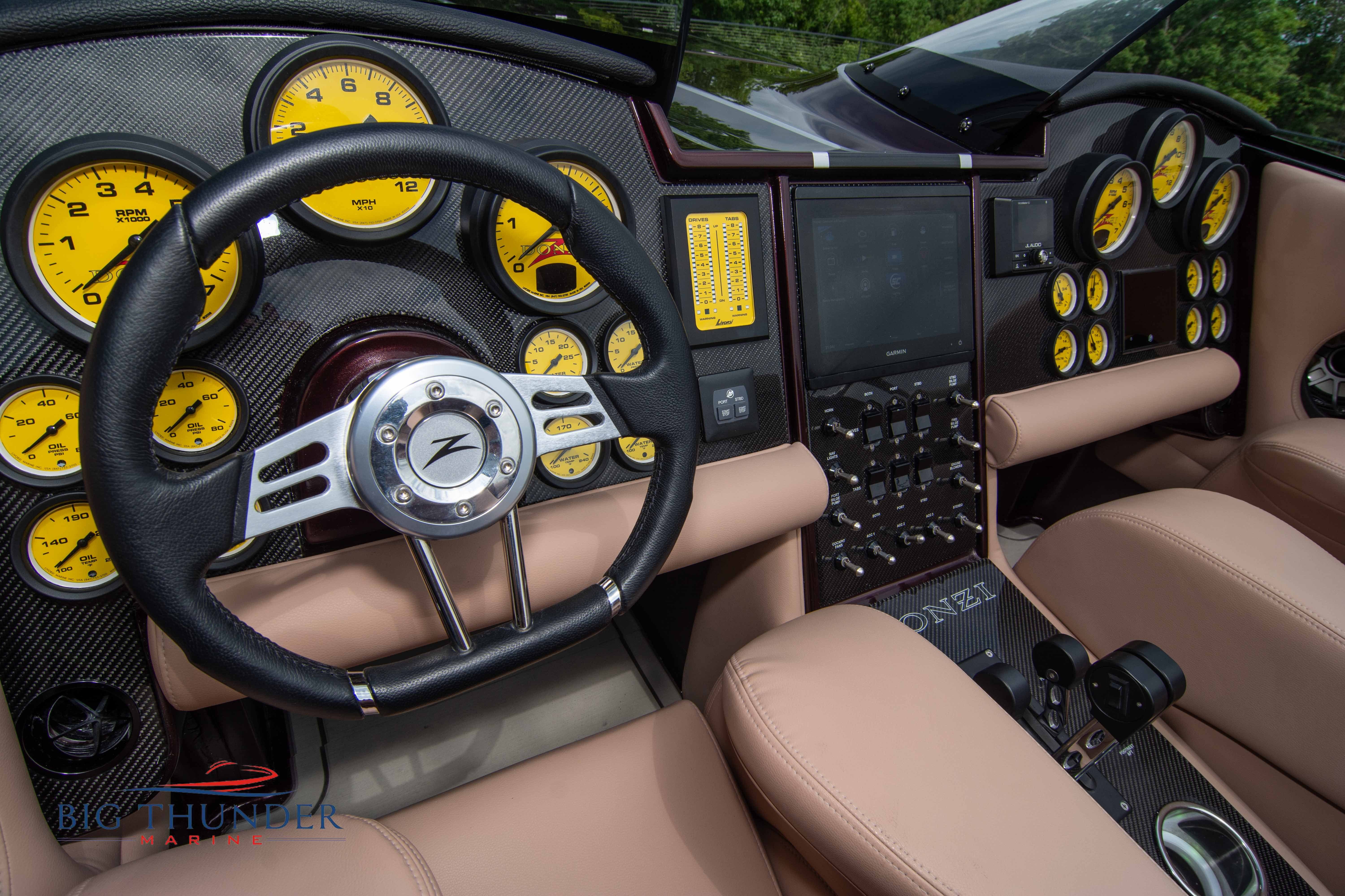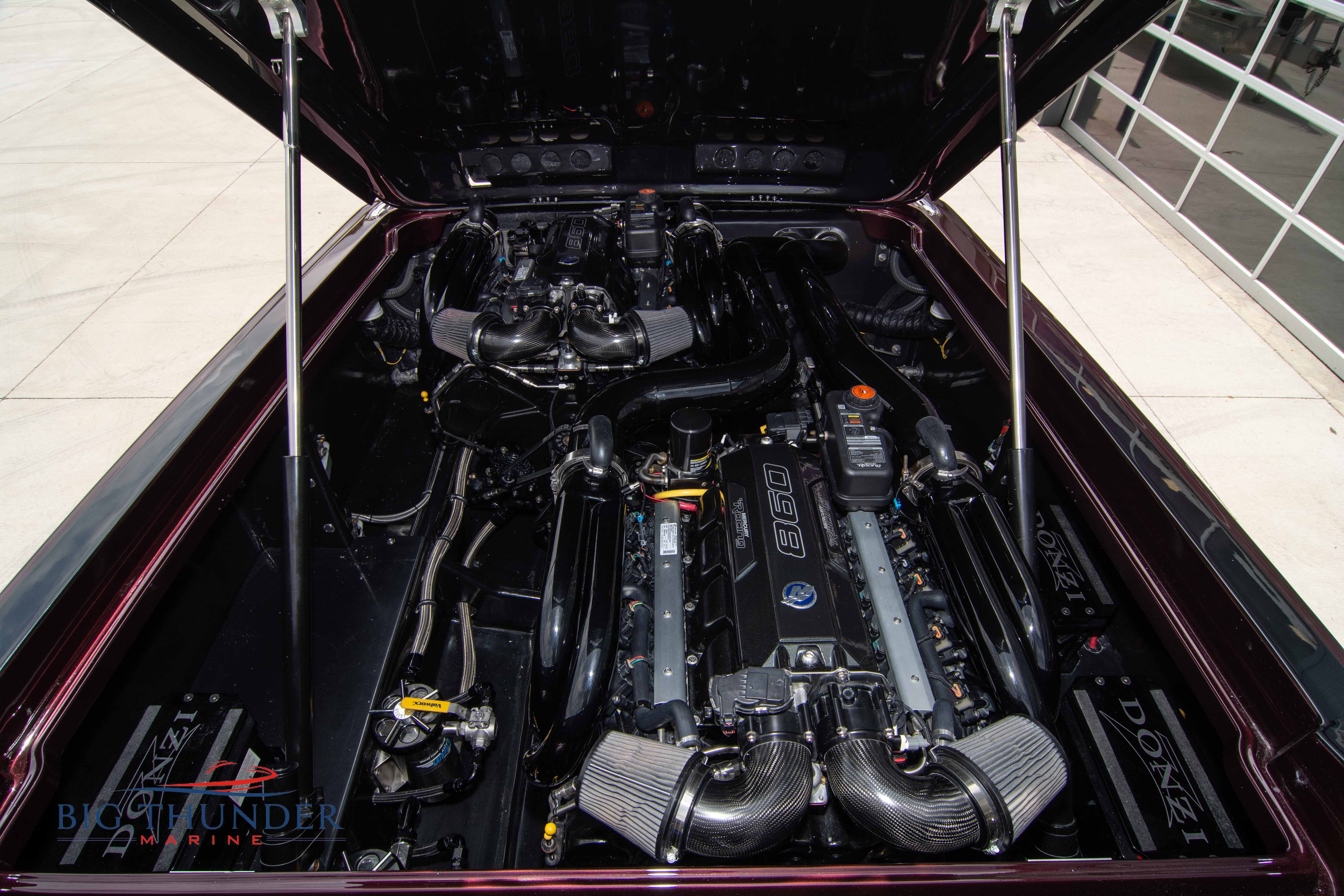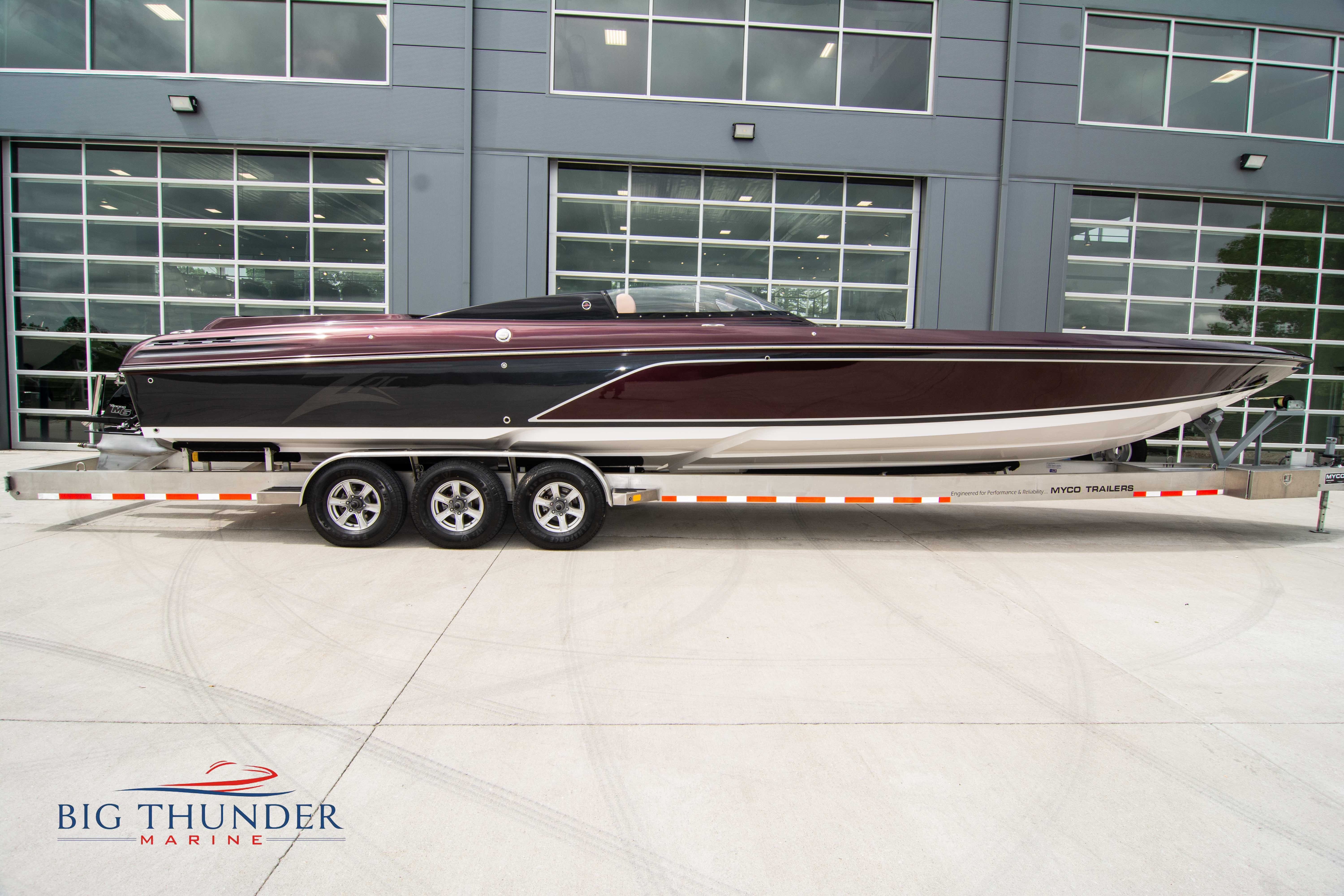 2020 Donzi 38 ZRC Twin Staggered Mercury Racing 860’s w/ #6 Drives Mercury Racing 5 Blade 17.5 x 32 Stainless Steel Props. The newest edition in the Donzi high performance lineup is a revival of the iconic 38 ZRC, back by popular demand. Sleek and loaded with the latest tech. Donzi Positive Lift Double Step Hull, Livorsi 1050 High Performance Hydraulic Trim Tabs, Three Battery Bank w/ House Bank Switches & Charging System, Shadowcaster RGB LED Underwater & Interior Lighting, LED Nav Lights, Sport Bucket Seats w/ Electrically Actuated Footrests, Aft Cockpit Seating w/ Dry Storage Below, Upholstered Side Panels w/ 12v Power Outlets & Phone Chargers (4 ea.), Carbon Dash Panel w/ Toggle Switches, Mercury Vessel View 502 & 703 Instrumentation w/ 2 Additional 502’s in Cockpit, Garmin GPSMap 8610, Livorsi Sport Controls, Custom Steering Wheel w/ Leather Trim, Premium JL Audio System-MediaMaster MM50 Source Unit, RGB LED 7.7 Speakers (2 ea.), RGB LED 8.8 Speakers (2 ea.), 600W 6 Ch. Amp.
