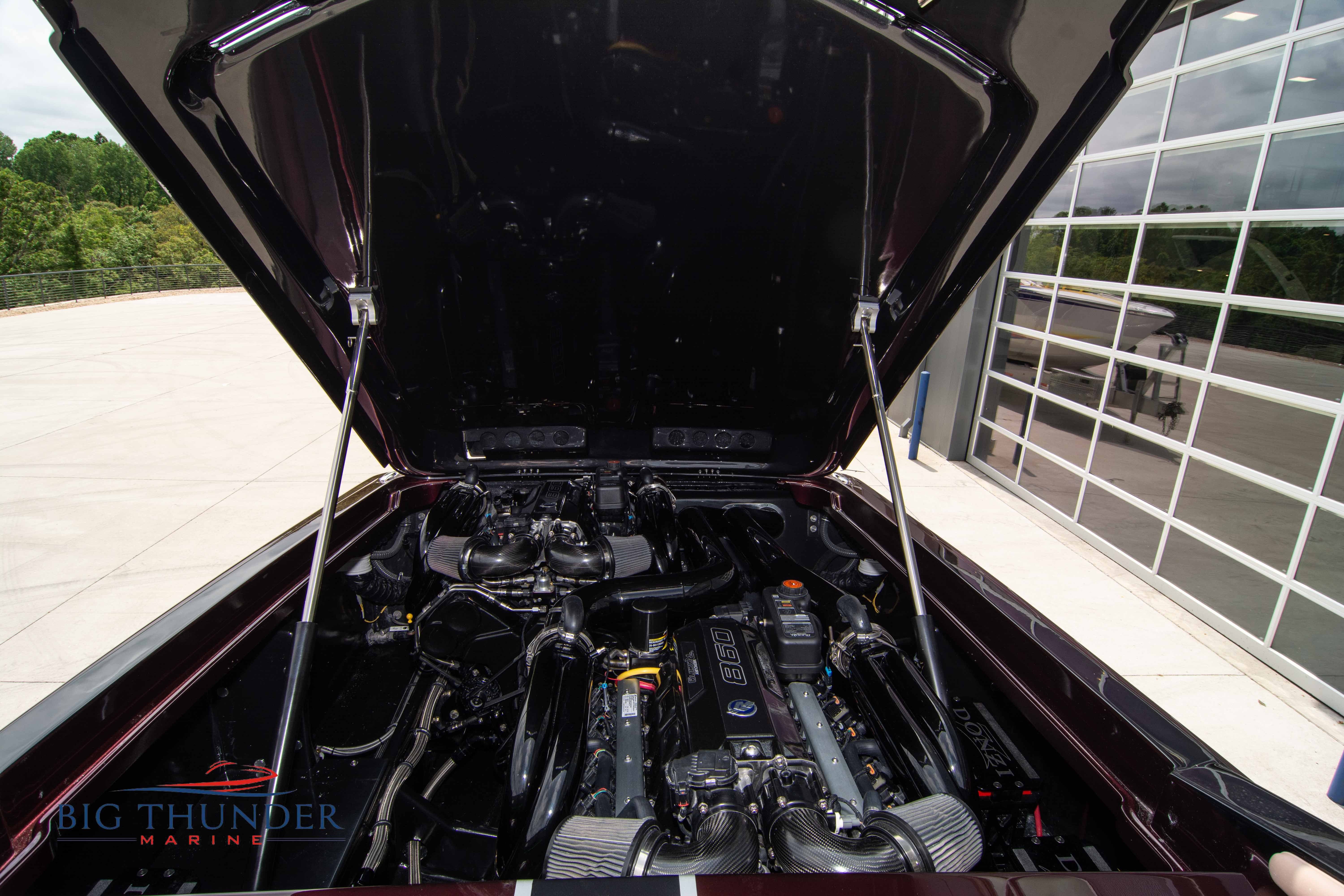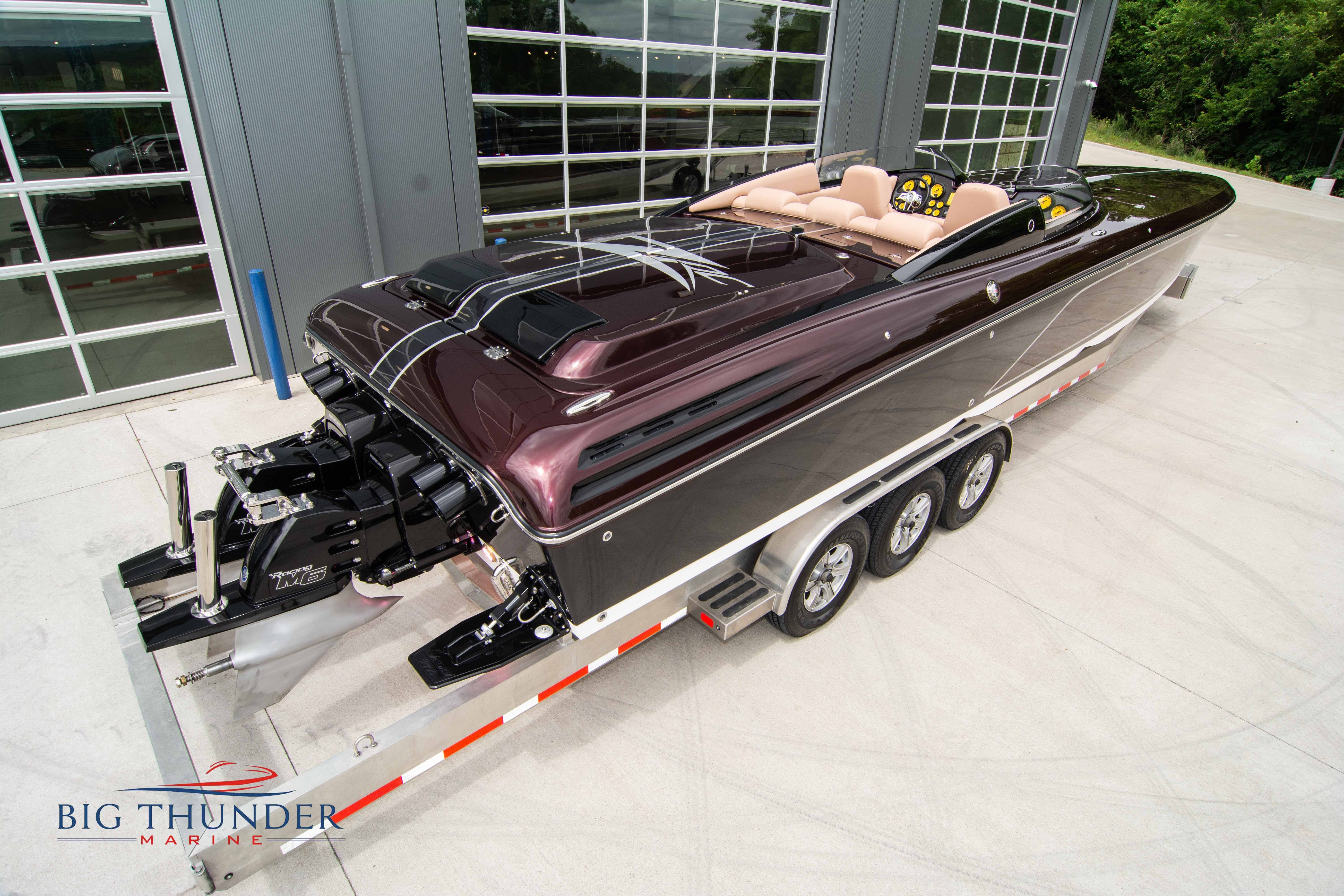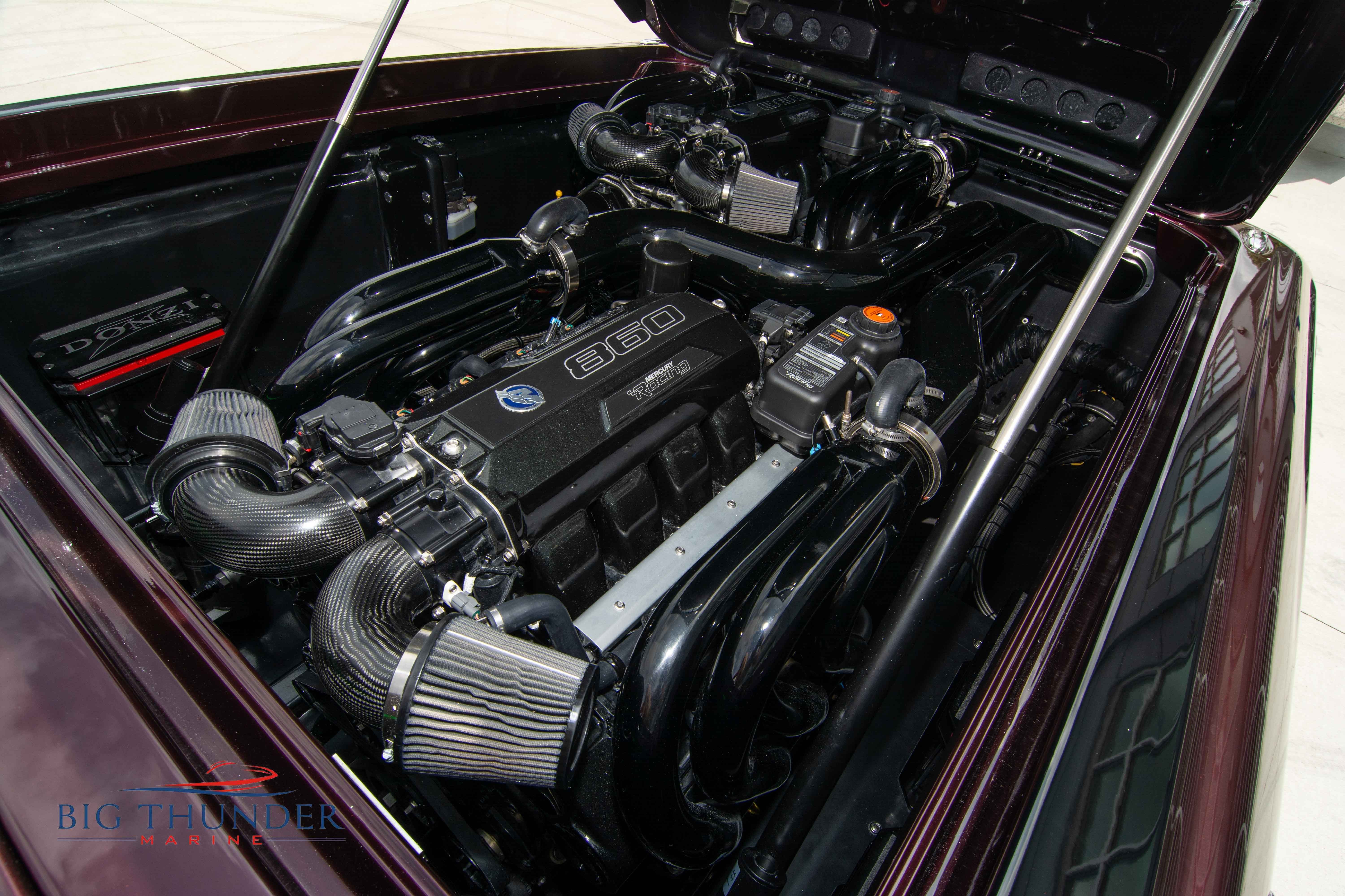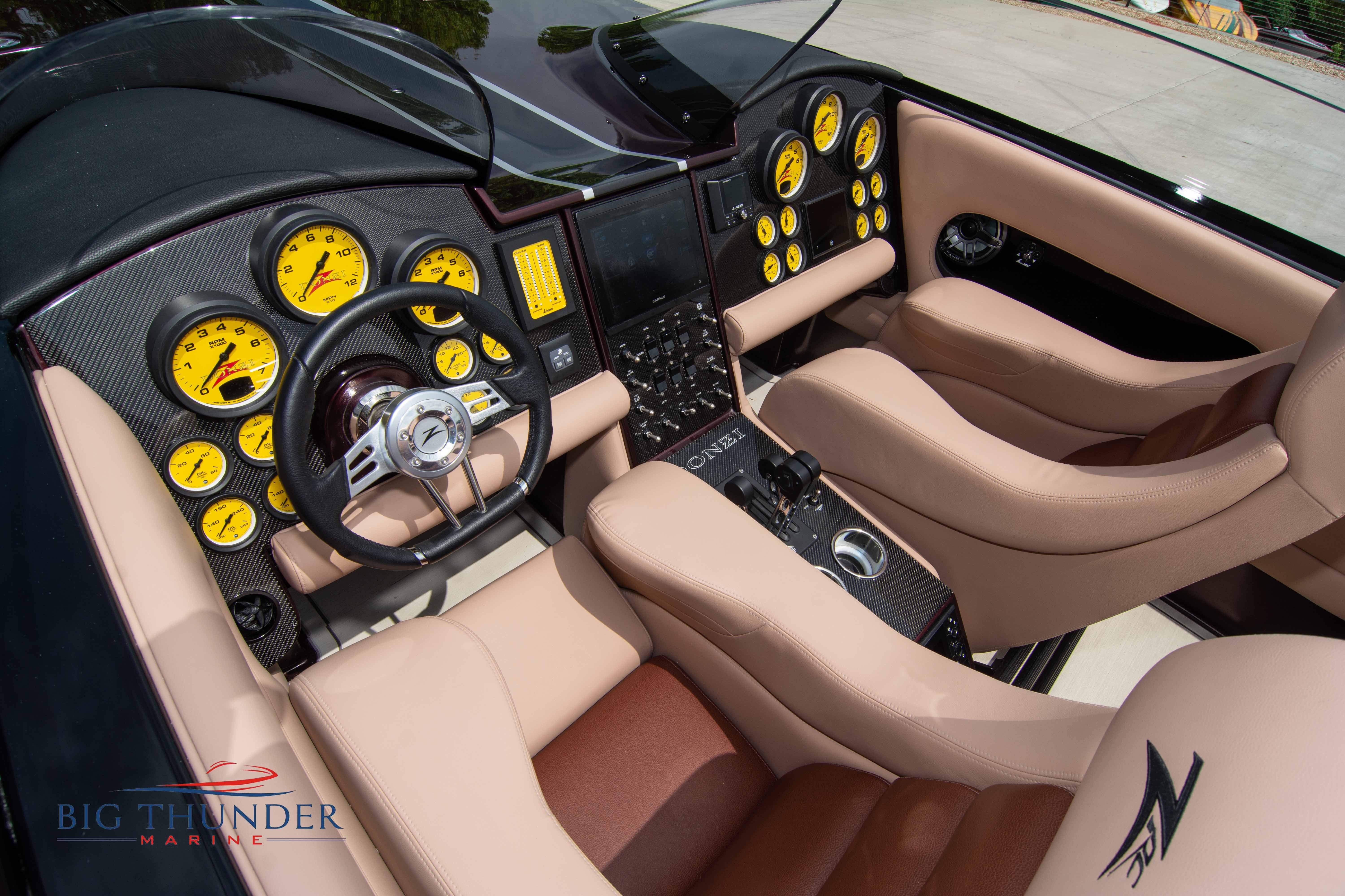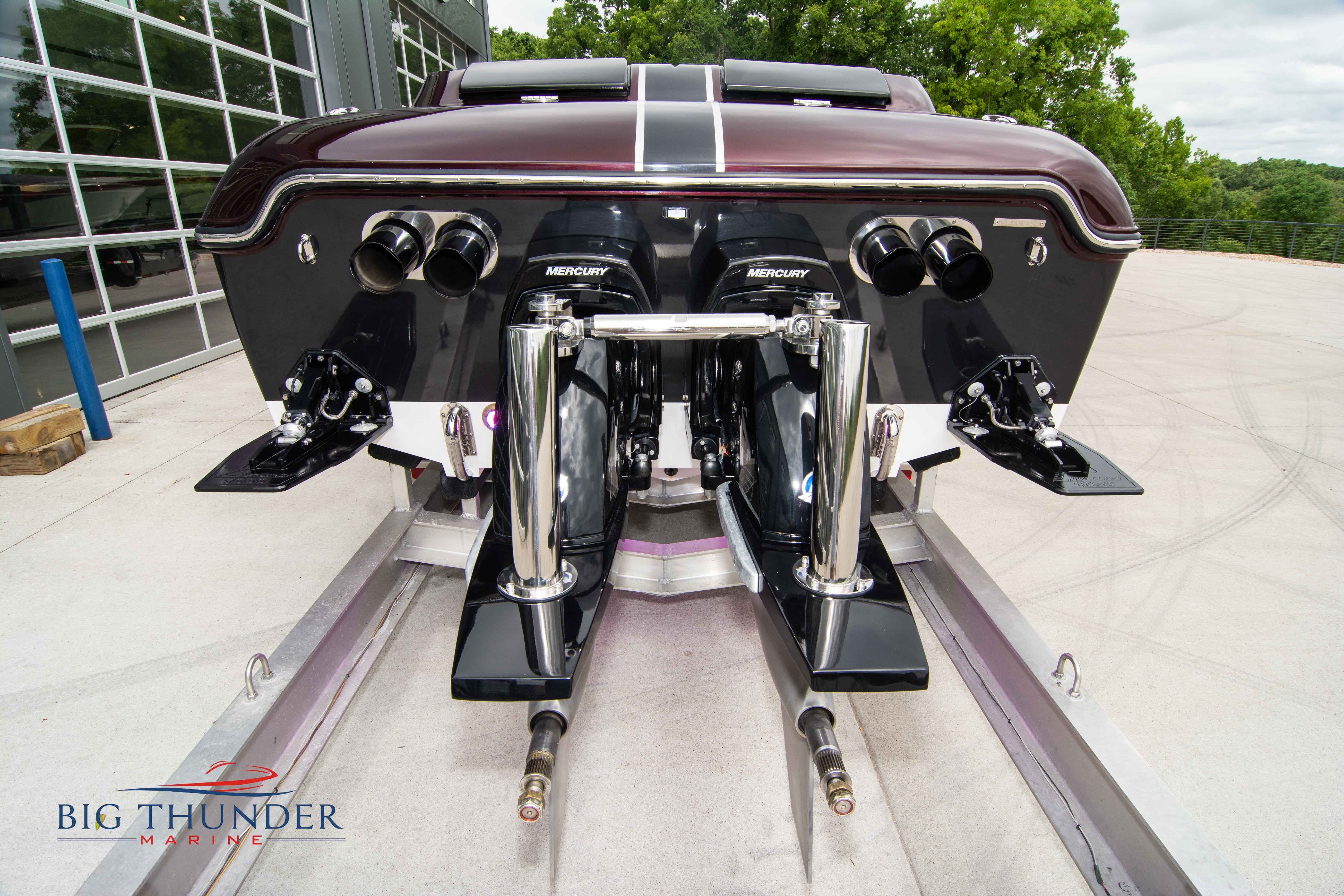 2020 Donzi 38 ZRC Twin Staggered Mercury Racing 860’s w/ #6 Drives Mercury Racing 5 Blade 17.5 x 32 Stainless Steel Props. The newest edition in the Donzi high performance lineup is a revival of the iconic 38 ZRC, back by popular demand. Sleek and loaded with the latest tech. Donzi Positive Lift Double Step Hull, Livorsi 1050 High Performance Hydraulic Trim Tabs, Three Battery Bank w/ House Bank Switches & Charging System, Shadowcaster RGB LED Underwater & Interior Lighting, LED Nav Lights, Sport Bucket Seats w/ Electrically Actuated Footrests, Aft Cockpit Seating w/ Dry Storage Below, Upholstered Side Panels w/ 12v Power Outlets & Phone Chargers (4 ea.), Carbon Dash Panel w/ Toggle Switches, Mercury Vessel View 502 & 703 Instrumentation w/ 2 Additional 502’s in Cockpit, Garmin GPSMap 8610, Livorsi Sport Controls, Custom Steering Wheel w/ Leather Trim, Premium JL Audio System-MediaMaster MM50 Source Unit, RGB LED 7.7 Speakers (2 ea.), RGB LED 8.8 Speakers (2 ea.), 600W 6 Ch. Amp.