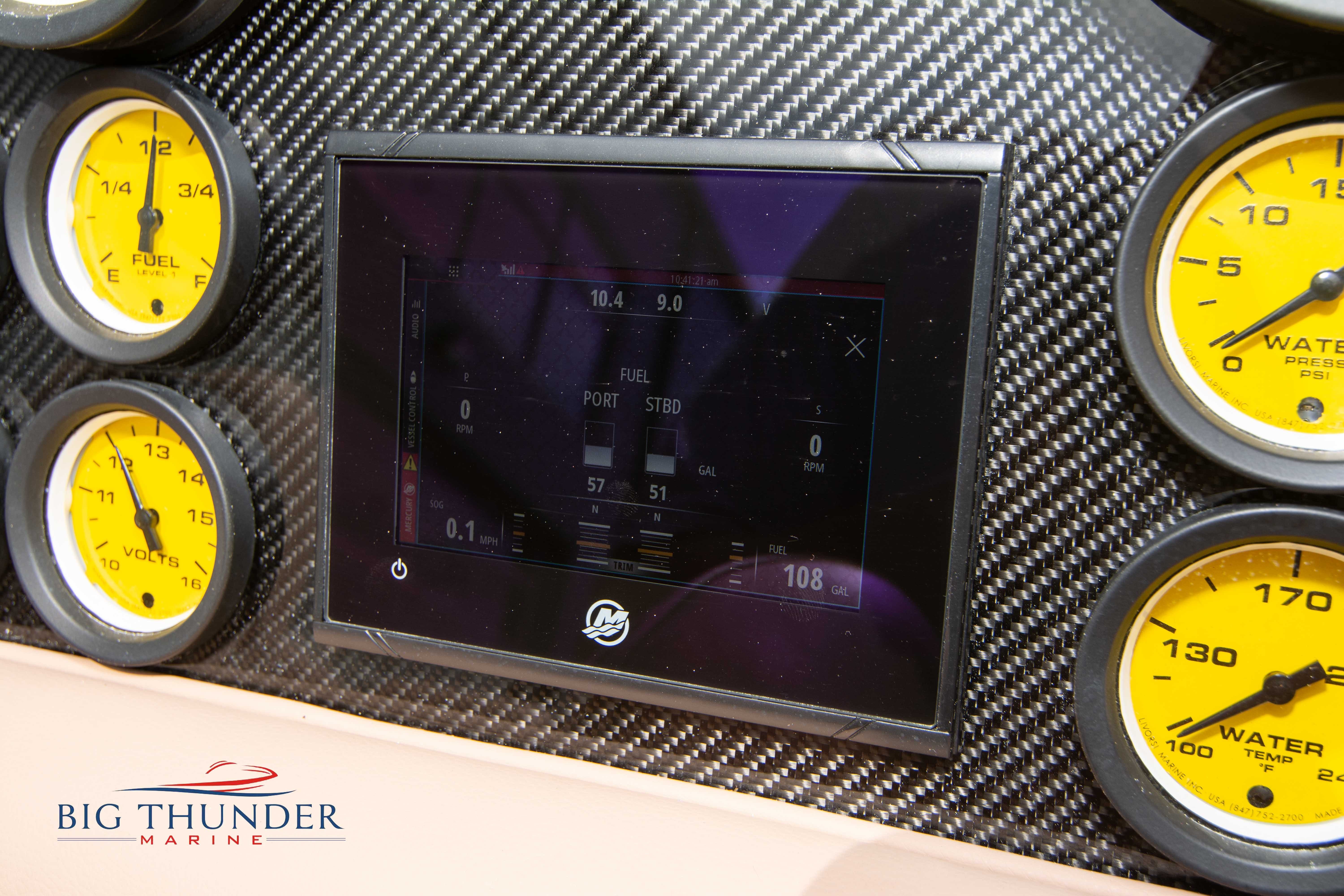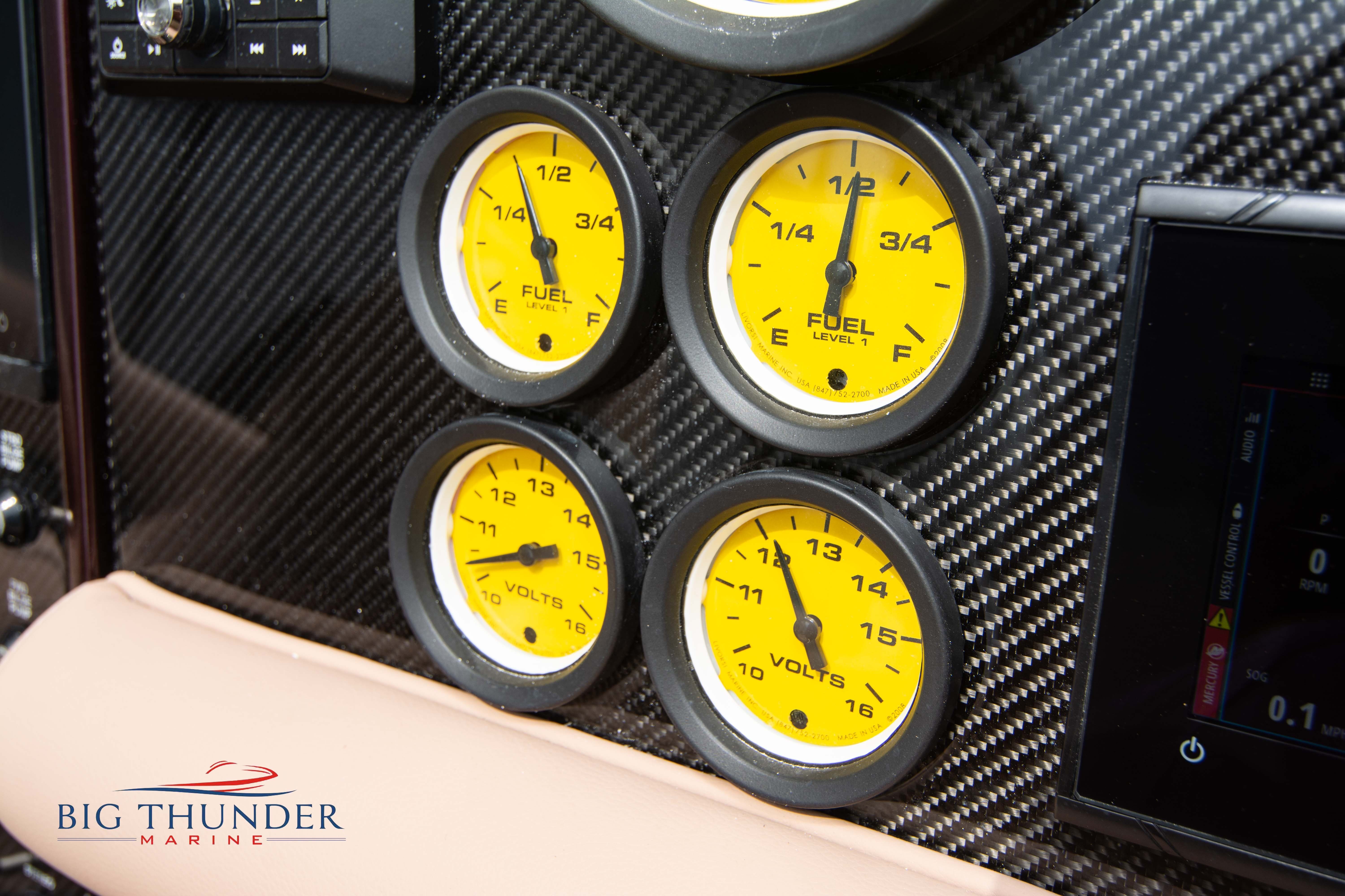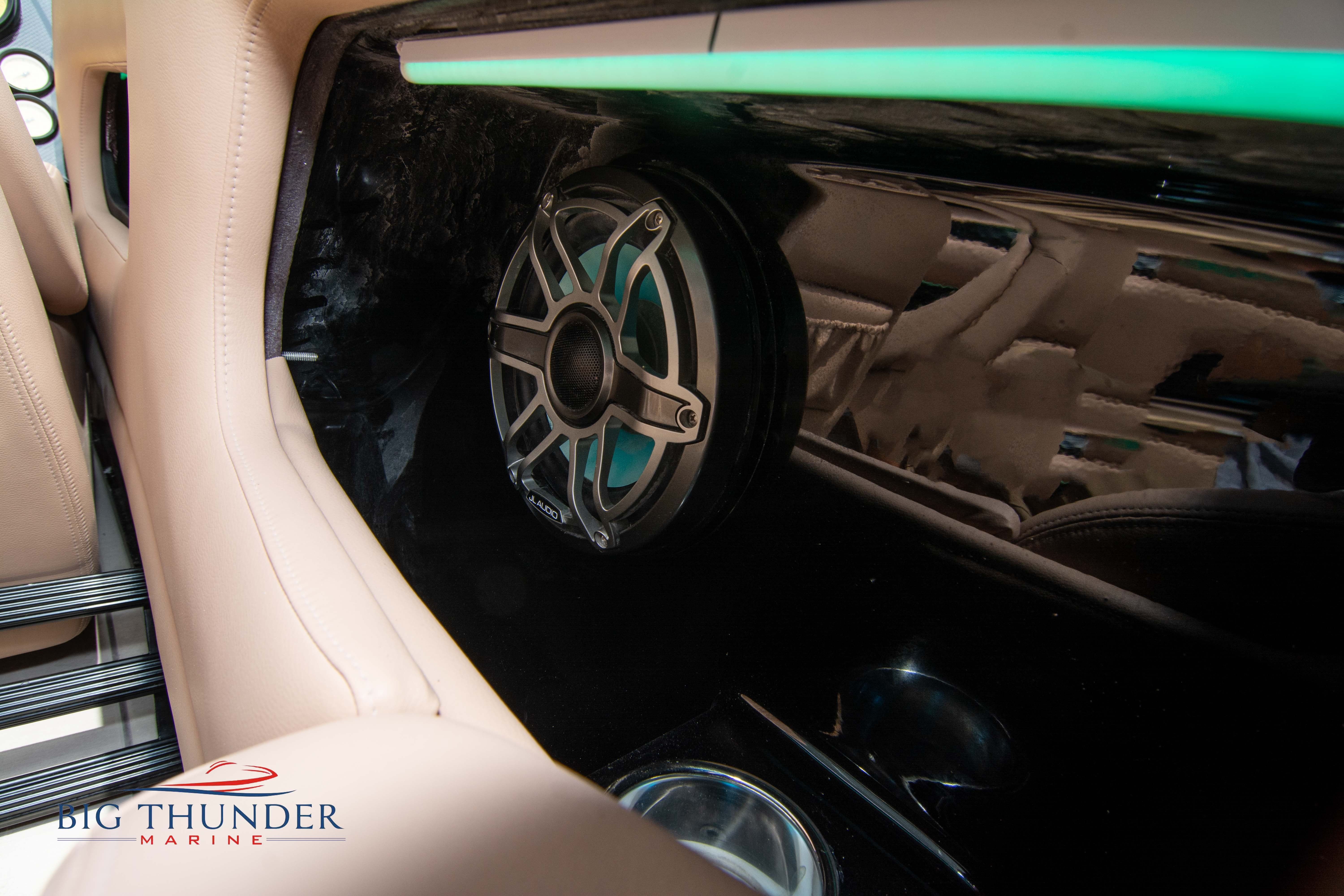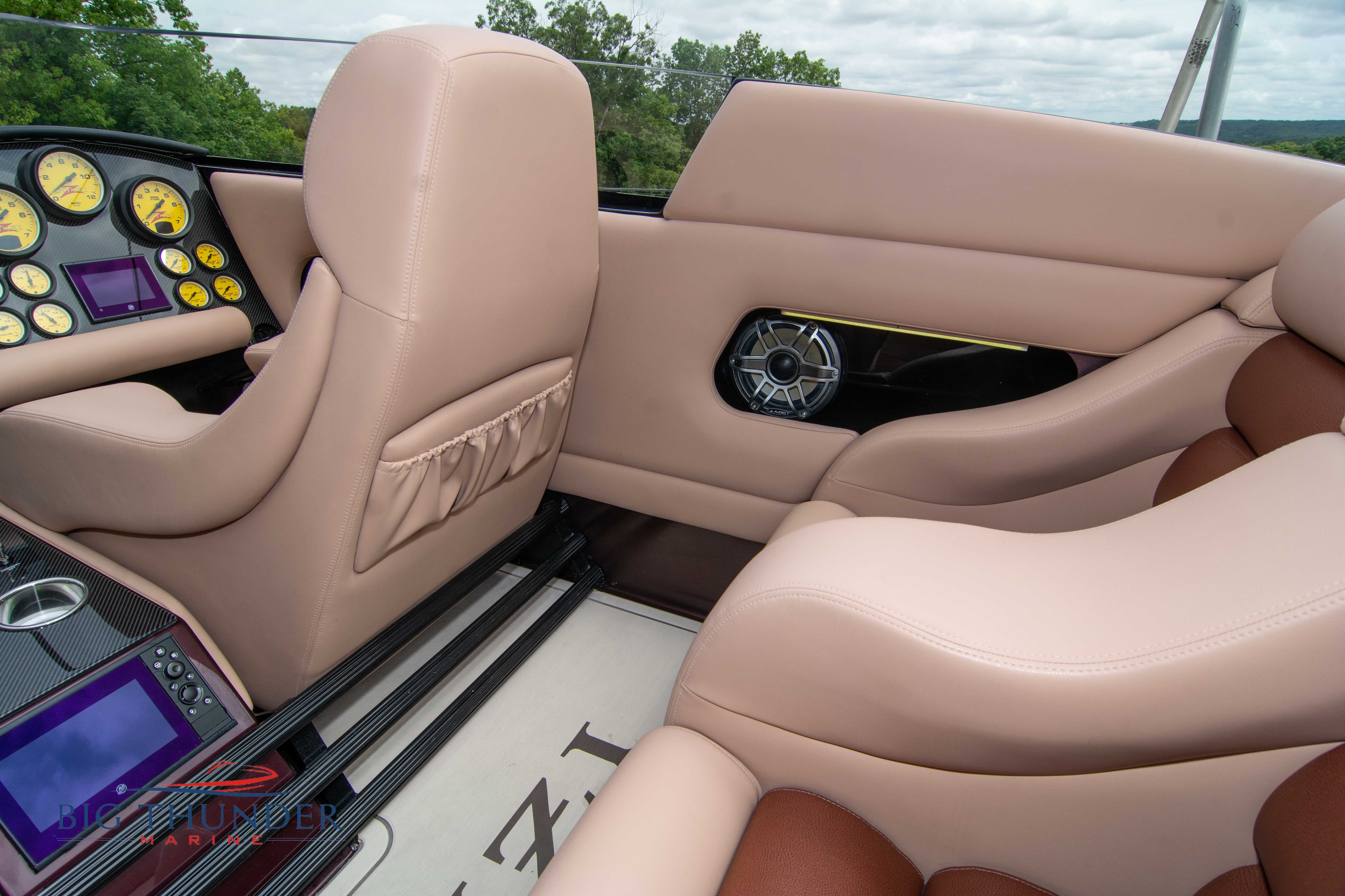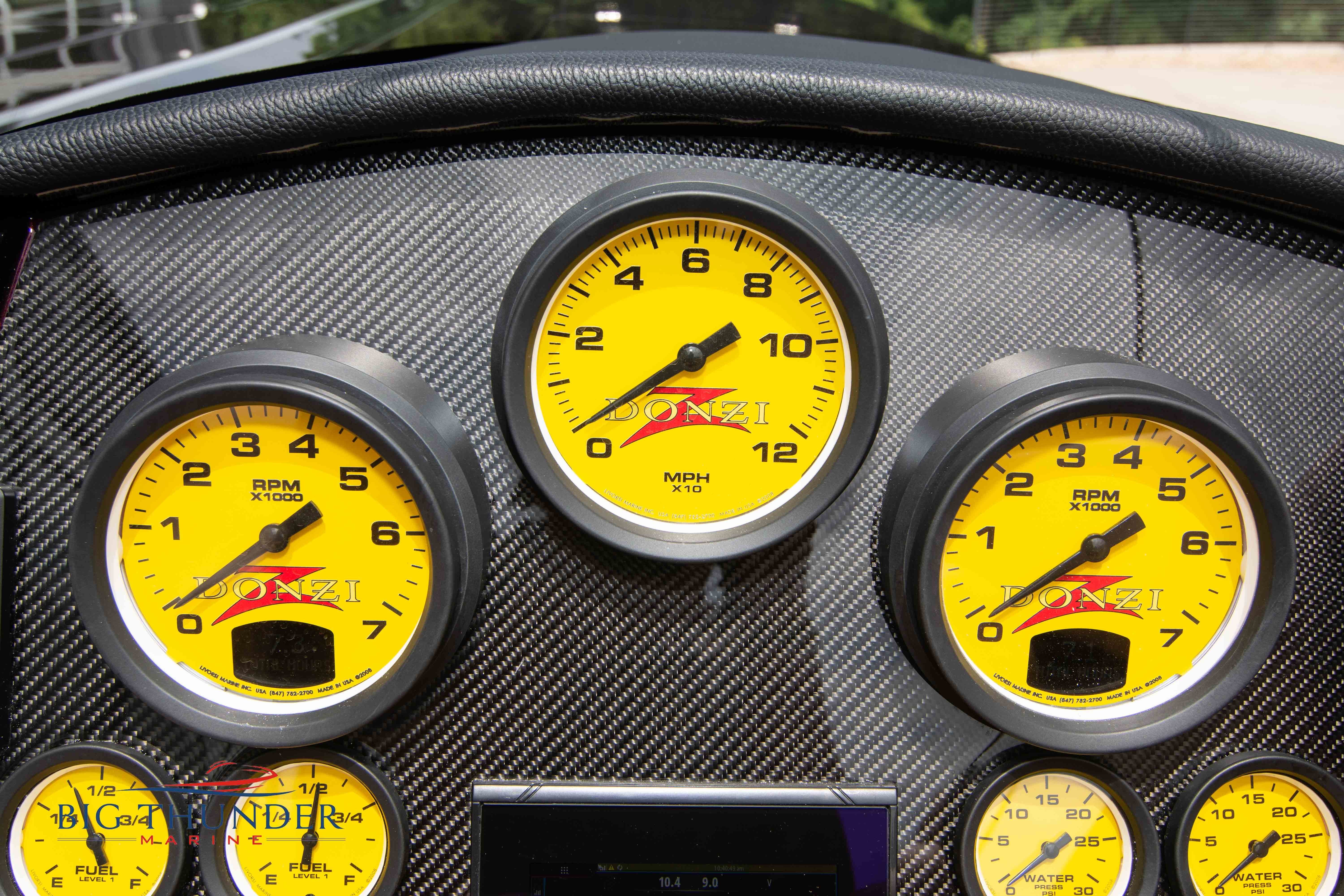 2020 Donzi 38 ZRC Twin Staggered Mercury Racing 860’s w/ #6 Drives Mercury Racing 5 Blade 17.5 x 32 Stainless Steel Props. The newest edition in the Donzi high performance lineup is a revival of the iconic 38 ZRC, back by popular demand. Sleek and loaded with the latest tech. Donzi Positive Lift Double Step Hull, Livorsi 1050 High Performance Hydraulic Trim Tabs, Three Battery Bank w/ House Bank Switches & Charging System, Shadowcaster RGB LED Underwater & Interior Lighting, LED Nav Lights, Sport Bucket Seats w/ Electrically Actuated Footrests, Aft Cockpit Seating w/ Dry Storage Below, Upholstered Side Panels w/ 12v Power Outlets & Phone Chargers (4 ea.), Carbon Dash Panel w/ Toggle Switches, Mercury Vessel View 502 & 703 Instrumentation w/ 2 Additional 502’s in Cockpit, Garmin GPSMap 8610, Livorsi Sport Controls, Custom Steering Wheel w/ Leather Trim, Premium JL Audio System-MediaMaster MM50 Source Unit, RGB LED 7.7 Speakers (2 ea.), RGB LED 8.8 Speakers (2 ea.), 600W 6 Ch. Amp.