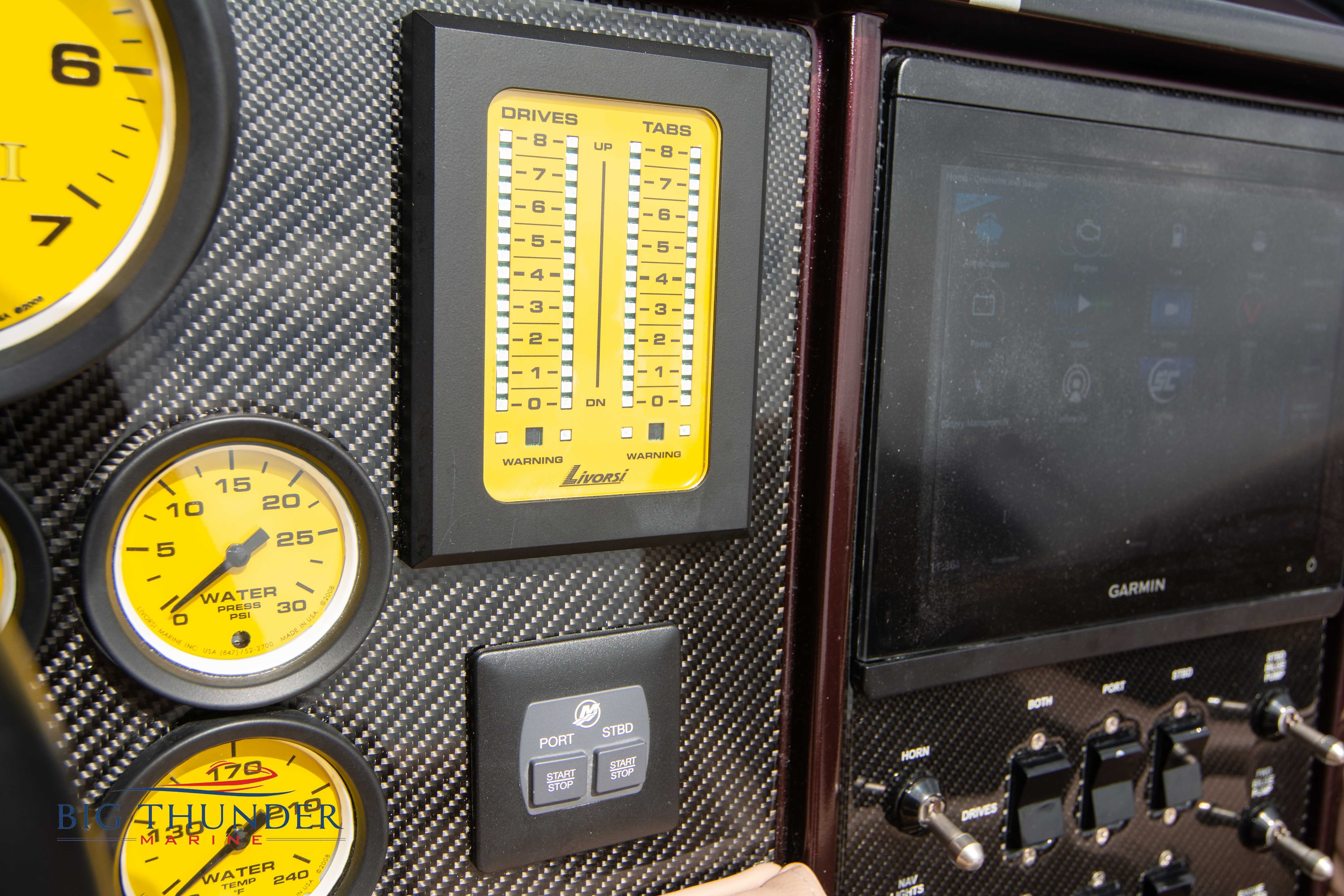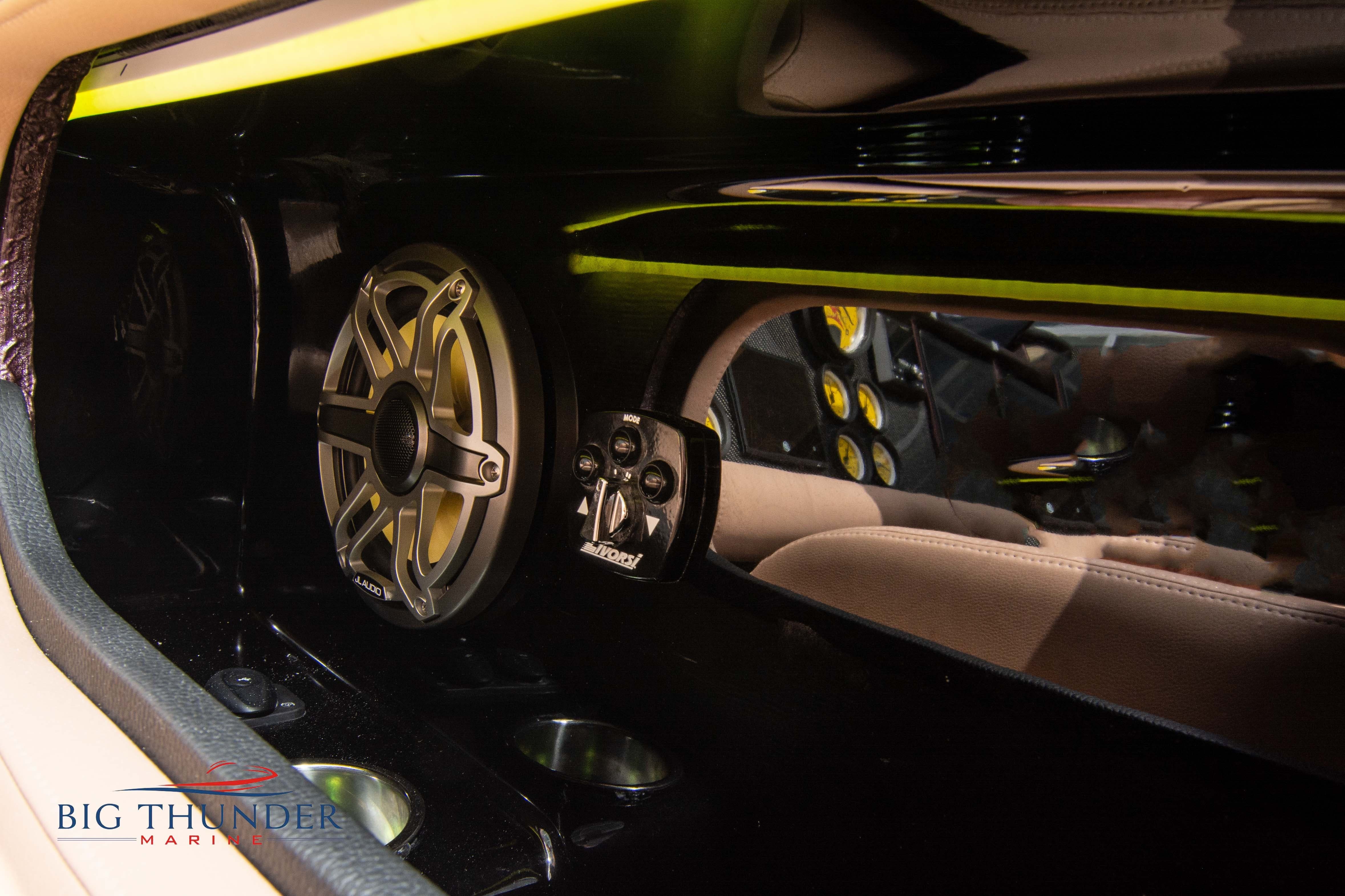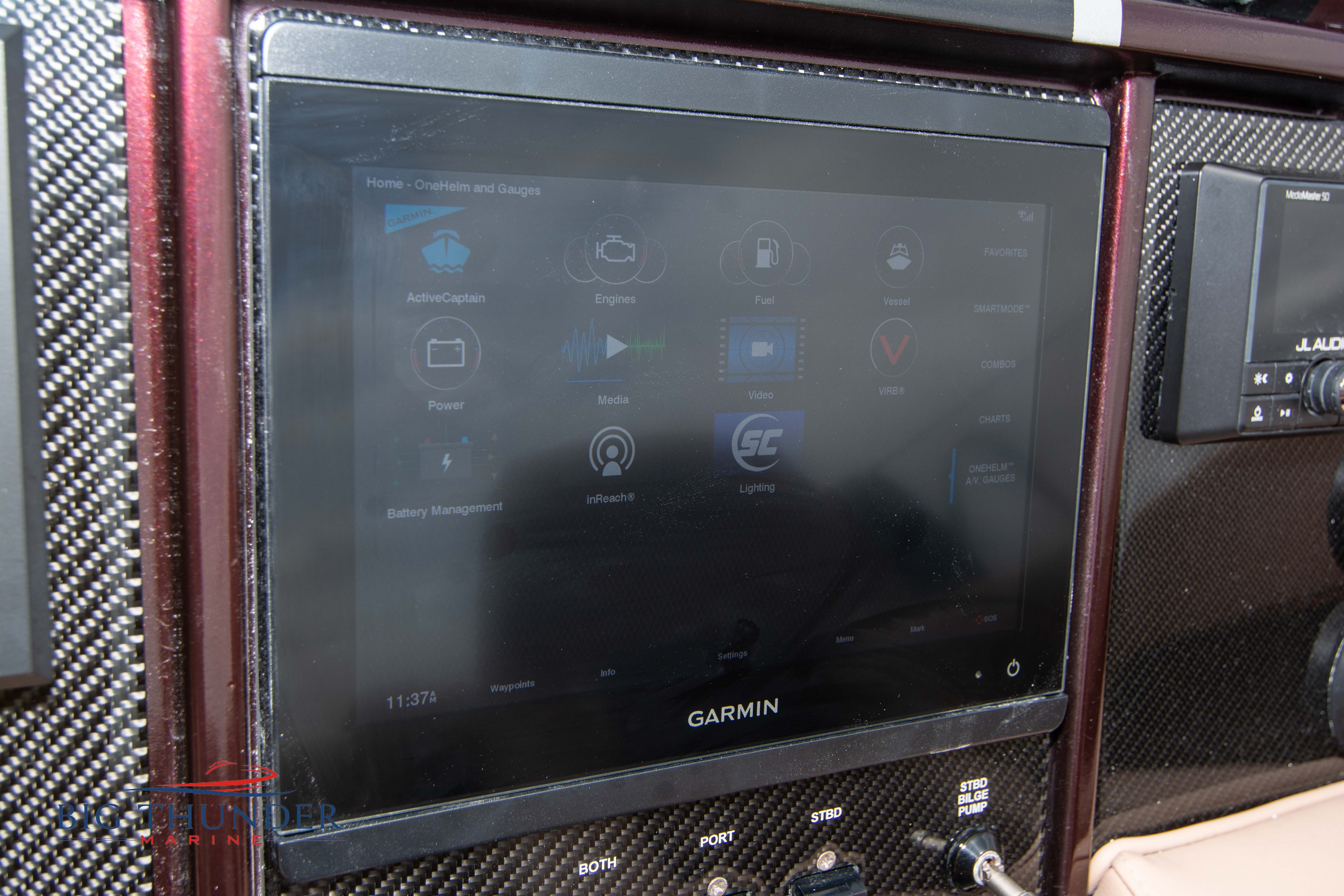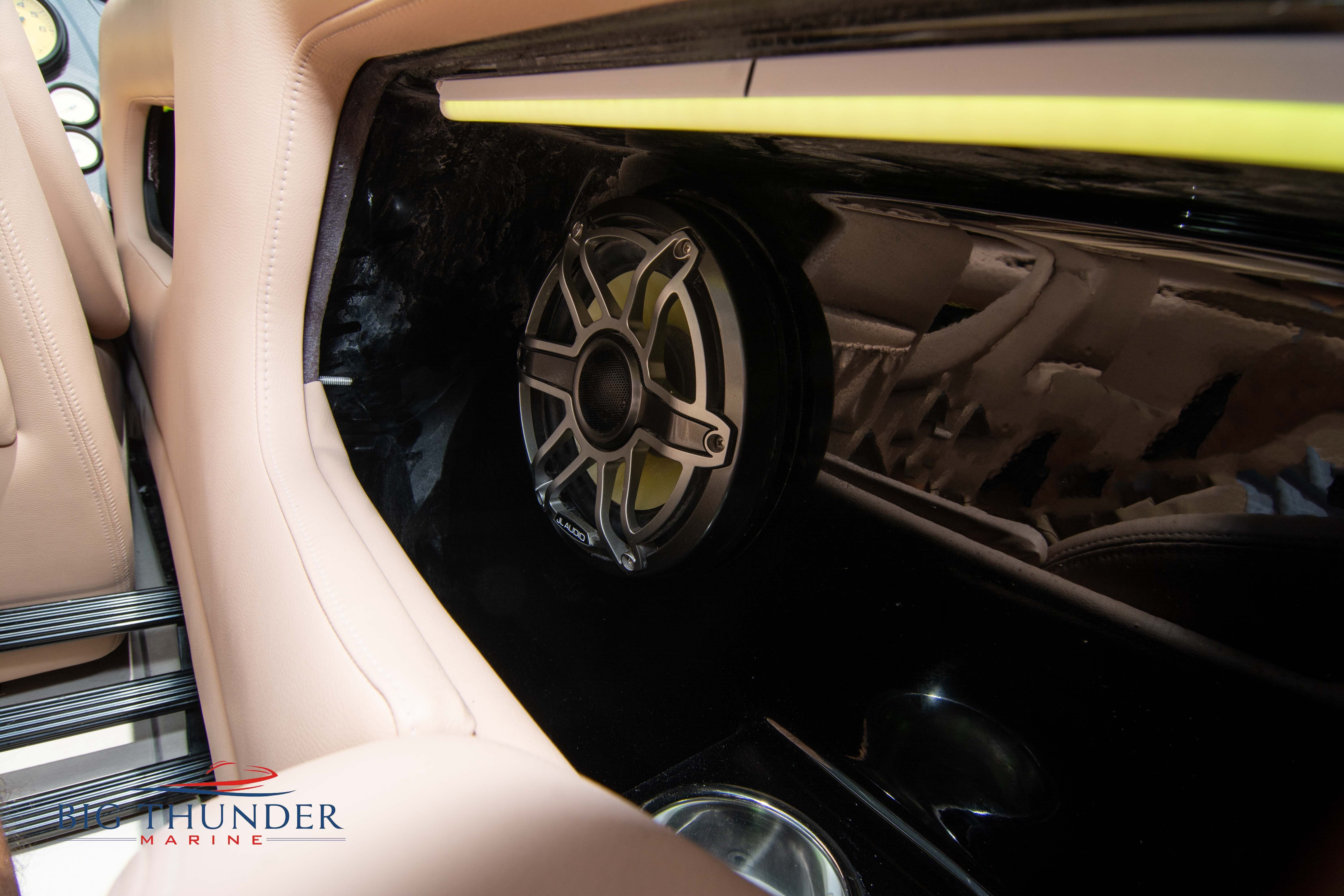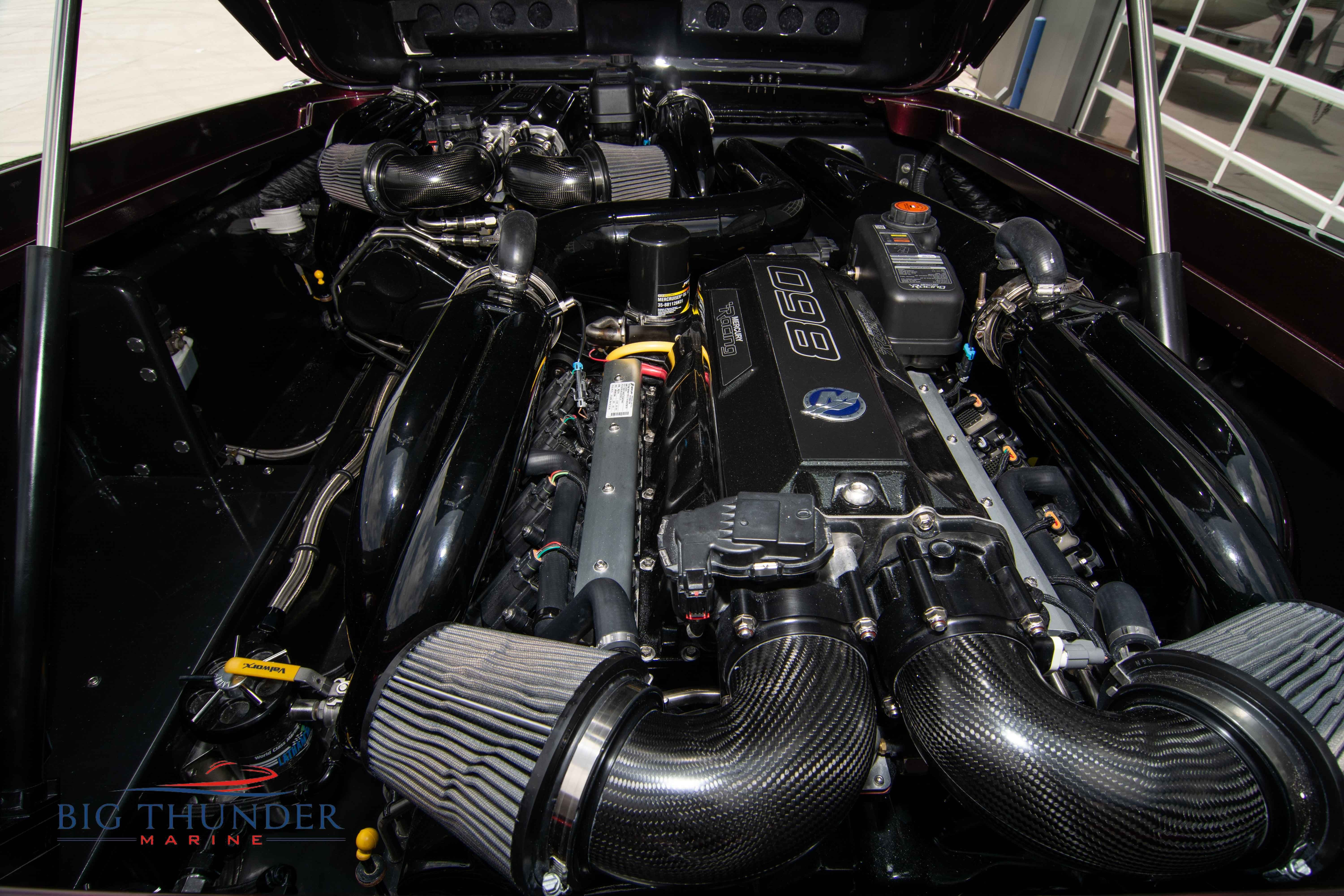 2020 Donzi 38 ZRC Twin Staggered Mercury Racing 860’s w/ #6 Drives Mercury Racing 5 Blade 17.5 x 32 Stainless Steel Props. The newest edition in the Donzi high performance lineup is a revival of the iconic 38 ZRC, back by popular demand. Sleek and loaded with the latest tech. Donzi Positive Lift Double Step Hull, Livorsi 1050 High Performance Hydraulic Trim Tabs, Three Battery Bank w/ House Bank Switches & Charging System, Shadowcaster RGB LED Underwater & Interior Lighting, LED Nav Lights, Sport Bucket Seats w/ Electrically Actuated Footrests, Aft Cockpit Seating w/ Dry Storage Below, Upholstered Side Panels w/ 12v Power Outlets & Phone Chargers (4 ea.), Carbon Dash Panel w/ Toggle Switches, Mercury Vessel View 502 & 703 Instrumentation w/ 2 Additional 502’s in Cockpit, Garmin GPSMap 8610, Livorsi Sport Controls, Custom Steering Wheel w/ Leather Trim, Premium JL Audio System-MediaMaster MM50 Source Unit, RGB LED 7.7 Speakers (2 ea.), RGB LED 8.8 Speakers (2 ea.), 600W 6 Ch. Amp.