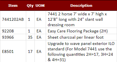 2 Horse- Easy Care Flooring Package- Slant Wall Dressing Room