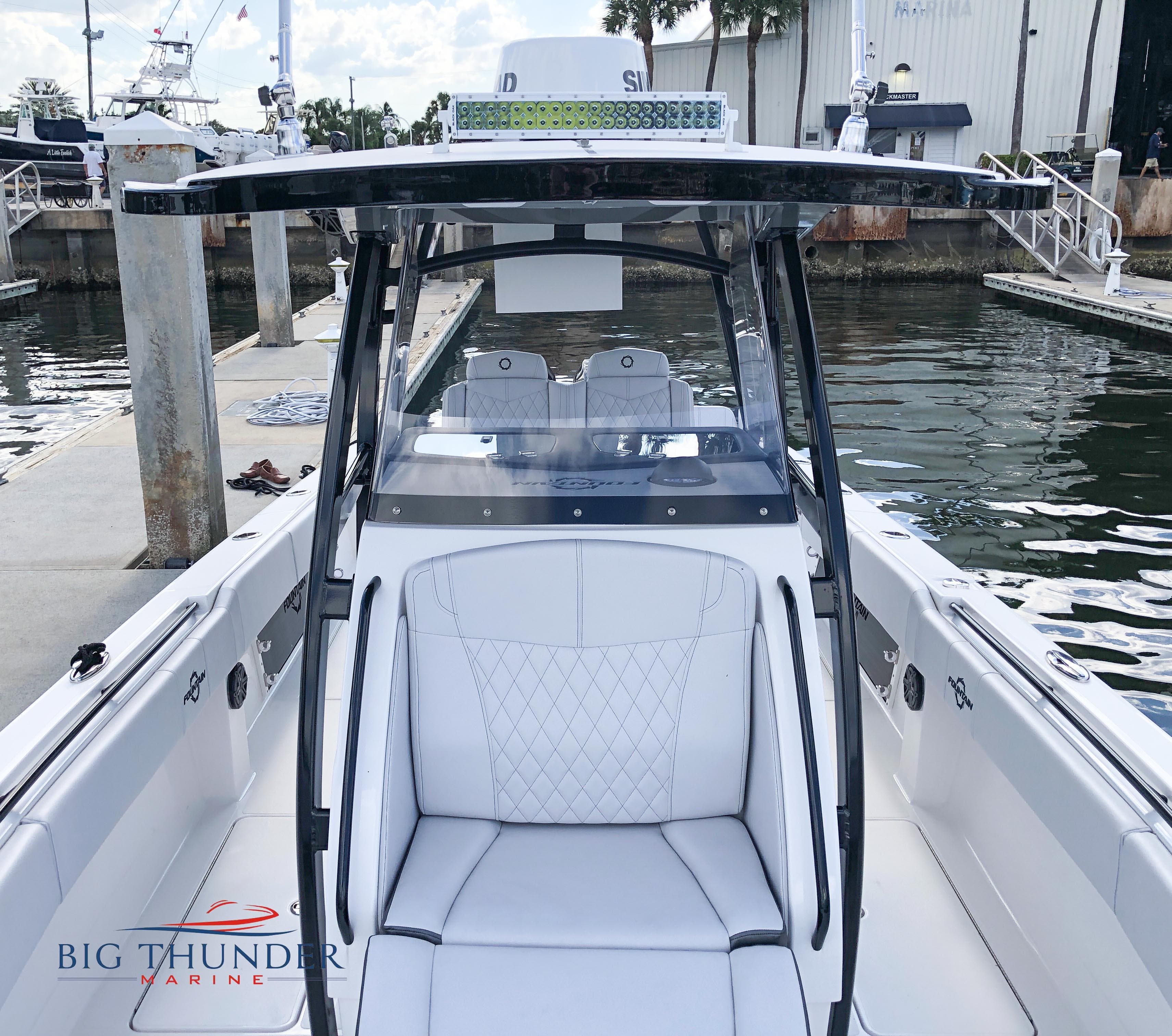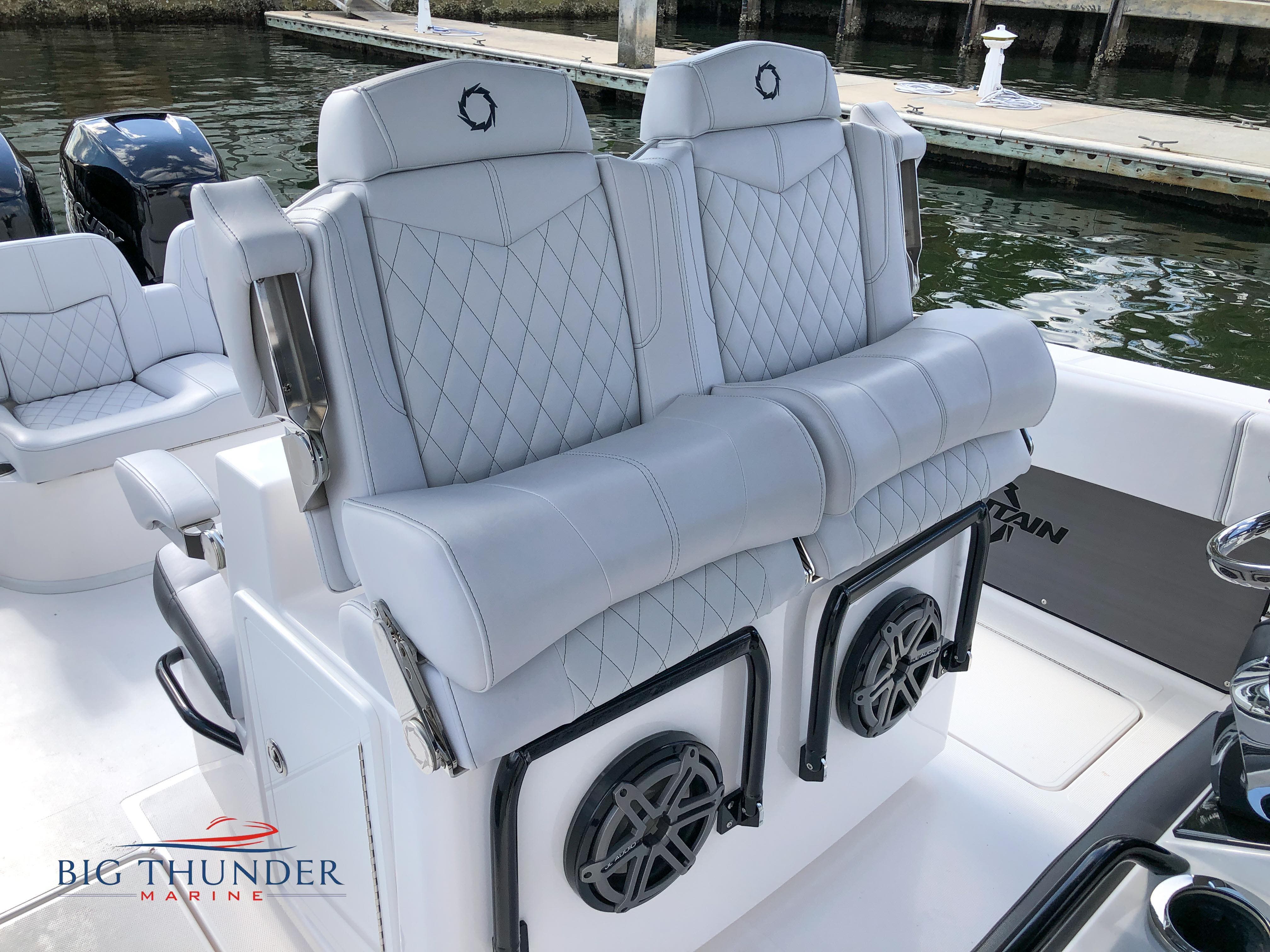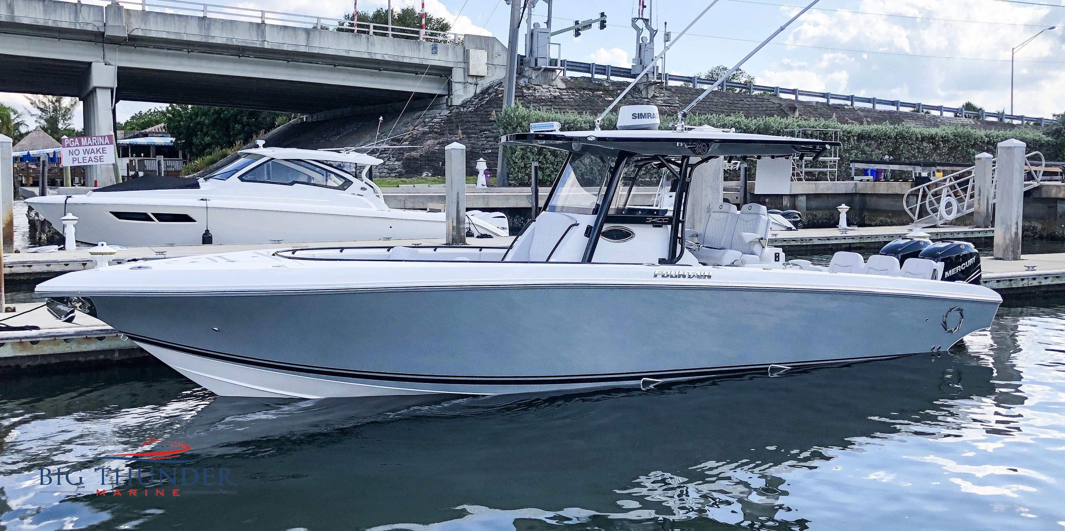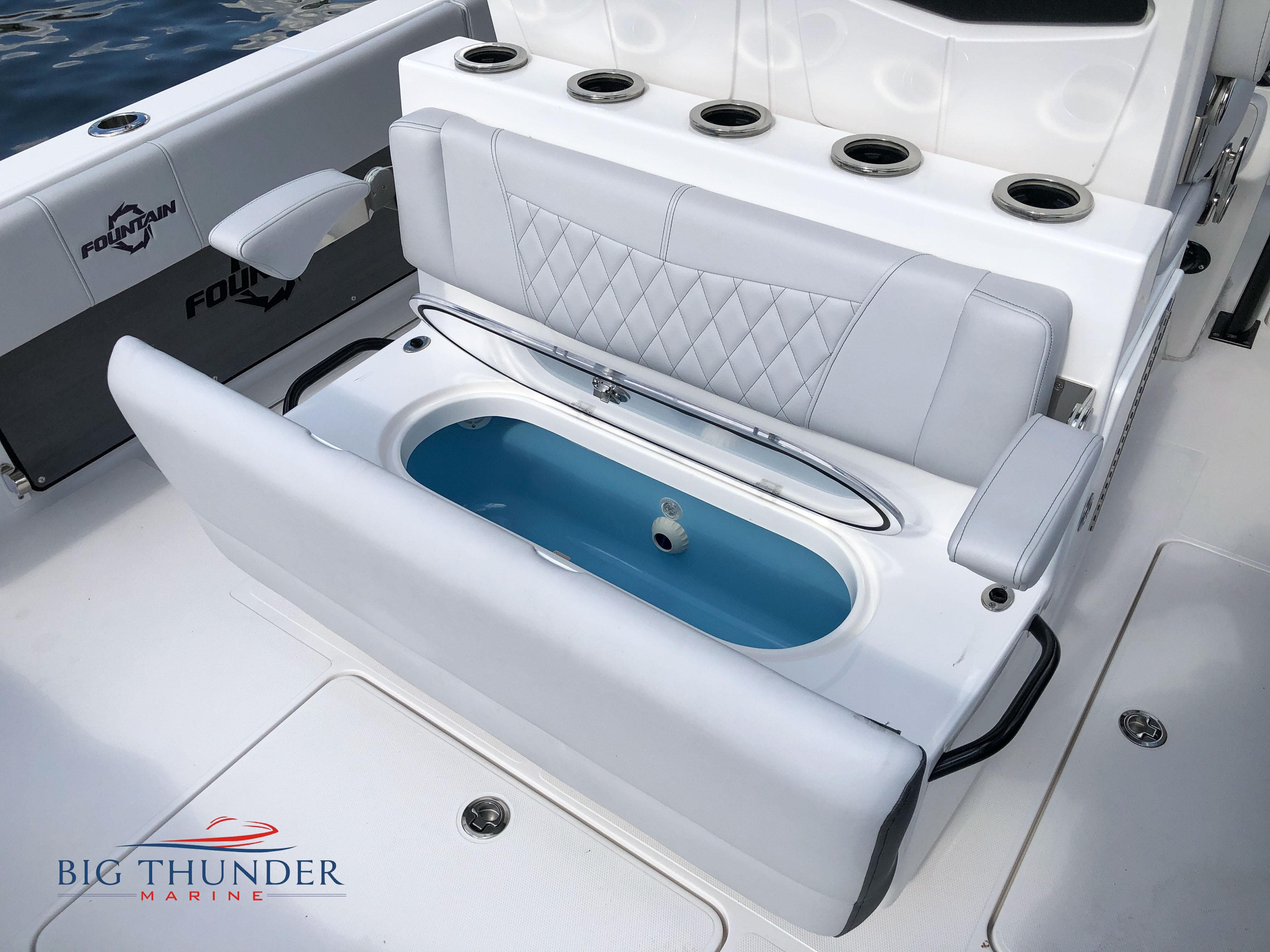 2020 Fountain 34CC LS Twin Mercury 400 Verado DTS. Livorsi 1150 Trim Tabs. White Gelcoat. Custom Gray Hull Paint w/ Black Pin Stripe. Black Powder Coat Aluminum & SS Components. Gray T-Top Underside Paint. Sky Gray Upholstery. Gray & Black Composite Marine Mat Flooring. Underwater Lights. JL Premium Audio System w/ (8) 7.7"" LED Spkrs, (2) 10"" Subs & Mono-Block Amp. Rear Livewell Under Rear Facing Seat. 18’ Aluminum Outriggers w/ GS 280 Base. Portlight. Dual Simrad 16"" NSS Evo3 Displays. Mercury VesselView 903. HALO Technology 24"" Dome w/ 48mi. Range. Broadband Sonar w/ Chirp Technology. VHF Radio w/ Antenna. Go Free Wifi. Simrad Full Function Autopilot. Cabin w/ Head & Fresh Water Sink. Fresh & Raw Water Washdown. Pressurized Shower.