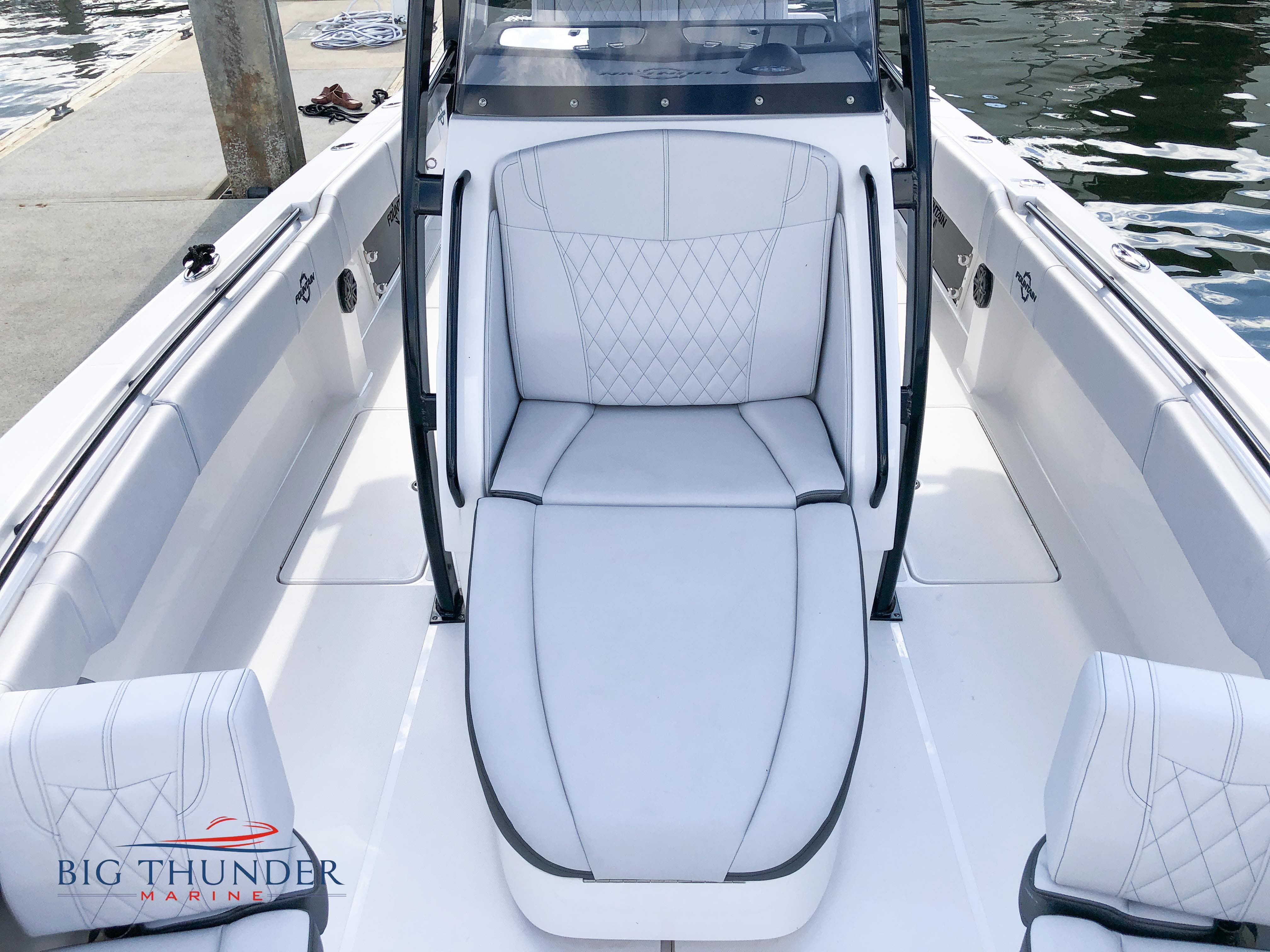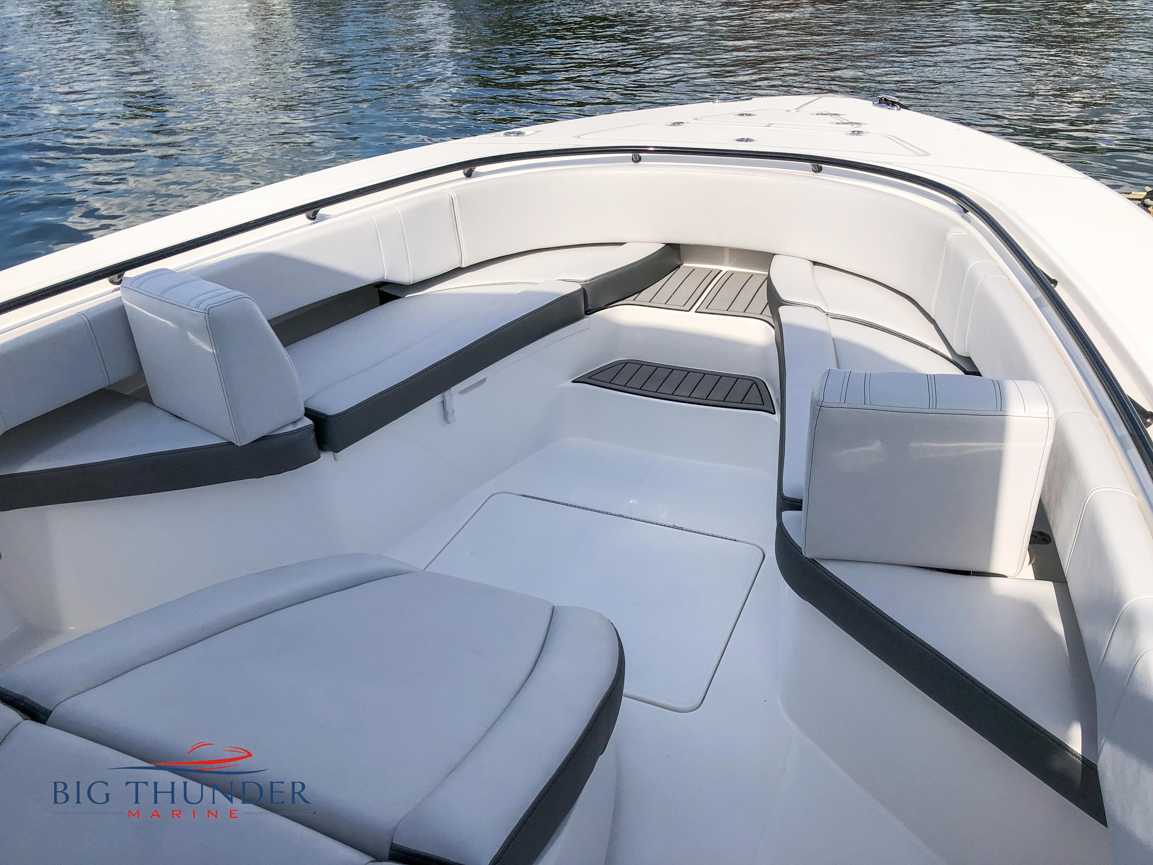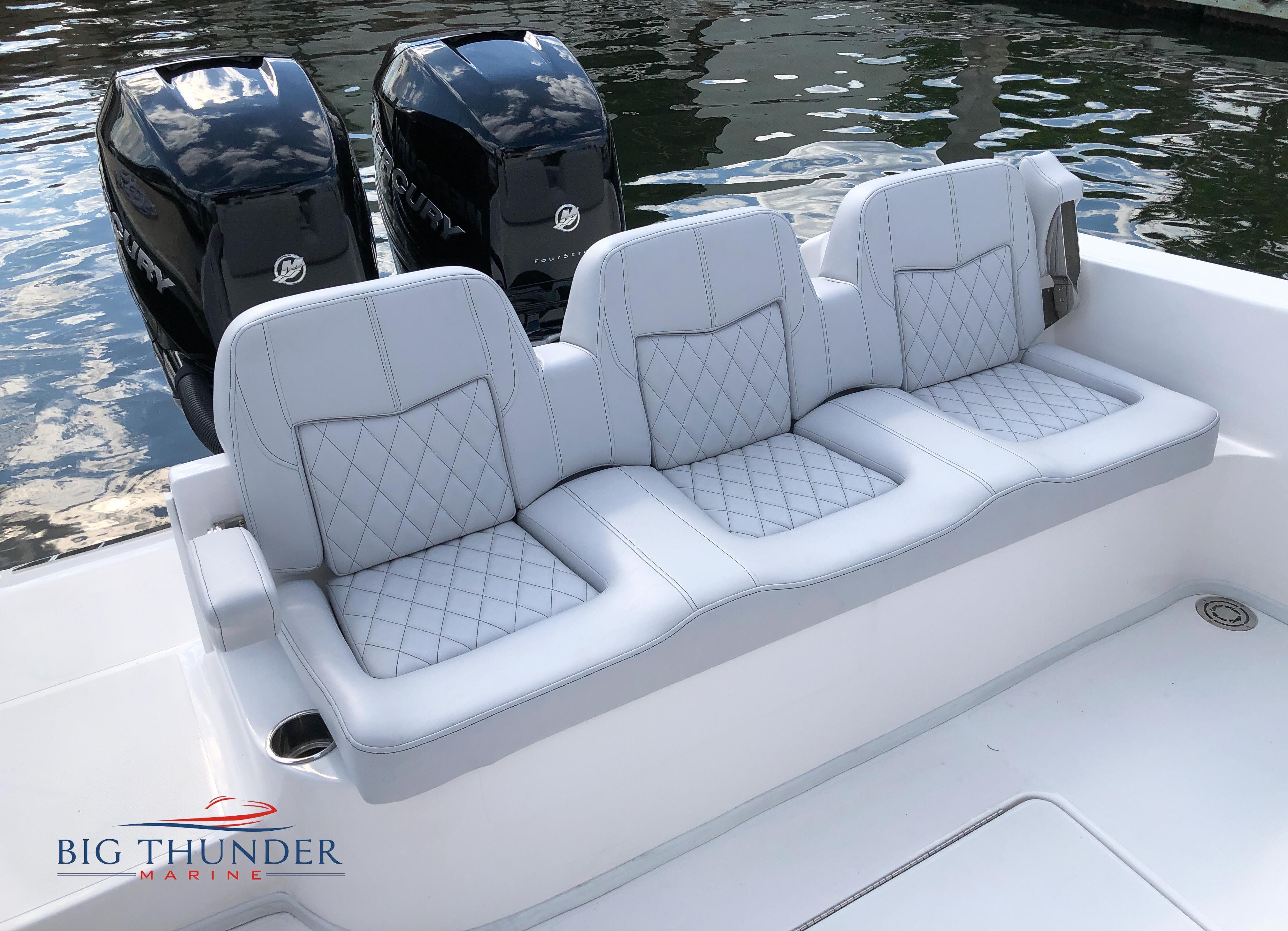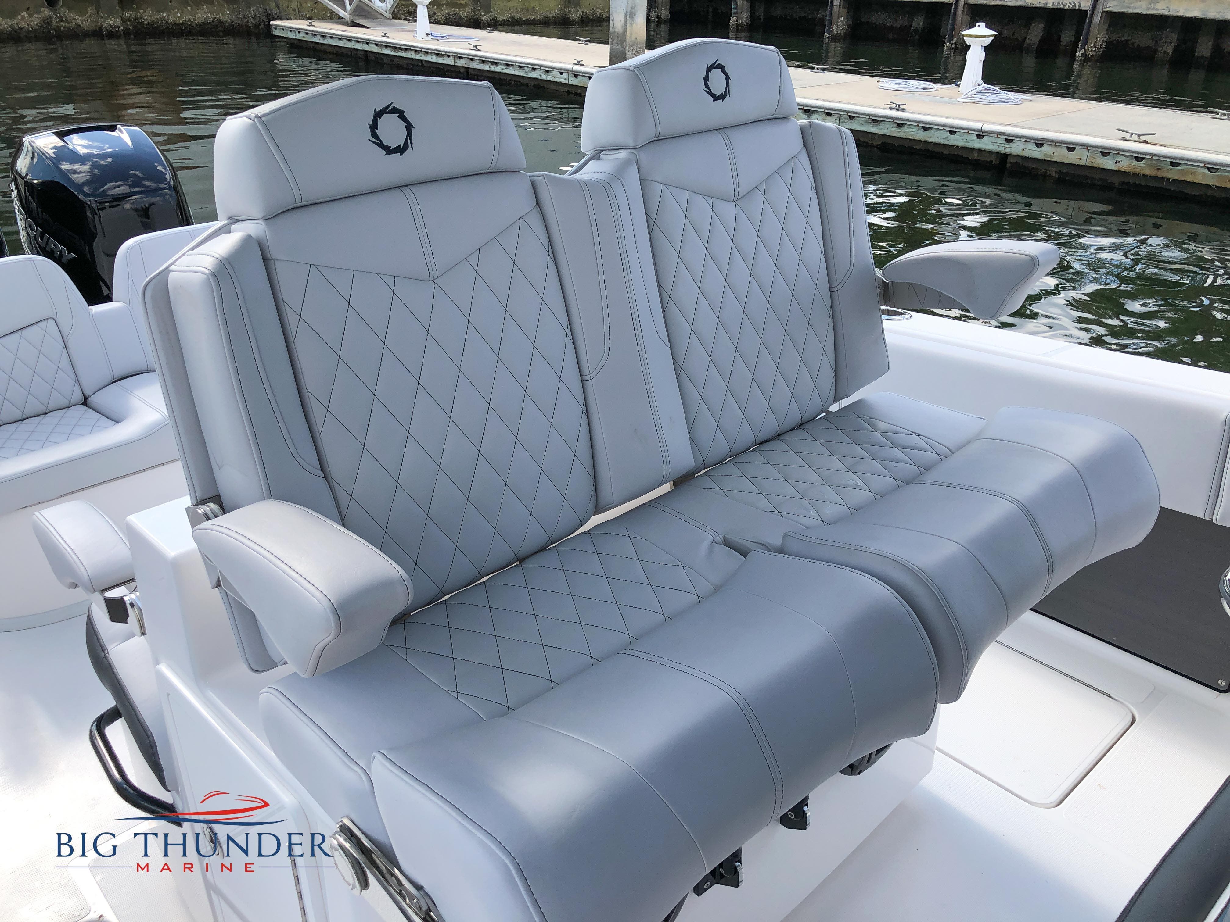 2020 Fountain 34CC LS Twin Mercury 400 Verado DTS. Livorsi 1150 Trim Tabs. White Gelcoat. Custom Gray Hull Paint w/ Black Pin Stripe. Black Powder Coat Aluminum & SS Components. Gray T-Top Underside Paint. Sky Gray Upholstery. Gray & Black Composite Marine Mat Flooring. Underwater Lights. JL Premium Audio System w/ (8) 7.7"" LED Spkrs, (2) 10"" Subs & Mono-Block Amp. Rear Livewell Under Rear Facing Seat. 18’ Aluminum Outriggers w/ GS 280 Base. Portlight. Dual Simrad 16"" NSS Evo3 Displays. Mercury VesselView 903. HALO Technology 24"" Dome w/ 48mi. Range. Broadband Sonar w/ Chirp Technology. VHF Radio w/ Antenna. Go Free Wifi. Simrad Full Function Autopilot. Cabin w/ Head & Fresh Water Sink. Fresh & Raw Water Washdown. Pressurized Shower.