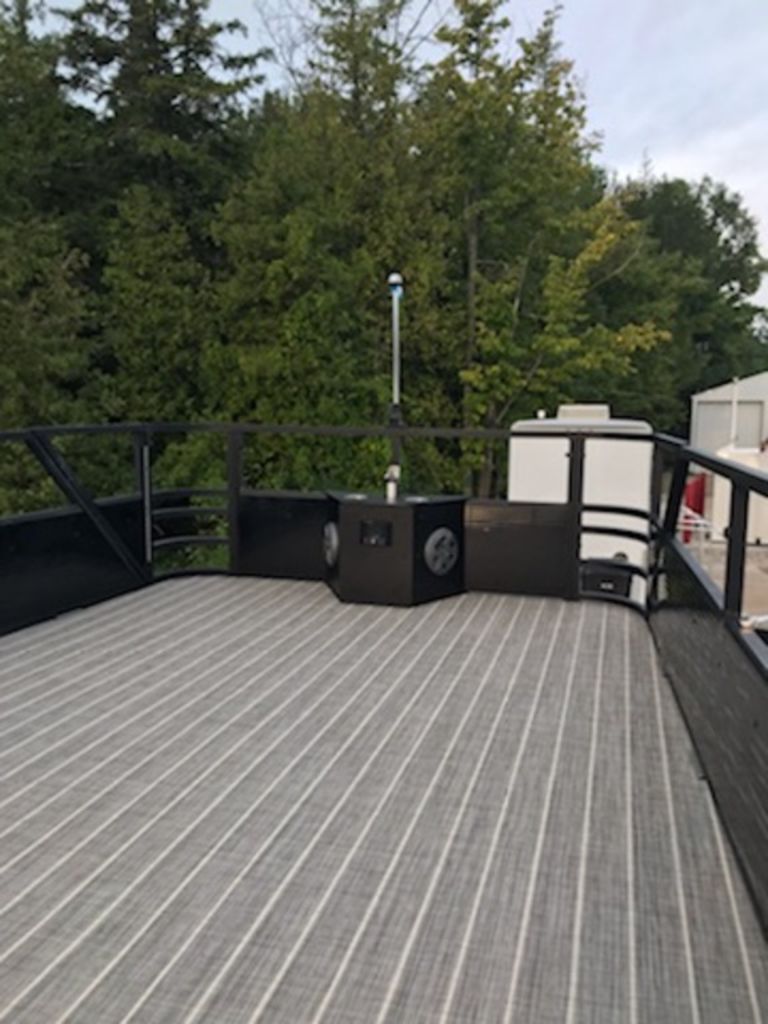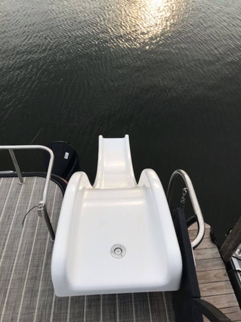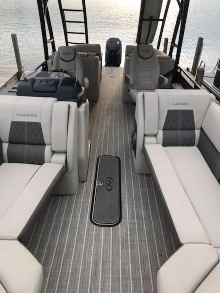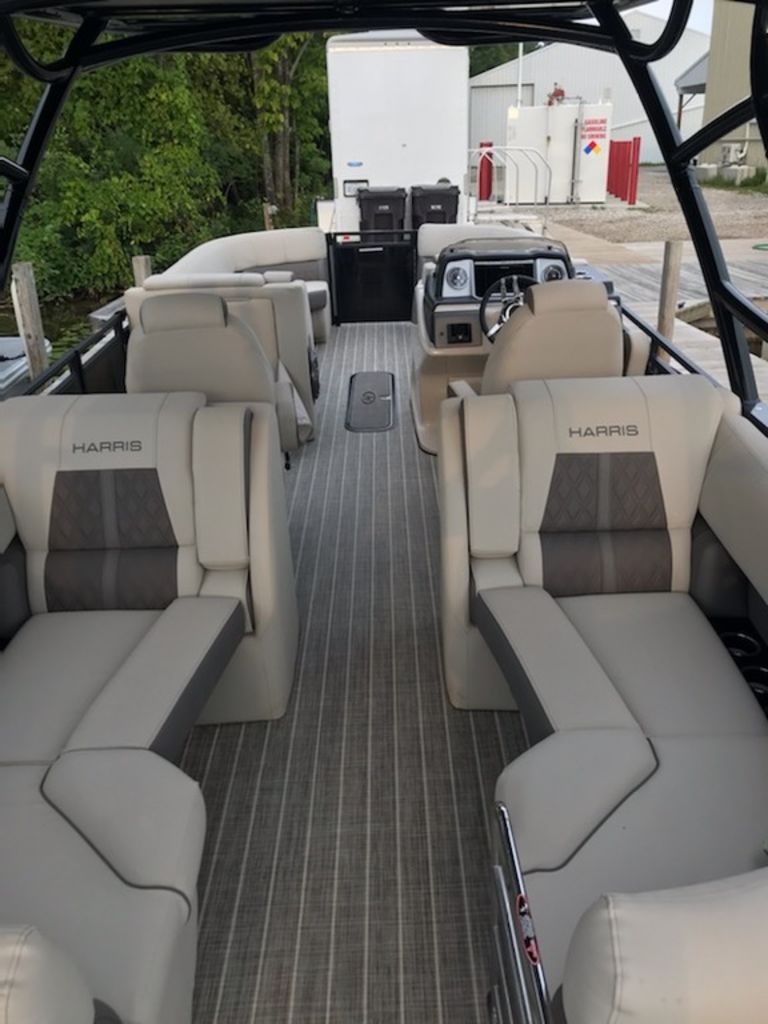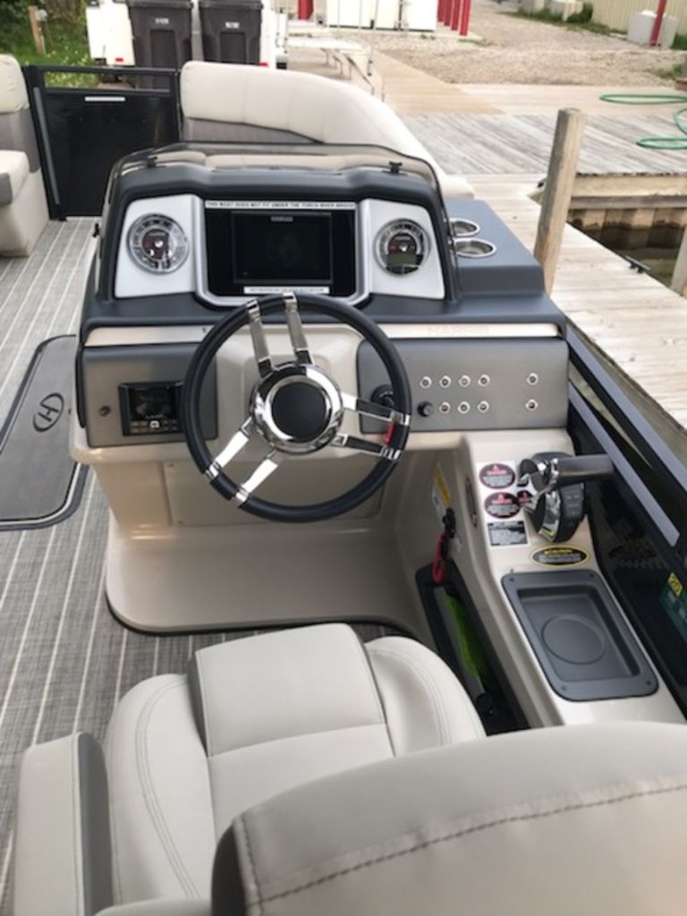 Here is by far the best way to hit the water in the summers! This 26ft double decker tritoon has a capacity for 15 people and can take them anywhere in ultra comfort! The boat comes with a powerful 250hp Mercury V8 engine which propels the boat at an impressive clip. Features include black out package, interior lighting package, ultra-lux dual helm seats, Simrad G07 chartplotter, JL diamond stereo, privacy chaise, and much much more. Stop by and test drive today!