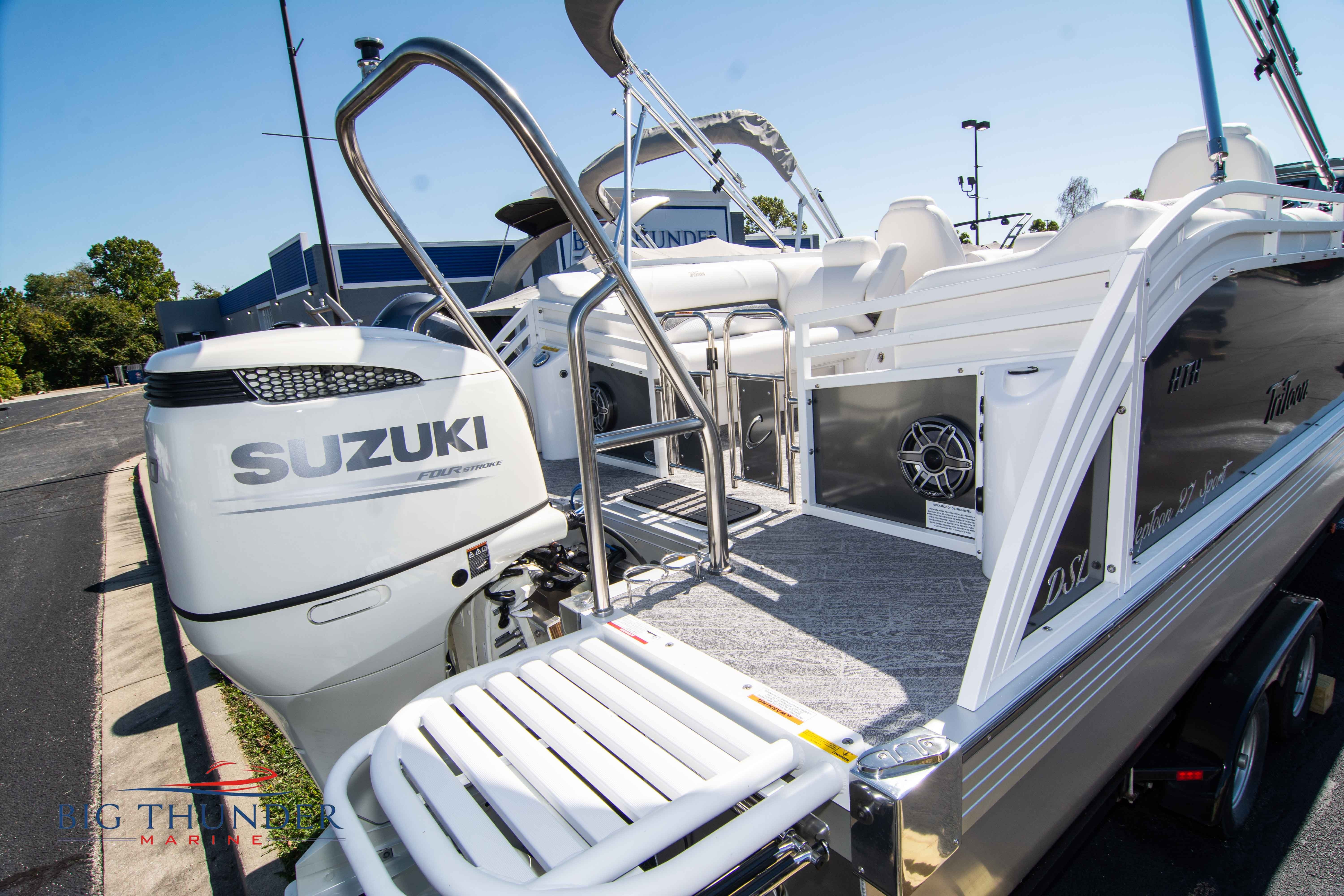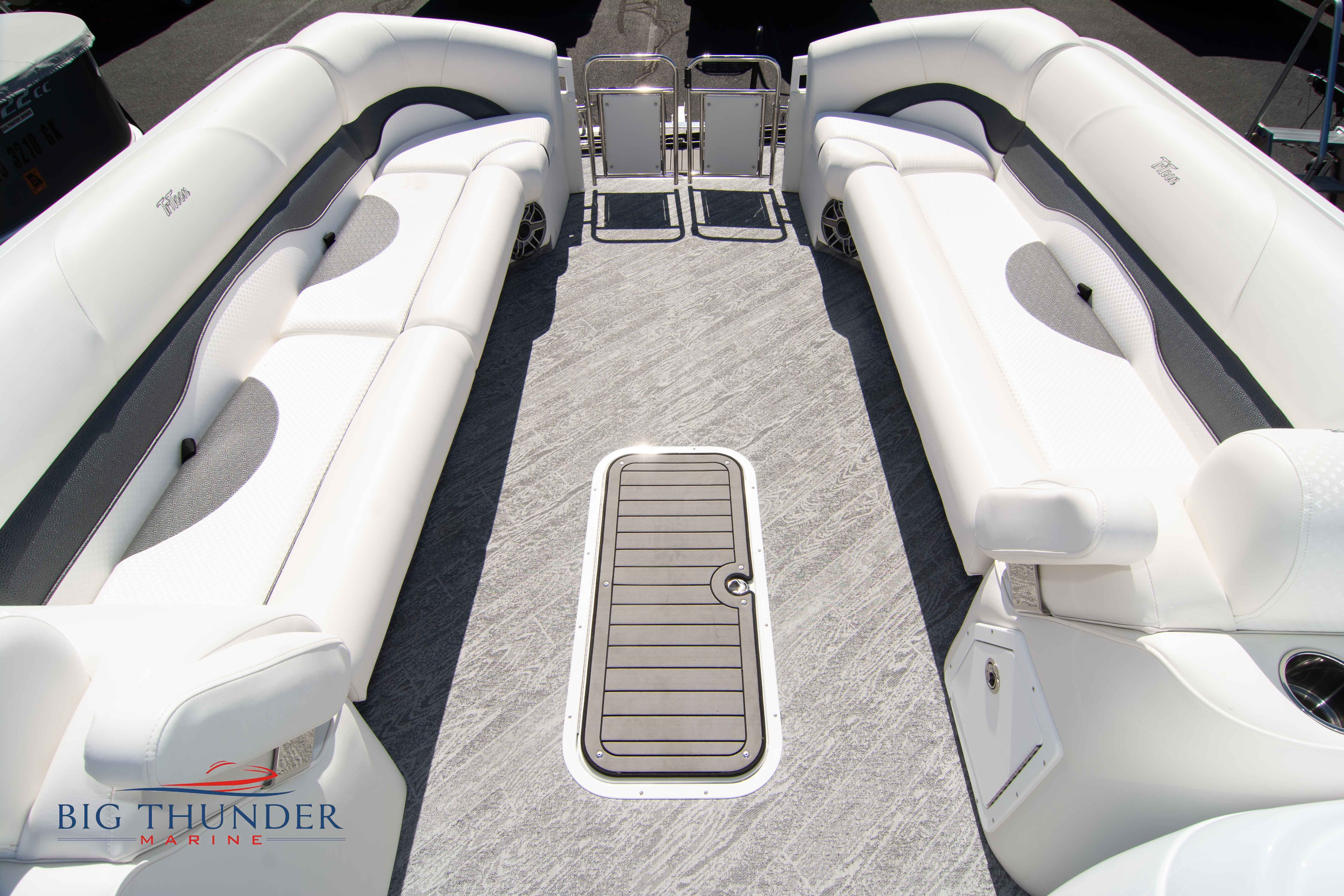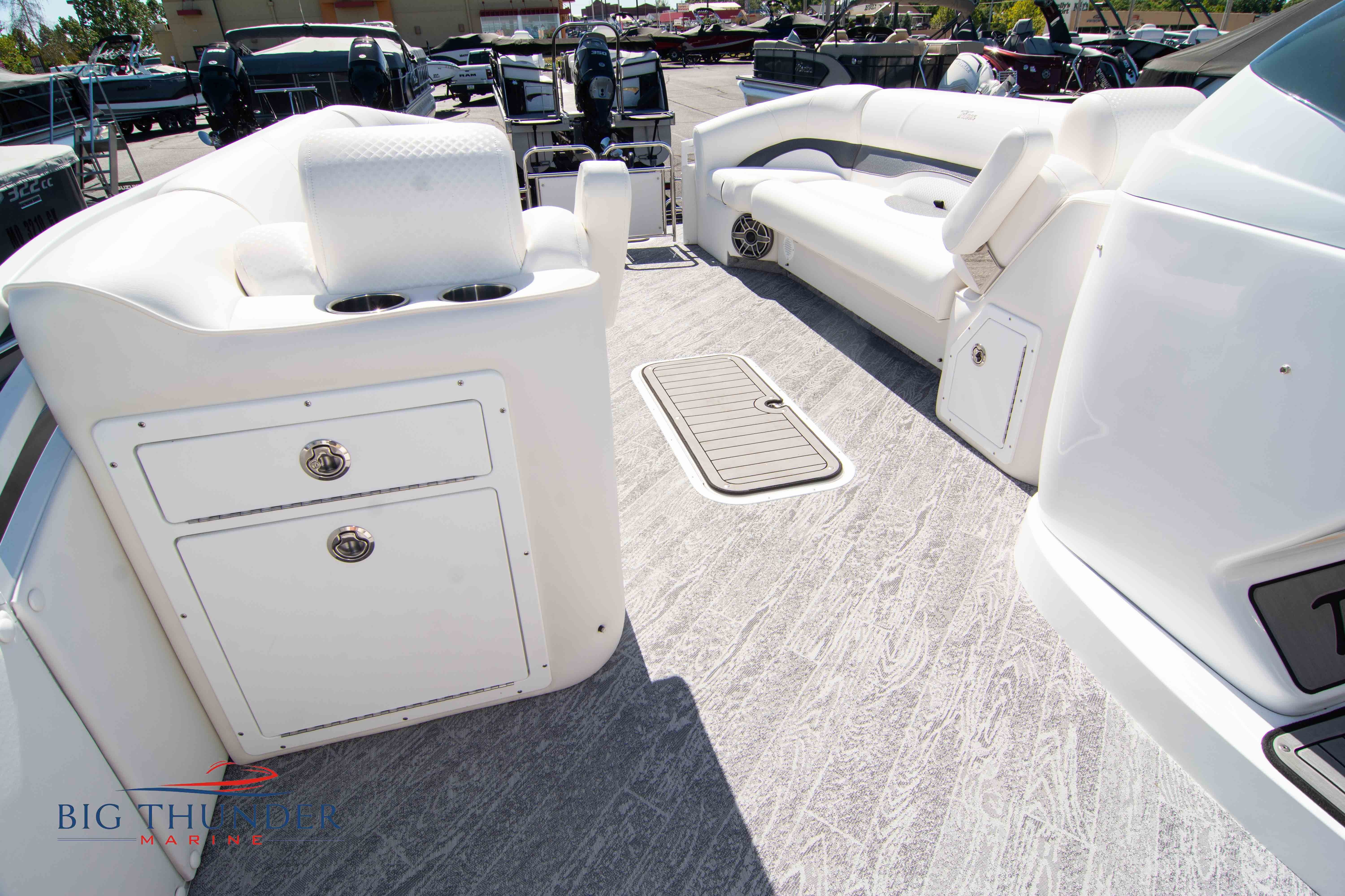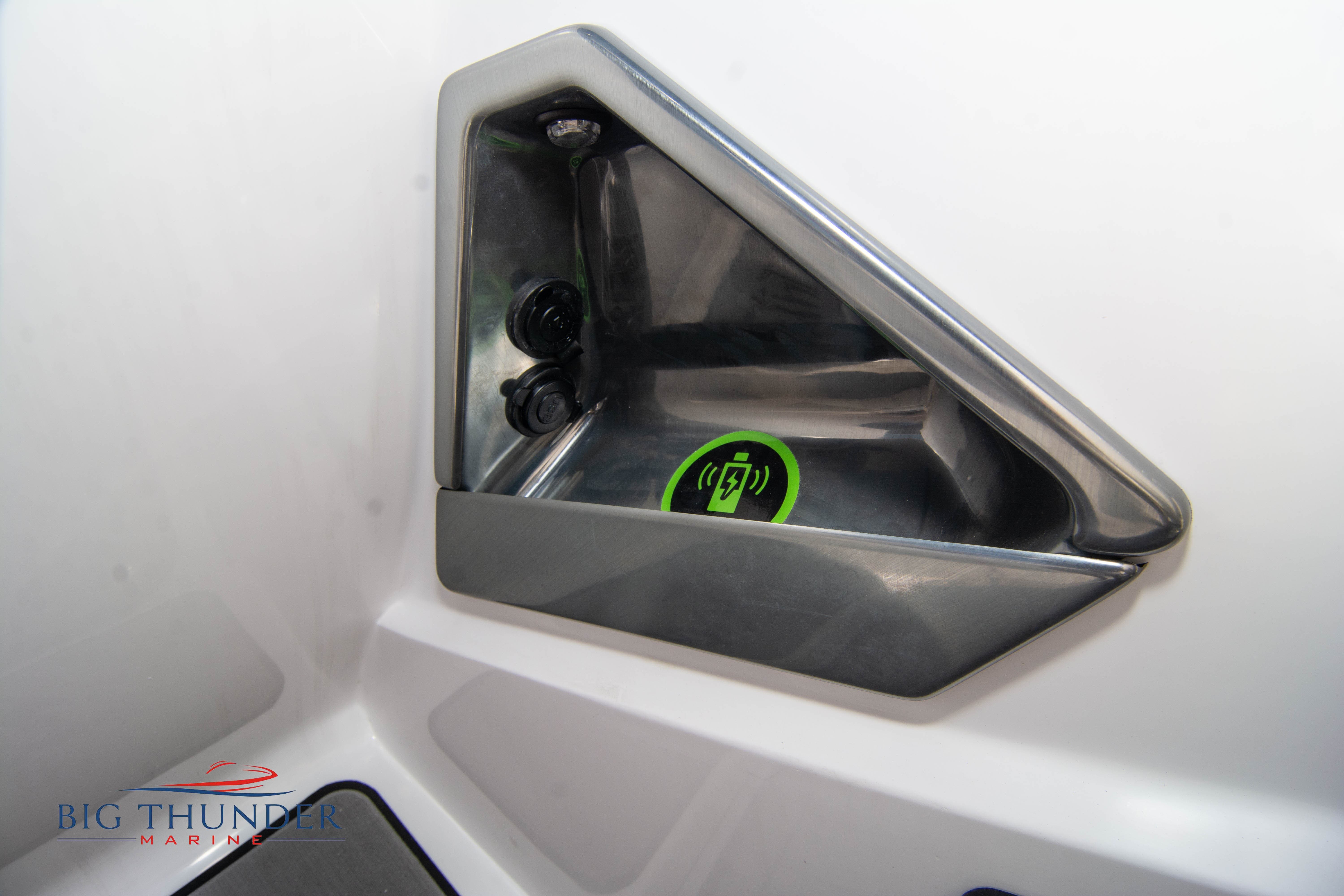 Suzuki Pre-Rig. Suzuki 250 SSTXW2. Sport Pkg. (Hydraulic Steering 1.7 w/ Power Assist, Lifting Fins). High Tide Hull (High Strength Elevated Performance Hull w/ 350HP Rating, Bow Anchor Locker w/ Marine Mat, In-Tube Storage w/ Marine Mat, Taller SS Heavy Duty Ski Tow). Charcoal Wall Panels. White Rails & Helm Cap. SS Rubrail Insert. SS Flip Up Bow Cleat. SS Fender Holder w/ Fenders. SS Bow Rails.Gray JC Plank Flooring. White Upholstery w/ Charcoal Upholstery Trim Pkg. Steel Color Bimini Top. Bimini Trailering Supports-10’ HD 1 1/4"" Frame (2). Dual Swim Platform w/ Ladder. Dual Stern Lounges w/ Storage & Drawer. Bow Lounger w/ Arm Rest w/ USB Storage & Drawer. Bow Lounger w/ Arm Rest w/ Trash And Flip Down Storage. High Back Reclining Companion Seat w/ Leg Lift. High Back Reclining Helm Capt. Chair w/ Bolster. Raised Helm Platform w/ Marine Mat. Deluxe Spoked Steering Wheel. 7"" Simrad GO7 Touch Screen w/ Engine Interface. JL MM-100 Stereo. JL 8.8 Spkr. Upgrade 2/ RGB Lights & 6W Amp. JL 8.8 Stern Spkrs. (2) w/ 2-Way Inline JL Amp. RGB Interior/Exterior Lighting Pkg. w/ Control Center. Floor & Helm Misting System. Glove Box. Fuel/Water Filter. Mooring Cover.