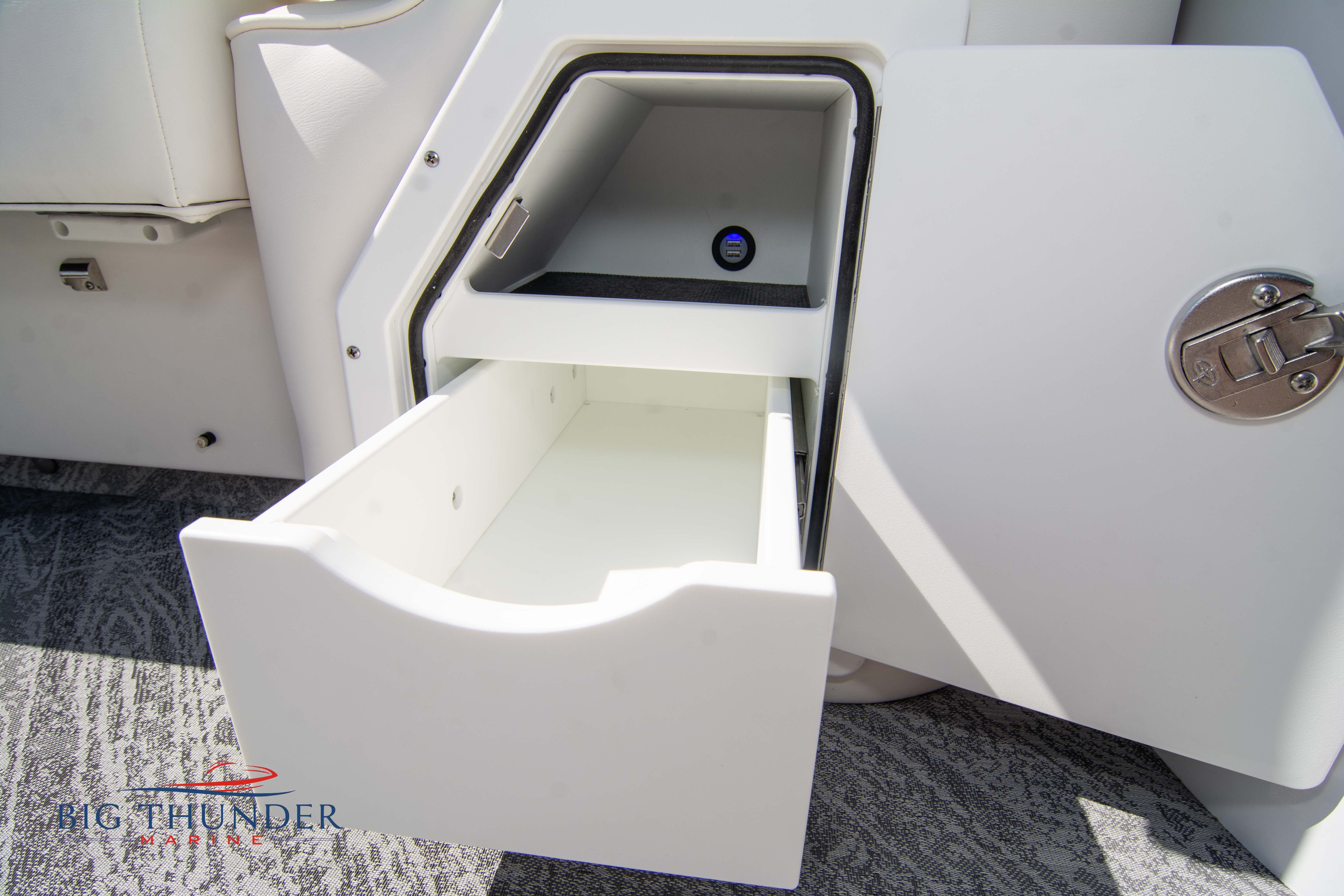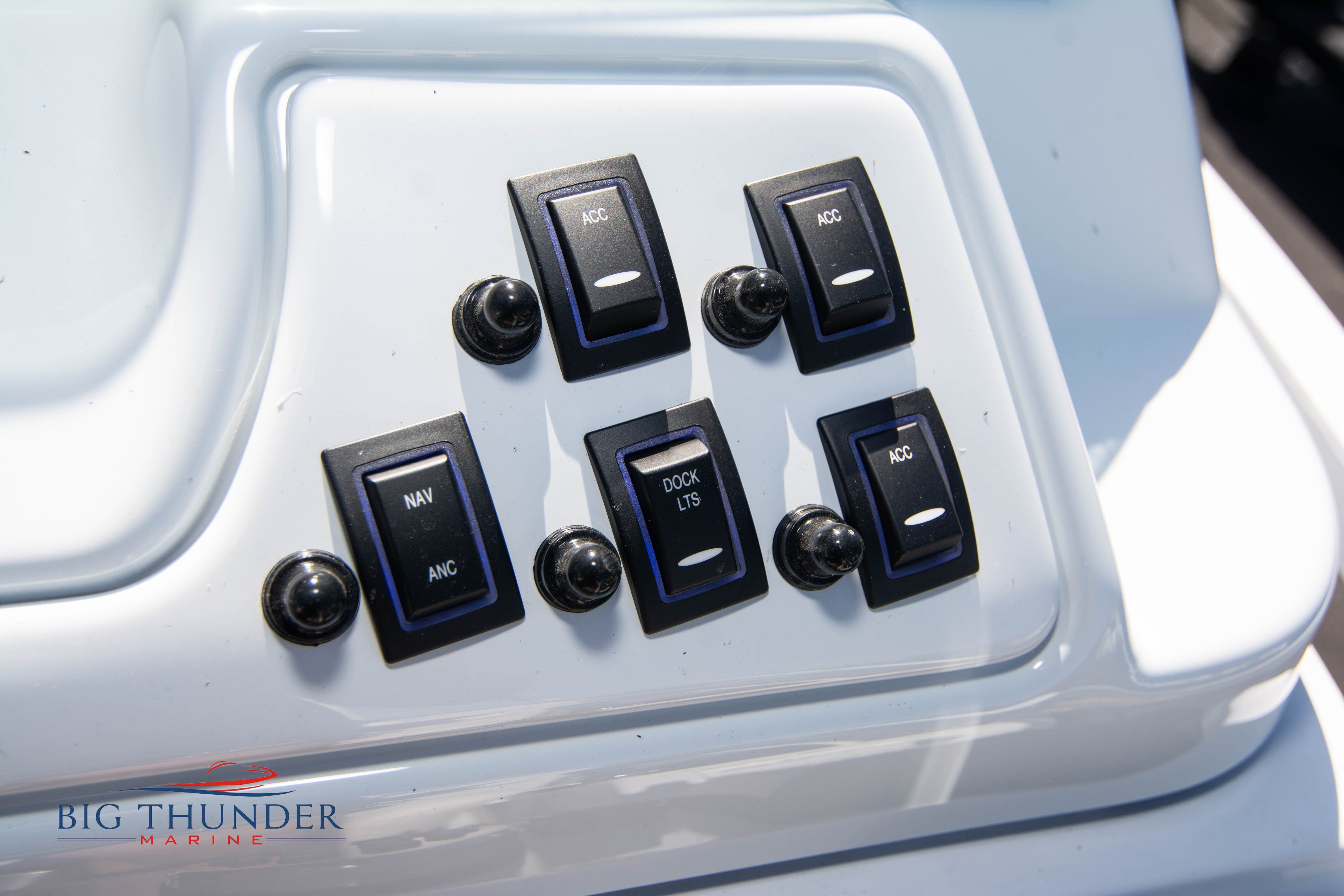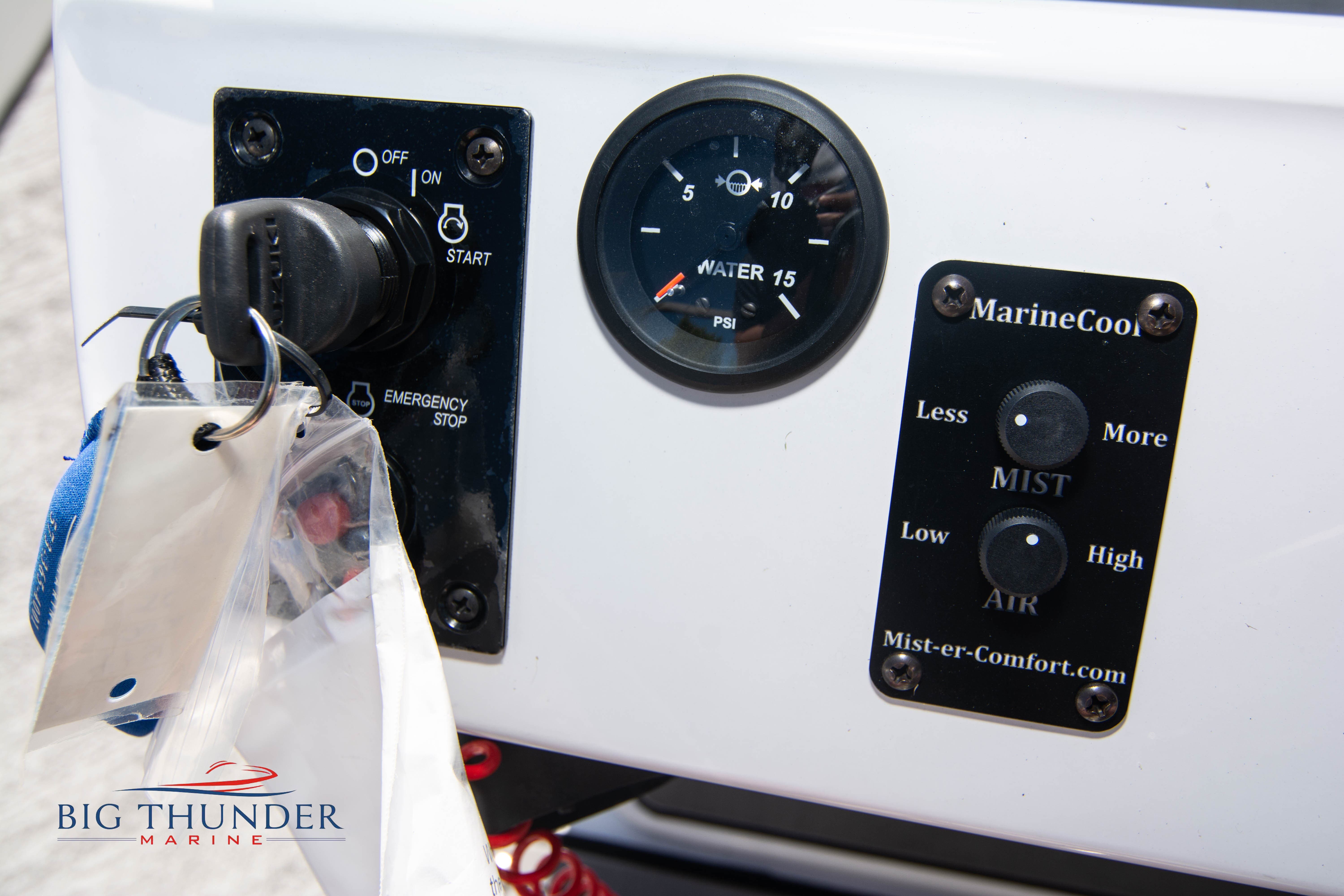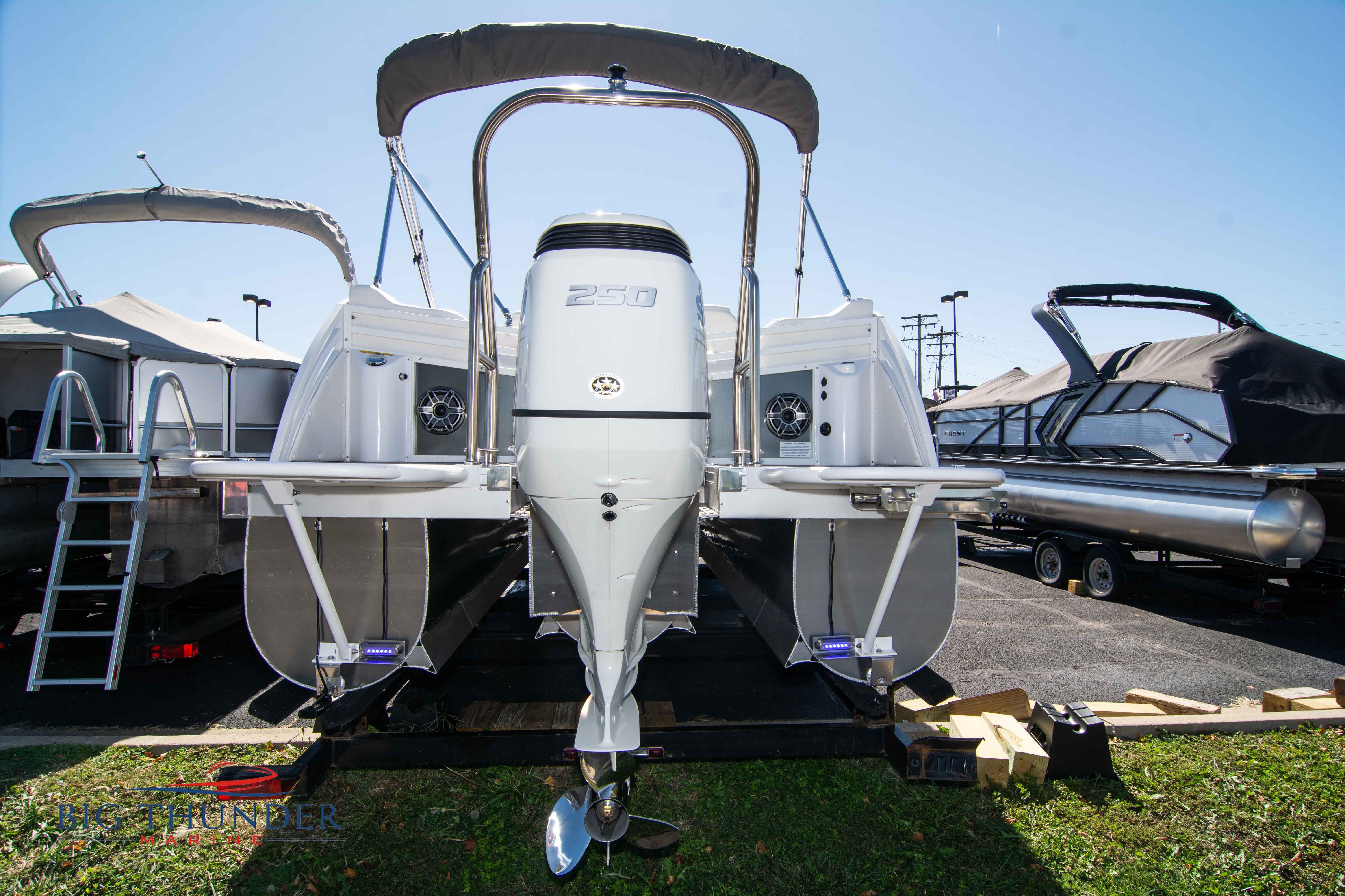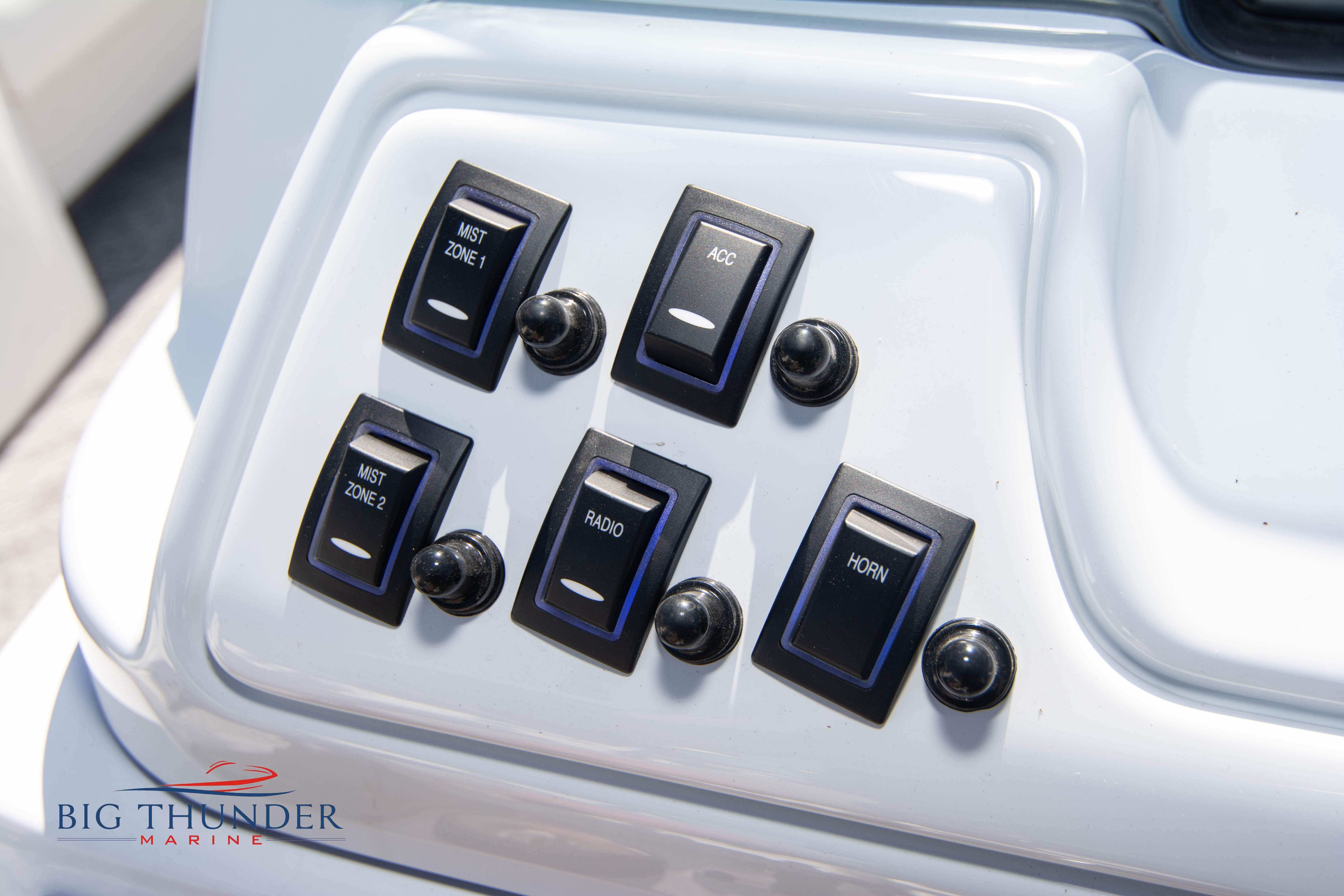 Suzuki Pre-Rig. Suzuki 250 SSTXW2. Sport Pkg. (Hydraulic Steering 1.7 w/ Power Assist, Lifting Fins). High Tide Hull (High Strength Elevated Performance Hull w/ 350HP Rating, Bow Anchor Locker w/ Marine Mat, In-Tube Storage w/ Marine Mat, Taller SS Heavy Duty Ski Tow). Charcoal Wall Panels. White Rails & Helm Cap. SS Rubrail Insert. SS Flip Up Bow Cleat. SS Fender Holder w/ Fenders. SS Bow Rails.Gray JC Plank Flooring. White Upholstery w/ Charcoal Upholstery Trim Pkg. Steel Color Bimini Top. Bimini Trailering Supports-10’ HD 1 1/4"" Frame (2). Dual Swim Platform w/ Ladder. Dual Stern Lounges w/ Storage & Drawer. Bow Lounger w/ Arm Rest w/ USB Storage & Drawer. Bow Lounger w/ Arm Rest w/ Trash And Flip Down Storage. High Back Reclining Companion Seat w/ Leg Lift. High Back Reclining Helm Capt. Chair w/ Bolster. Raised Helm Platform w/ Marine Mat. Deluxe Spoked Steering Wheel. 7"" Simrad GO7 Touch Screen w/ Engine Interface. JL MM-100 Stereo. JL 8.8 Spkr. Upgrade 2/ RGB Lights & 6W Amp. JL 8.8 Stern Spkrs. (2) w/ 2-Way Inline JL Amp. RGB Interior/Exterior Lighting Pkg. w/ Control Center. Floor & Helm Misting System. Glove Box. Fuel/Water Filter. Mooring Cover.