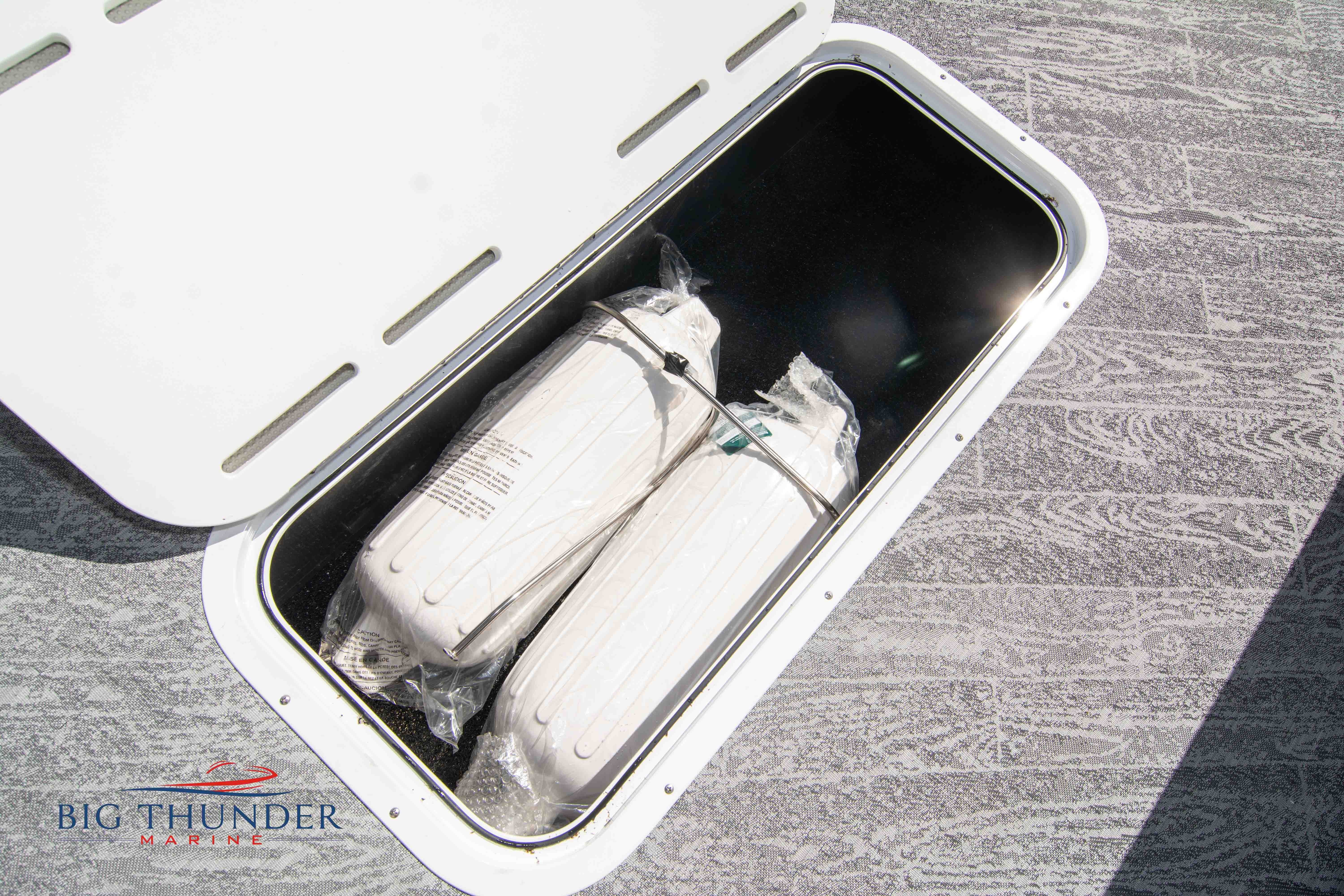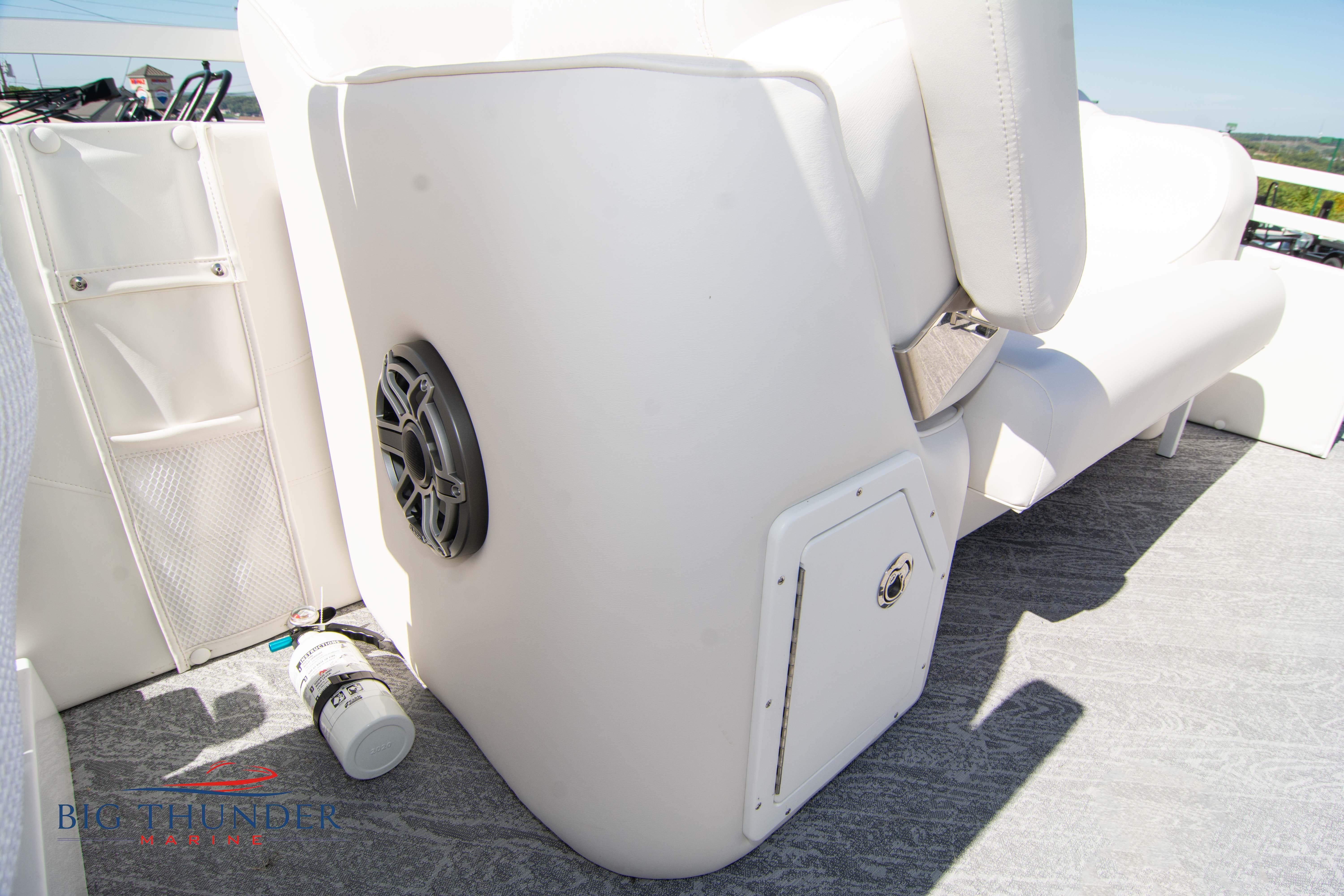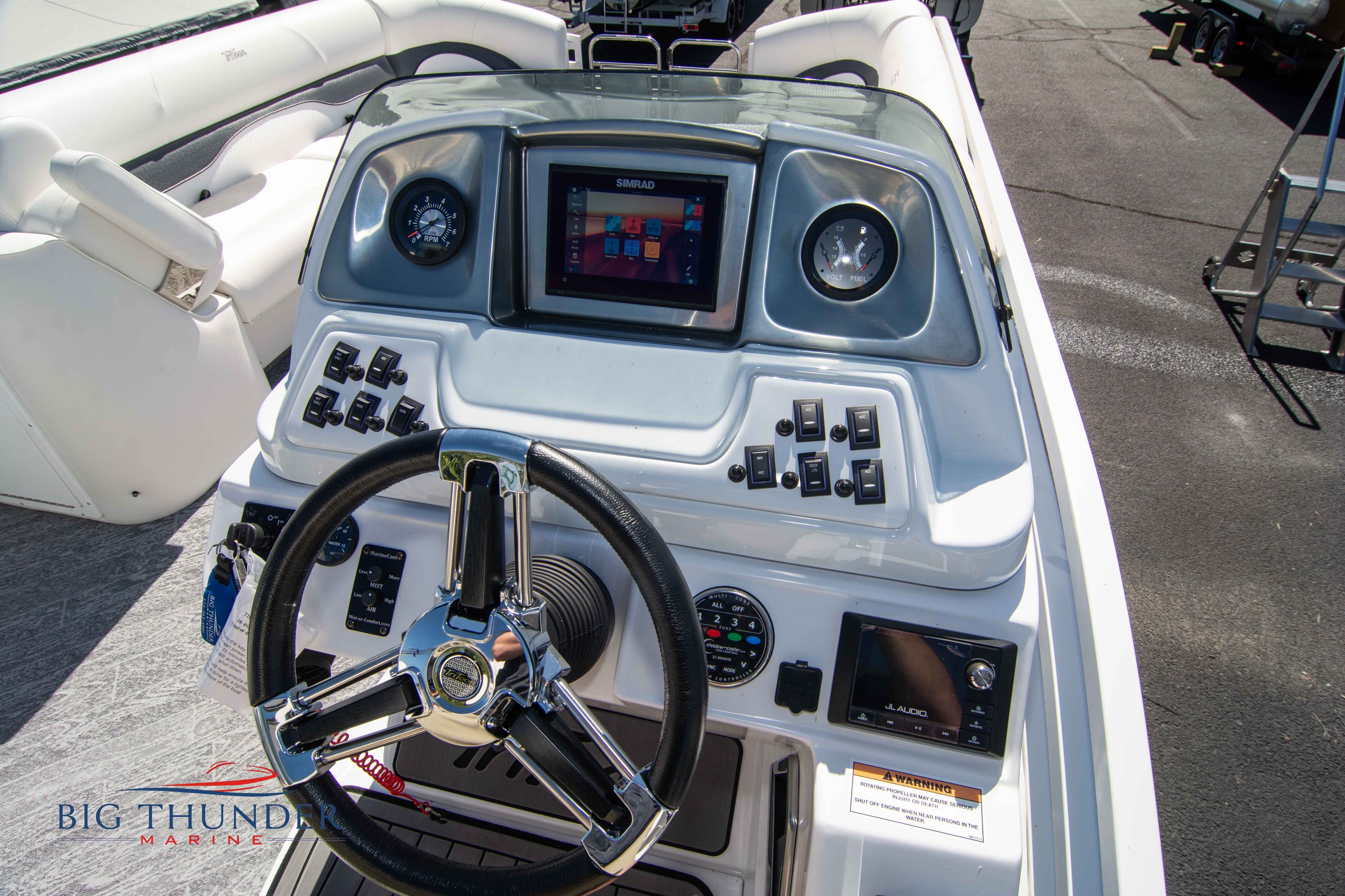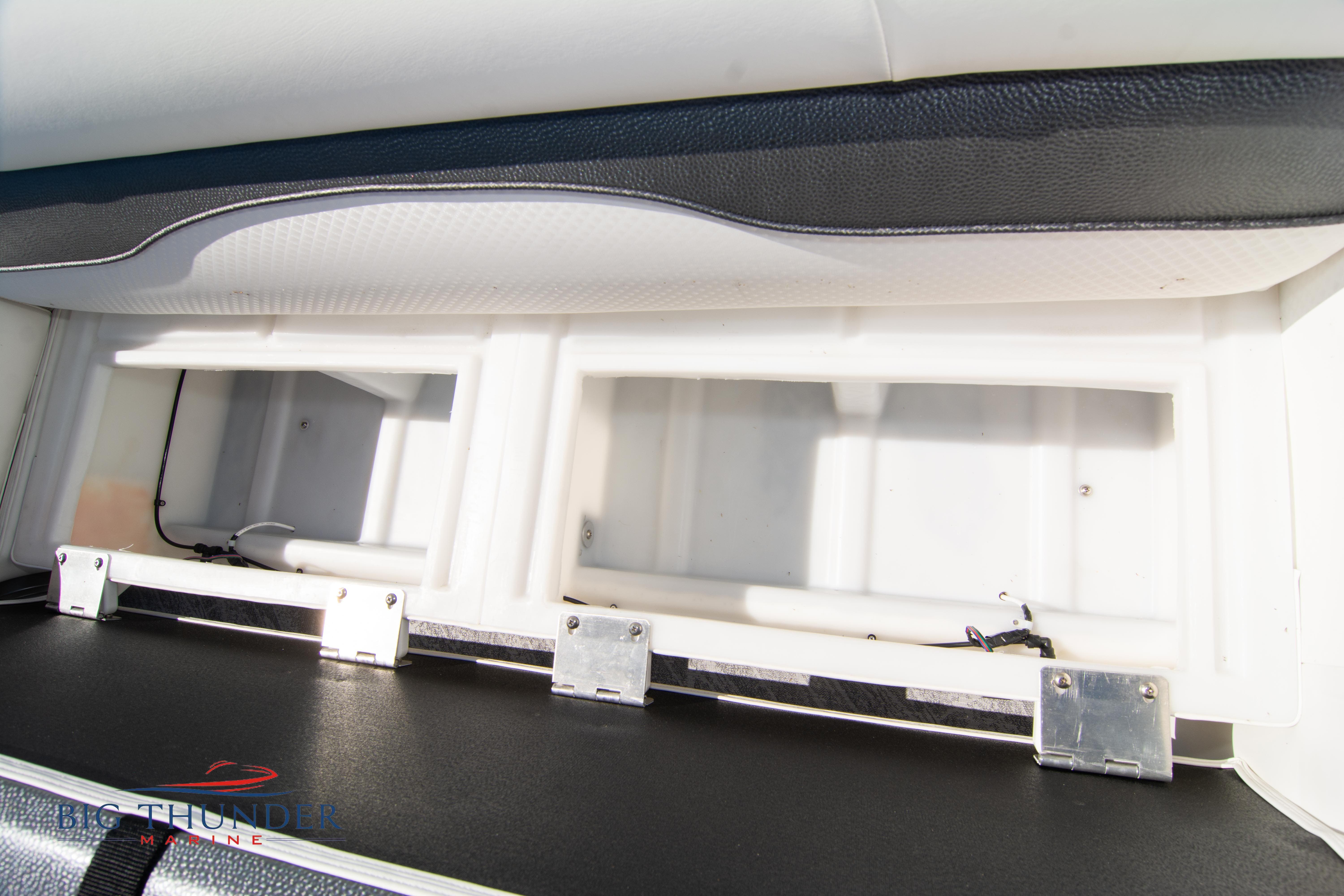 Suzuki Pre-Rig. Suzuki 250 SSTXW2. Sport Pkg. (Hydraulic Steering 1.7 w/ Power Assist, Lifting Fins). High Tide Hull (High Strength Elevated Performance Hull w/ 350HP Rating, Bow Anchor Locker w/ Marine Mat, In-Tube Storage w/ Marine Mat, Taller SS Heavy Duty Ski Tow). Charcoal Wall Panels. White Rails & Helm Cap. SS Rubrail Insert. SS Flip Up Bow Cleat. SS Fender Holder w/ Fenders. SS Bow Rails.Gray JC Plank Flooring. White Upholstery w/ Charcoal Upholstery Trim Pkg. Steel Color Bimini Top. Bimini Trailering Supports-10’ HD 1 1/4"" Frame (2). Dual Swim Platform w/ Ladder. Dual Stern Lounges w/ Storage & Drawer. Bow Lounger w/ Arm Rest w/ USB Storage & Drawer. Bow Lounger w/ Arm Rest w/ Trash And Flip Down Storage. High Back Reclining Companion Seat w/ Leg Lift. High Back Reclining Helm Capt. Chair w/ Bolster. Raised Helm Platform w/ Marine Mat. Deluxe Spoked Steering Wheel. 7"" Simrad GO7 Touch Screen w/ Engine Interface. JL MM-100 Stereo. JL 8.8 Spkr. Upgrade 2/ RGB Lights & 6W Amp. JL 8.8 Stern Spkrs. (2) w/ 2-Way Inline JL Amp. RGB Interior/Exterior Lighting Pkg. w/ Control Center. Floor & Helm Misting System. Glove Box. Fuel/Water Filter. Mooring Cover.
