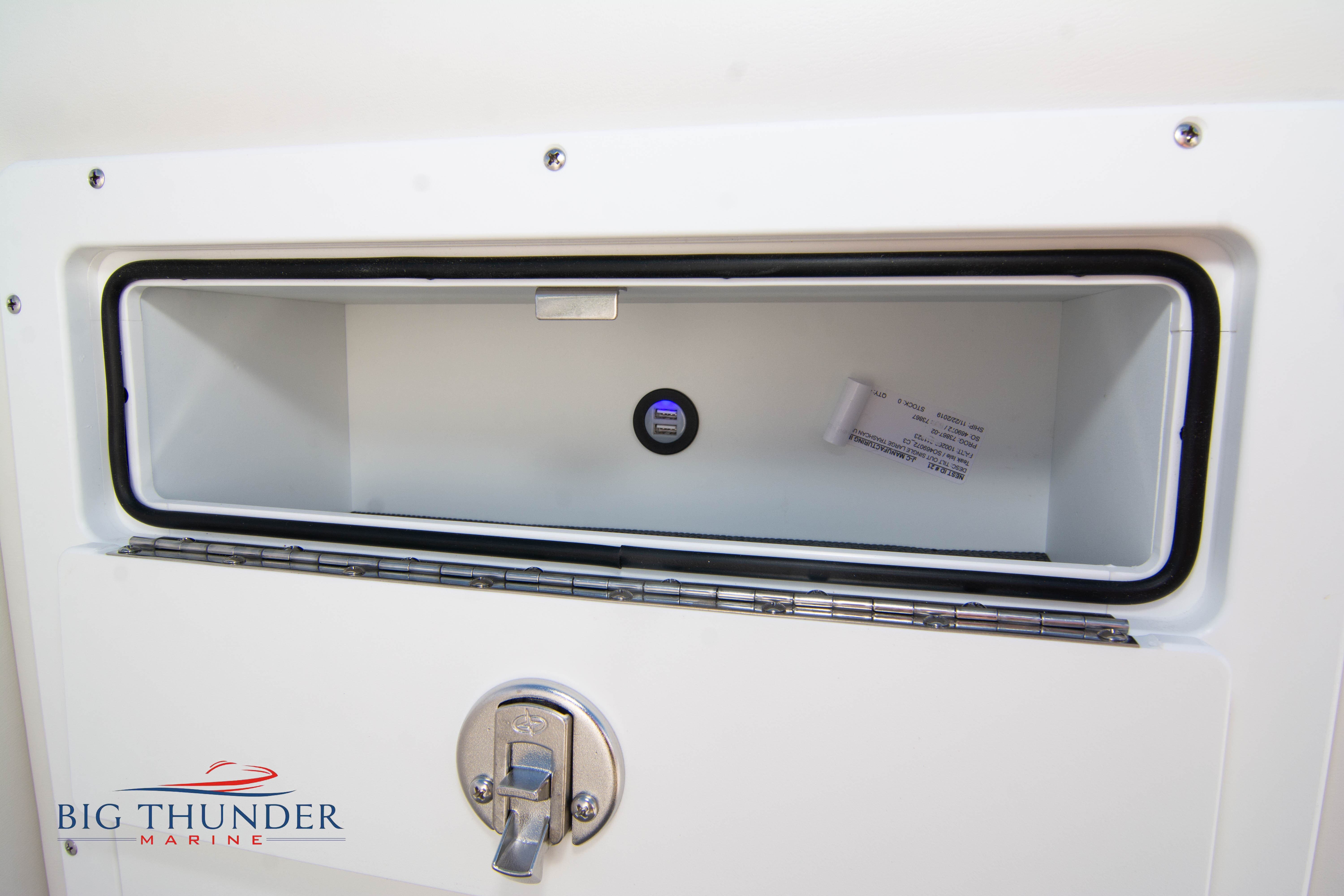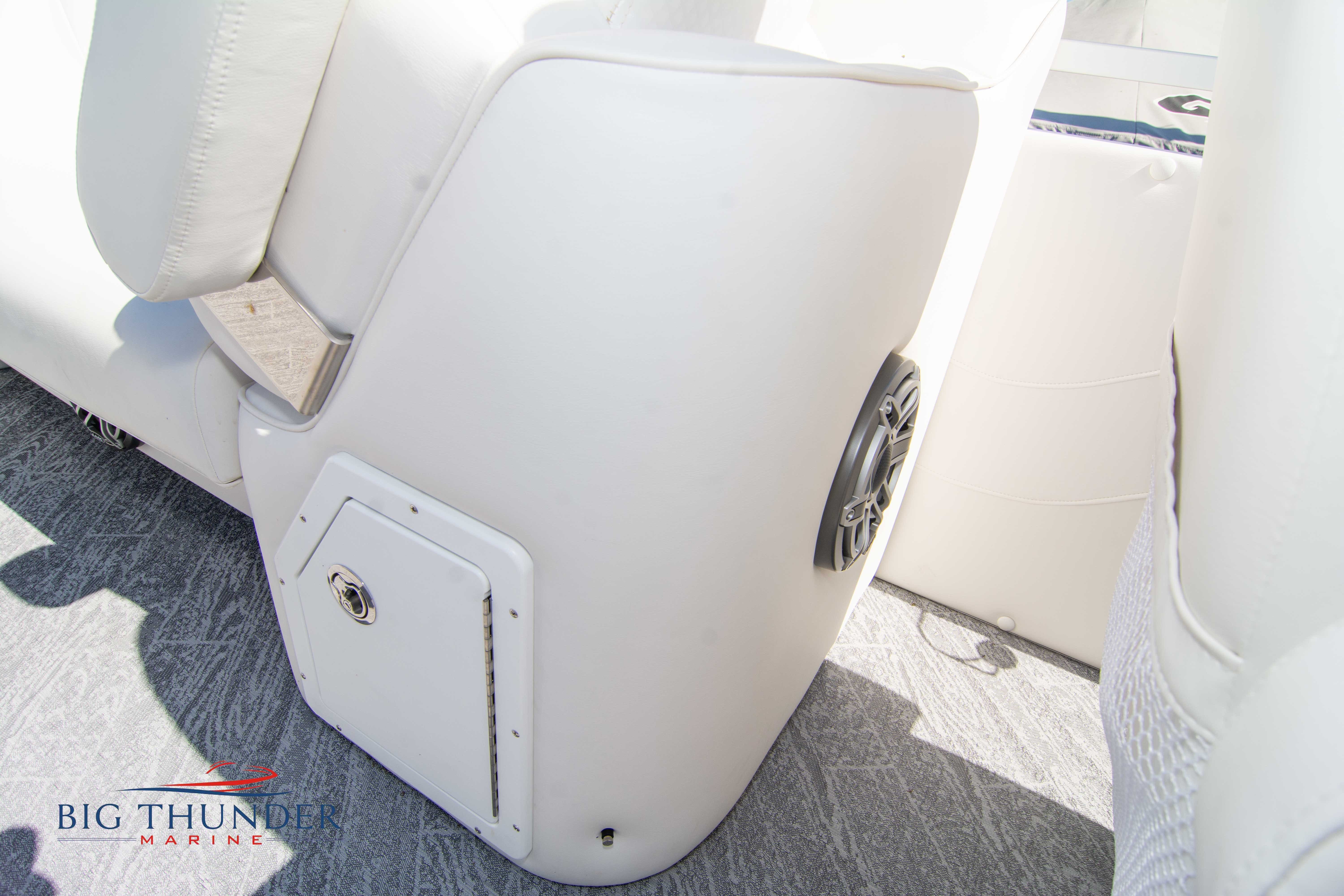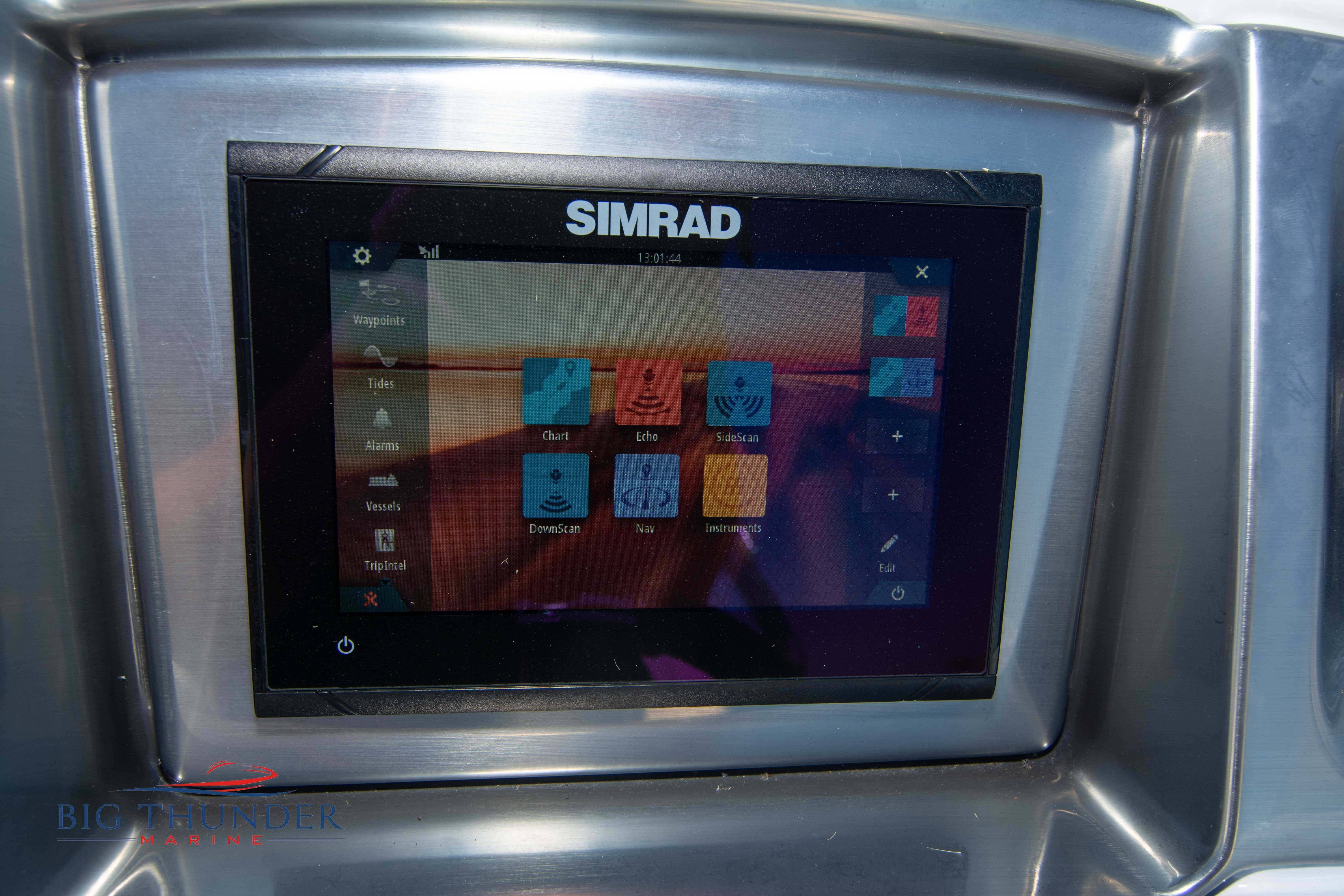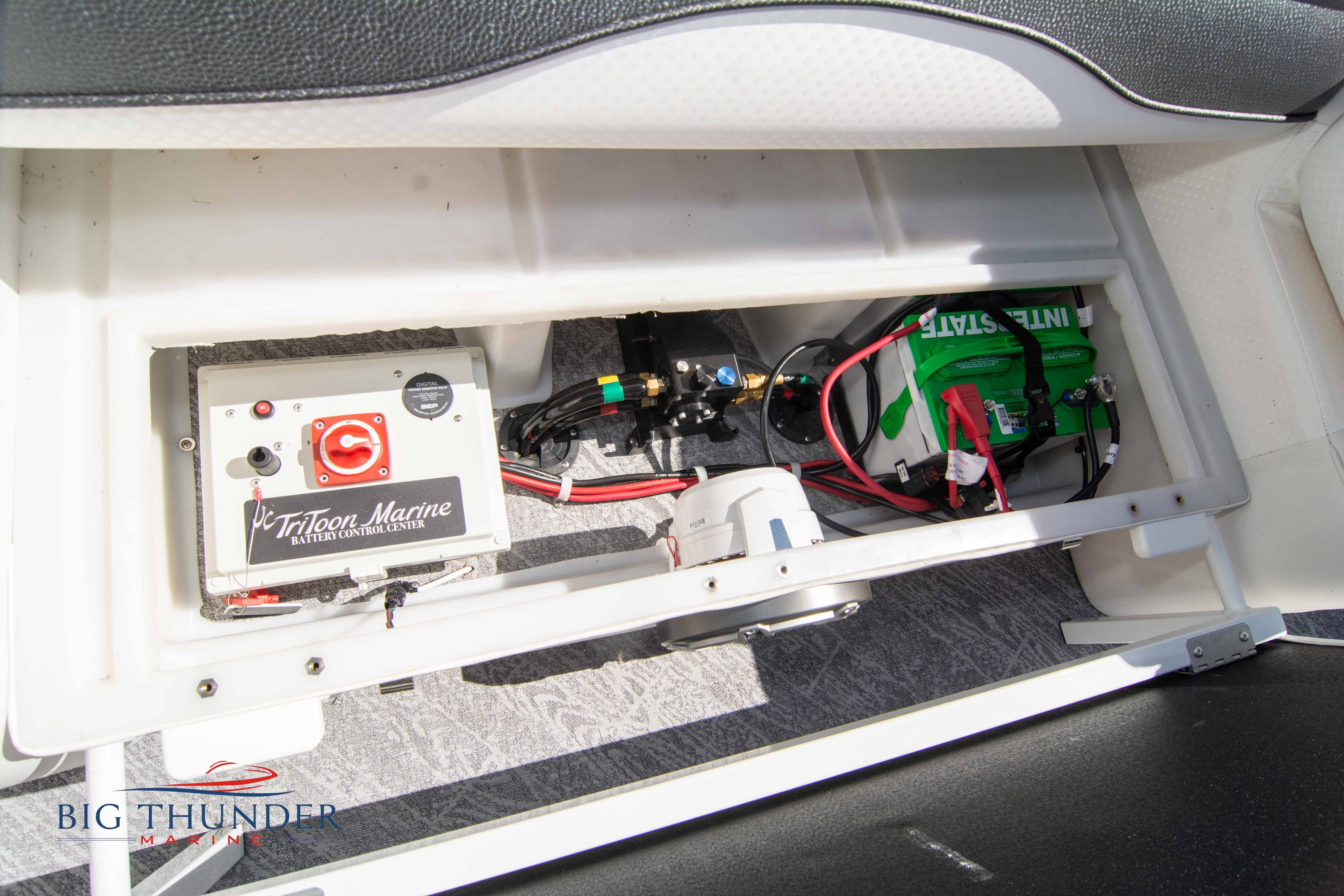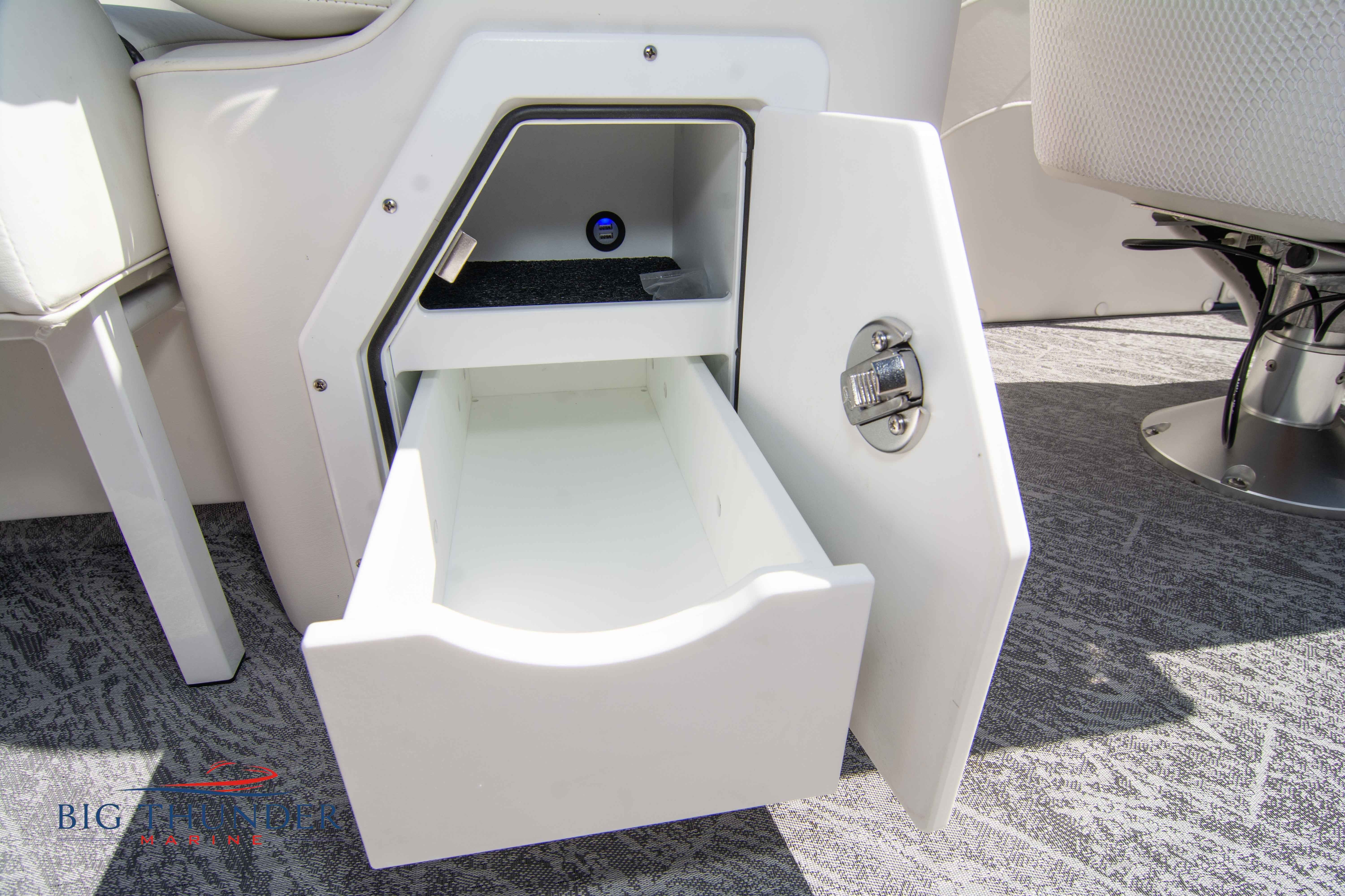 Suzuki Pre-Rig. Suzuki 250 SSTXW2. Sport Pkg. (Hydraulic Steering 1.7 w/ Power Assist, Lifting Fins). High Tide Hull (High Strength Elevated Performance Hull w/ 350HP Rating, Bow Anchor Locker w/ Marine Mat, In-Tube Storage w/ Marine Mat, Taller SS Heavy Duty Ski Tow). Charcoal Wall Panels. White Rails & Helm Cap. SS Rubrail Insert. SS Flip Up Bow Cleat. SS Fender Holder w/ Fenders. SS Bow Rails.Gray JC Plank Flooring. White Upholstery w/ Charcoal Upholstery Trim Pkg. Steel Color Bimini Top. Bimini Trailering Supports-10’ HD 1 1/4"" Frame (2). Dual Swim Platform w/ Ladder. Dual Stern Lounges w/ Storage & Drawer. Bow Lounger w/ Arm Rest w/ USB Storage & Drawer. Bow Lounger w/ Arm Rest w/ Trash And Flip Down Storage. High Back Reclining Companion Seat w/ Leg Lift. High Back Reclining Helm Capt. Chair w/ Bolster. Raised Helm Platform w/ Marine Mat. Deluxe Spoked Steering Wheel. 7"" Simrad GO7 Touch Screen w/ Engine Interface. JL MM-100 Stereo. JL 8.8 Spkr. Upgrade 2/ RGB Lights & 6W Amp. JL 8.8 Stern Spkrs. (2) w/ 2-Way Inline JL Amp. RGB Interior/Exterior Lighting Pkg. w/ Control Center. Floor & Helm Misting System. Glove Box. Fuel/Water Filter. Mooring Cover.