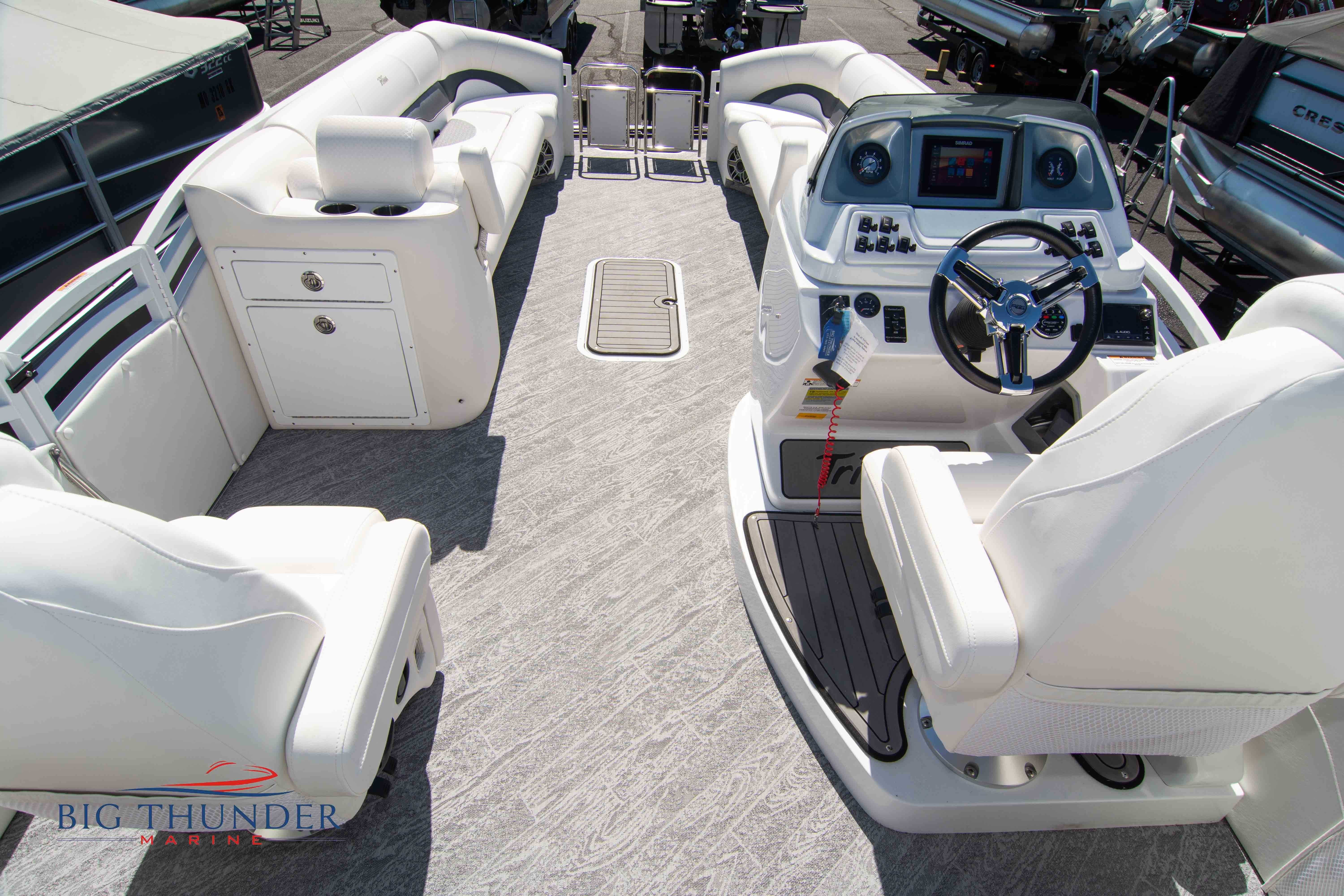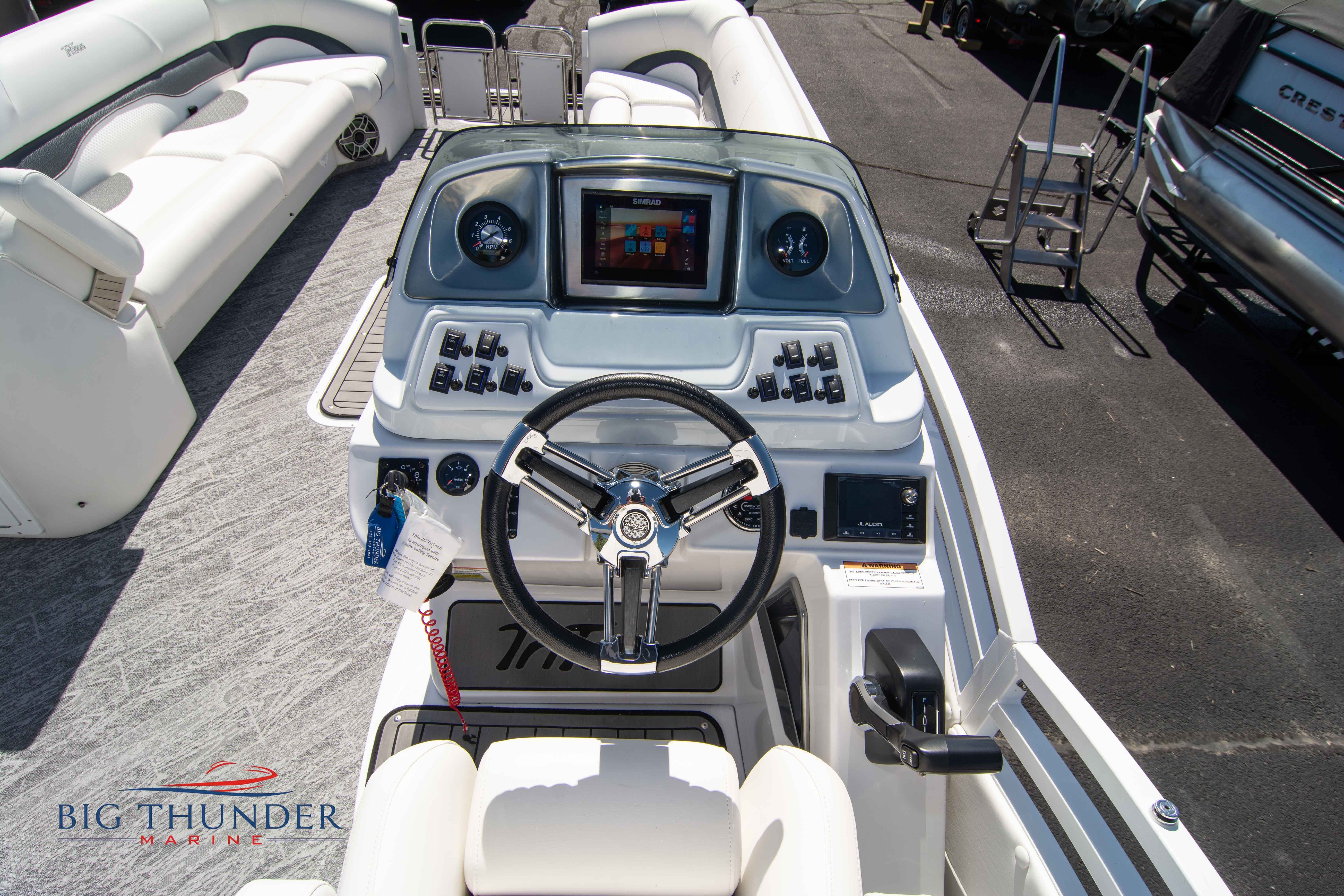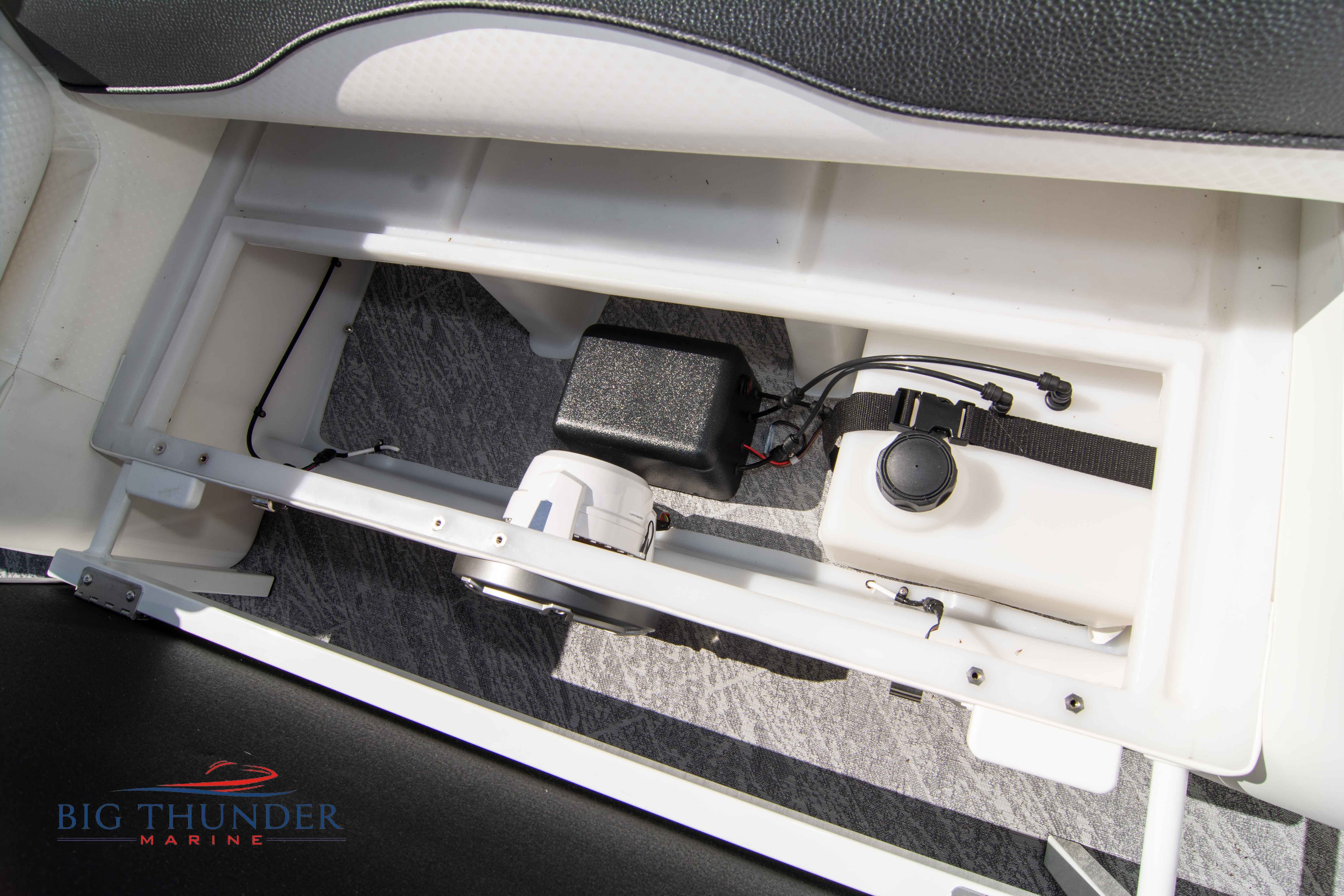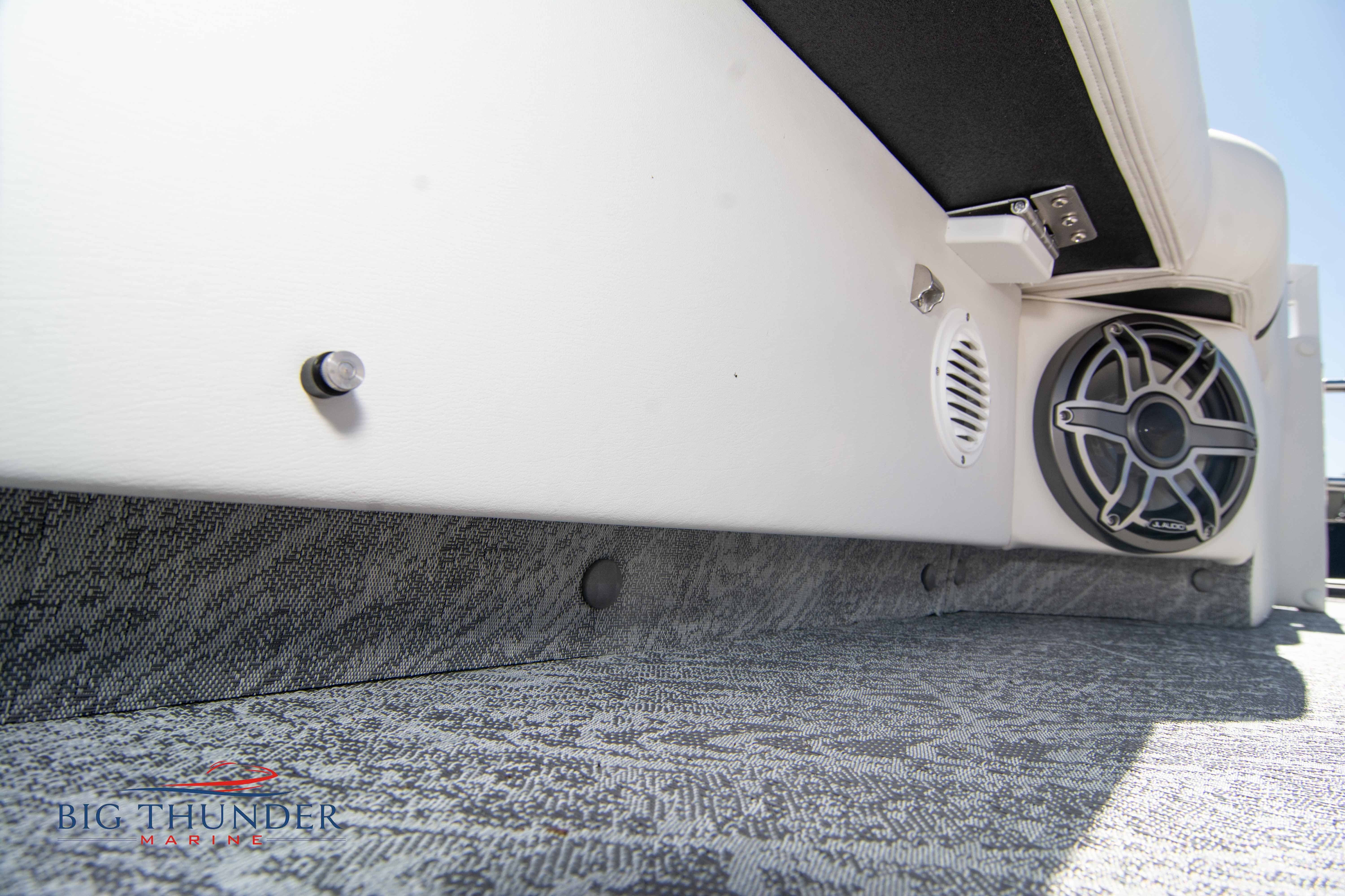 Suzuki Pre-Rig. Suzuki 250 SSTXW2. Sport Pkg. (Hydraulic Steering 1.7 w/ Power Assist, Lifting Fins). High Tide Hull (High Strength Elevated Performance Hull w/ 350HP Rating, Bow Anchor Locker w/ Marine Mat, In-Tube Storage w/ Marine Mat, Taller SS Heavy Duty Ski Tow). Charcoal Wall Panels. White Rails & Helm Cap. SS Rubrail Insert. SS Flip Up Bow Cleat. SS Fender Holder w/ Fenders. SS Bow Rails.Gray JC Plank Flooring. White Upholstery w/ Charcoal Upholstery Trim Pkg. Steel Color Bimini Top. Bimini Trailering Supports-10’ HD 1 1/4"" Frame (2). Dual Swim Platform w/ Ladder. Dual Stern Lounges w/ Storage & Drawer. Bow Lounger w/ Arm Rest w/ USB Storage & Drawer. Bow Lounger w/ Arm Rest w/ Trash And Flip Down Storage. High Back Reclining Companion Seat w/ Leg Lift. High Back Reclining Helm Capt. Chair w/ Bolster. Raised Helm Platform w/ Marine Mat. Deluxe Spoked Steering Wheel. 7"" Simrad GO7 Touch Screen w/ Engine Interface. JL MM-100 Stereo. JL 8.8 Spkr. Upgrade 2/ RGB Lights & 6W Amp. JL 8.8 Stern Spkrs. (2) w/ 2-Way Inline JL Amp. RGB Interior/Exterior Lighting Pkg. w/ Control Center. Floor & Helm Misting System. Glove Box. Fuel/Water Filter. Mooring Cover.