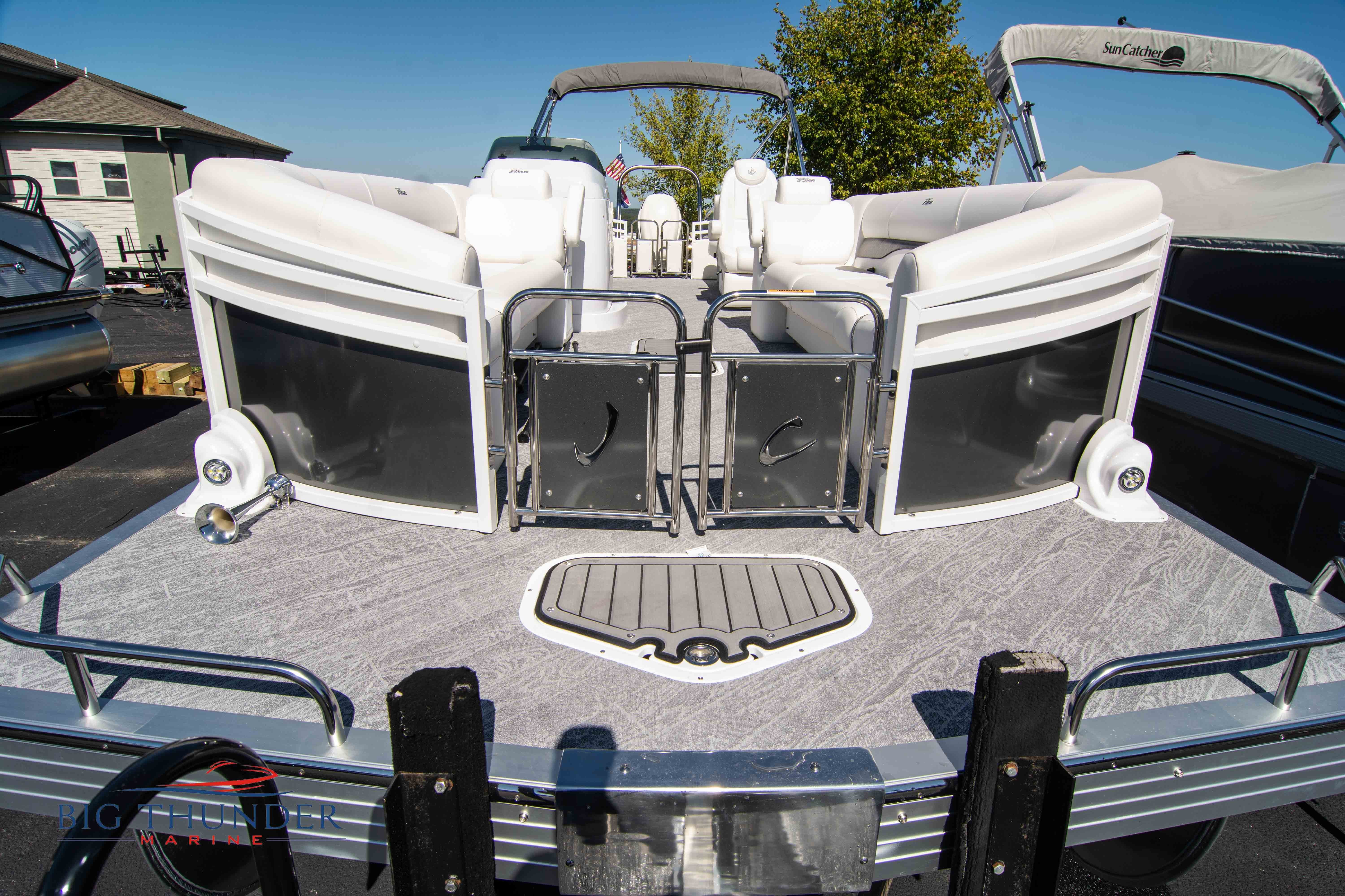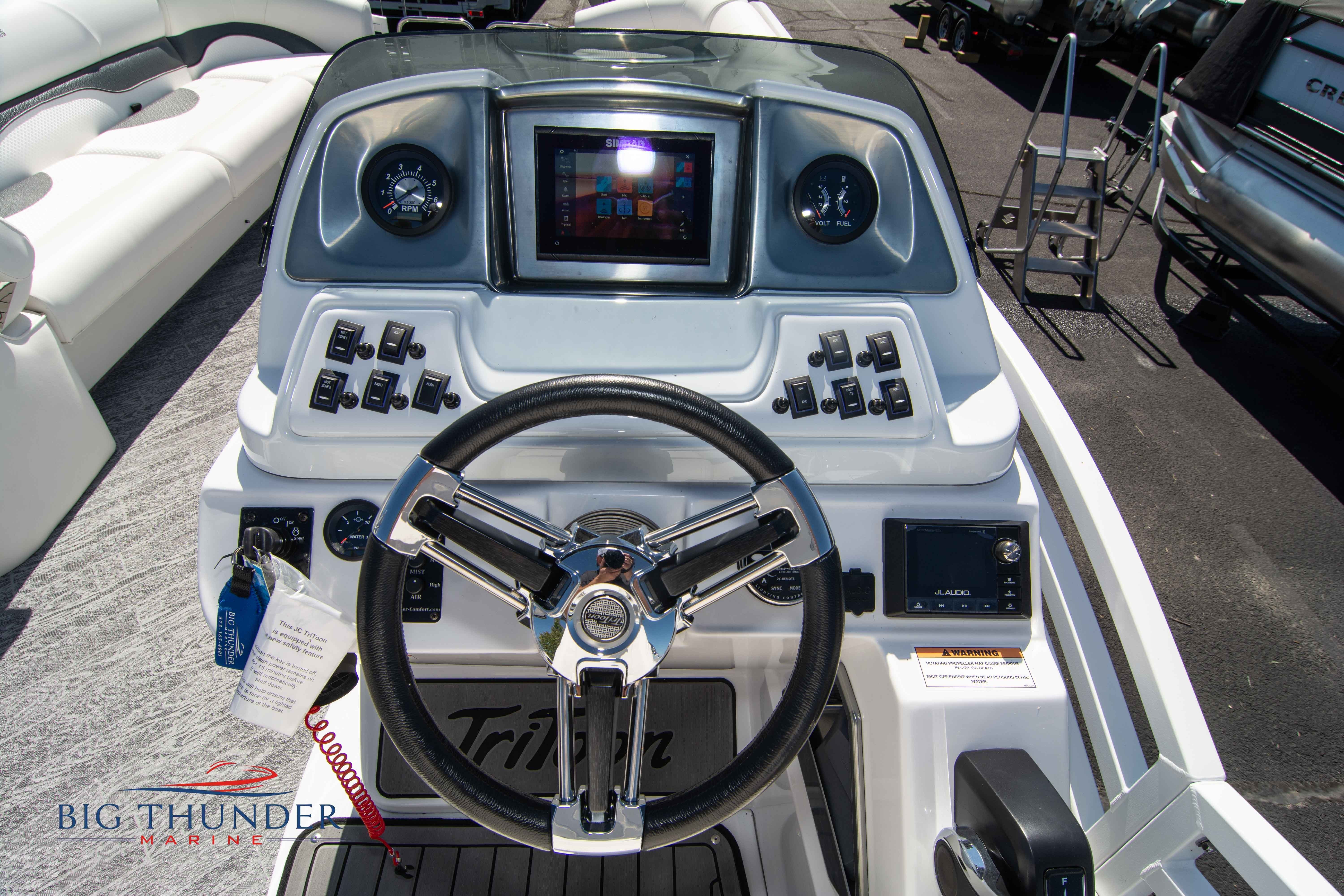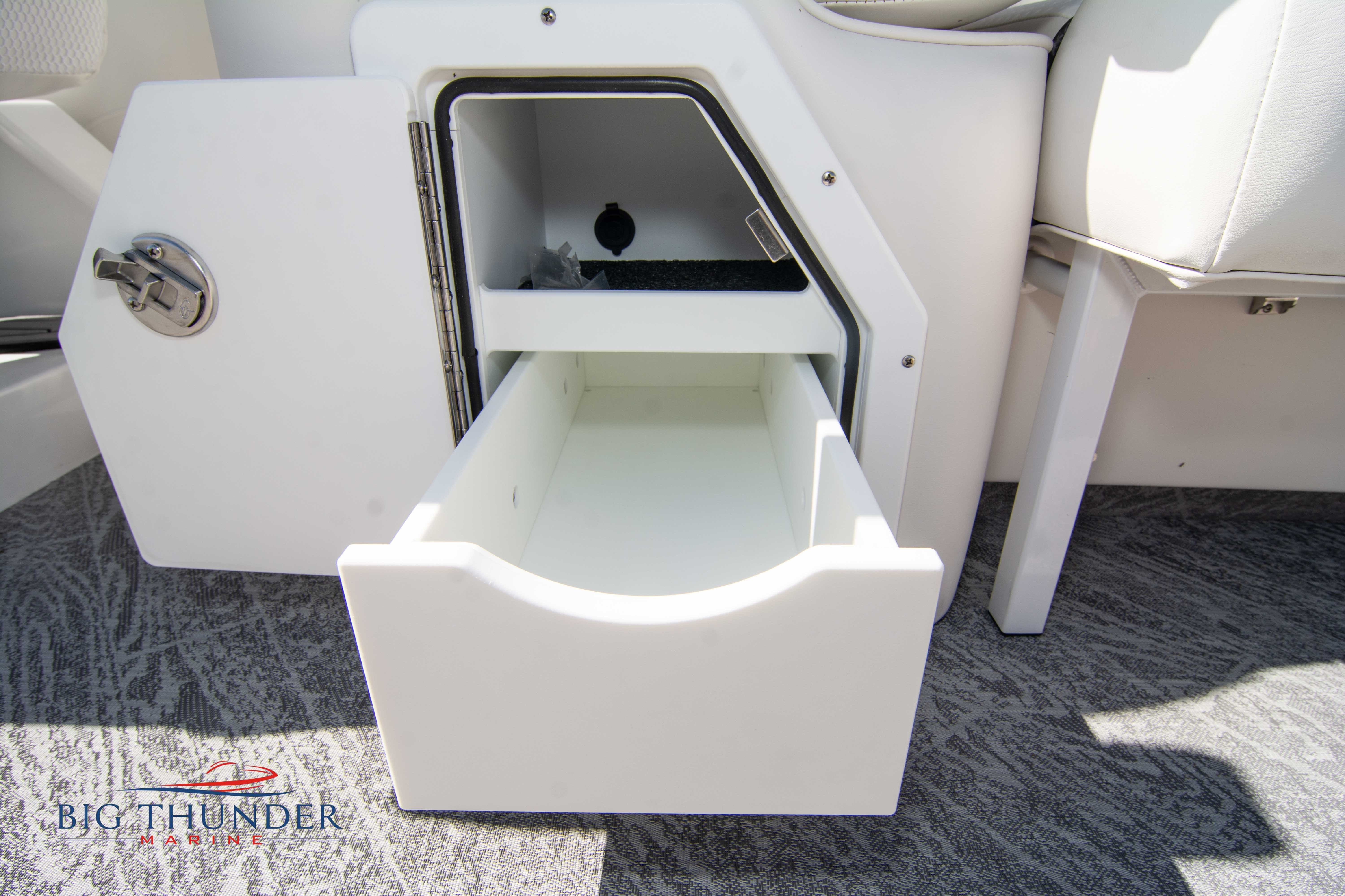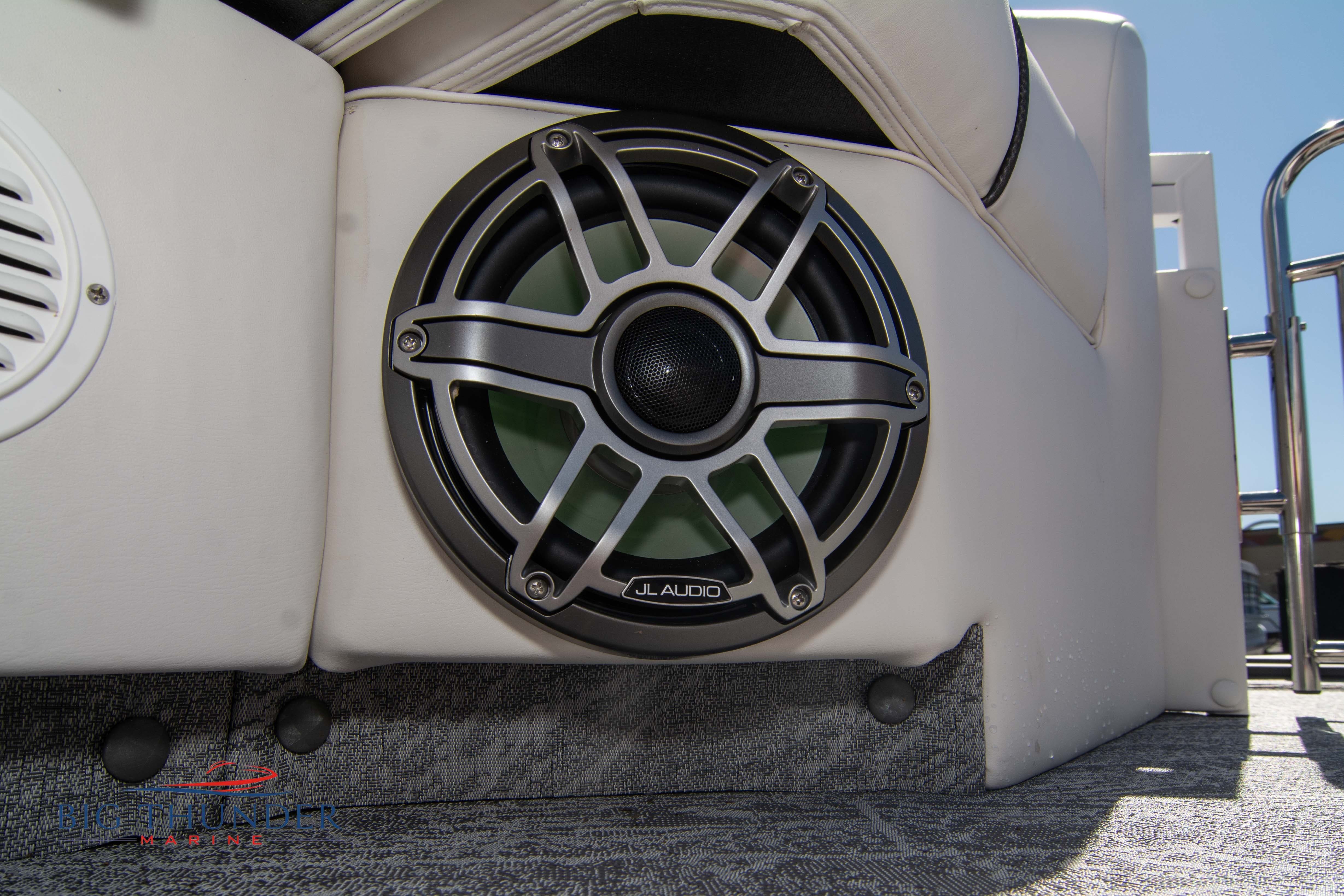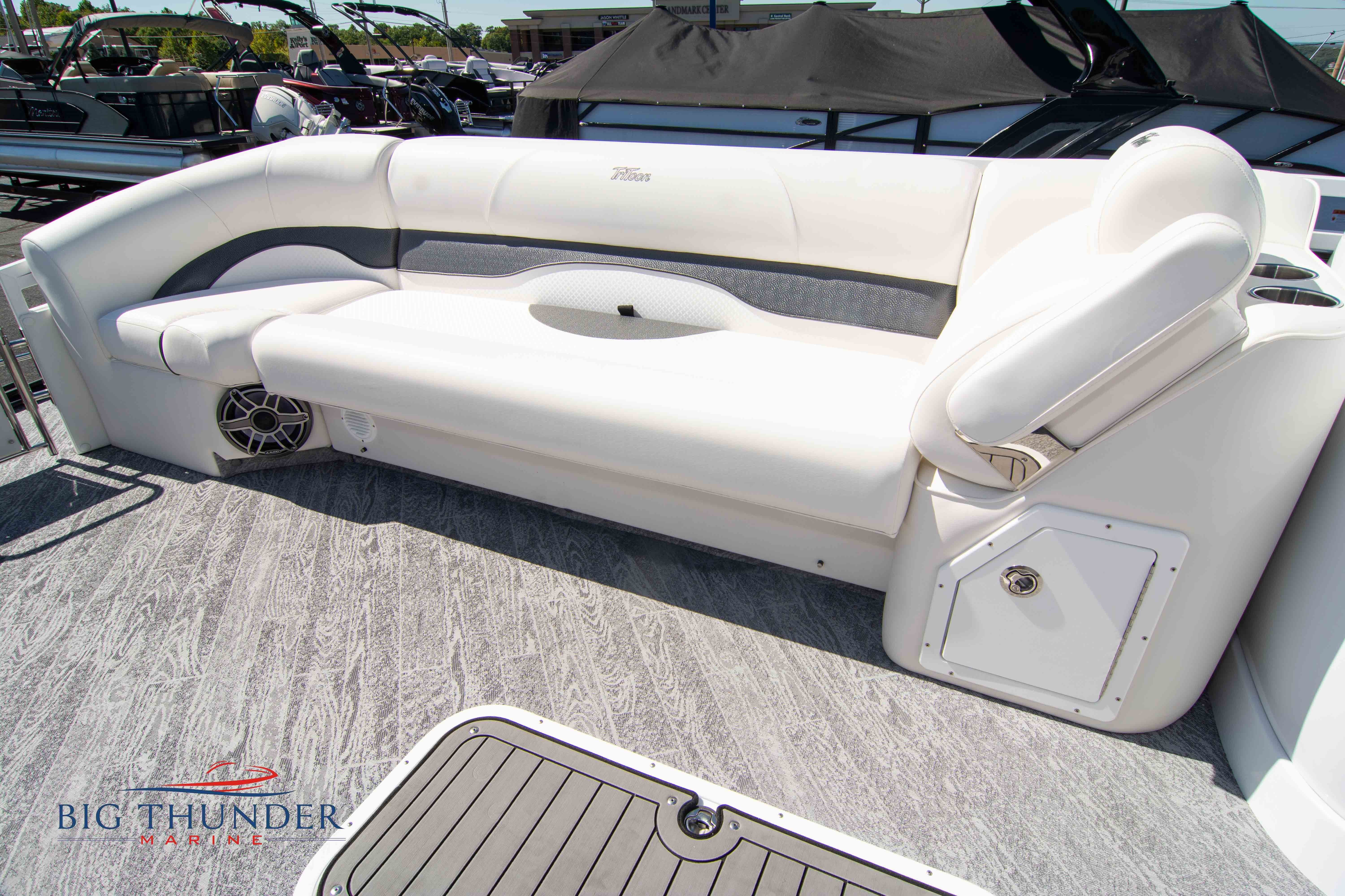 Suzuki Pre-Rig. Suzuki 250 SSTXW2. Sport Pkg. (Hydraulic Steering 1.7 w/ Power Assist, Lifting Fins). High Tide Hull (High Strength Elevated Performance Hull w/ 350HP Rating, Bow Anchor Locker w/ Marine Mat, In-Tube Storage w/ Marine Mat, Taller SS Heavy Duty Ski Tow). Charcoal Wall Panels. White Rails & Helm Cap. SS Rubrail Insert. SS Flip Up Bow Cleat. SS Fender Holder w/ Fenders. SS Bow Rails.Gray JC Plank Flooring. White Upholstery w/ Charcoal Upholstery Trim Pkg. Steel Color Bimini Top. Bimini Trailering Supports-10’ HD 1 1/4"" Frame (2). Dual Swim Platform w/ Ladder. Dual Stern Lounges w/ Storage & Drawer. Bow Lounger w/ Arm Rest w/ USB Storage & Drawer. Bow Lounger w/ Arm Rest w/ Trash And Flip Down Storage. High Back Reclining Companion Seat w/ Leg Lift. High Back Reclining Helm Capt. Chair w/ Bolster. Raised Helm Platform w/ Marine Mat. Deluxe Spoked Steering Wheel. 7"" Simrad GO7 Touch Screen w/ Engine Interface. JL MM-100 Stereo. JL 8.8 Spkr. Upgrade 2/ RGB Lights & 6W Amp. JL 8.8 Stern Spkrs. (2) w/ 2-Way Inline JL Amp. RGB Interior/Exterior Lighting Pkg. w/ Control Center. Floor & Helm Misting System. Glove Box. Fuel/Water Filter. Mooring Cover.