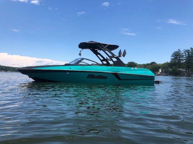 Full Transferrable Warranty. 2020 Malibu Wakesetter 22 MXZ Black and teal metal flake , black hull Mocha Interior Length 22'5" Beam 102" Fuel Capacity 48 gal.
