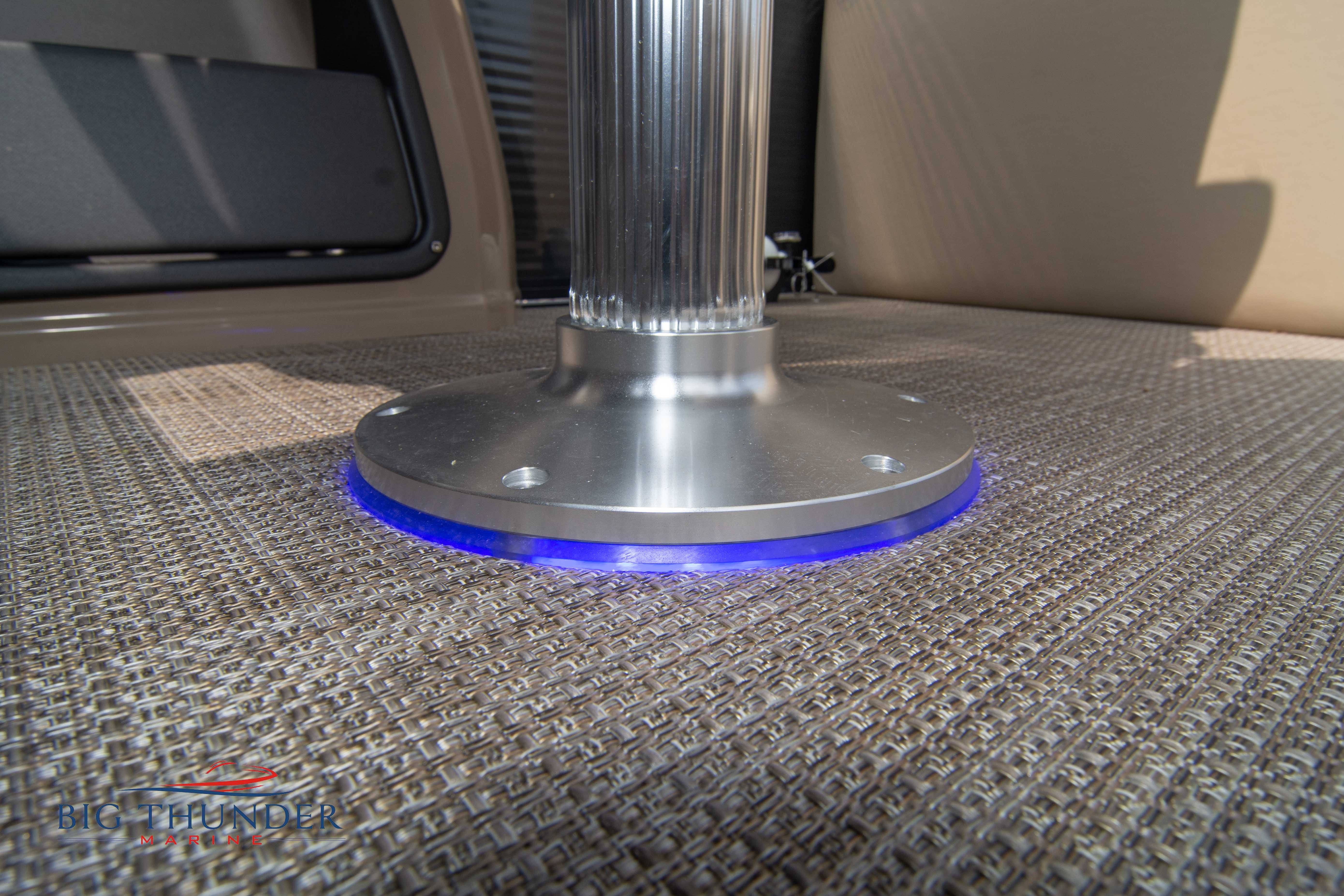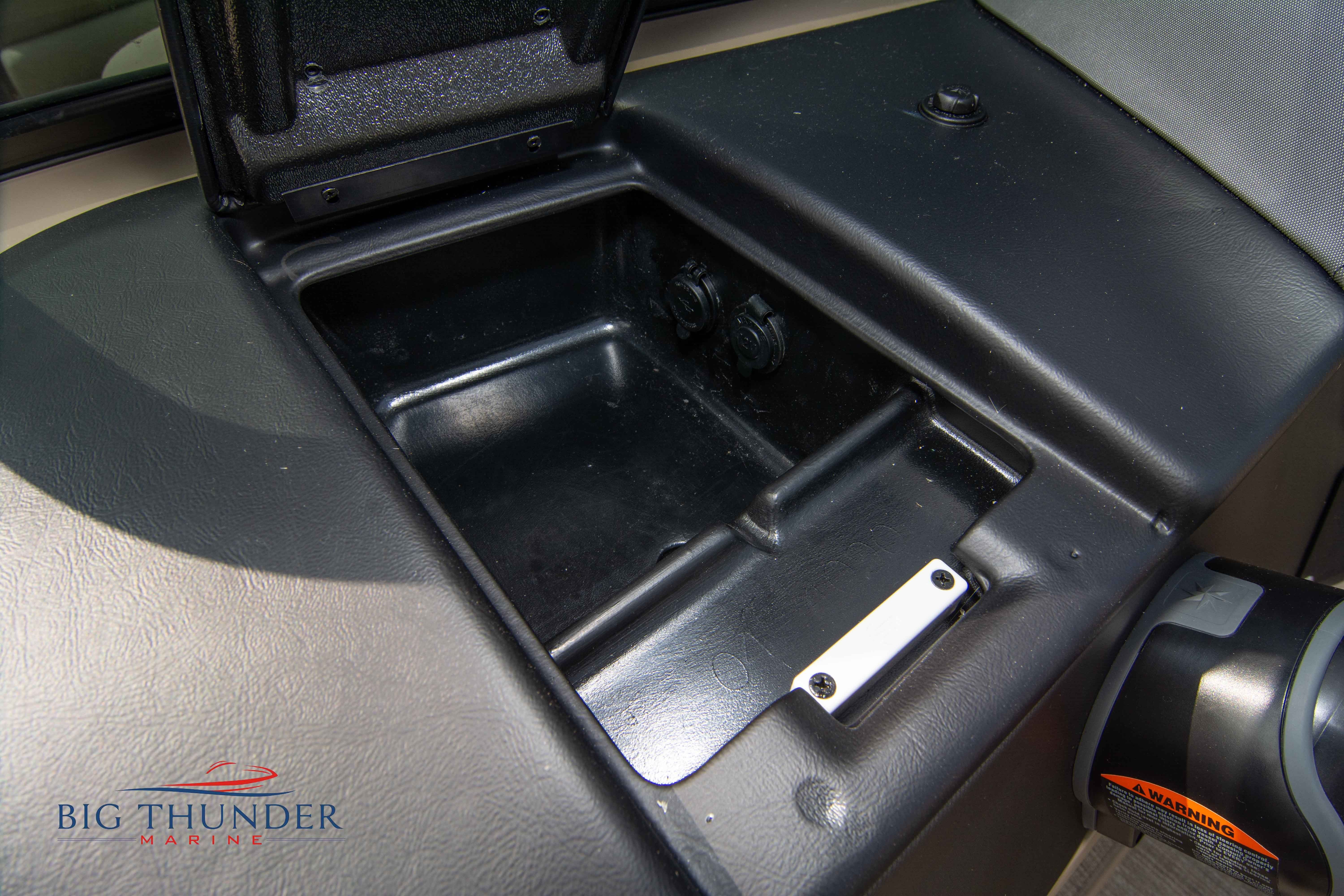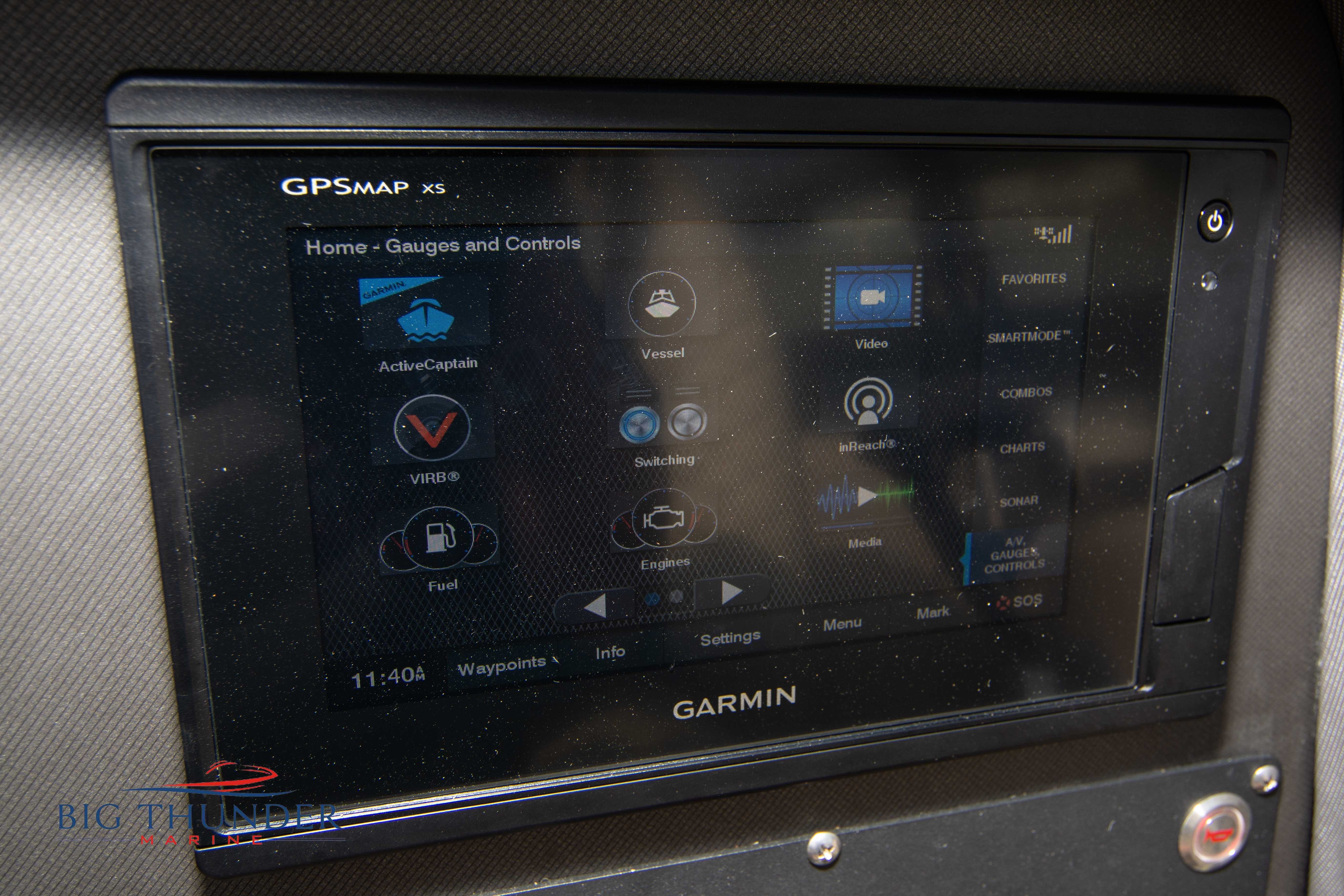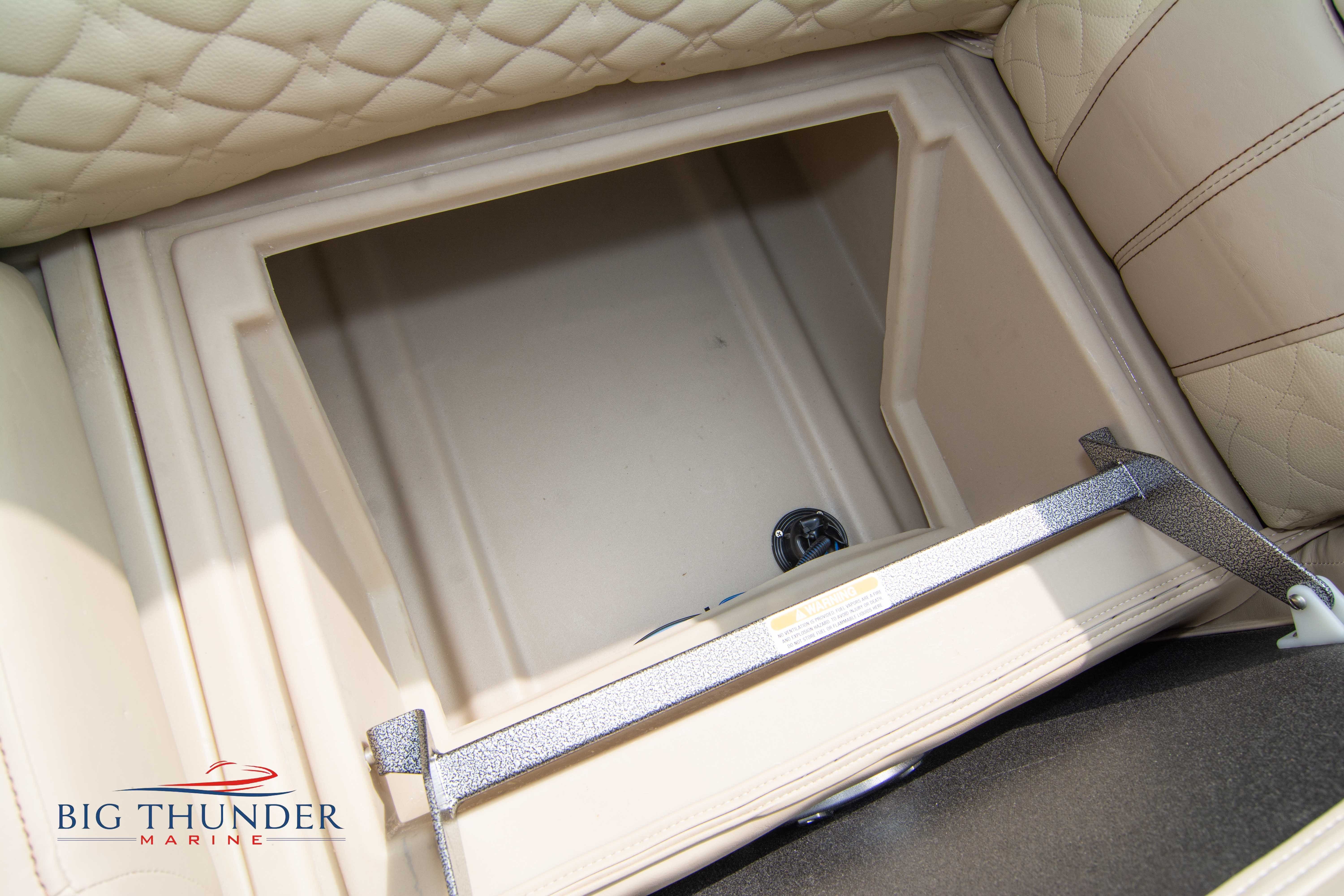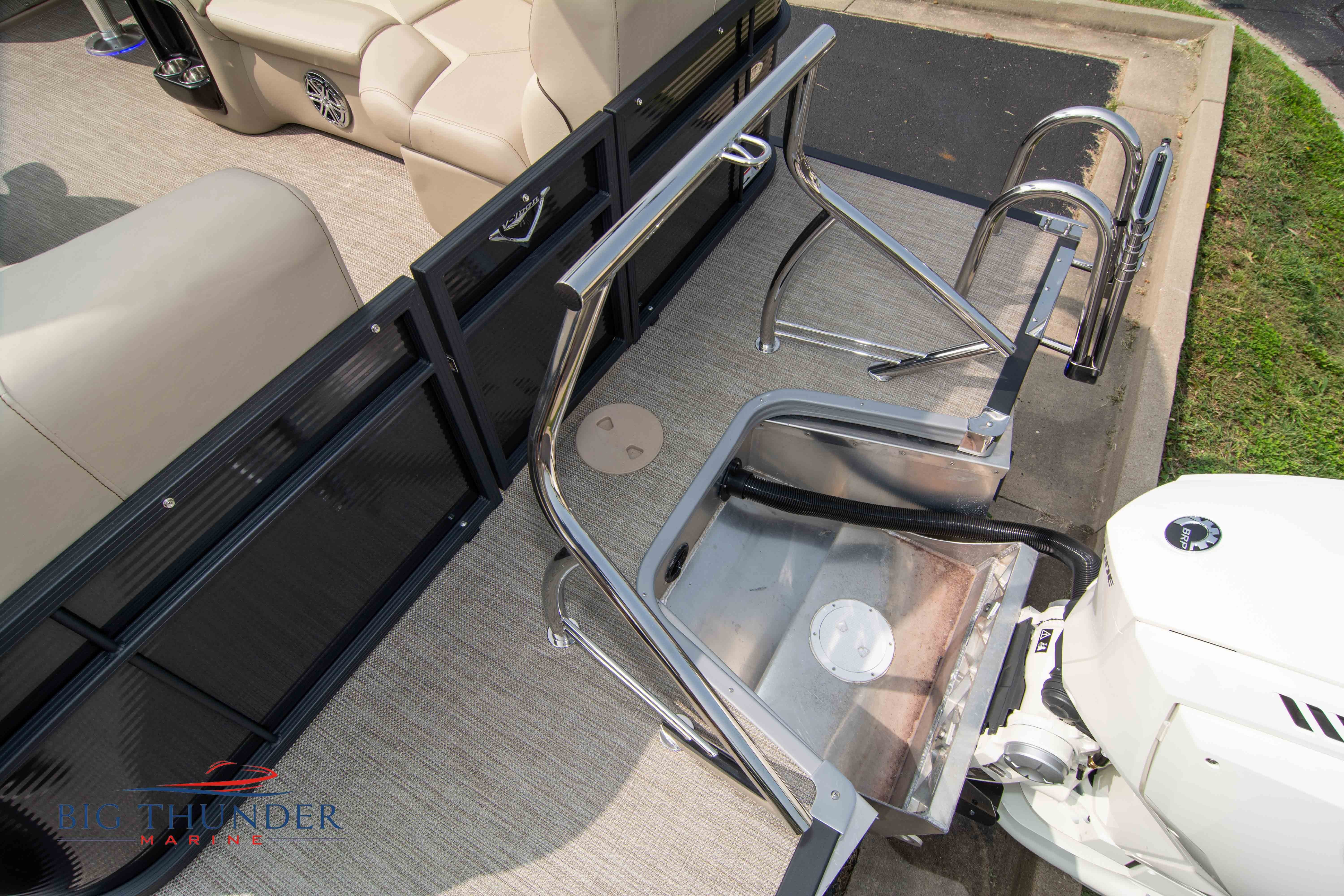 Evinrude Digital DPS Pre-Rig. Evinrude 200 E-Tec - White. Charcoal Metallic Wall Skin. Tan Two-Tone Graphics. Matte Black Powder Coating. Tan Luna Flooring. Tan Furniture. Charcoal Cover & Bimini Top. Power Arm Bimini w/ Black Anodizing & LED Lights. Blue LED Exterior Lights. Blue LED Pedestal & Table Base Light Pkg. Stereo Upgrade - Premium JL MM100 Bluetooth Stereo, (4) JL Chrome LED Spkrs., 10"" Sub & 800W Amp. Garmin Virb Action Camera w/ Standard Mounting Hardware. Garmin GPSmap XS Color Touchscreen Display w/ Gauges & Controls. Battery Charging System. Center In-Tube Storage.