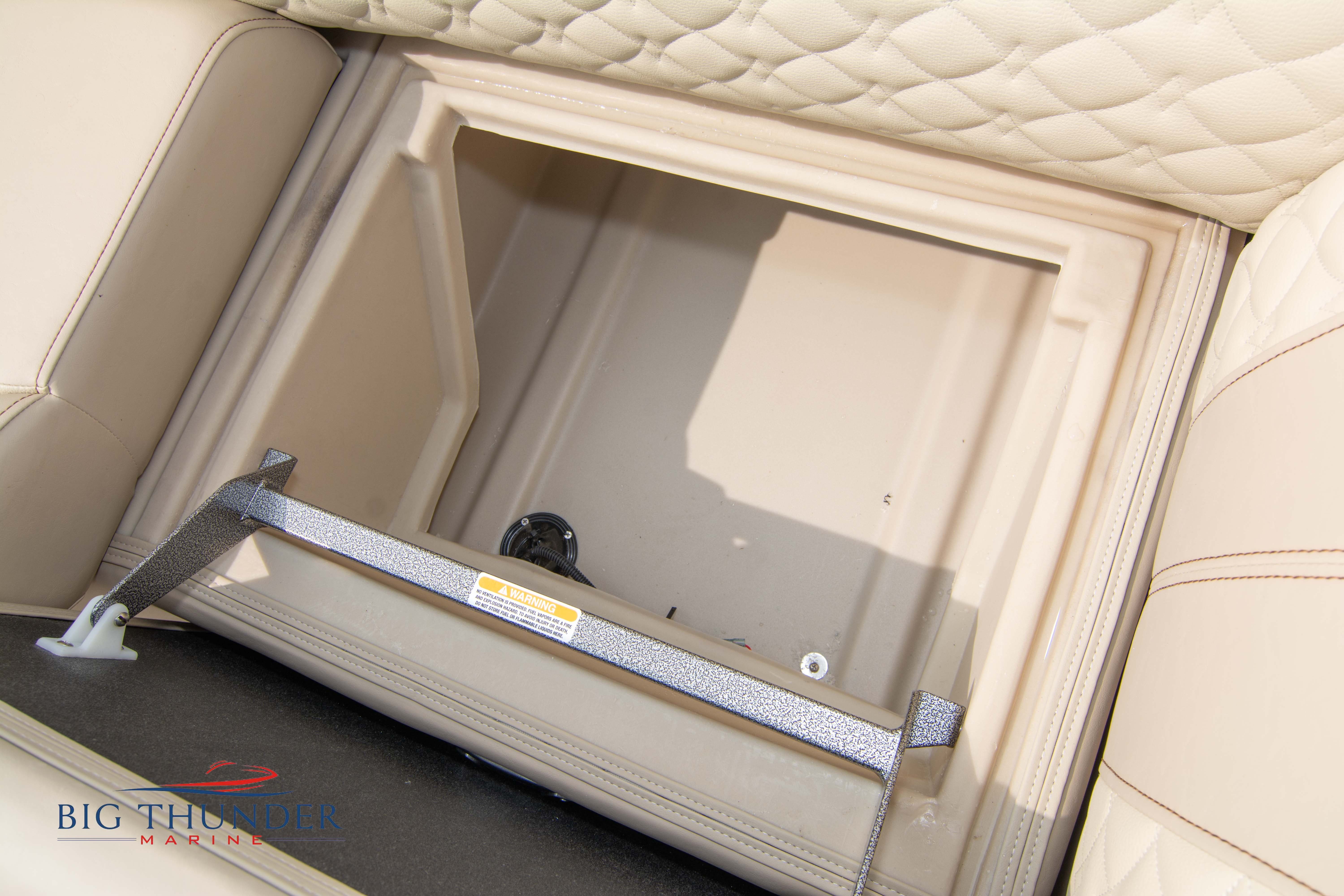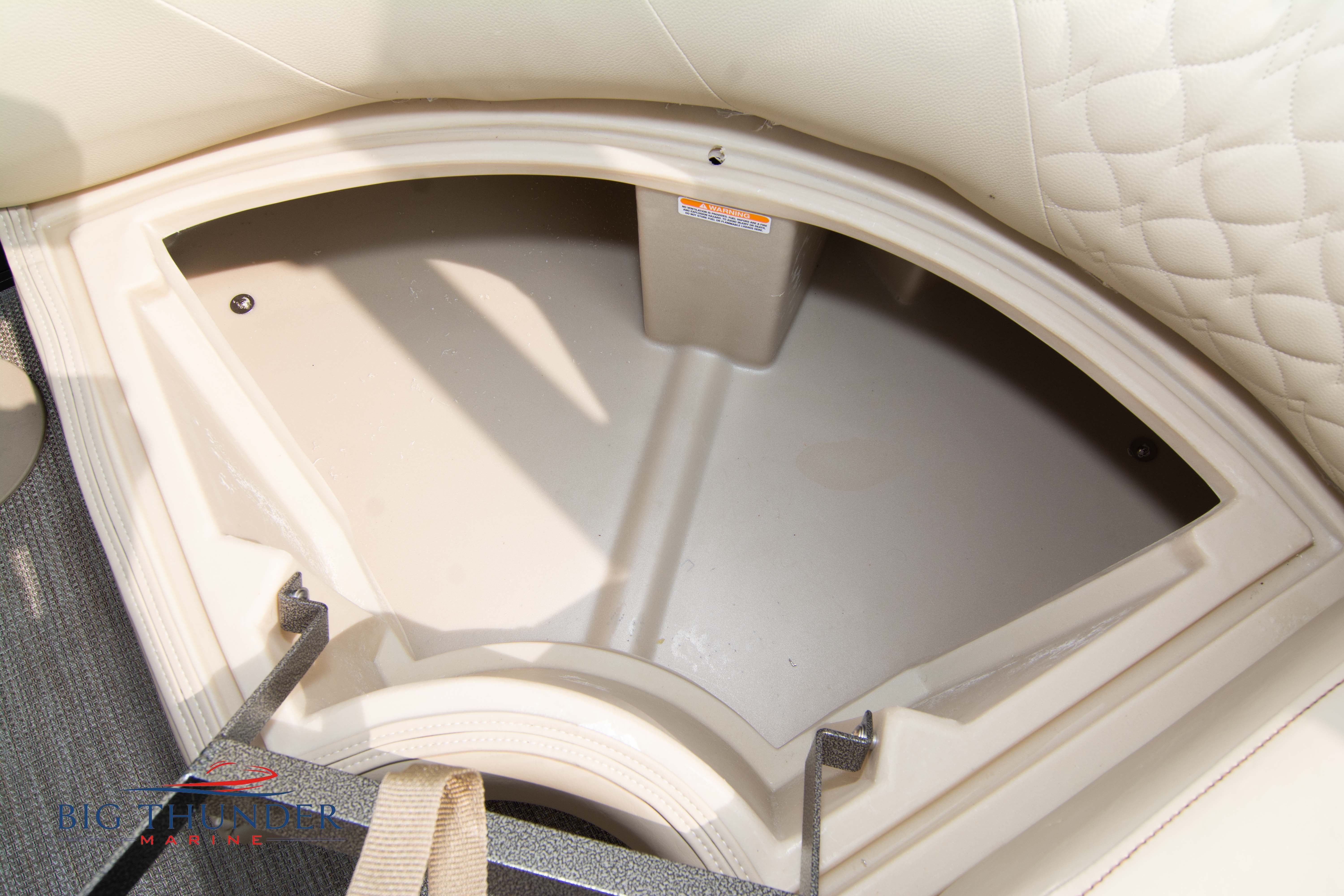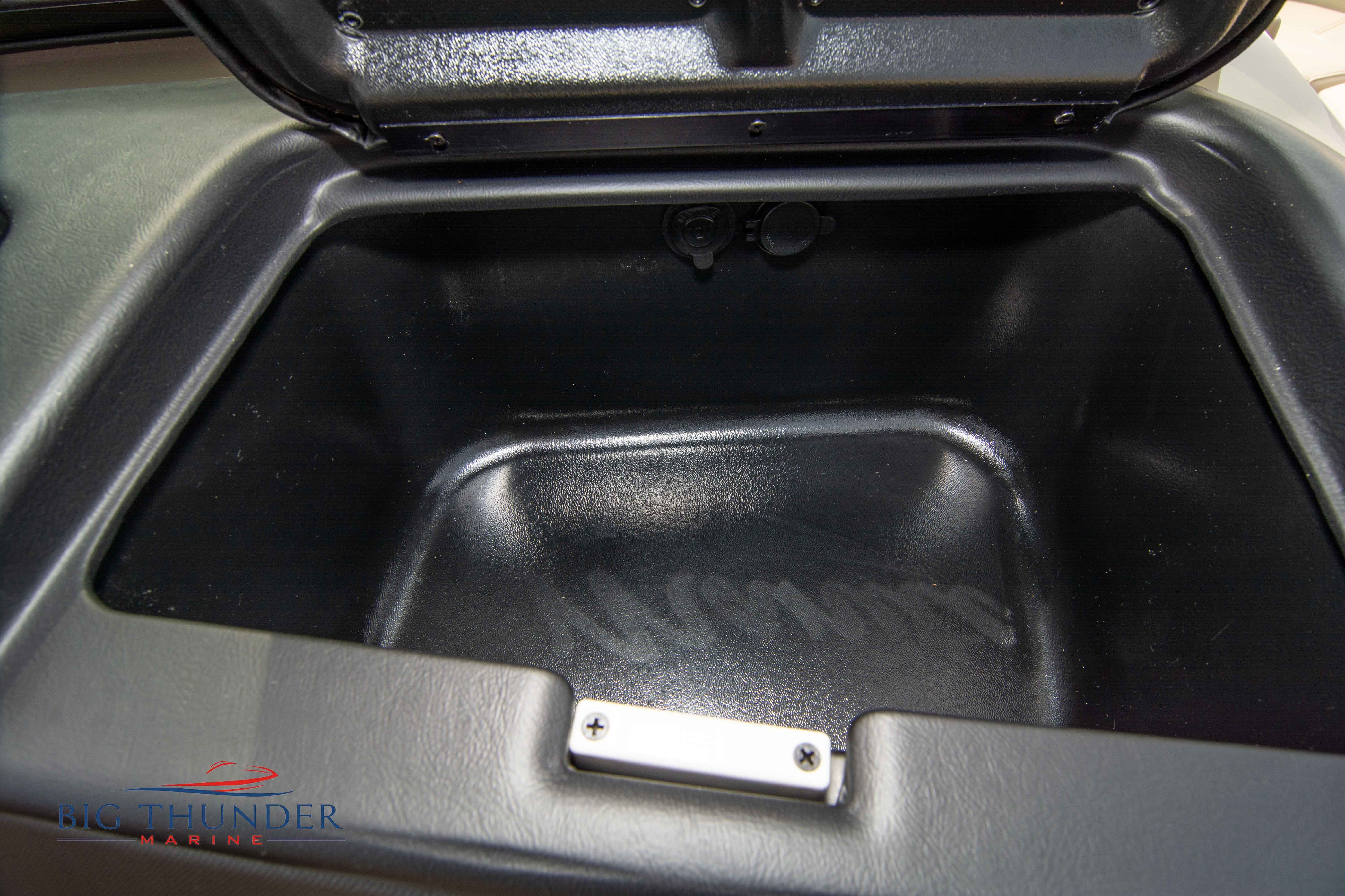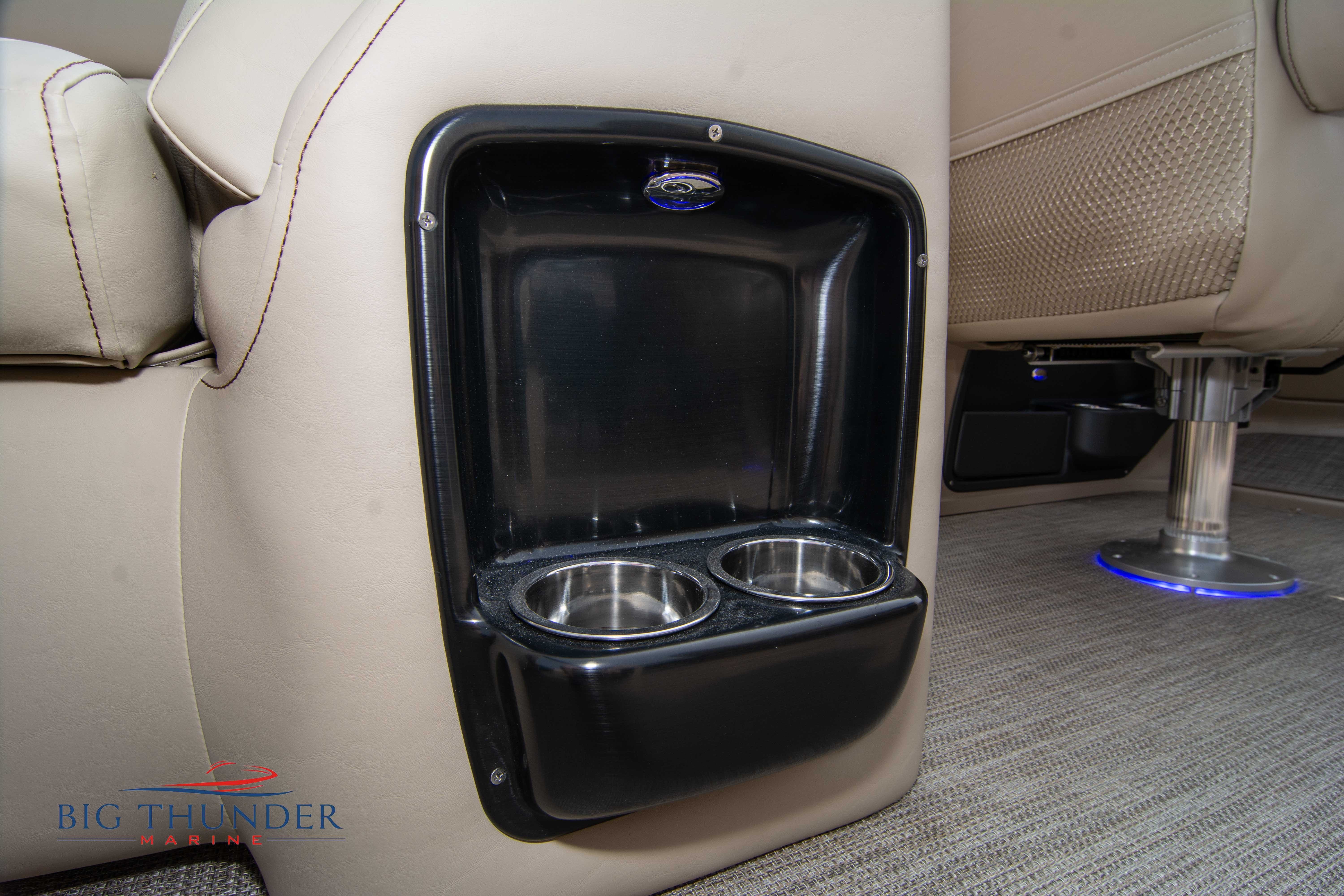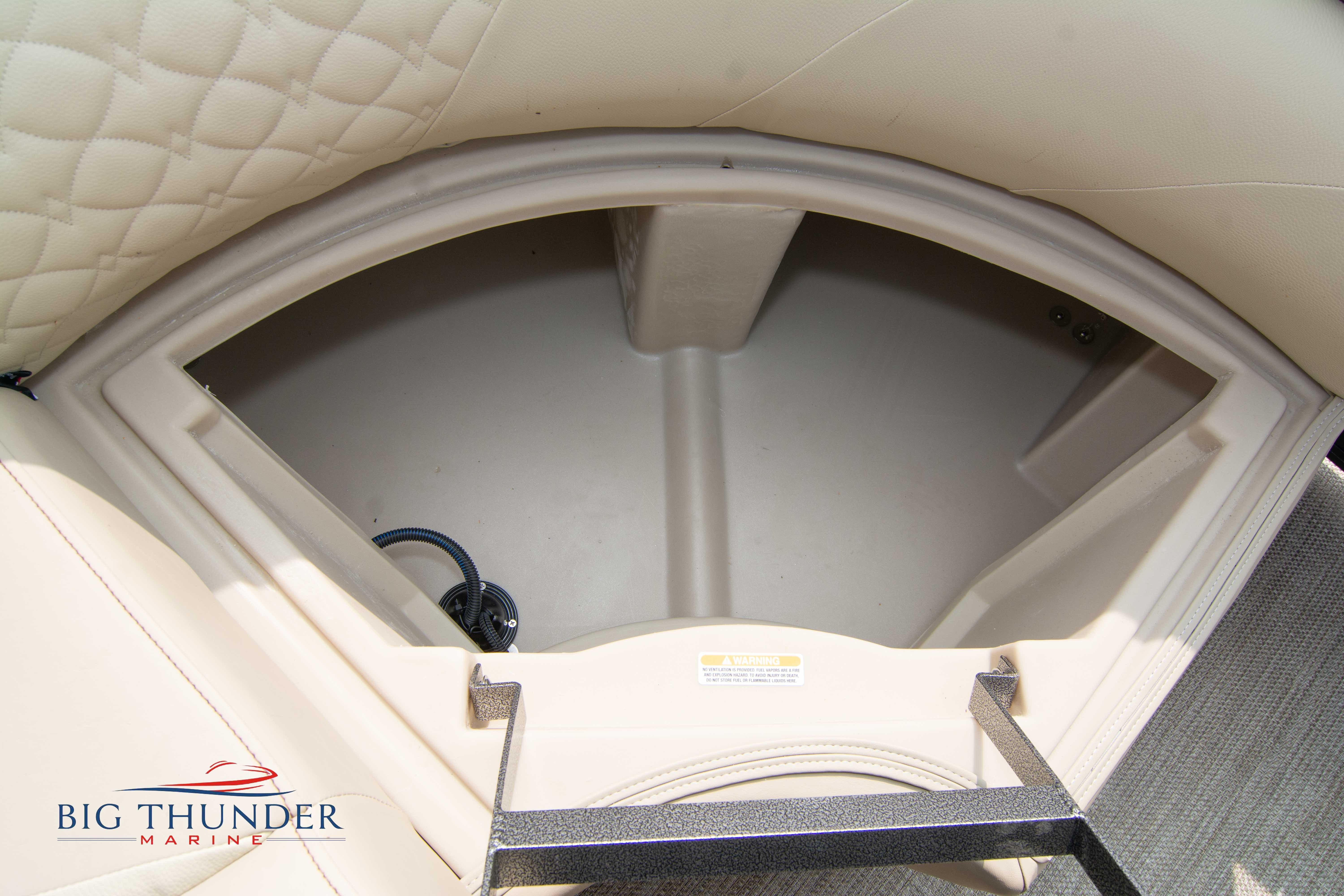 Evinrude Digital DPS Pre-Rig. Evinrude 200 E-Tec - White. Charcoal Metallic Wall Skin. Tan Two-Tone Graphics. Matte Black Powder Coating. Tan Luna Flooring. Tan Furniture. Charcoal Cover & Bimini Top. Power Arm Bimini w/ Black Anodizing & LED Lights. Blue LED Exterior Lights. Blue LED Pedestal & Table Base Light Pkg. Stereo Upgrade - Premium JL MM100 Bluetooth Stereo, (4) JL Chrome LED Spkrs., 10"" Sub & 800W Amp. Garmin Virb Action Camera w/ Standard Mounting Hardware. Garmin GPSmap XS Color Touchscreen Display w/ Gauges & Controls. Battery Charging System. Center In-Tube Storage.