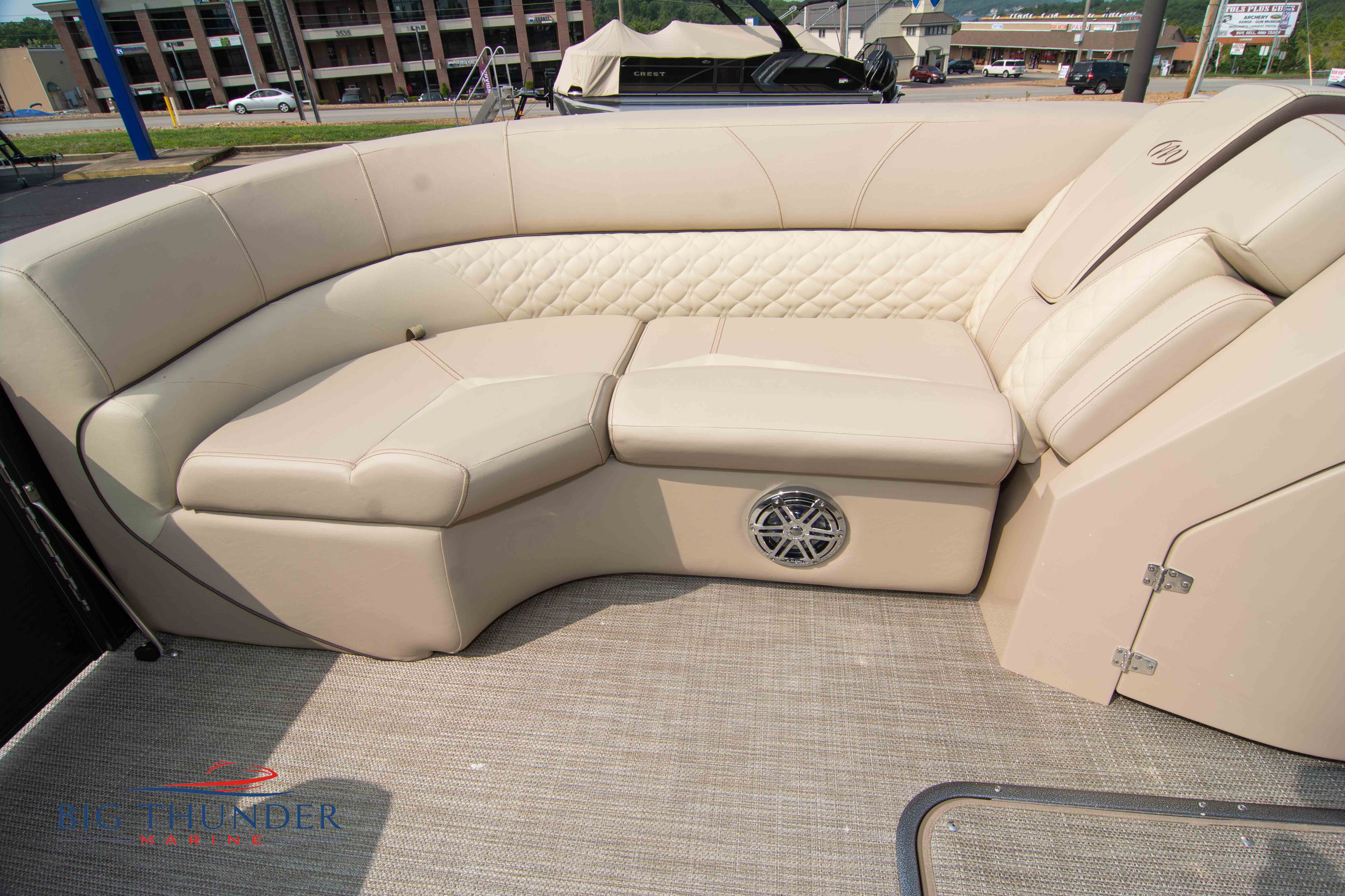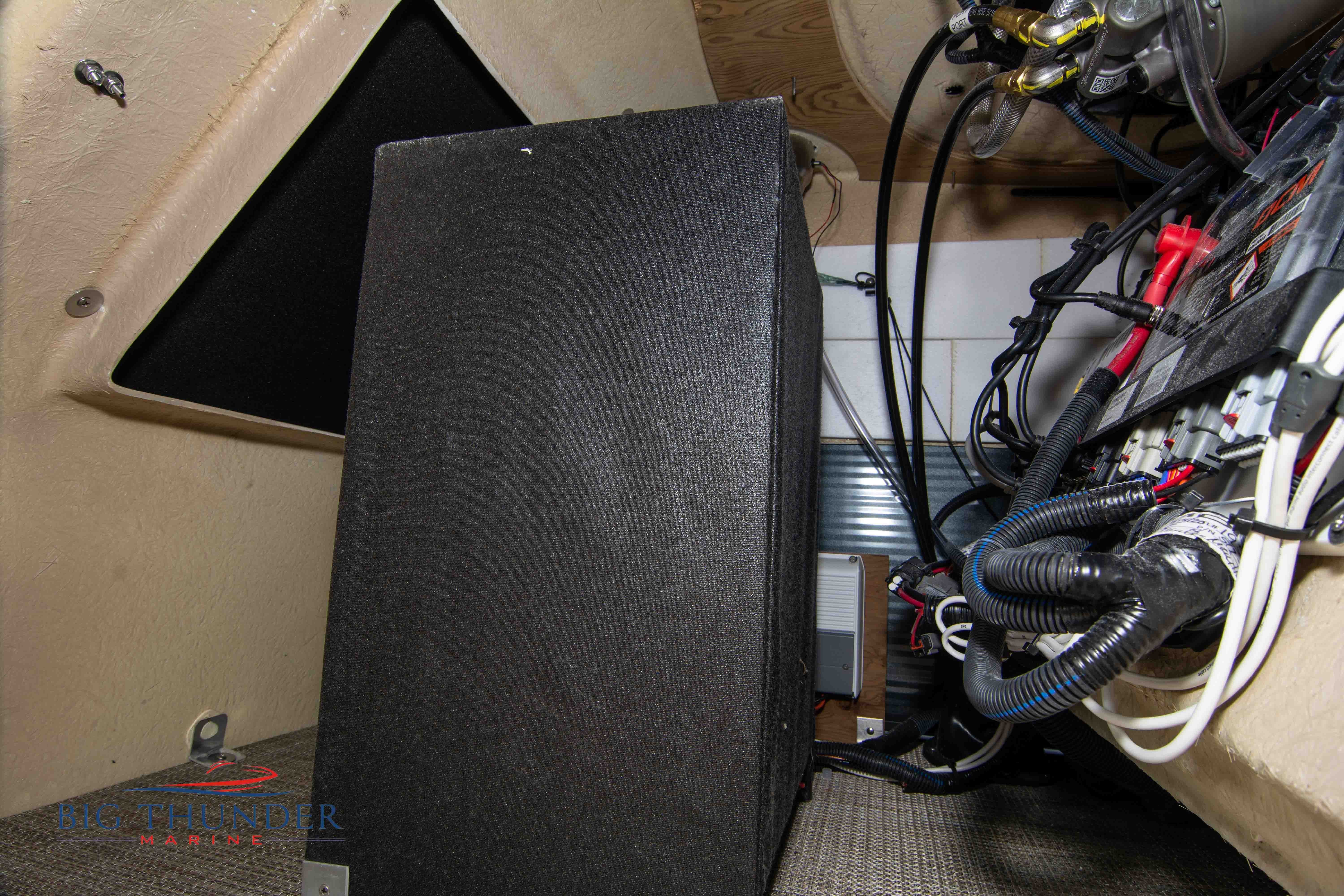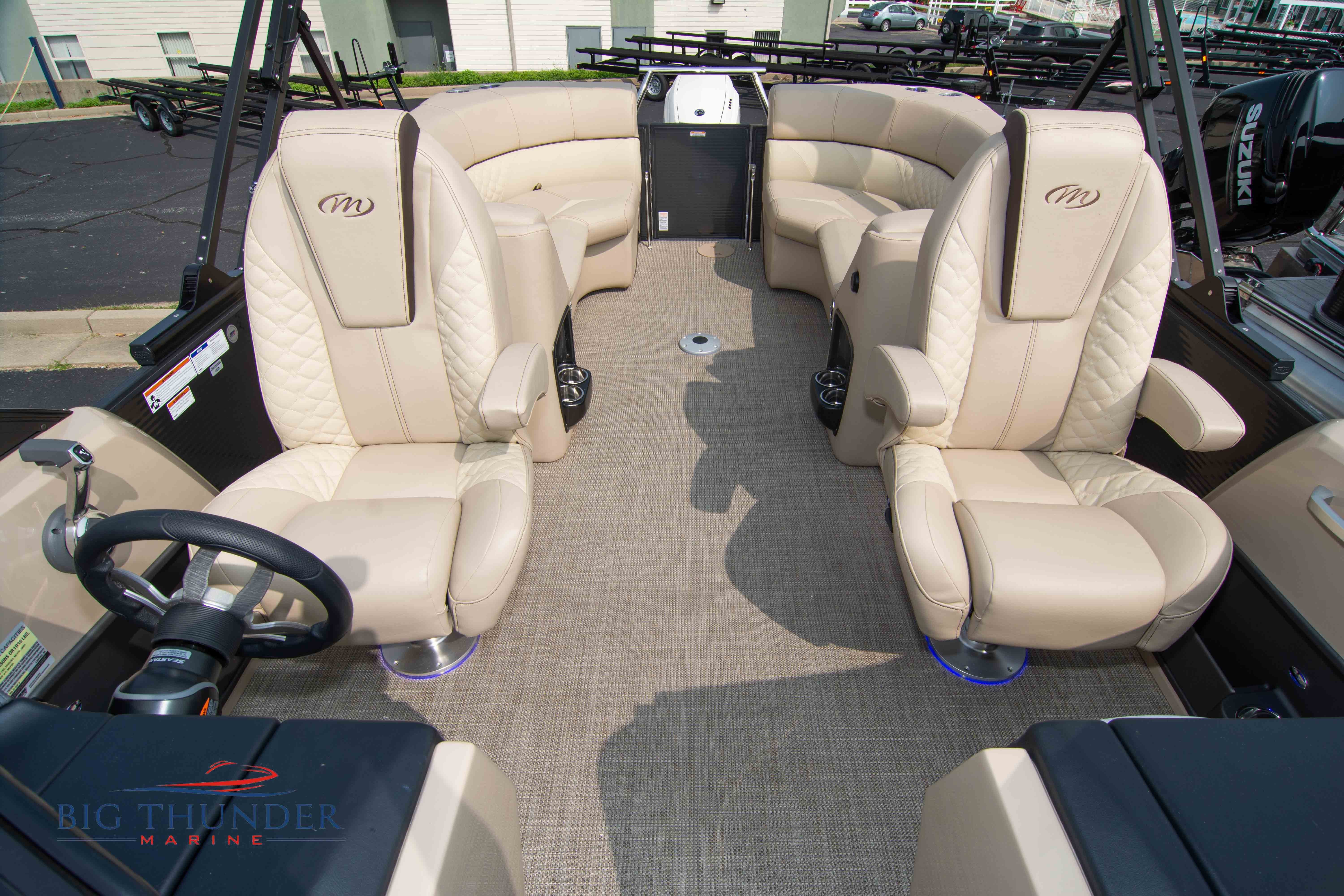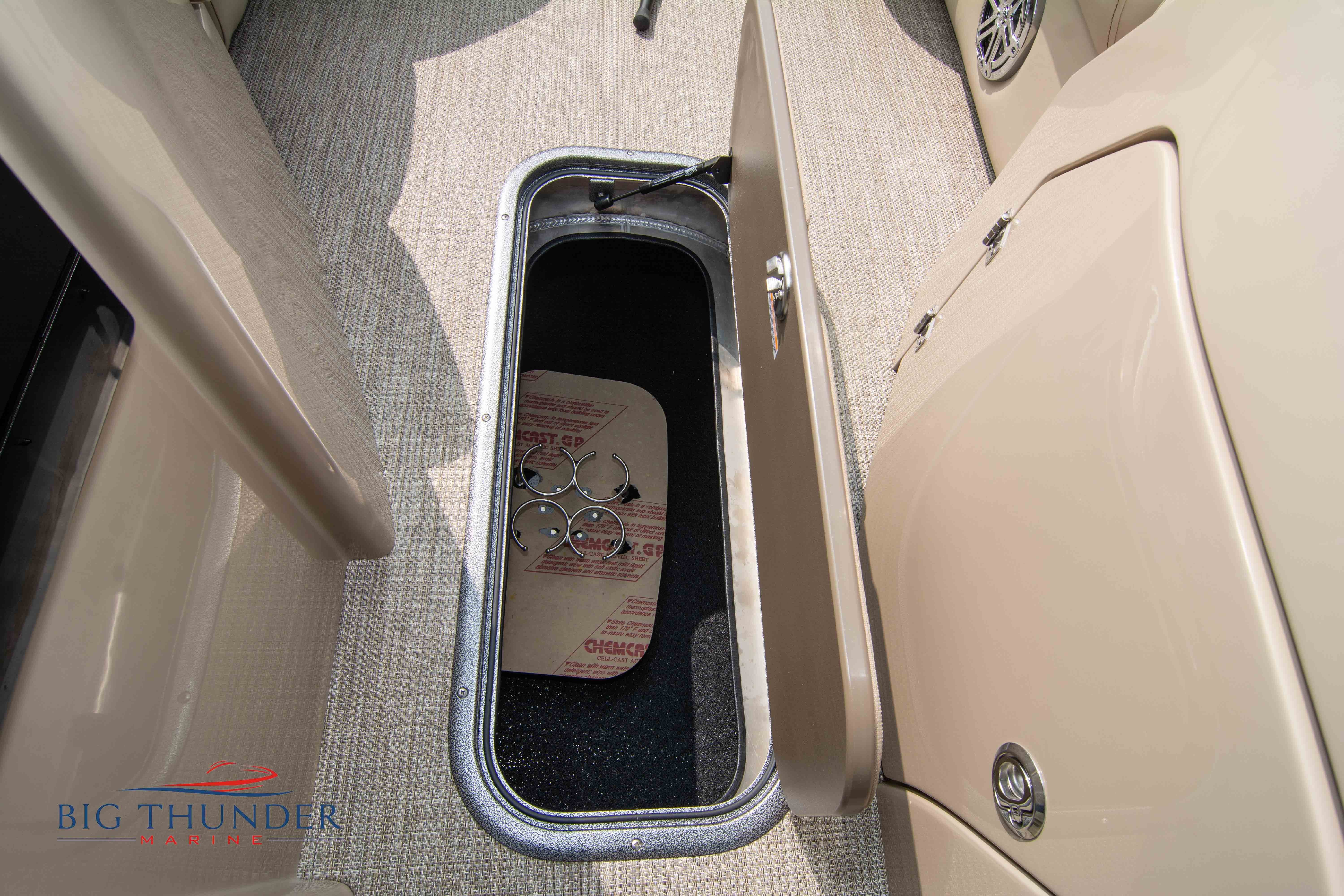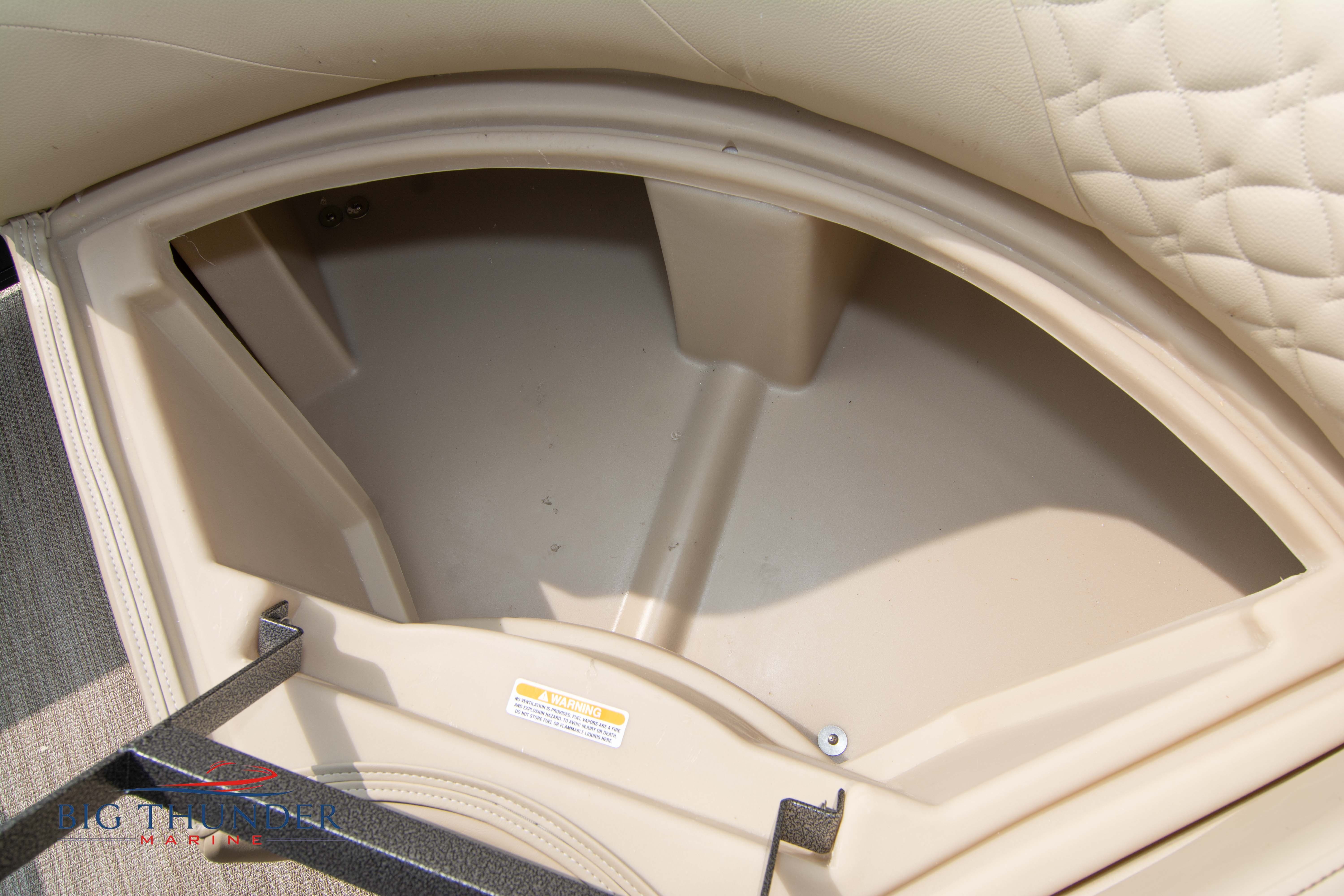 Evinrude Digital DPS Pre-Rig. Evinrude 200 E-Tec - White. Charcoal Metallic Wall Skin. Tan Two-Tone Graphics. Matte Black Powder Coating. Tan Luna Flooring. Tan Furniture. Charcoal Cover & Bimini Top. Power Arm Bimini w/ Black Anodizing & LED Lights. Blue LED Exterior Lights. Blue LED Pedestal & Table Base Light Pkg. Stereo Upgrade - Premium JL MM100 Bluetooth Stereo, (4) JL Chrome LED Spkrs., 10"" Sub & 800W Amp. Garmin Virb Action Camera w/ Standard Mounting Hardware. Garmin GPSmap XS Color Touchscreen Display w/ Gauges & Controls. Battery Charging System. Center In-Tube Storage.