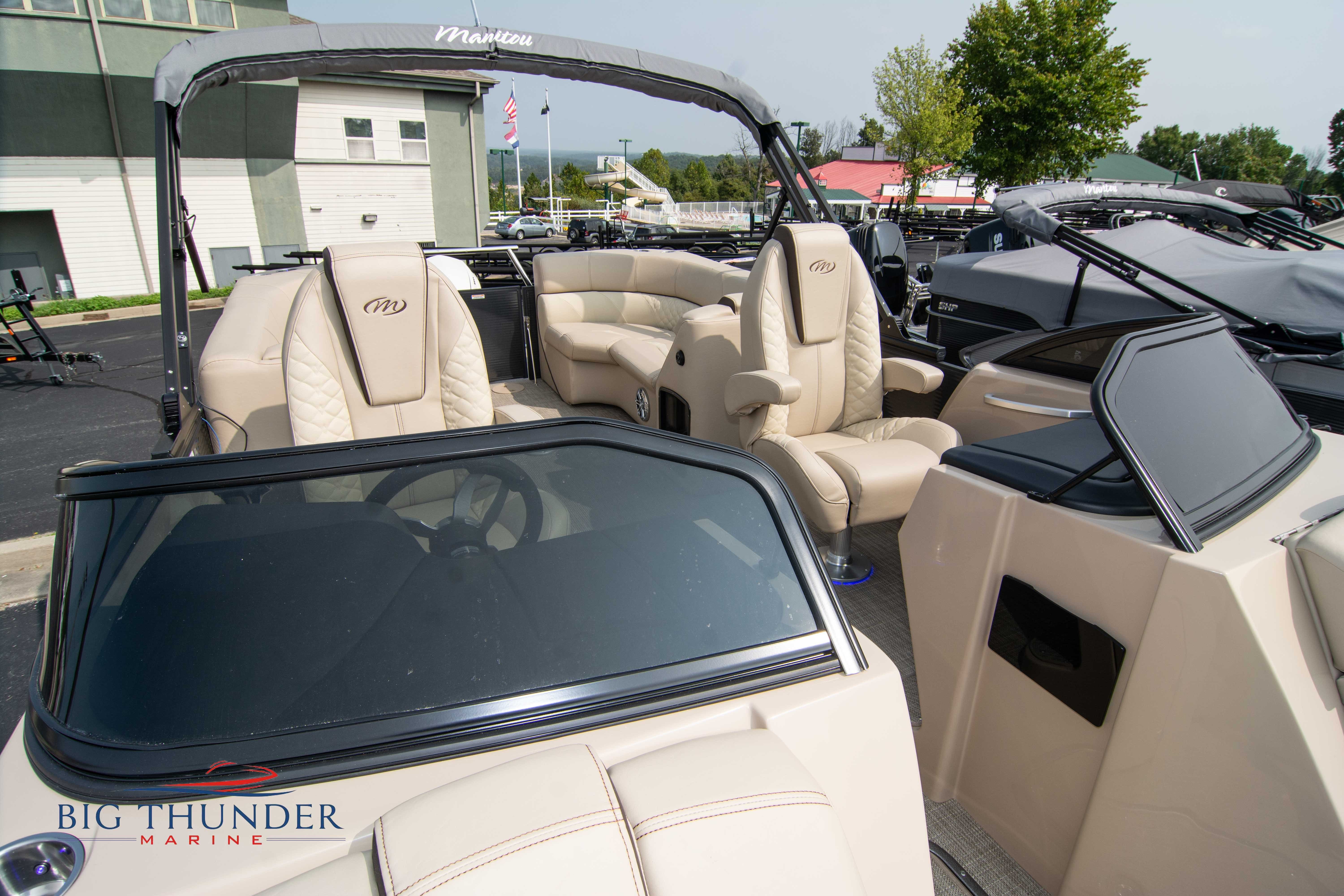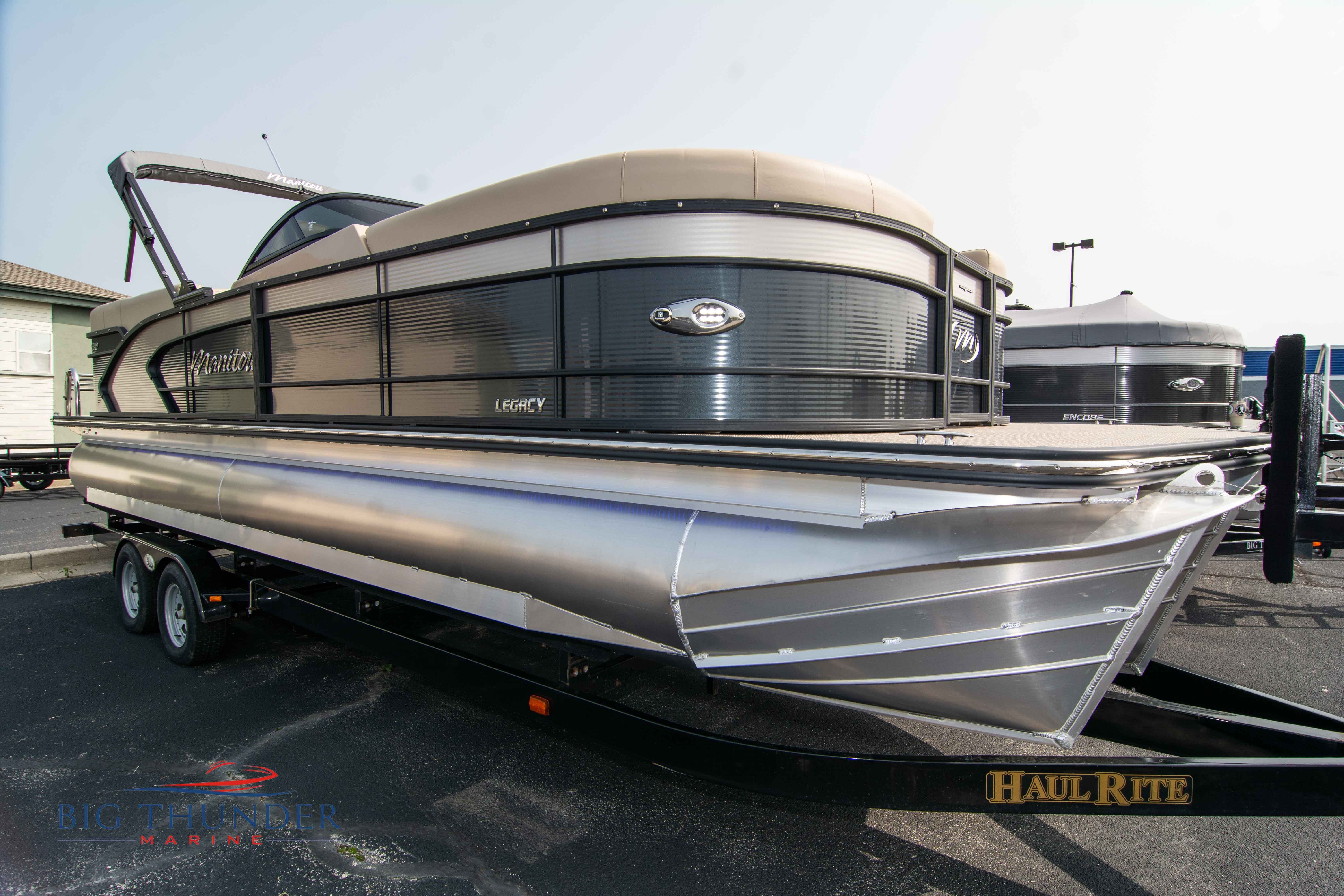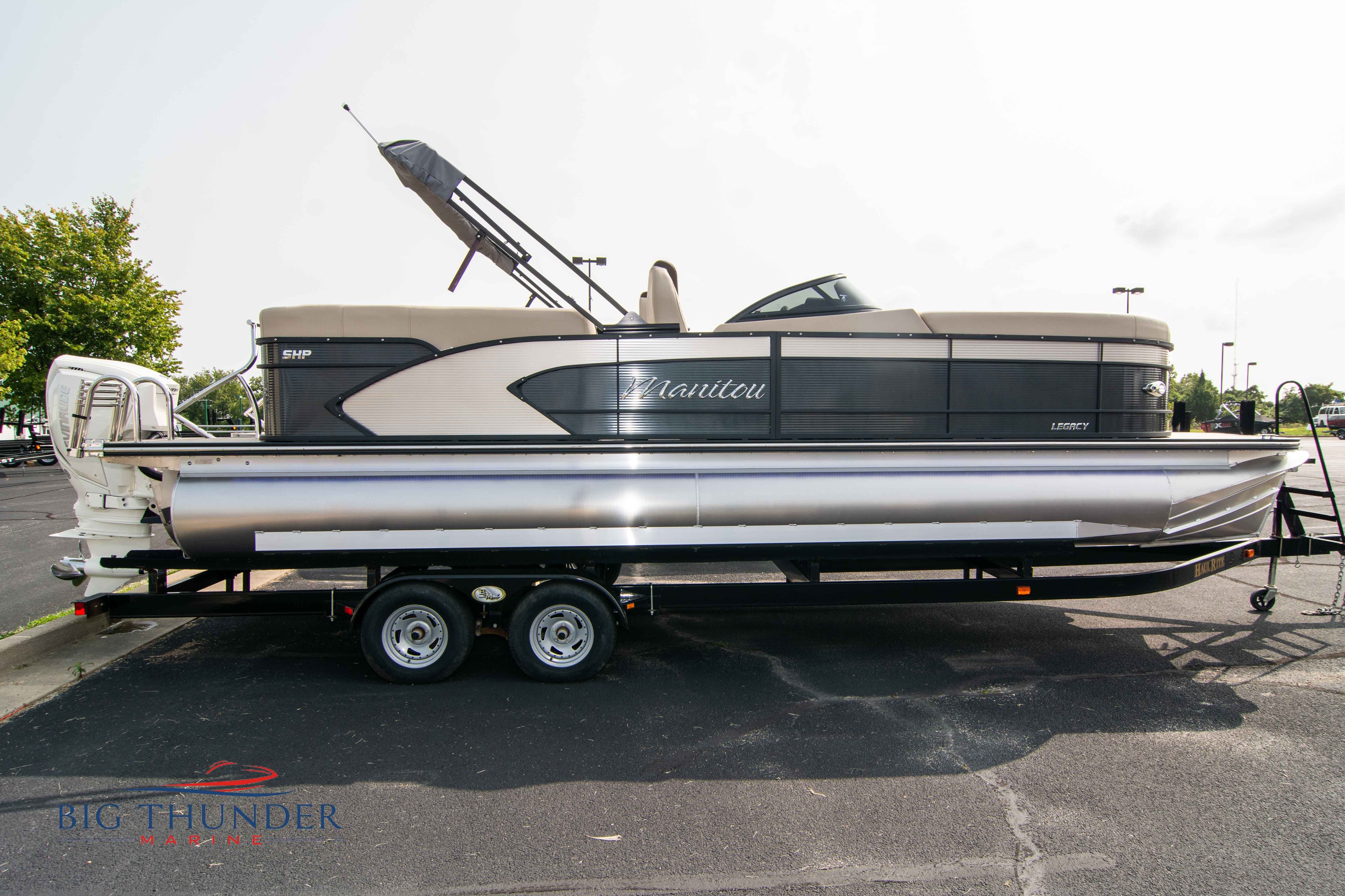 2020 Manitou 25 Legacy RFW SHP If you want the ultimate all aluminum tritoon package tricked out to perfection, this Legacy is the toon for you. Loaded with the most modern luxury features to cruise and entertain in style, with a classic pontoon profile. The RFW floorplan offers a dual windshield design with forward and rear lounge seating. Some of the many great features on this model include: